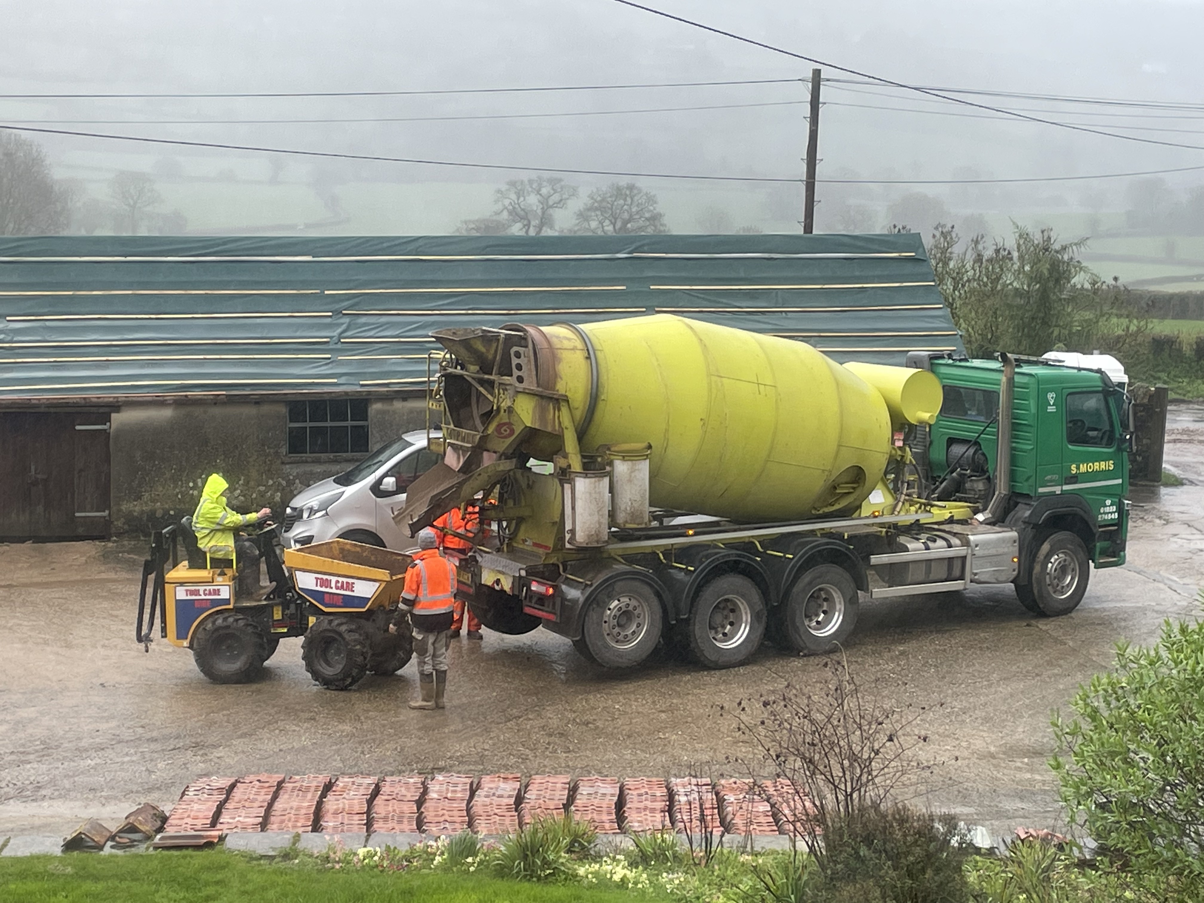Then on top of all of this – our building work finally started! Naively thinking we’d finish building within our first year, we started in February – two and a half years after moving in. Our builders are doing an incredible job despite bad weather continually hampering them – starting first inside the shippon digging up the floor, and then knocking down and replacing the front wall once the council permission came through. All the roof tiles have been removed (and cleaned by John, all 2,500 of them), and the rotten rafters replaced, ready to be rebuilt. The structure for our extension is in place, and with the drainage in place, the floor has been concreted ready for laying the underfloor heating (the most efficient option to be paired with a heat pump).