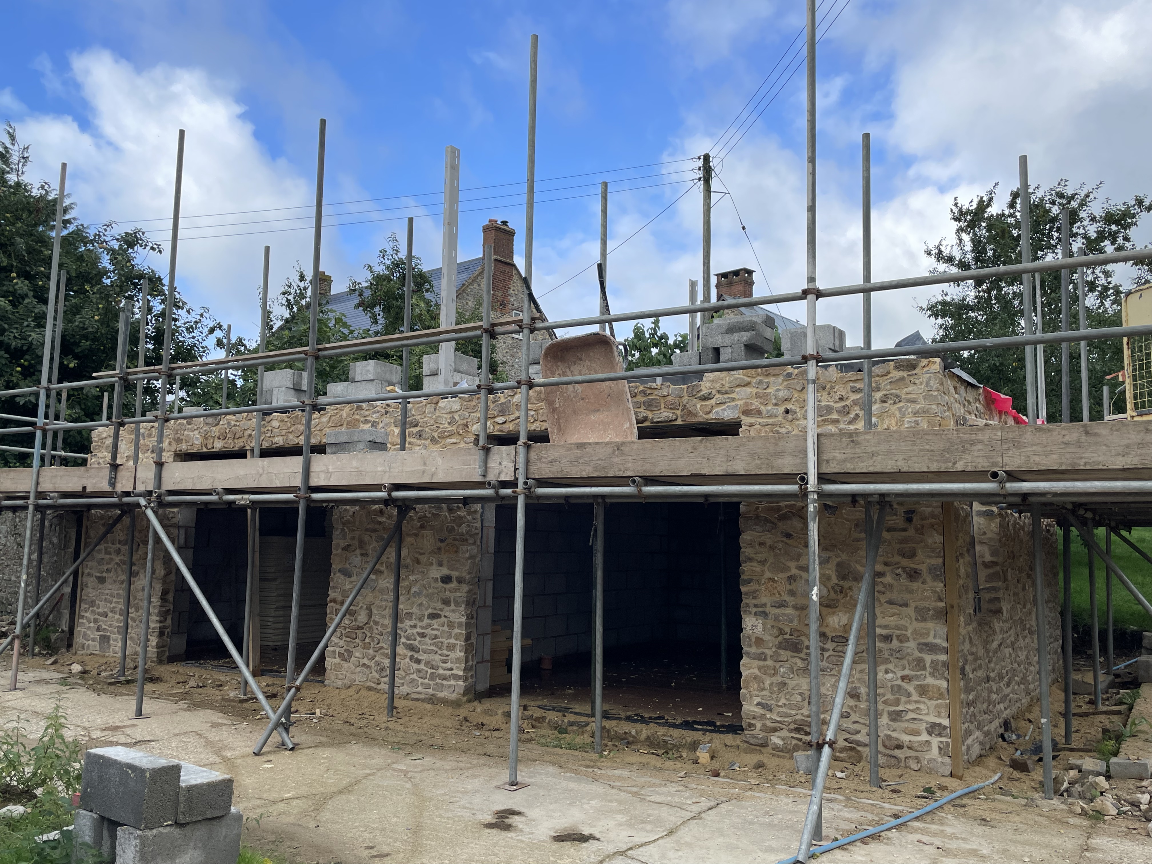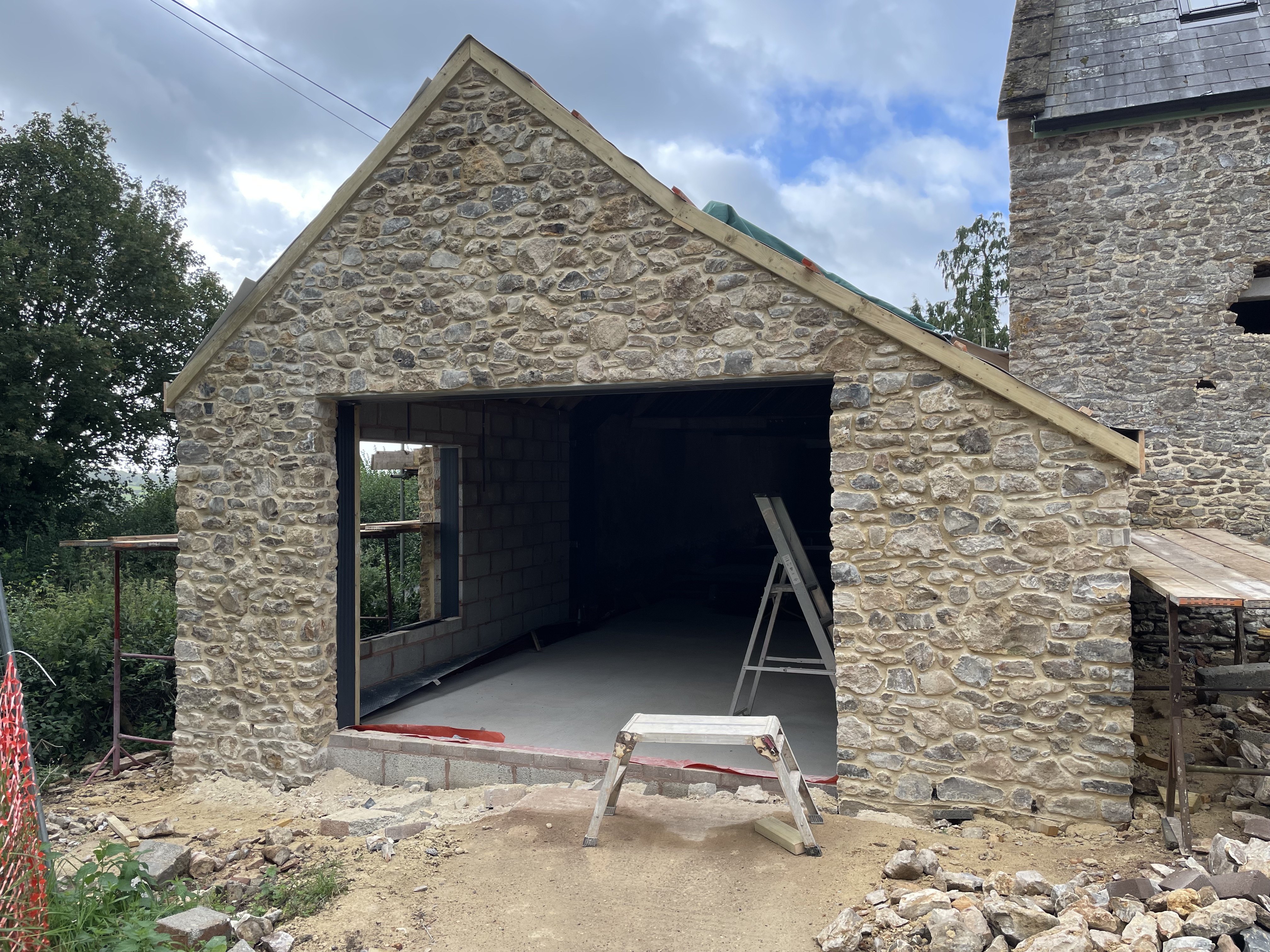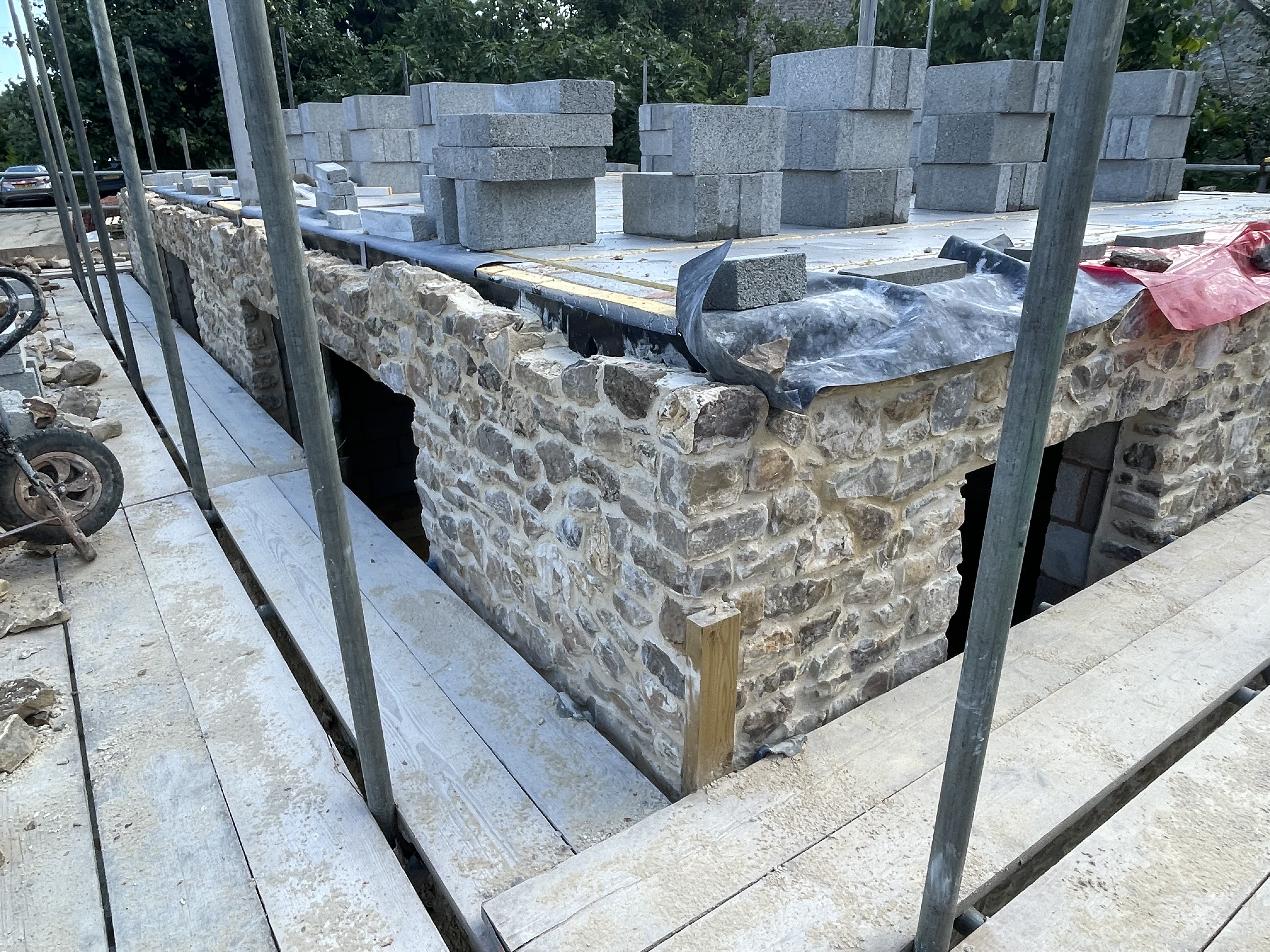 Towards the end of the week the stonemasons reverted back to our garage / communal area building – it’s taking time to build up the stone walls but you can see a marked difference each day, and it genuinely looks so amazing. We had toyed with the idea of rendering this building at one point – it’s much cheaper and quicker – but we decided to stick with stone for the environment it created, and we’re so glad we did, as the building now looks so much better than we even imagined.