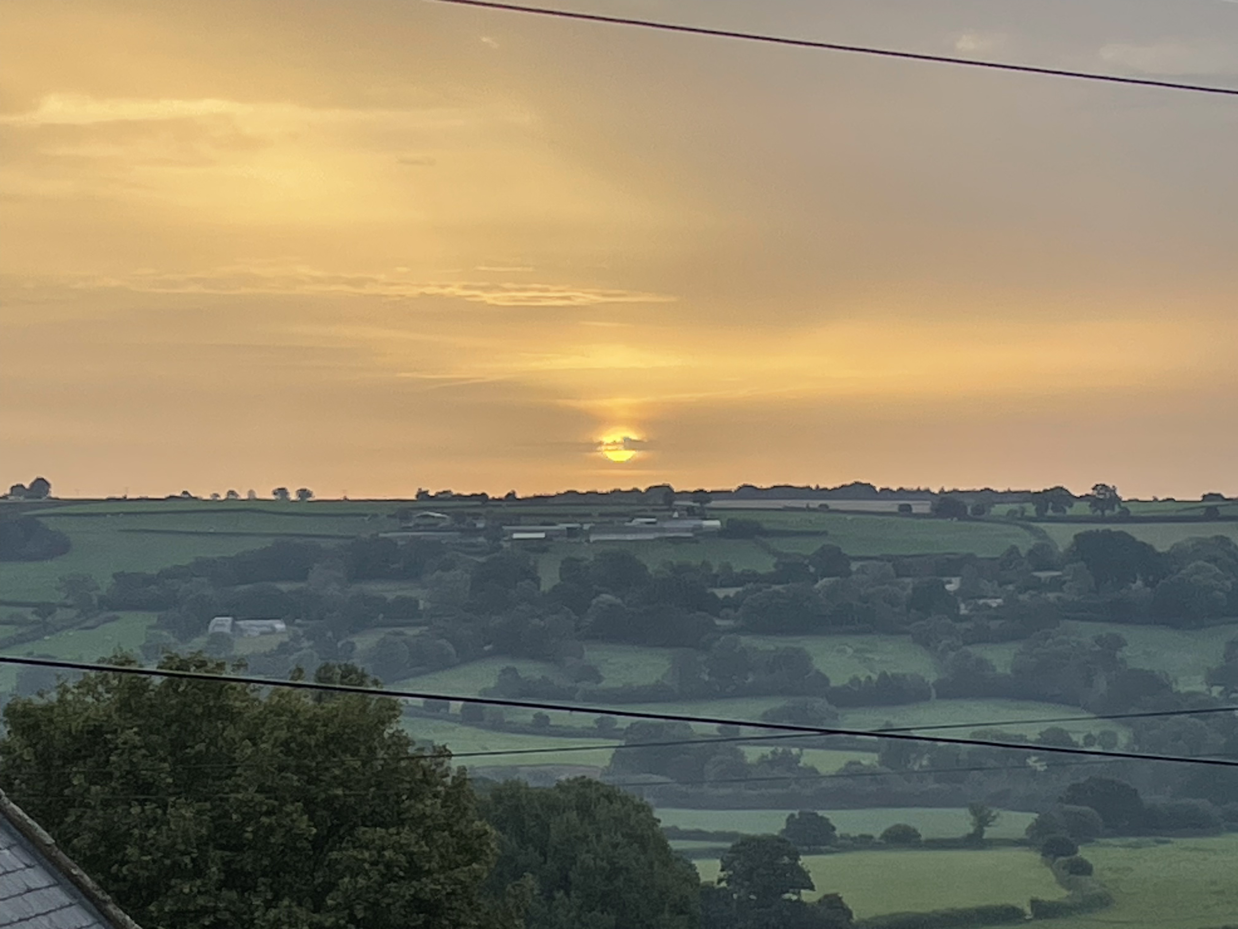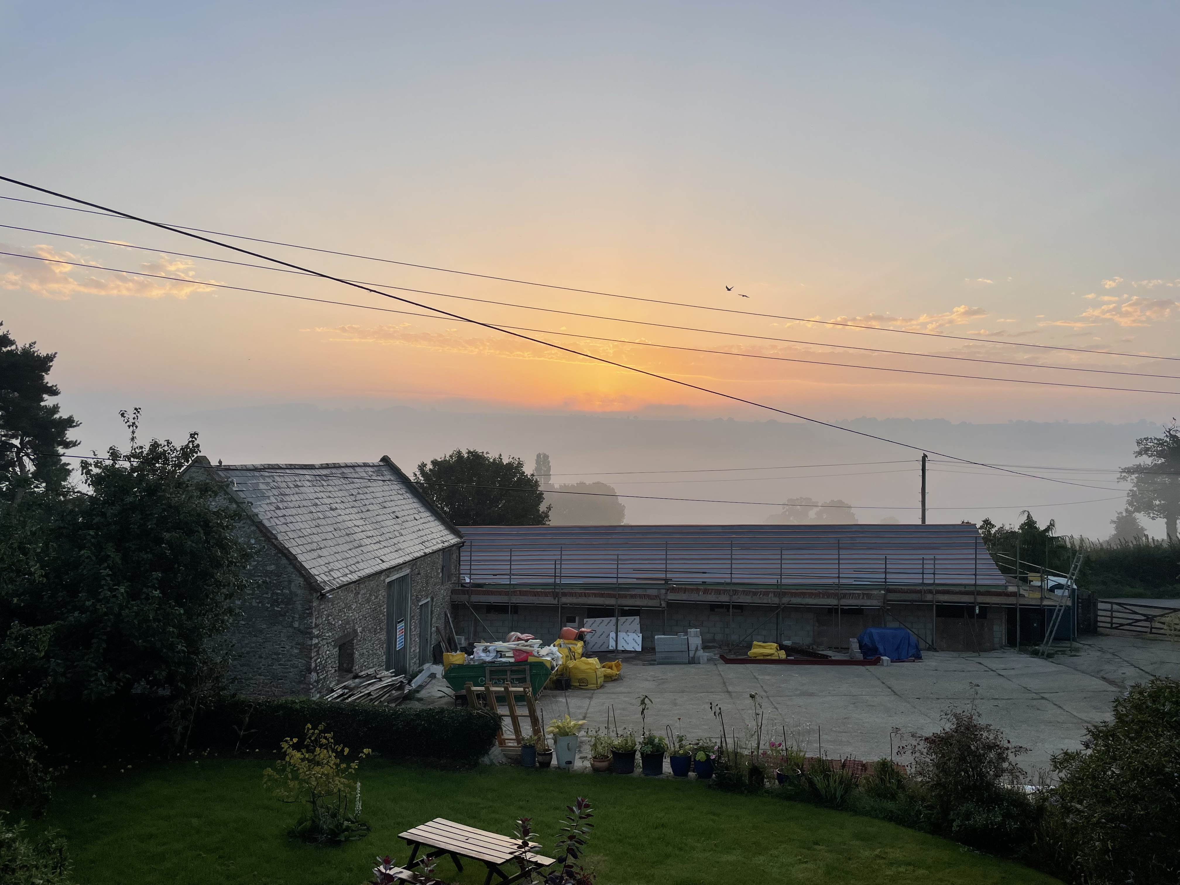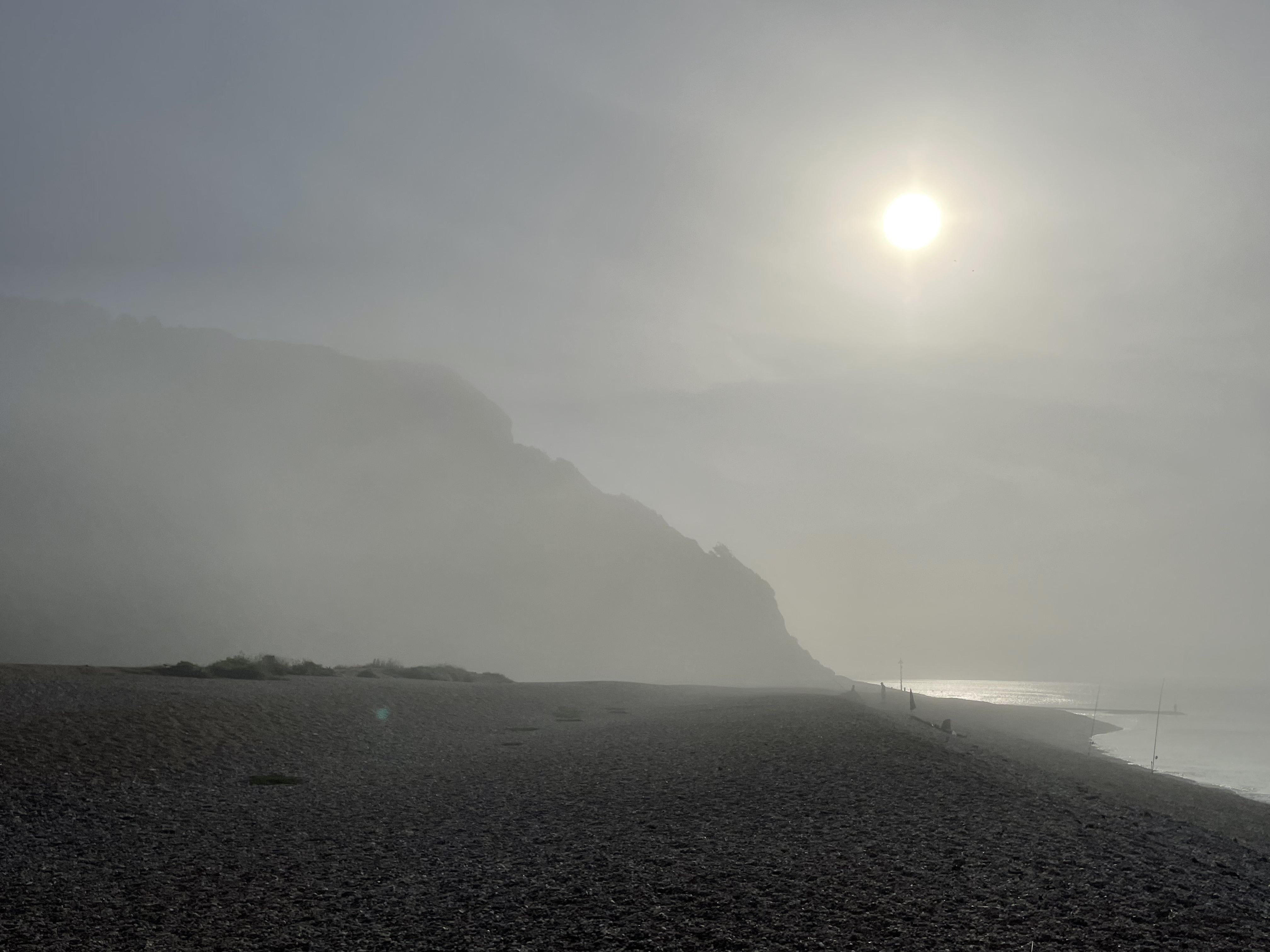 The hot weather means we’ve been having some spectacular sunrises. On Saturday, we were up early to head down to the Seaton Park Run on the coast, and despite it being very misty and damp in our valley, as we drove out of the valley towards Seaton we suddenly broke out of the mist into bright sunshine and blue skies. It’s amazing how much the weather differs throughout the Blackdown Hills – it’s almost got its own weather climate. Seaton was similarly misty and mysterious, and only started to clear as we left for home.