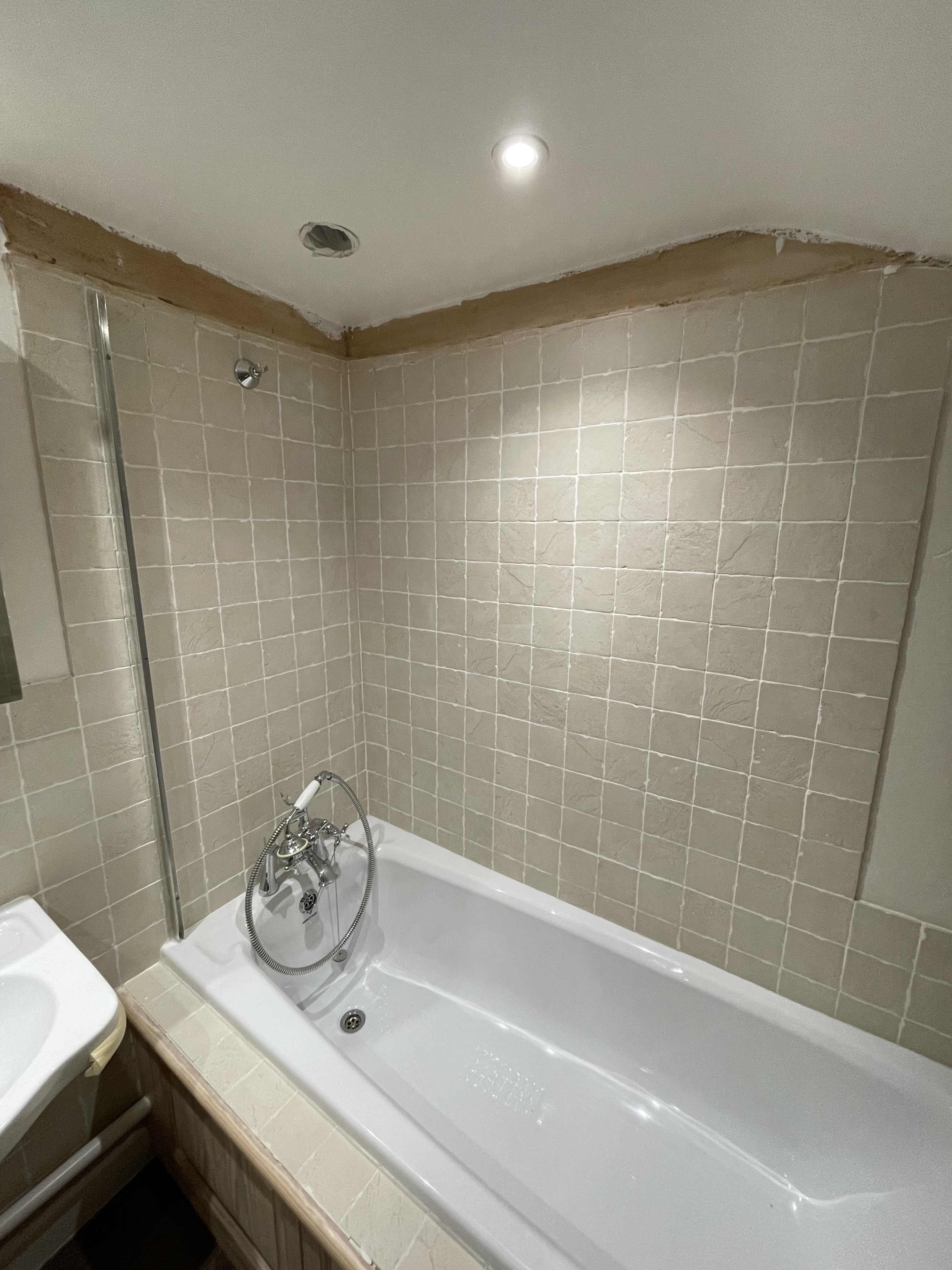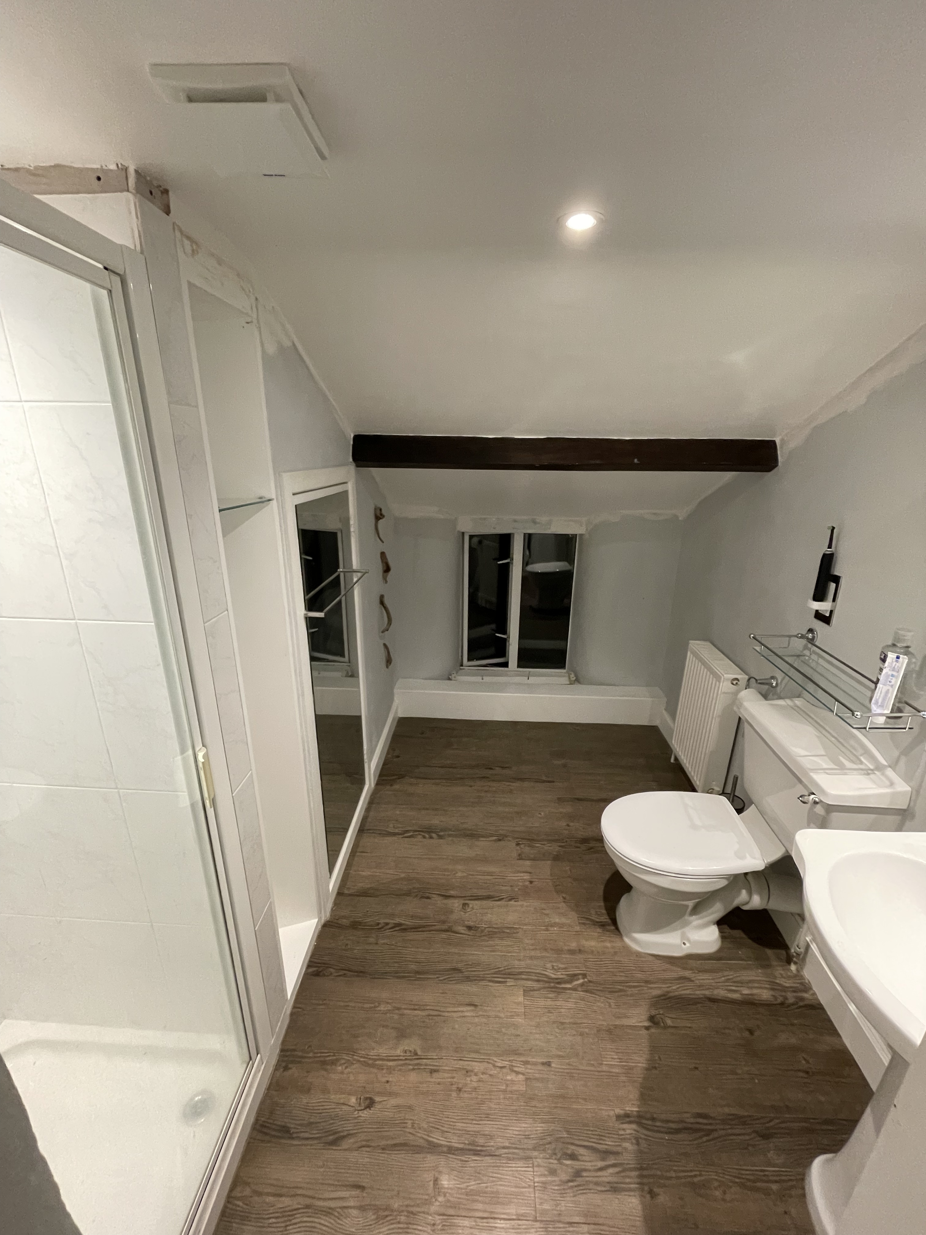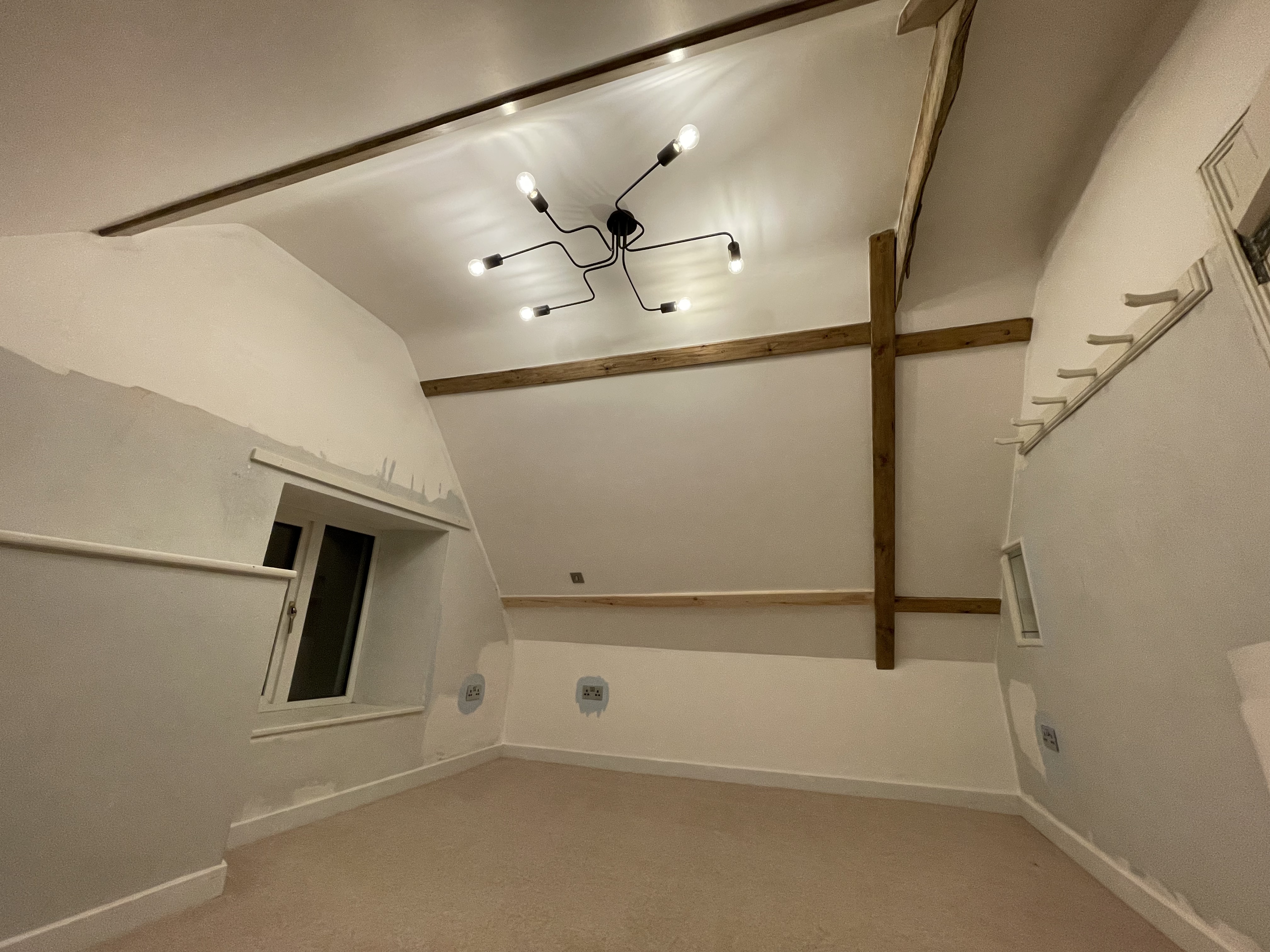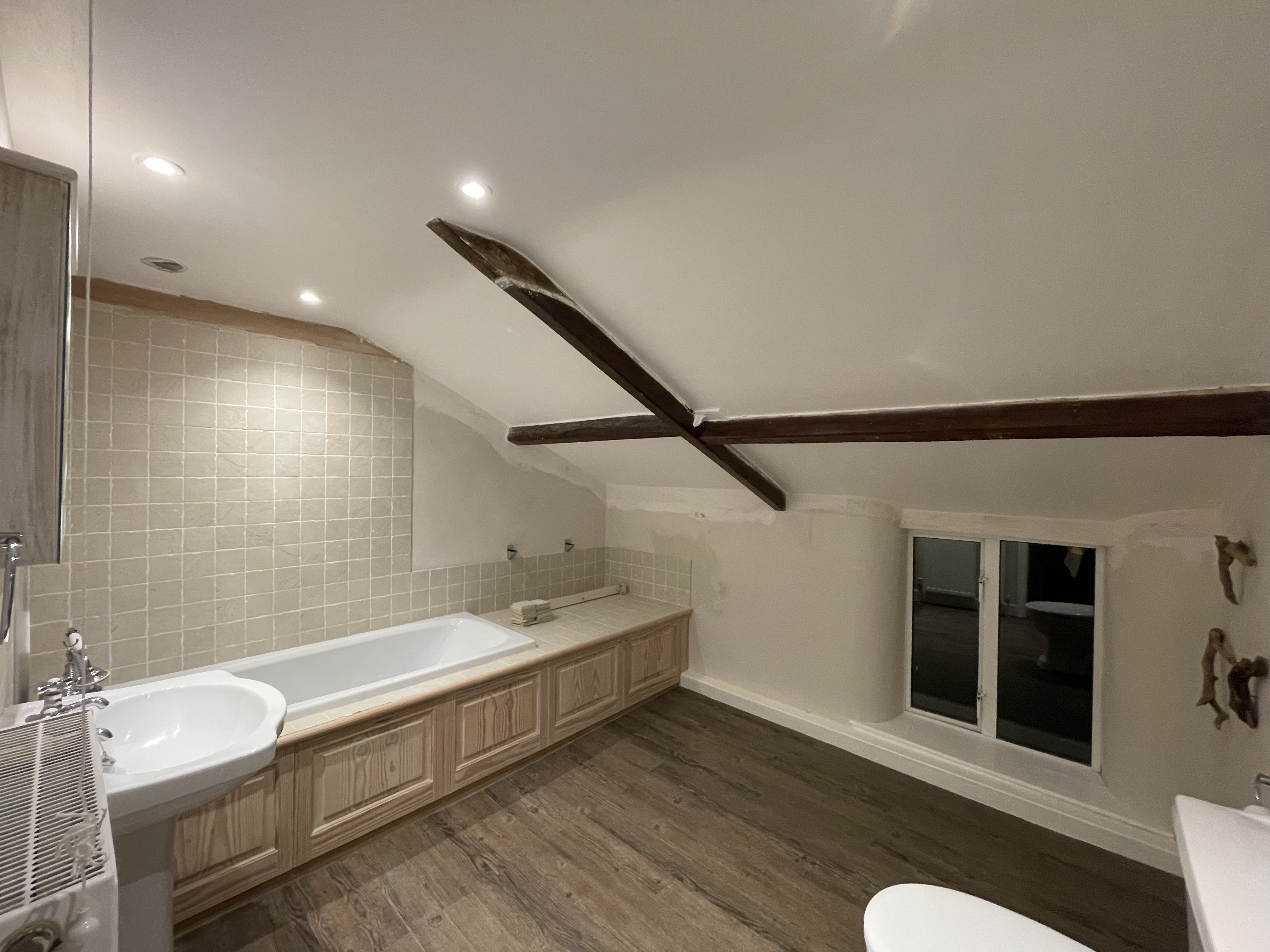 The carpet fitter replaced the carpets in the two bedrooms on Wednesday, as well as new vinyl in the top floor shower room. And – after we broke our hoover by hoovering up plaster dust – our site manager spent a day clearing all the protective sheets and mess left behind. It looks so much better – and it’s so nice to not be living in sheets and dust. We also managed to get a bit more painting done – the bathroom and ensuite ceilings are finished, and we’ve stained most of the beams in the bedrooms (save one that needs wooden plugs to cover the screws). In a great example of being so focused on the job in hand that you don’t see the bigger picture – once finished I noticed more beams on the landing that I’d completely missed – so we can’t tick that job off yet. Our aim is to complete the bedrooms, then the shower room, and then finally the landing, while also finishing the snagging from the bathroom and ensuite – such as tiling above the showers where the ceiling is a bit higher than it was previously, and painting over the plastering drips.