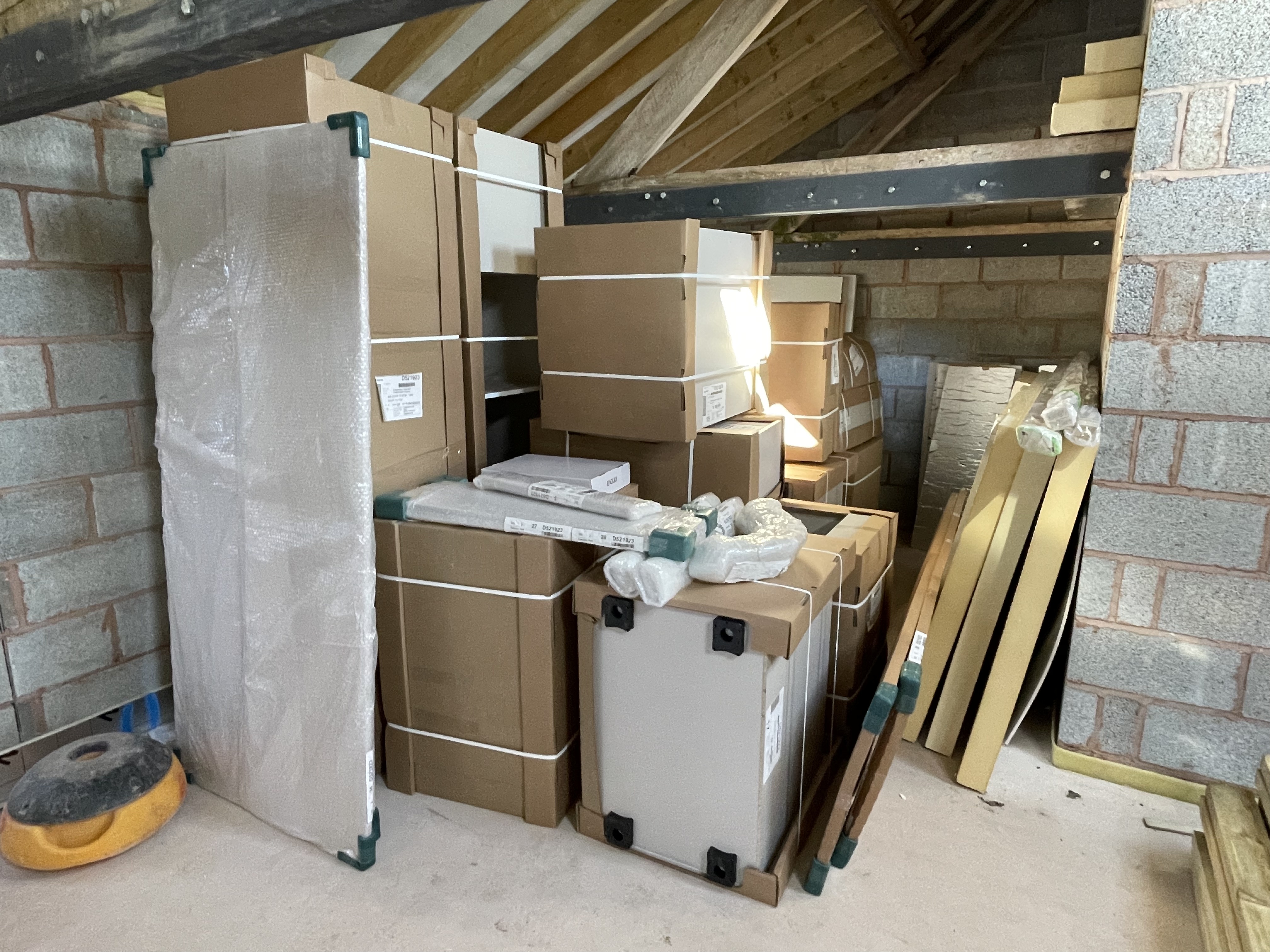 Our new kitchen arrived on Wednesday! We took possession of c.40 boxes and sorted through them on Saturday to make sure we’d received everything we were expecting (we’ve not checked the quality yet in case unpacking them results in damage before they’re installed). We only had one item for someone else – an easy mistake to make as it’s the same product just a different colour. At least we’re not planning to install anytime soon.