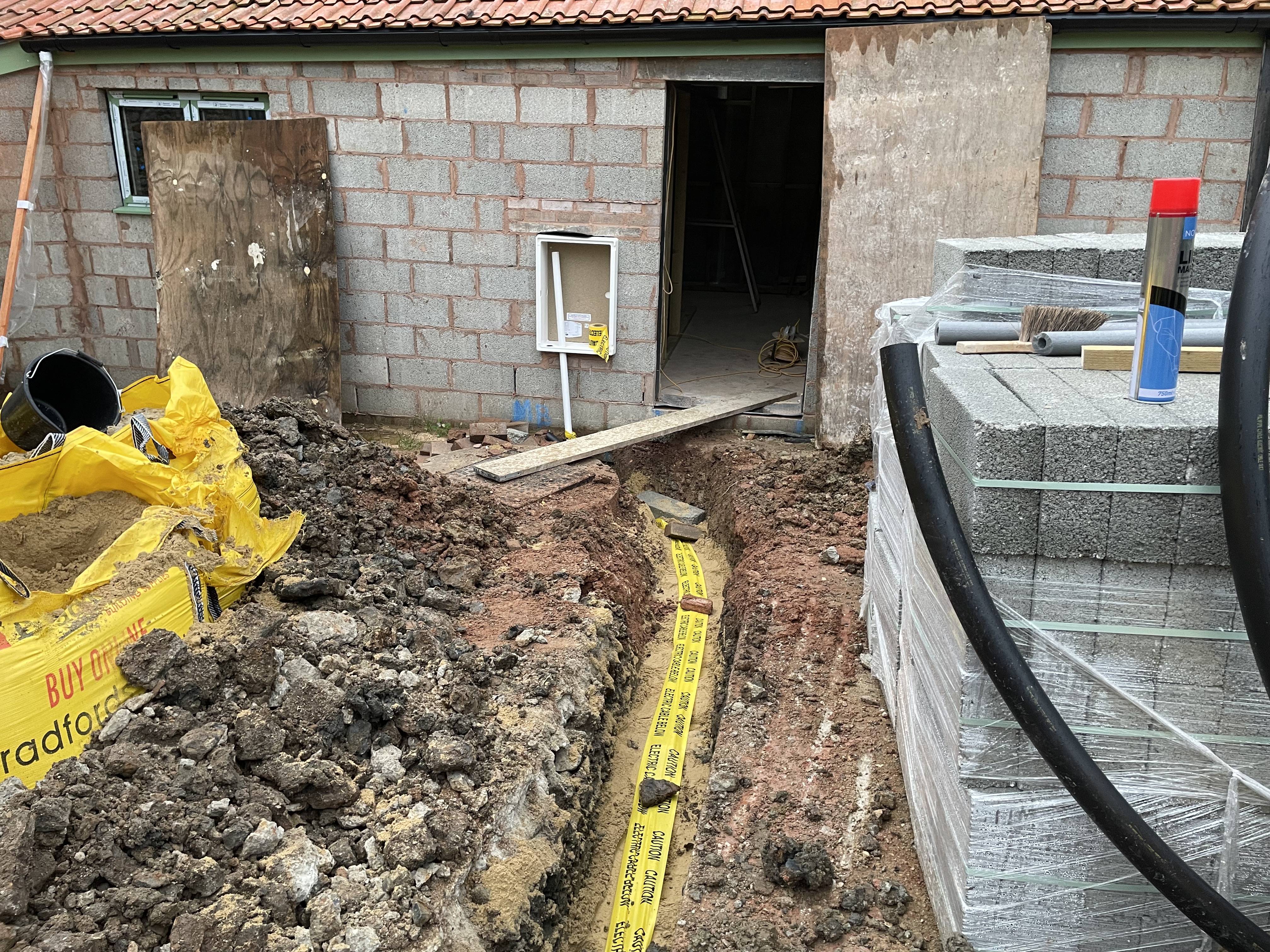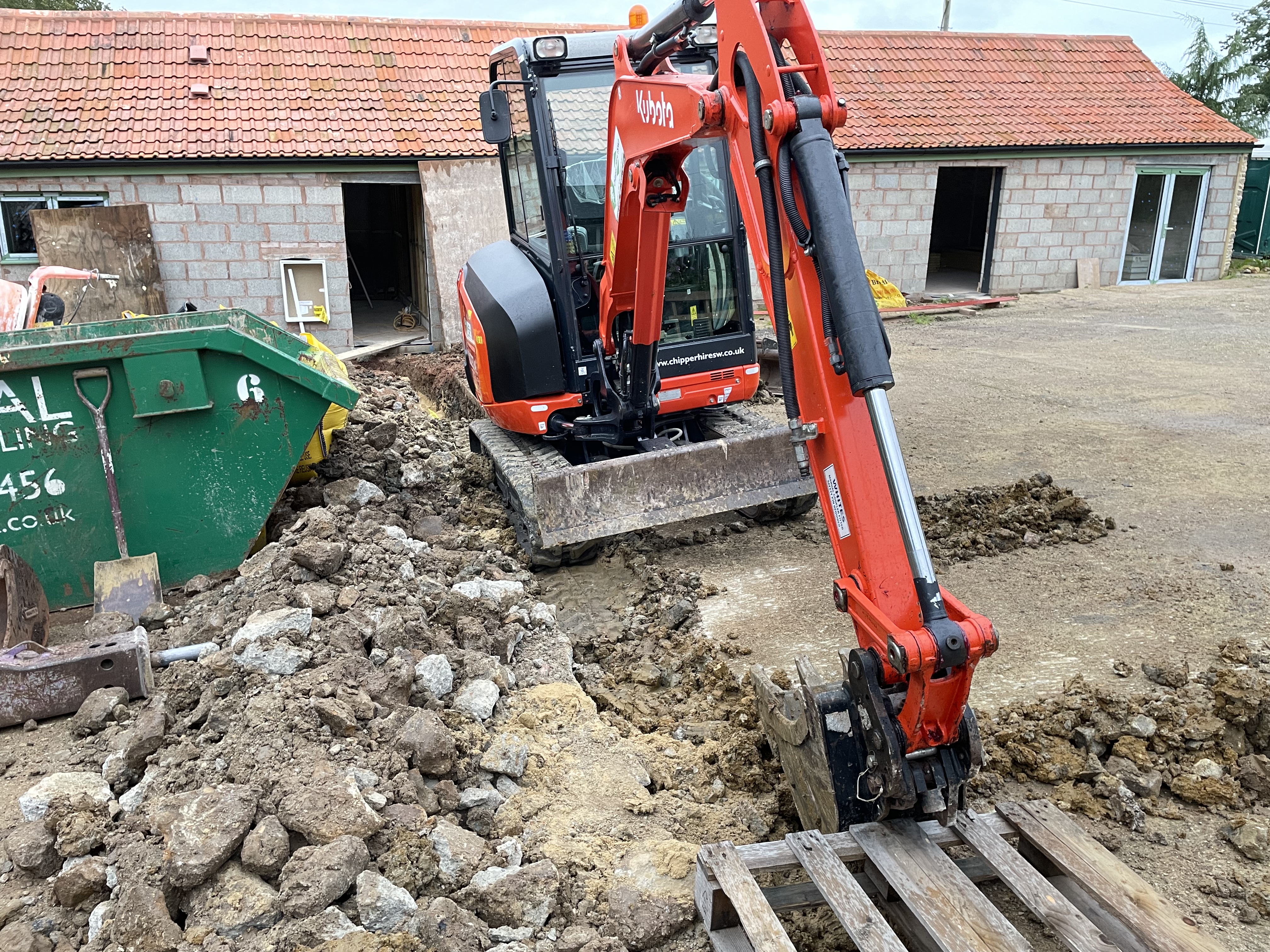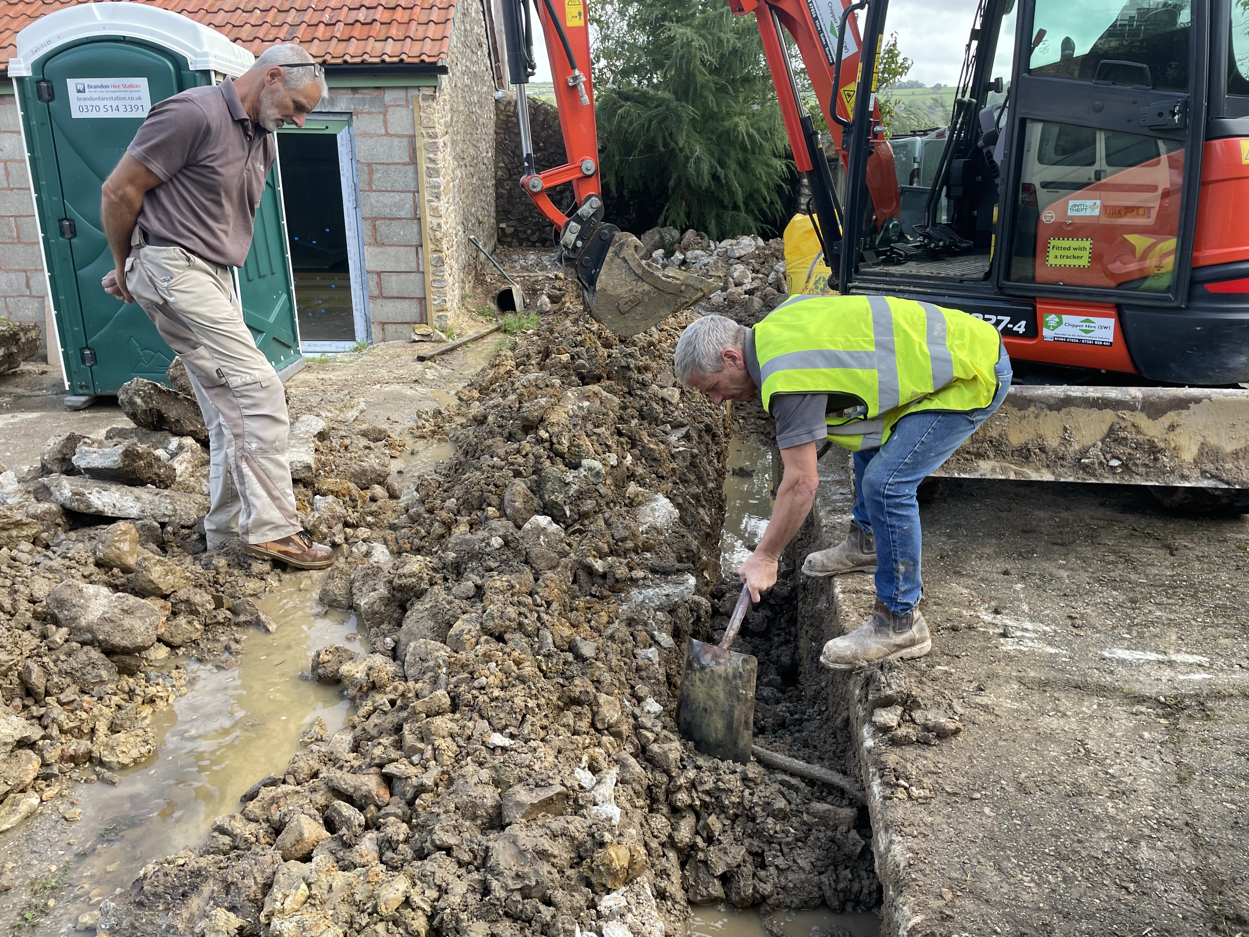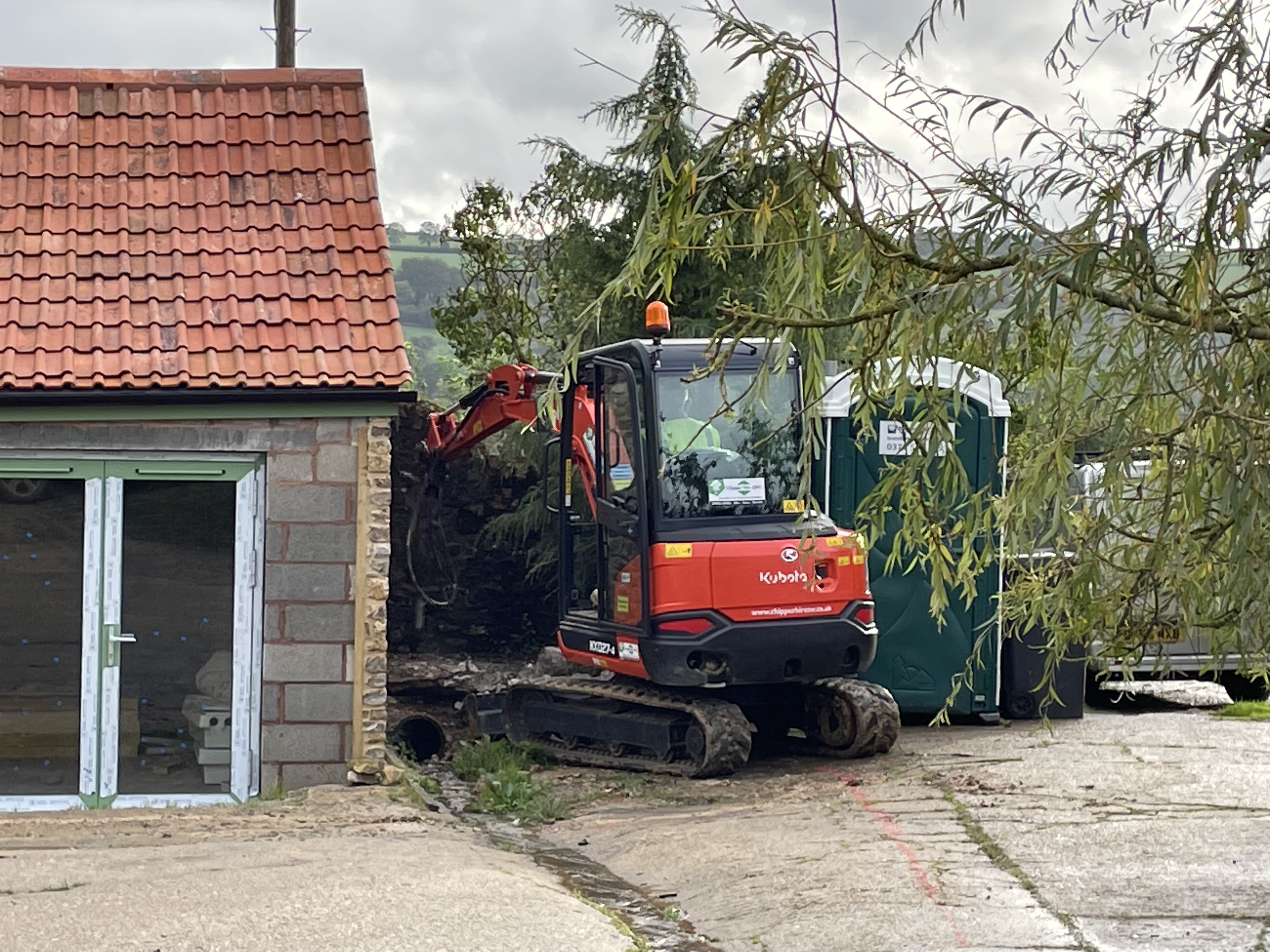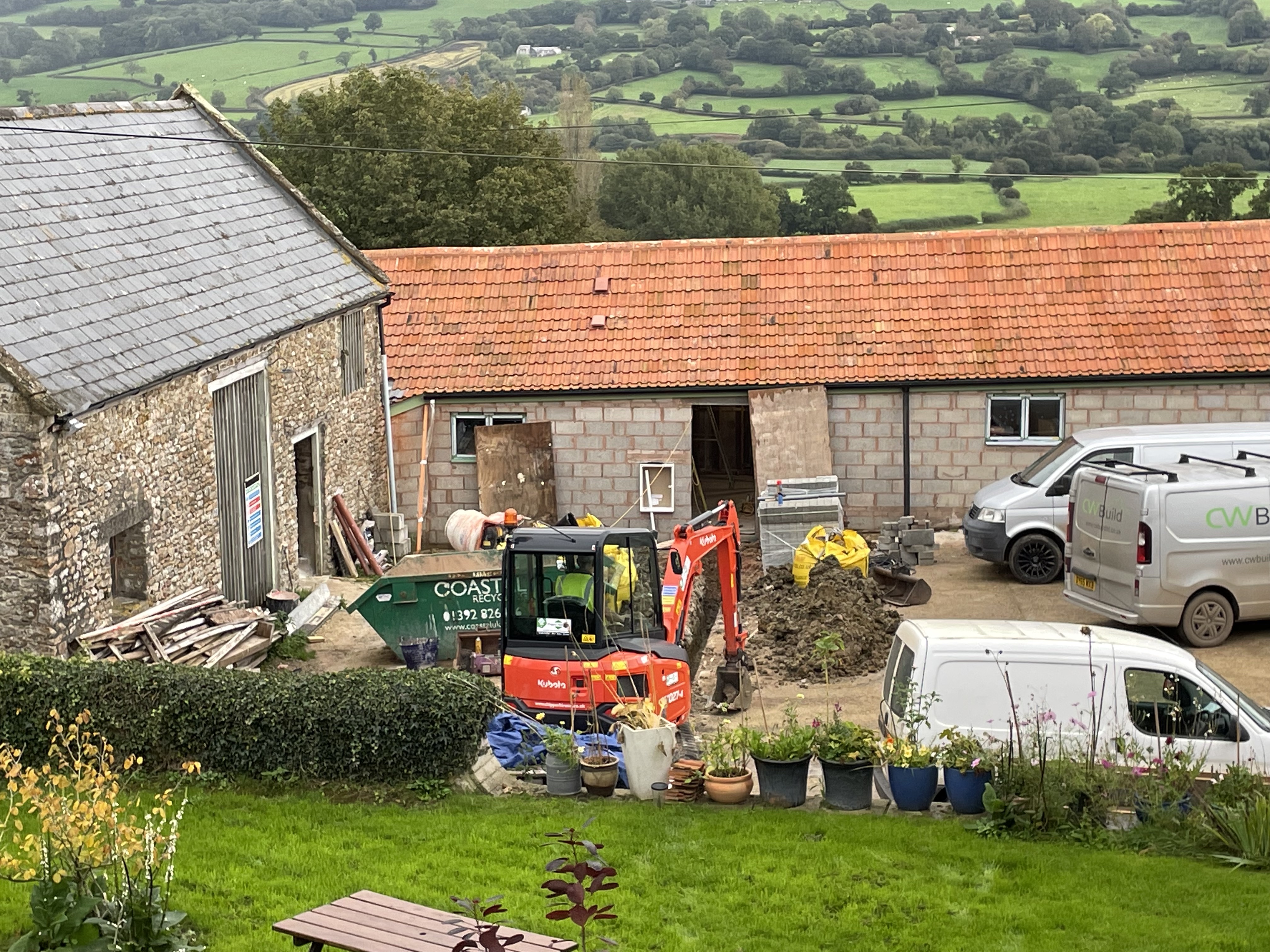 As we get closer to the National Grid connection and upgrade date, our builders have started digging up the yard to lay the ducting for the electrical supply cables to each property. It’s quite complicated to sort out the different layers throughout the yard and make sure the electrical cables and drainage are at the appropriate depths. At our site meeting this week we talked about where to position these and how the yard levels need to change to allow a secondary drainage channel to run in front of the shippon for extra storm water protection. We’re also trying to create a small sunken garden for the one-bed so visitors have some private space – John has been liaising with the Conservation Officer and Planning team to establish what we can do, and what requires more planning permission (hopefully all of the former and none of the latter!). We’re trying to keep as much of the old yard surface as possible – re-laying the whole space would cost so much and we also can’t find a suitable material that retains an agricultural feel.