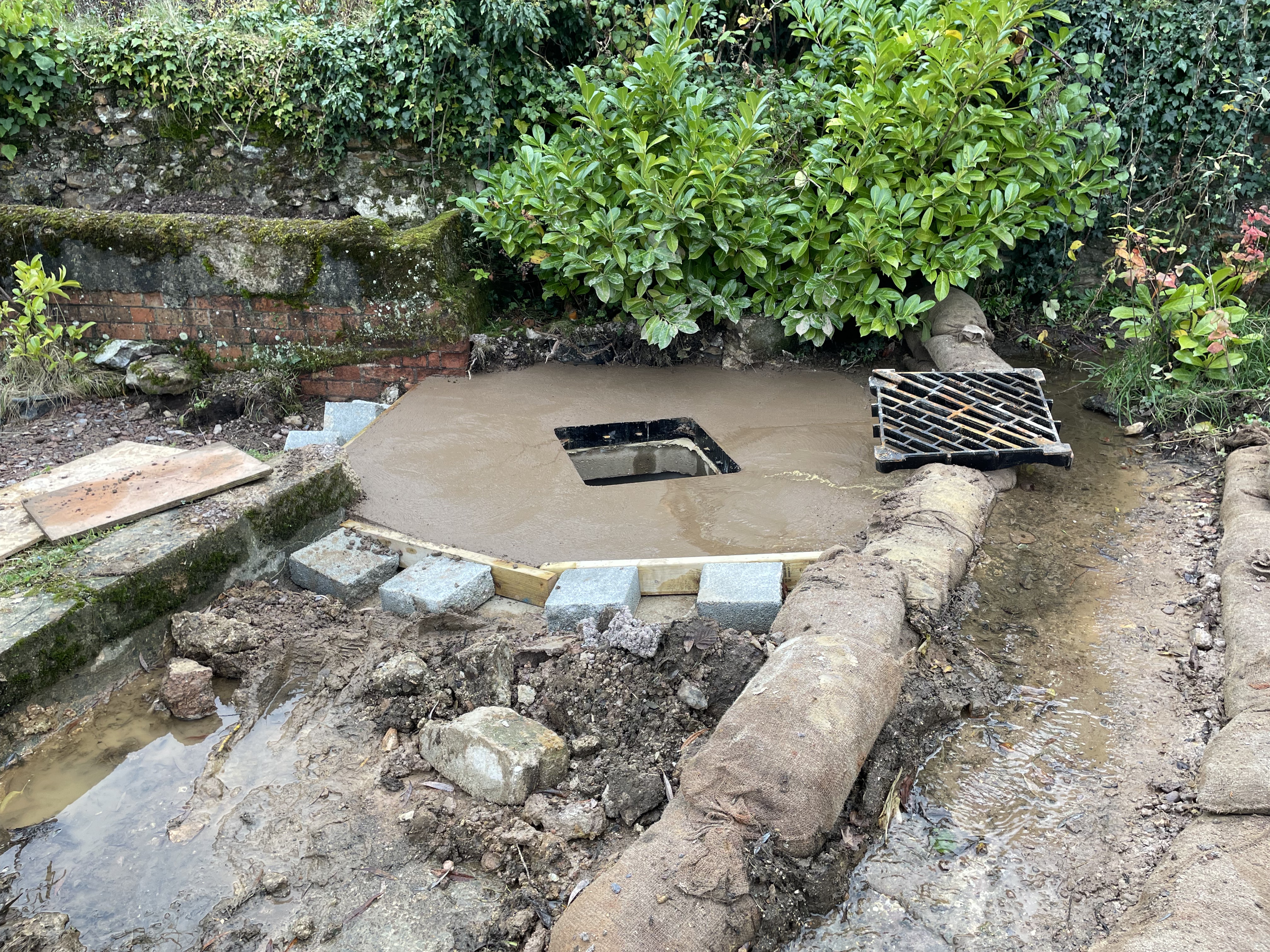 Most of the builders’ work has been groundwork again – mainly digging more drainage. Despite still discussing the lie of the land (literally), they’ve put in the new culvert drain pipe underground and covered it up, and they’ve concreted in the drain cover too. Previously we had a channel that ran down the side of the site and across the front of the gate, so it’ll be nice to have this area flat and easier for vehicle access.