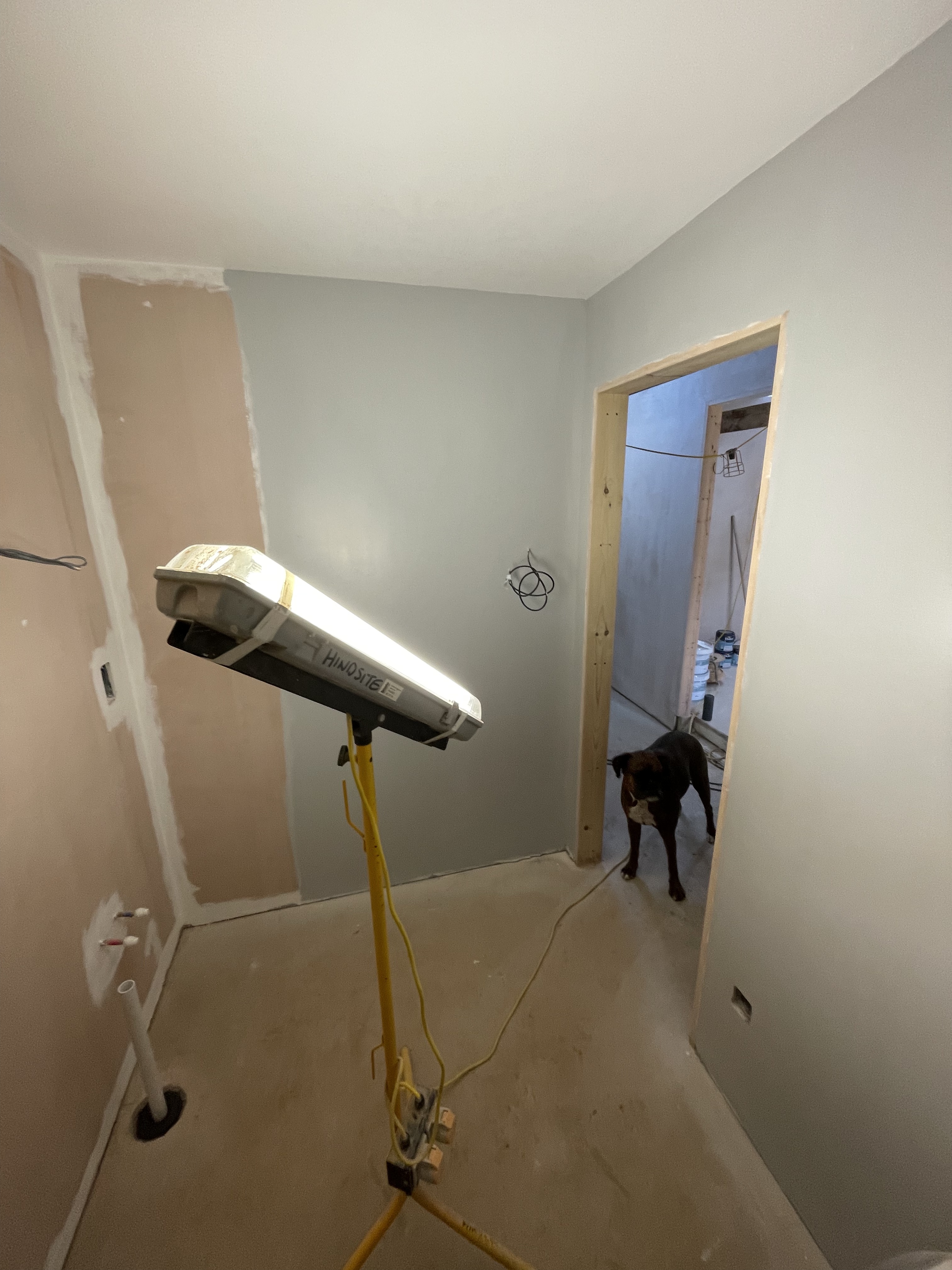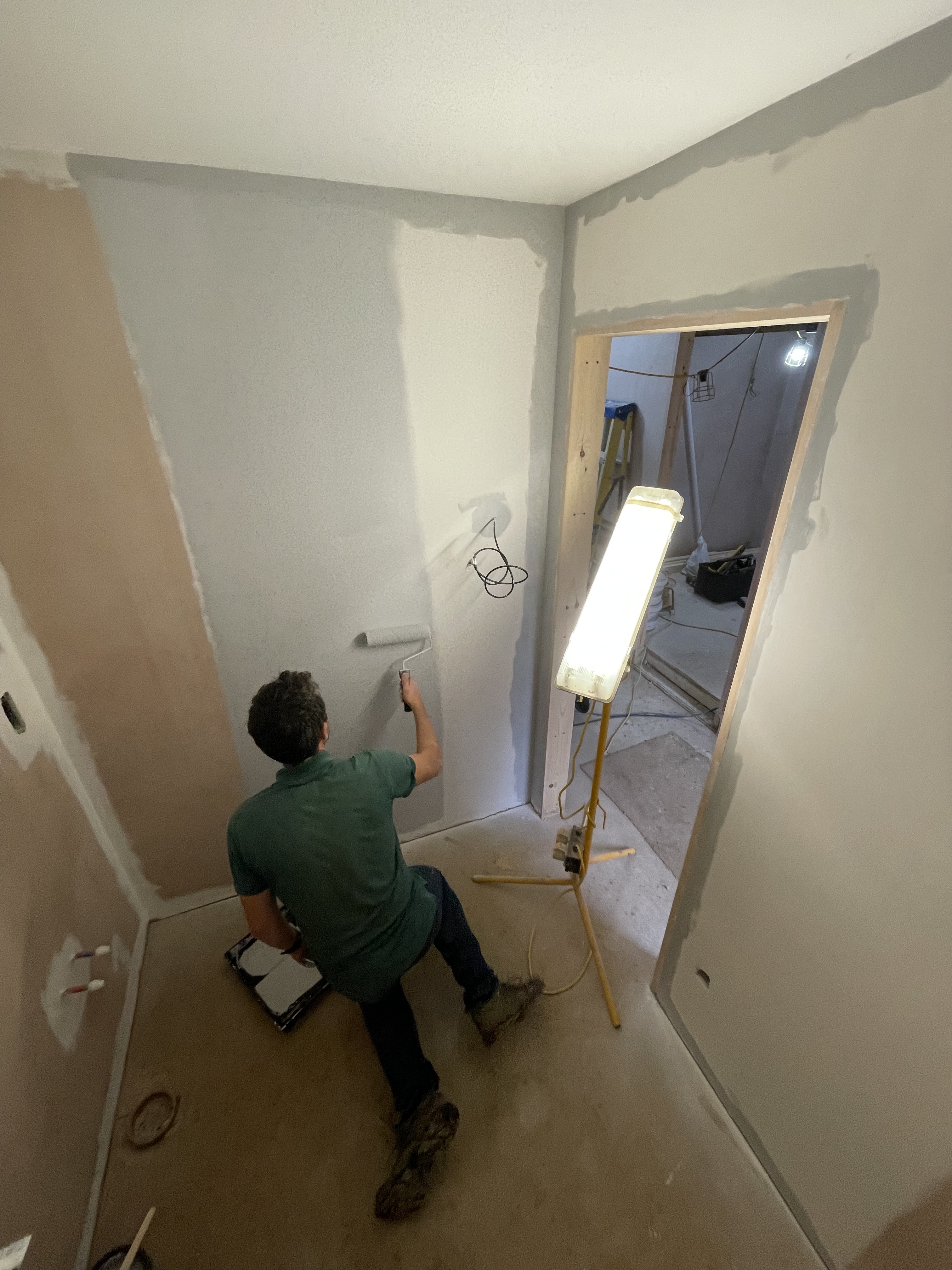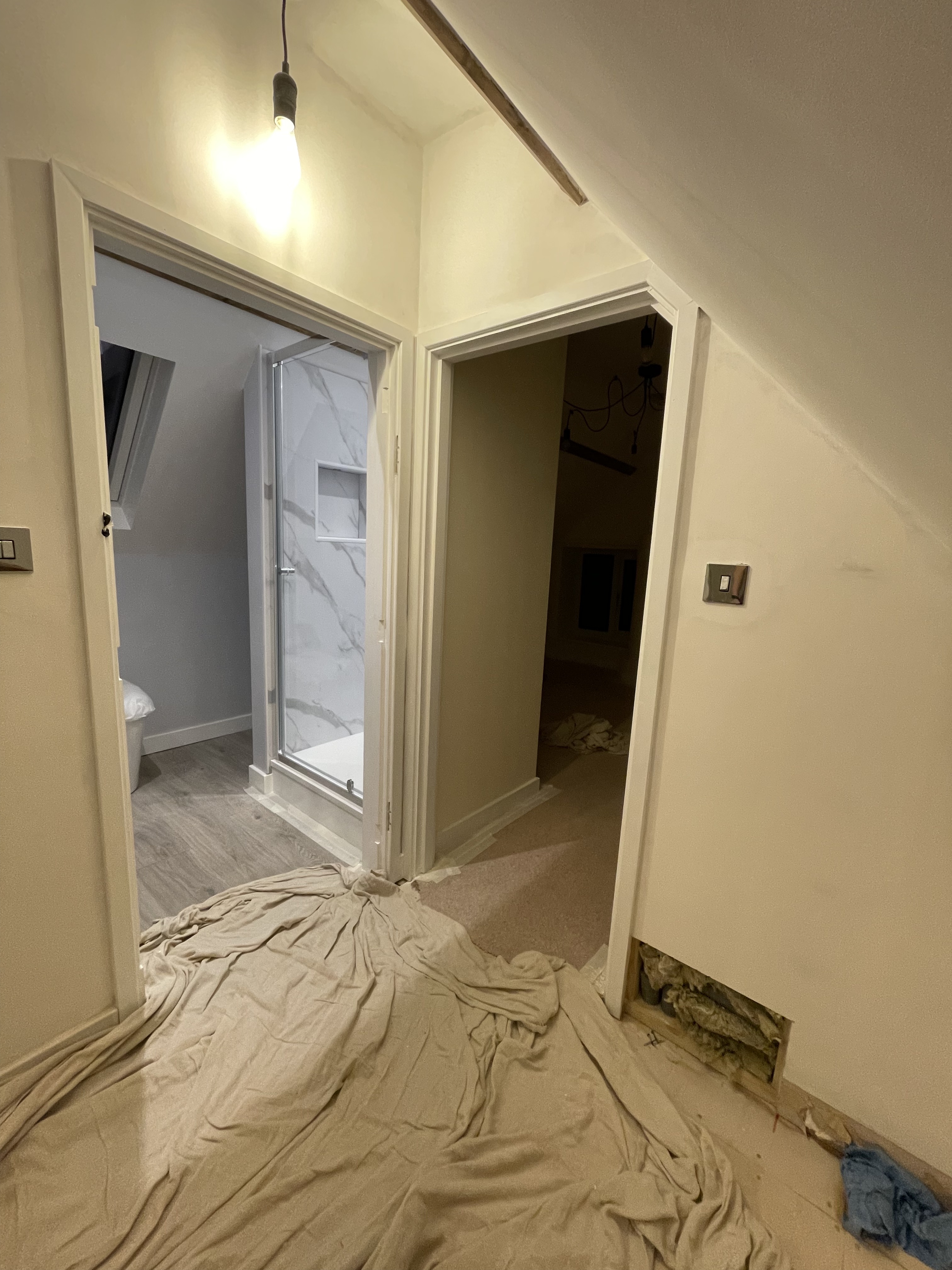With the tiler coming on Monday to do the bathroom and ensuite, this gave us a week to prime and paint both rooms. Cue a couple of mornings off during the week and our first Saturday job – luckily we only needed to do the areas that aren’t being tiled or we’d never have got it all done.