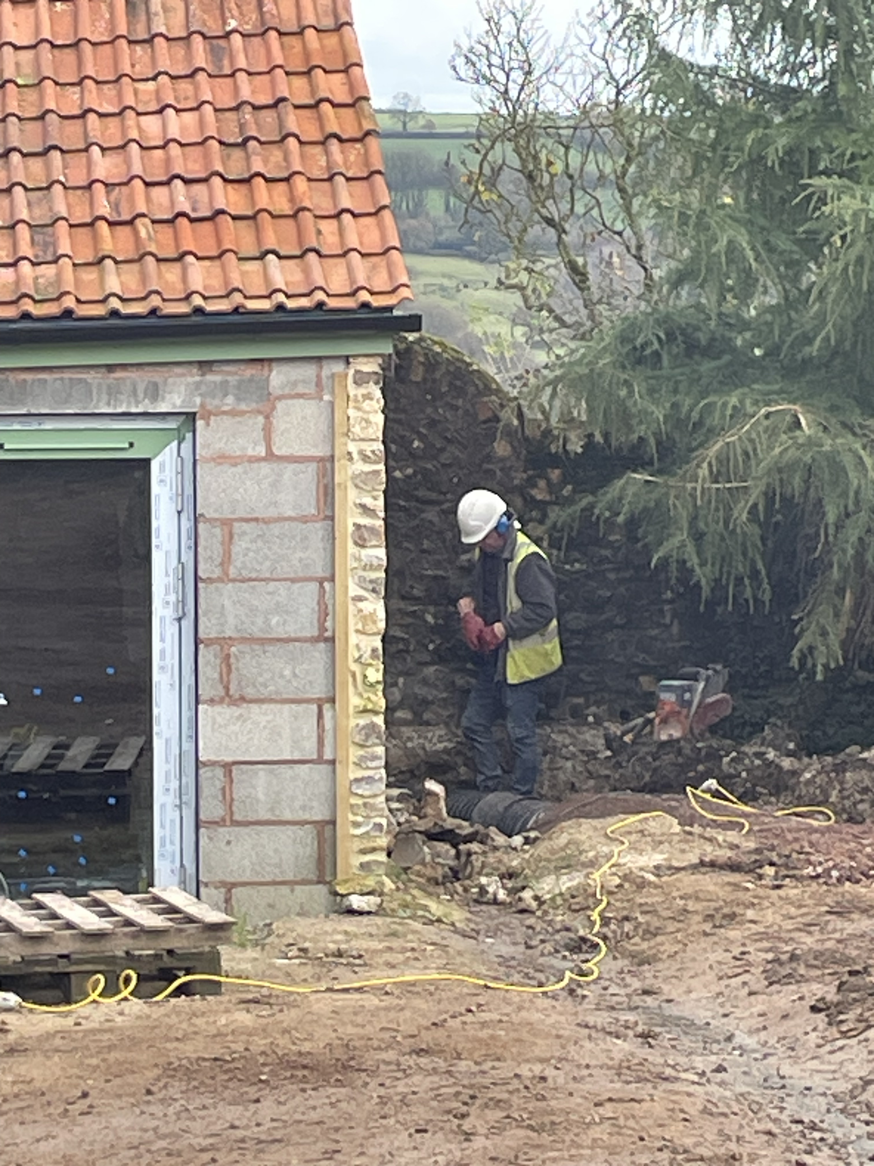 The other problem that’s come up this week is the plan for the external groundworks in the yard out the front of the properties. It feels like we’ve been talking about this for months but now we’ve got to crunch time as our builders need to start digging up the courtyard to finish putting the drains in. There’s a risk that in periods of heavy rain (especially downpours) that the rainwater coming down from the hill and around the side of our farmhouse is too much for the main culvert drain, so instead of flowing down between the gate and the shippon, it comes down into the courtyard and towards the properties. The difficulty is that the courtyard is already fairly sloping, so the preferable option of creating a downward slope in front of the properties and having a gulley in the middle of the courtyard would mean a much more dramatic slope on the courtyard coming down from the farmhouse. Not ideal given that’s where the parking is going to be. Our architect has gone away to draw up some cross-sections so it’s going to be interesting to see what they come back looking like.