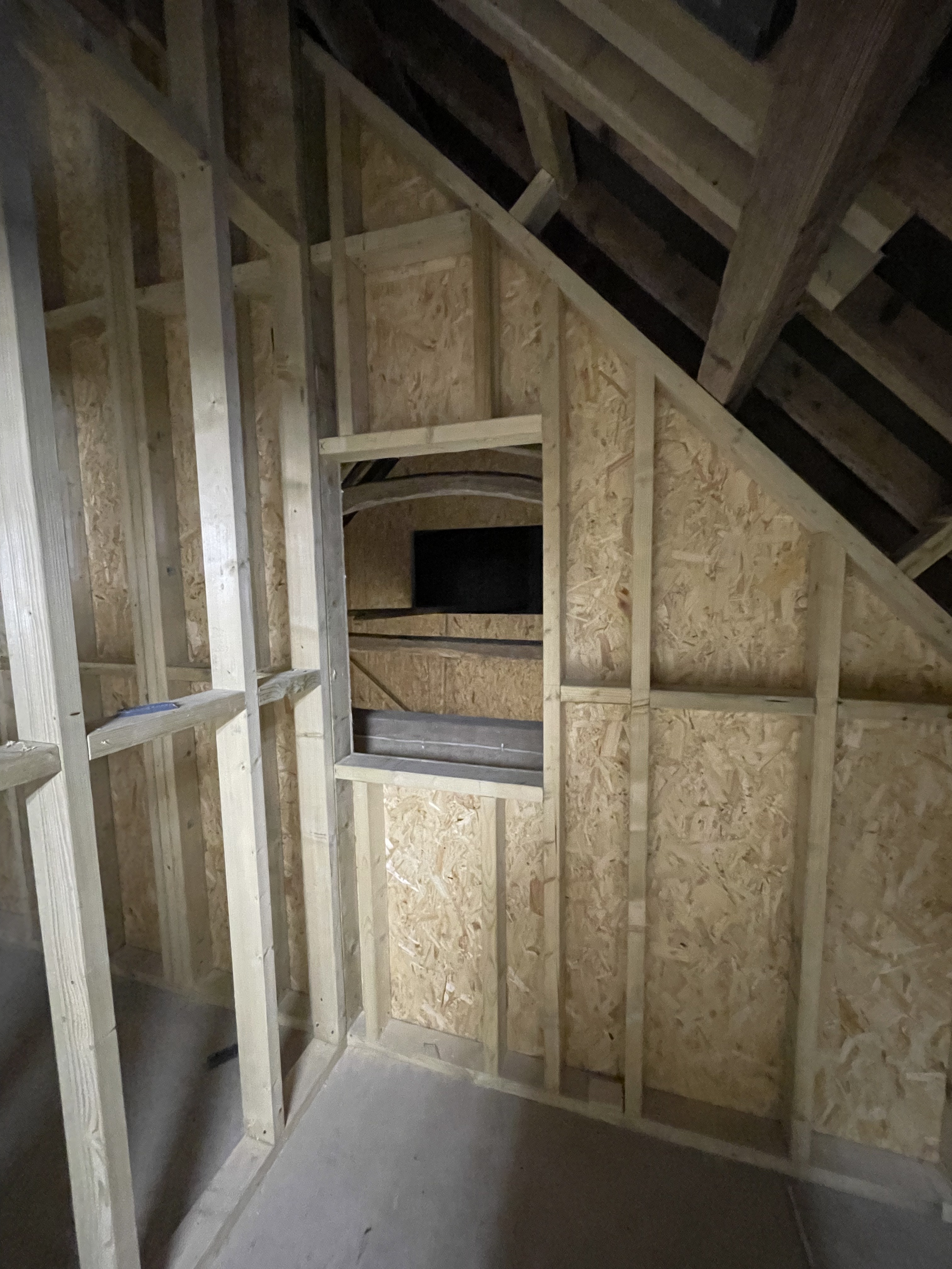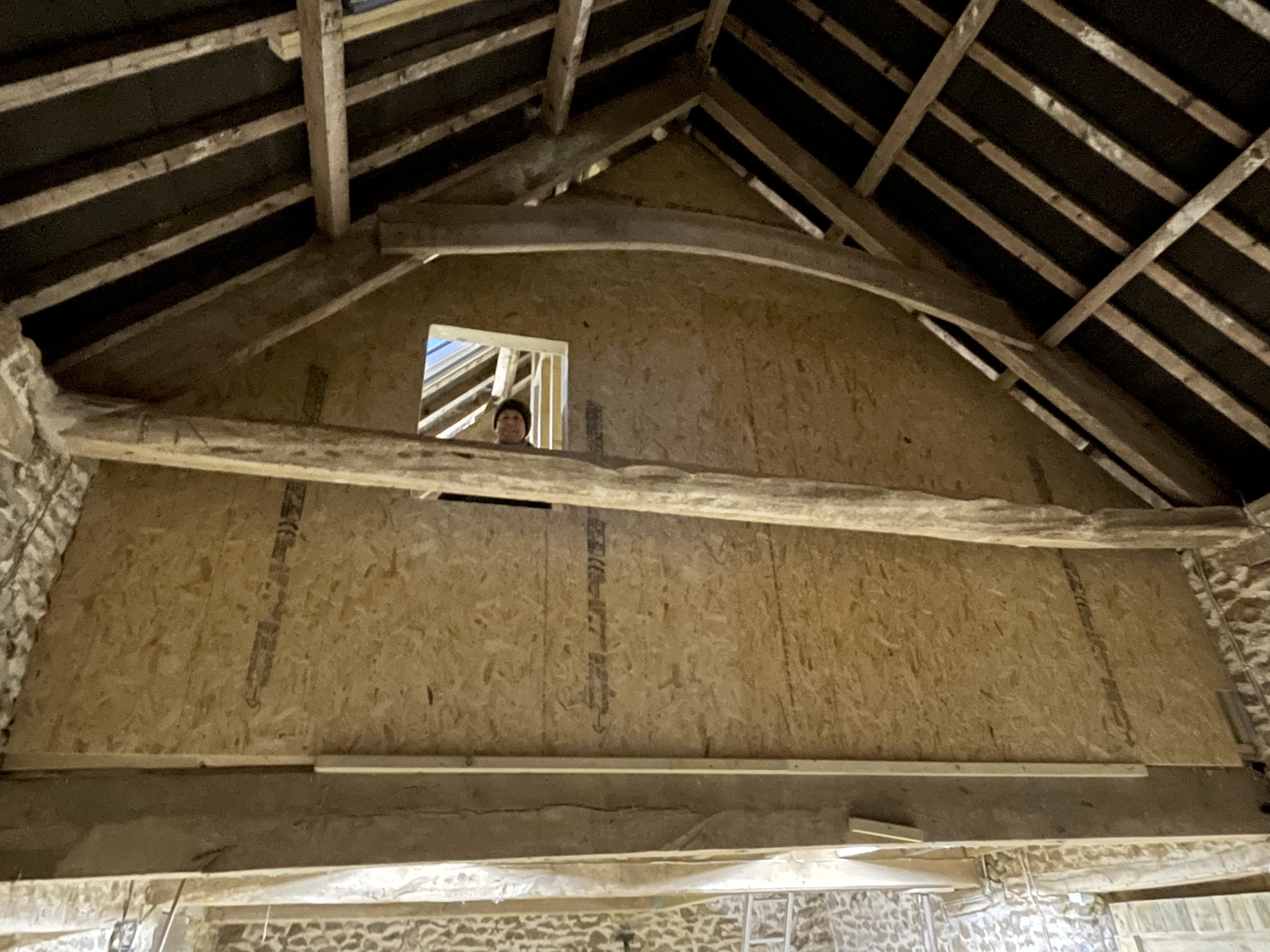 In the barn they’ve started boarding out the top floor walls on the east side on the pre-existing hay loft (they did the west side a while ago). We weren’t expecting them to do so much in this barn yet as we thought most of it would be a later phase, so it’s very exciting to see it progressing and see the rooms taking shape!