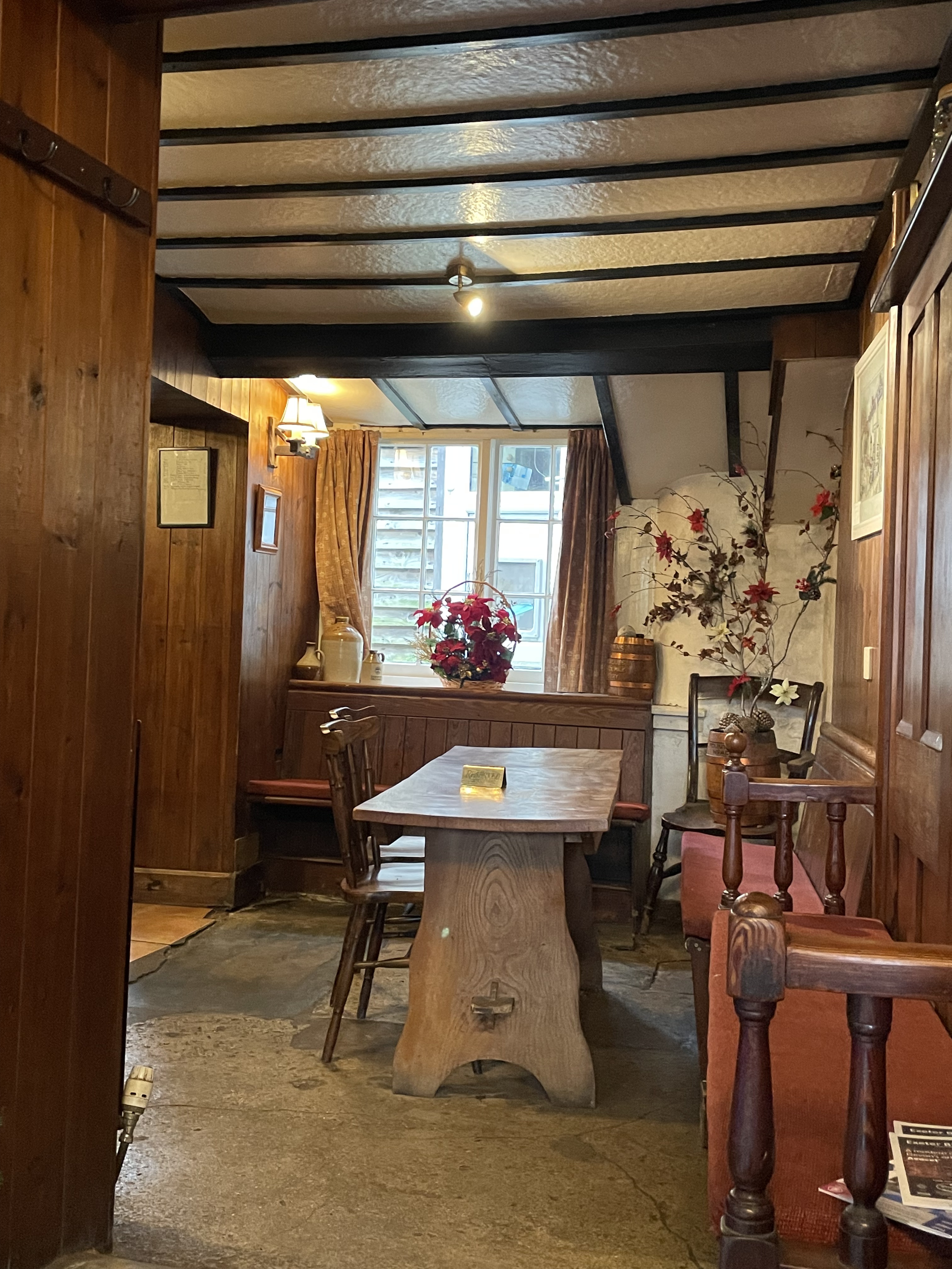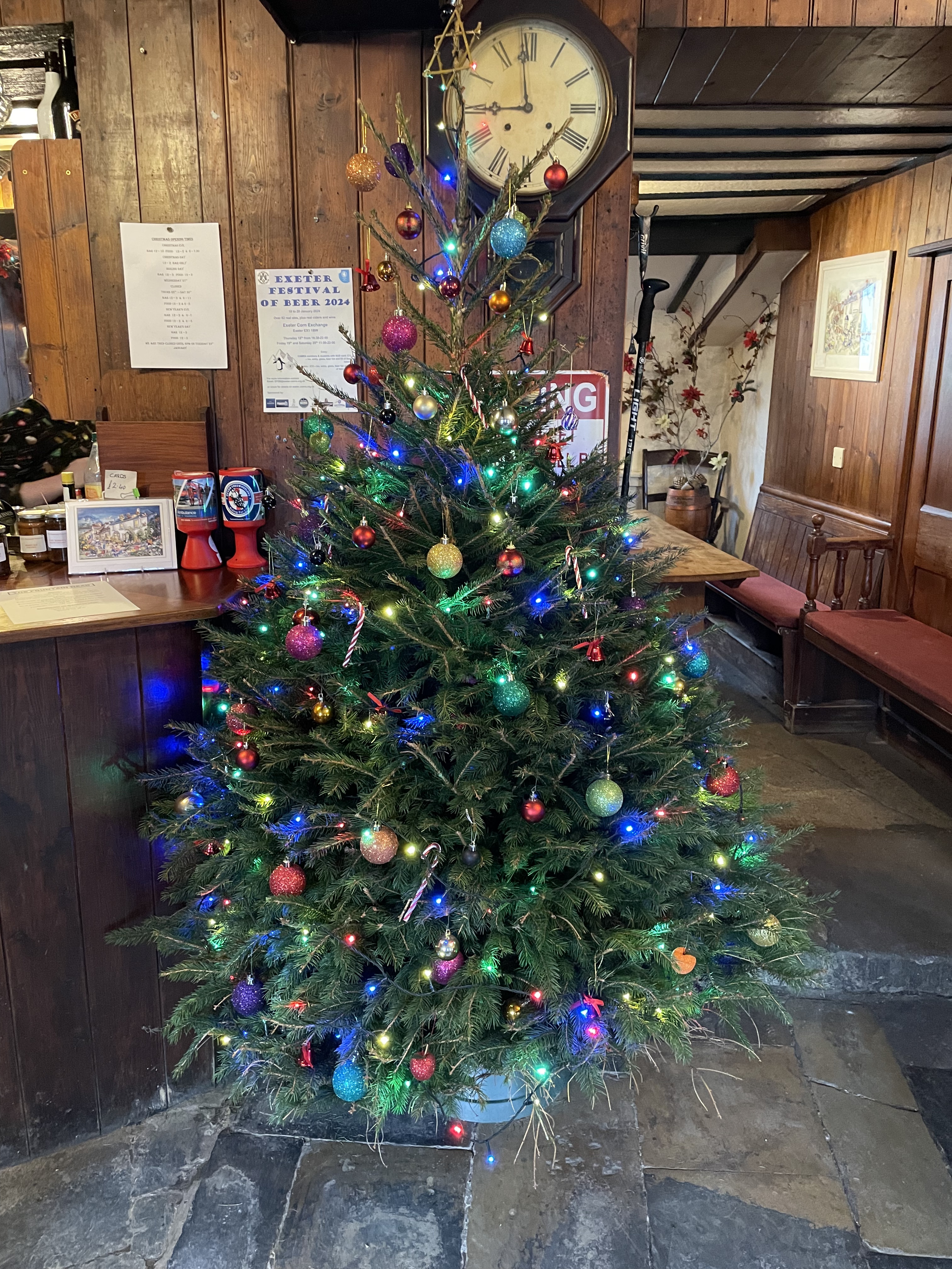 We took the opportunity of having guests to have a break from DIY and explore somewhere new on Christmas Eve. It’s far too easy to spend time working on the house or in the garden, or generally doing other chores, so it’s nice to have an excuse to go out. We drove down to Branscombe, which is a pretty little village in a valley and close to the coast. We’ve previously walked out to the coast and along to Beer (the next village to the east), but this time we mainly stayed inland, and walked up to the top of the valley to look out from the clifftop. Heading a bit further, we walked over to Street, which is really close and full of old thatched cottages with plenty of character, and a lovely old pub. It felt so Christmassy with the tree and lights, and a lovely open fire. Definitely one to head back to and to recommend to future guests.
