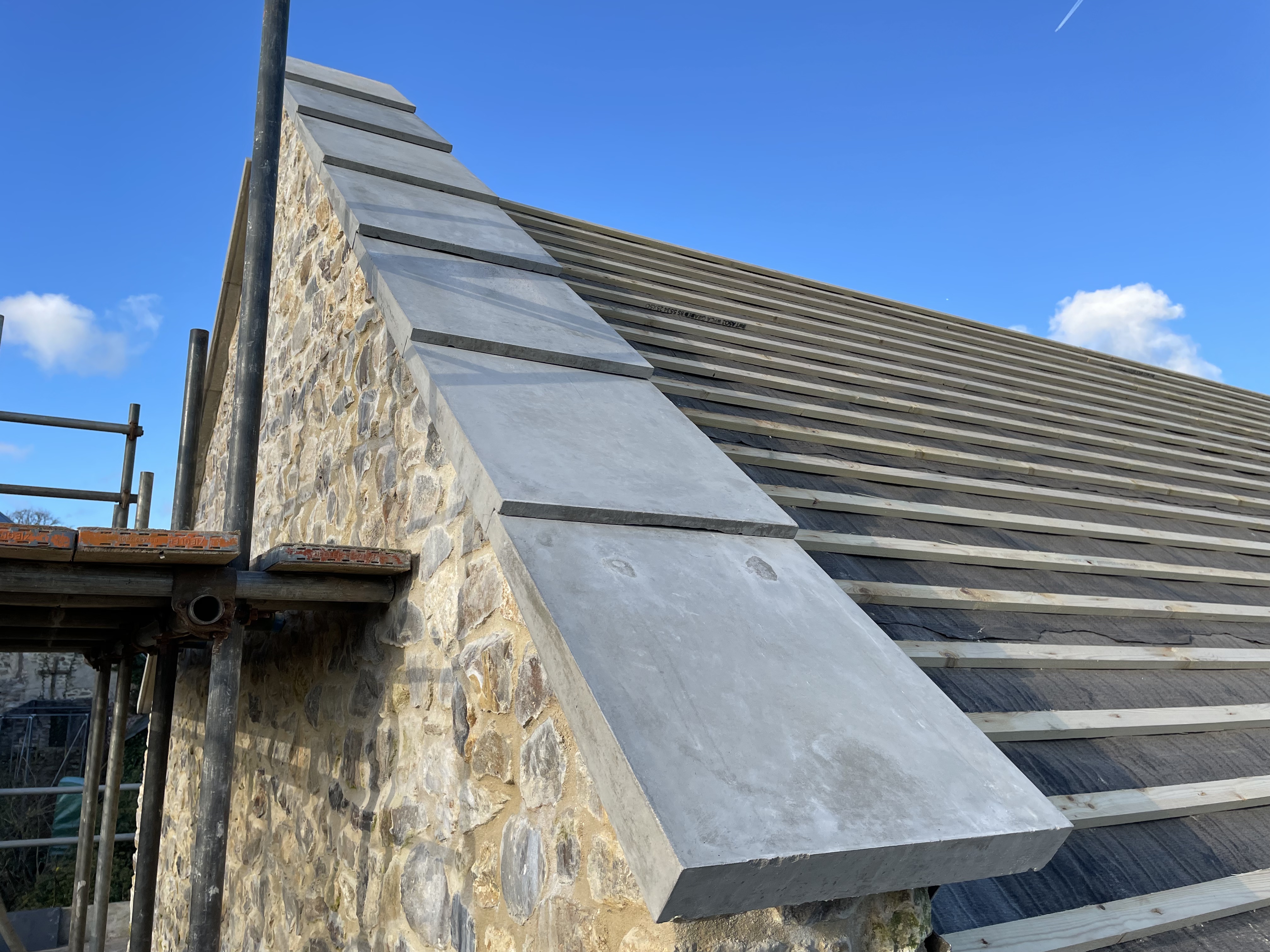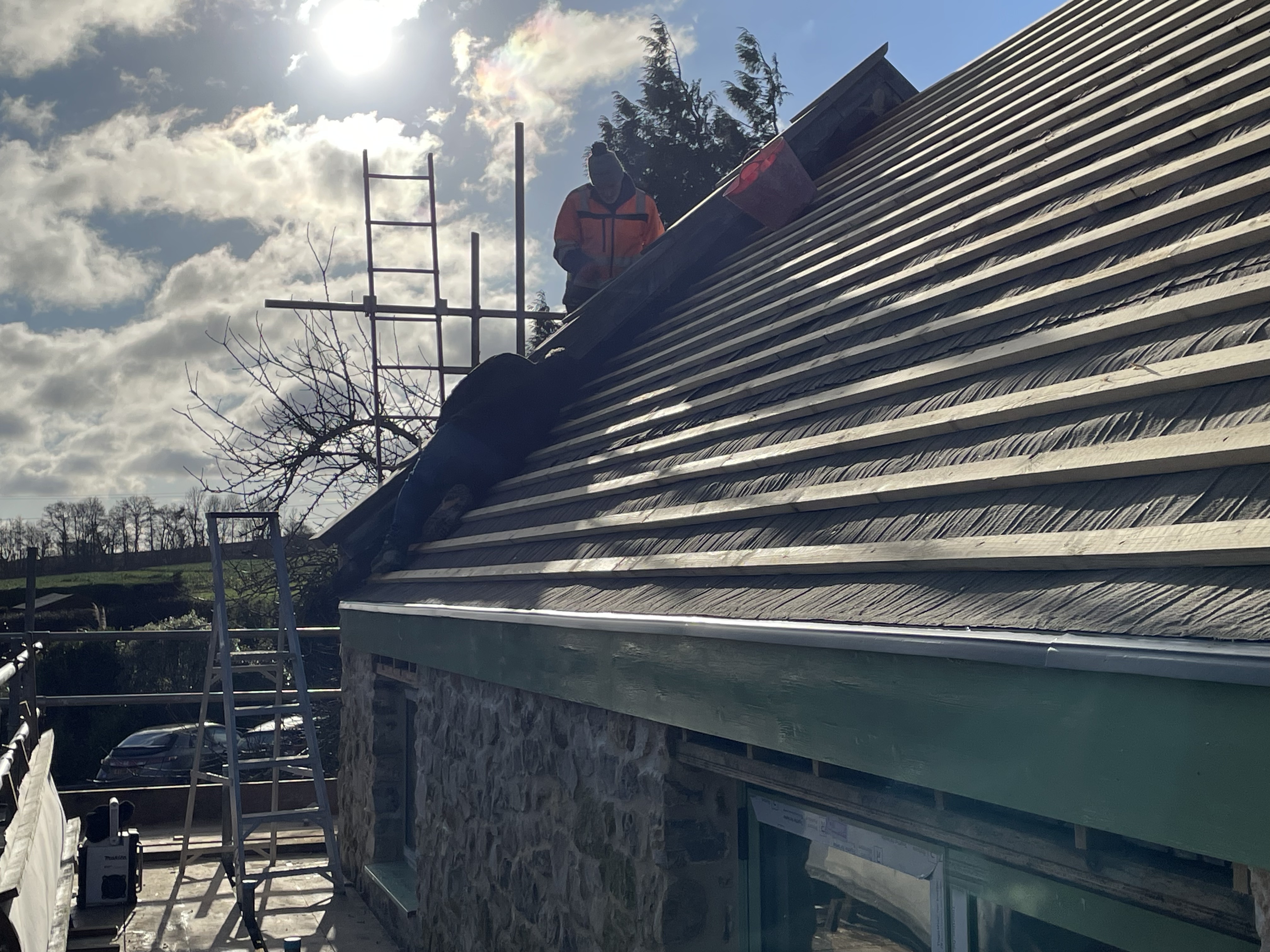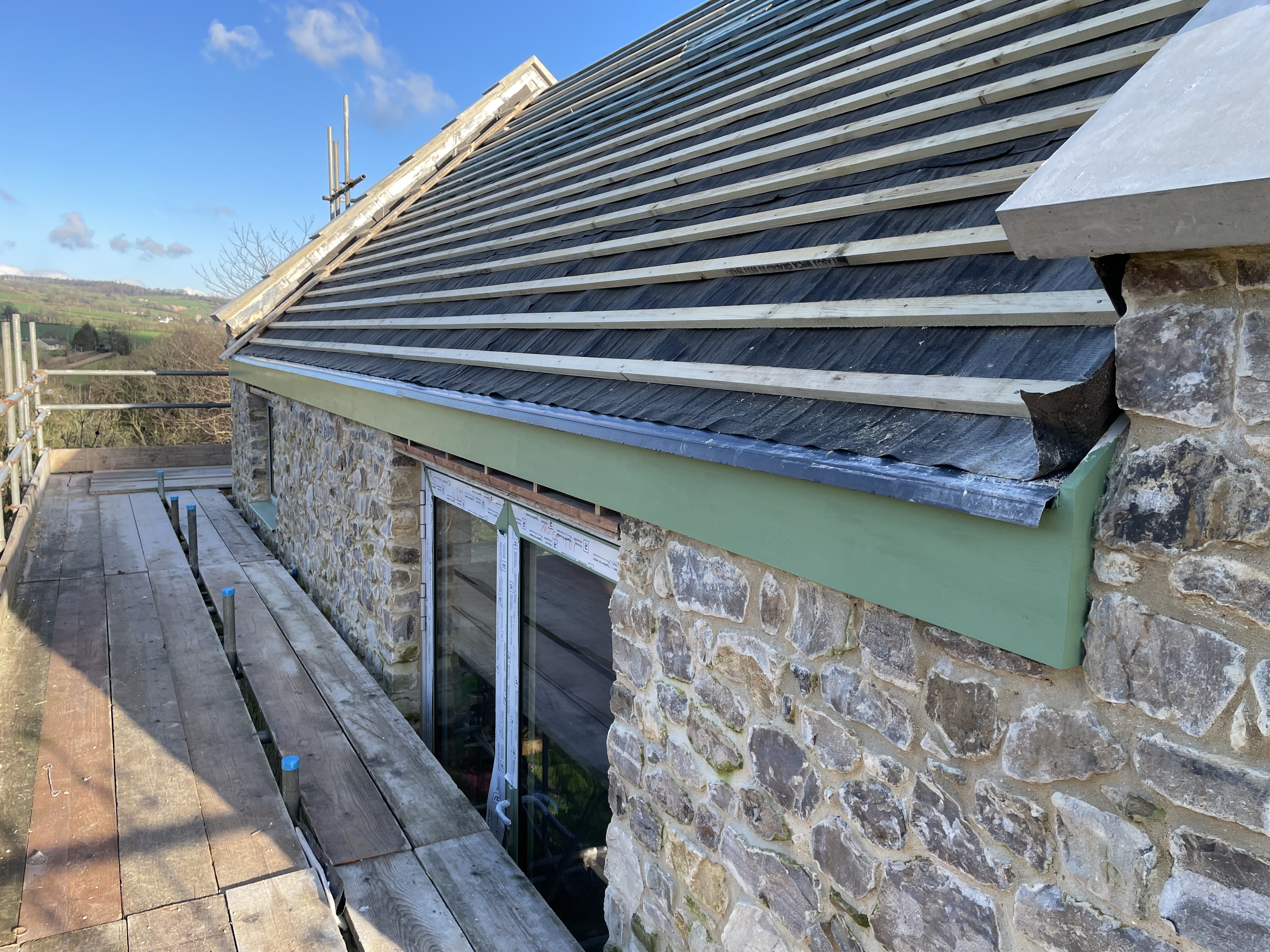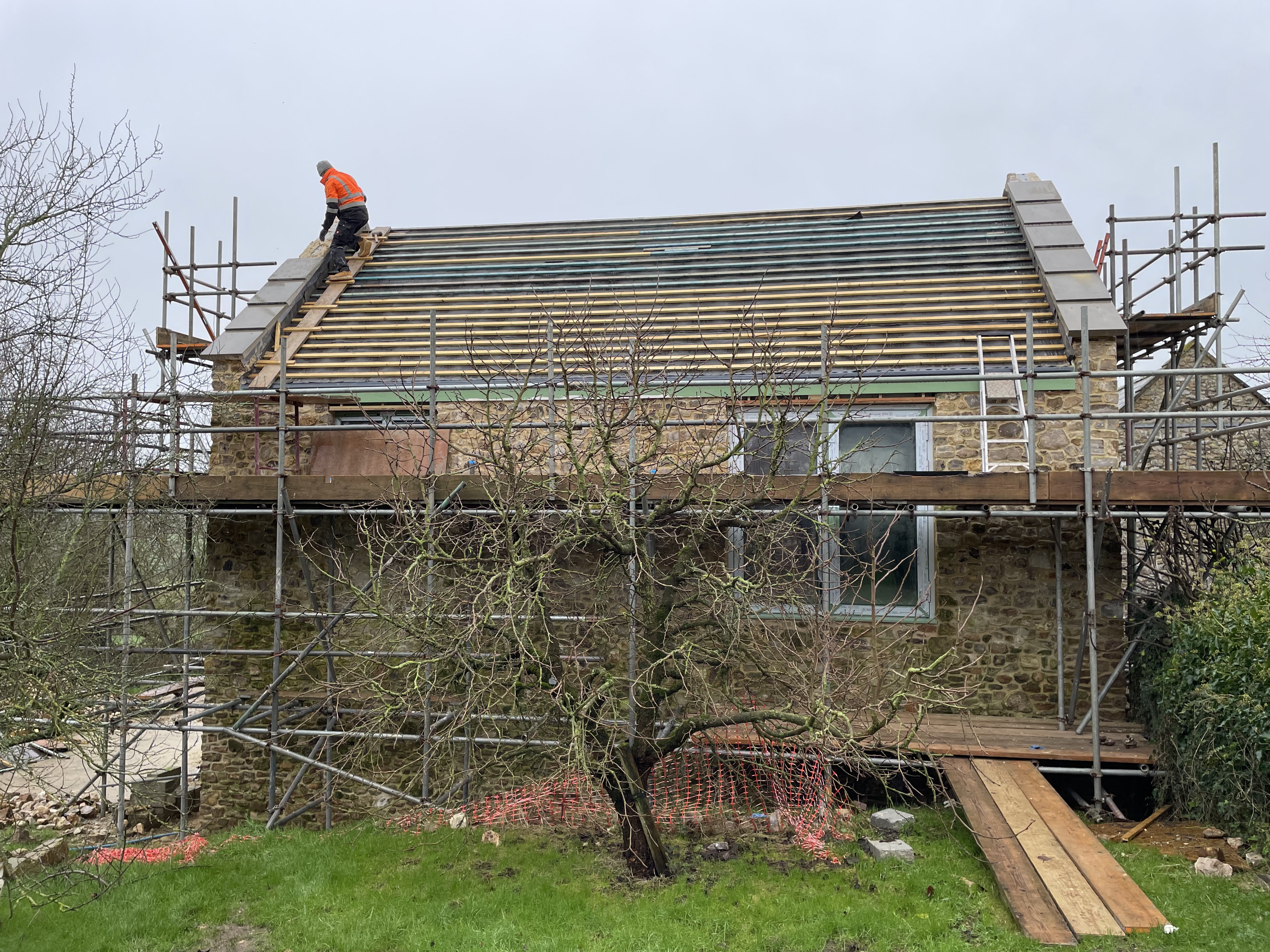 On our garage/communal area barn, we’re due to roof this (including solar tiles again) next week. Our builders managed to get the coping stones on the gable ends on Friday, having dodged the storm and rain throughout the week. John has been painting the fascia boards before the scaffolding comes down – annoyingly though because of the rain and cold, some of the paint keeps flaking off and he’s had to sand it off and redo it at least three times now… We’re also still waiting for National Grid to approve our solar tile install – there’s a risk they might limit how much power we can generate, which seems entirely ridiculous! They can also limit what we can export, which makes more sense given that despite paying to have the line upgraded, it’s still only a single-phase line and can only accept a certain amount of power. We’ve been working with the solar tile manufacturer this week to see whether installing fewer tiles would be more cost-effective for us, but we’re at the point now where the cost of any delays to the overall build would likely be greater than the extra expense of installing a few too many tiles. Plus if National Grid did decide to limit our install, it would only have an impact in the sunniest months of the year, the tiles would still be generating power throughout Autumn and Winter…