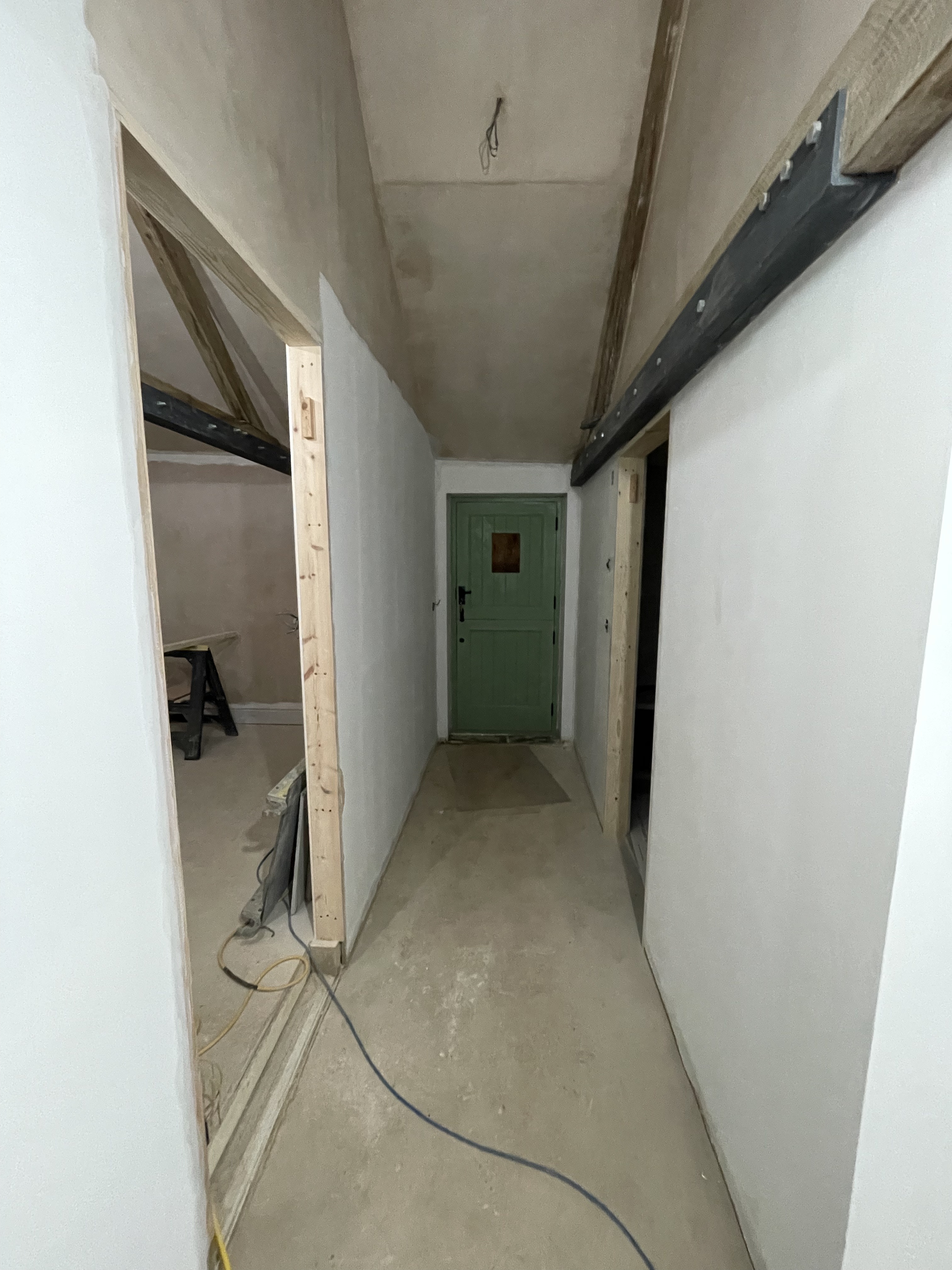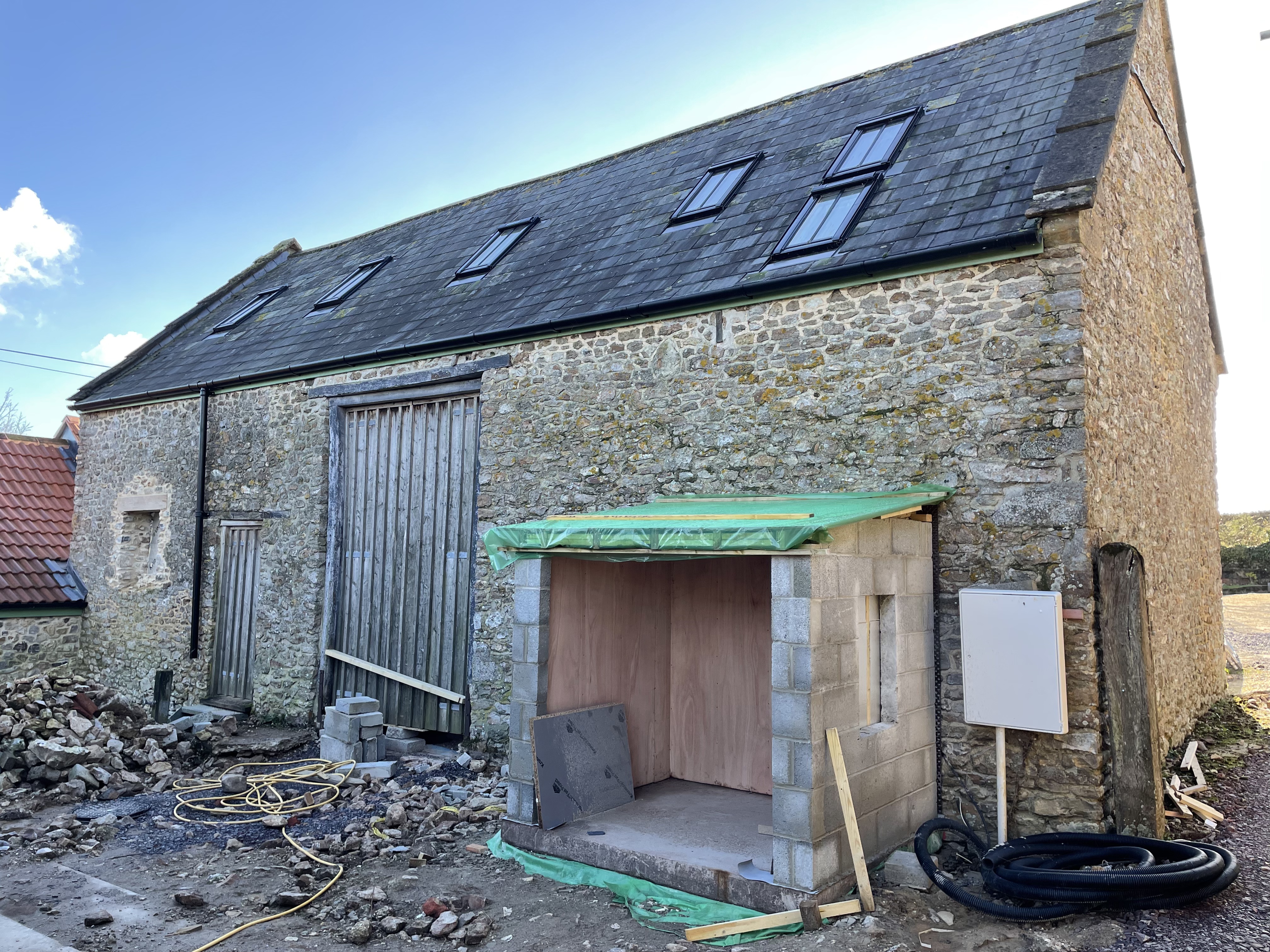 And we have a front door on our one-bed barn too! Both front doors have only been primed and still need to be properly painted, but again we need to wait for a dry and slightly warmer day before we can finish these off… It looks lovely though having both doors in place.