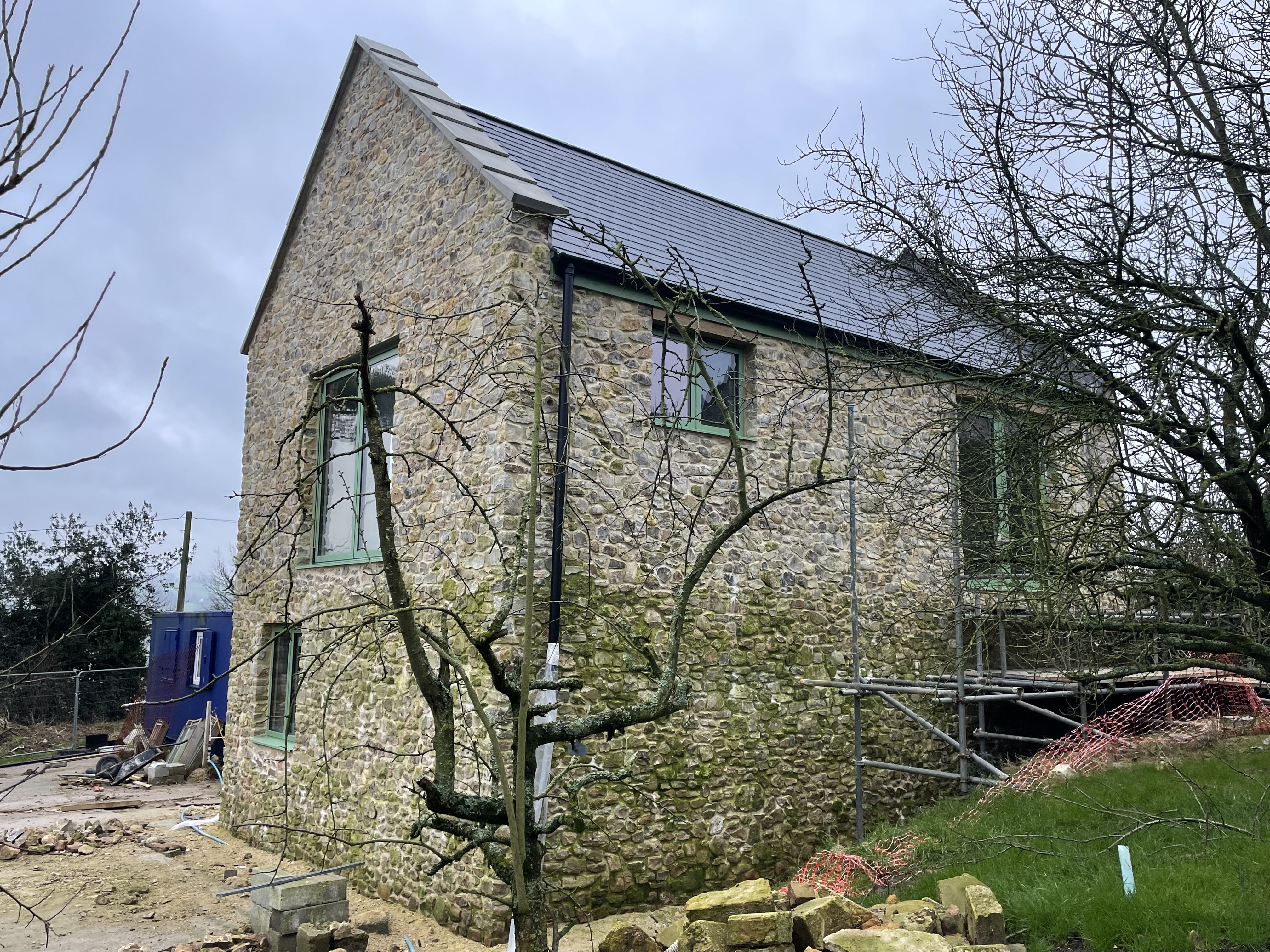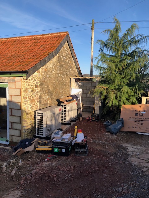 Another week, and more progress across the site. One of the most exciting for us is the air source heat pumps being installed for our new house and for the one-bed cottage – mainly because of the process and stress we went through for these. We put in a separate planning application for renewable technology across the site because we were cautious of how much change the council would accept in one go (this was after we put our first applications in for change of use from barns to residential; and for the changes to the top floor of the farmhouse). It took quite a few months for the council to approve the application, but as this was our only option for sustainable and affordable heating, it was crucial to our plans.