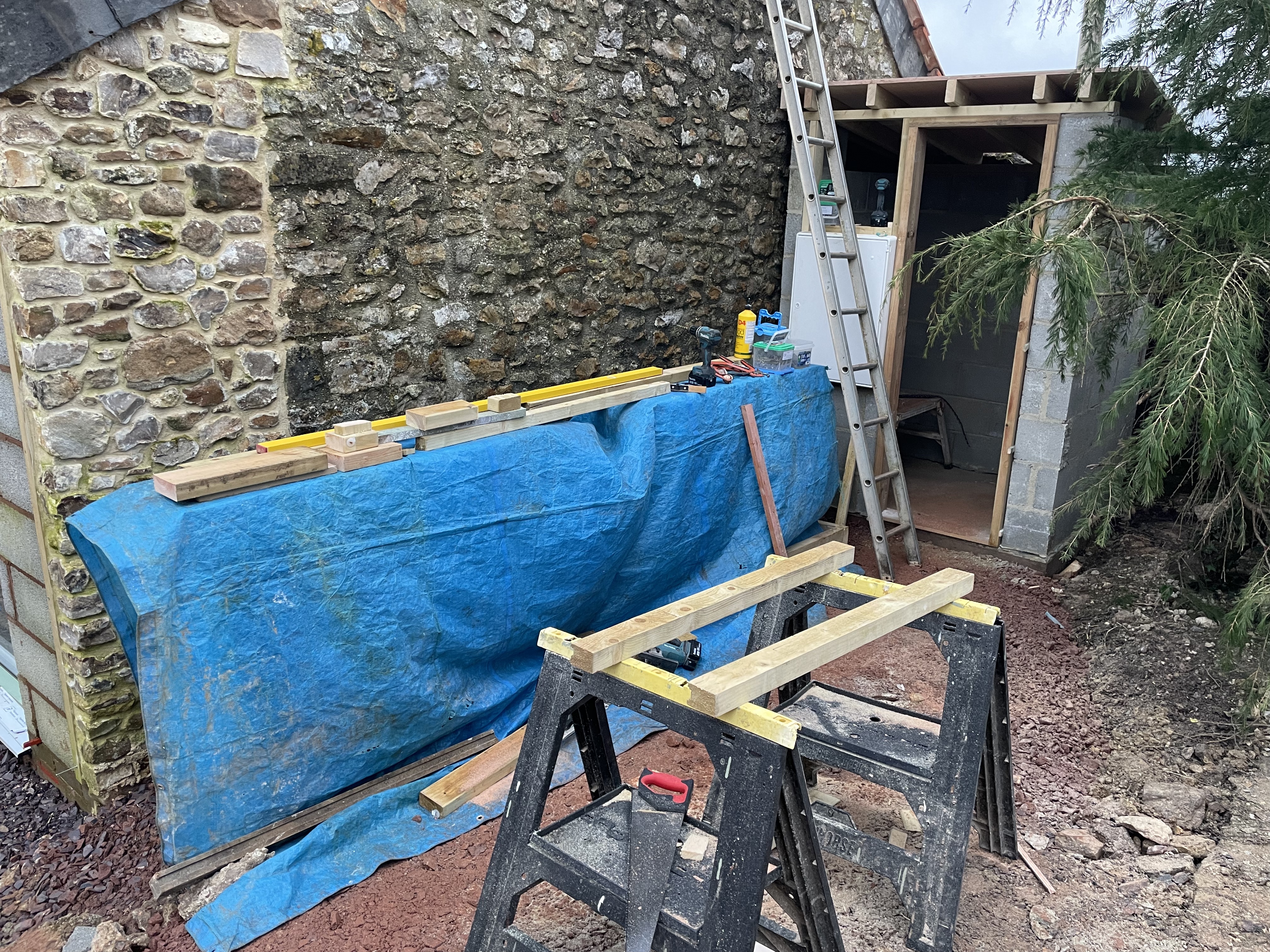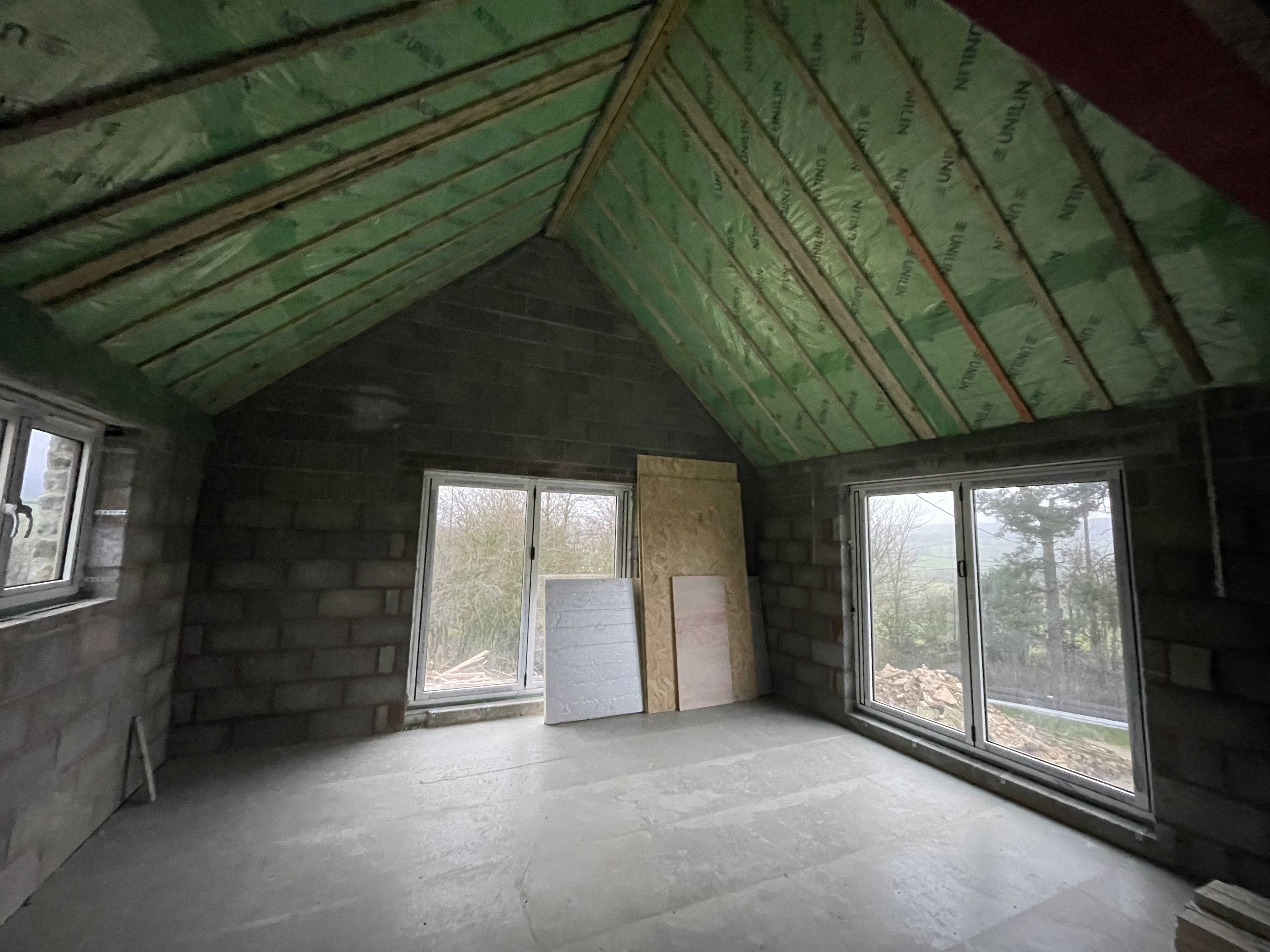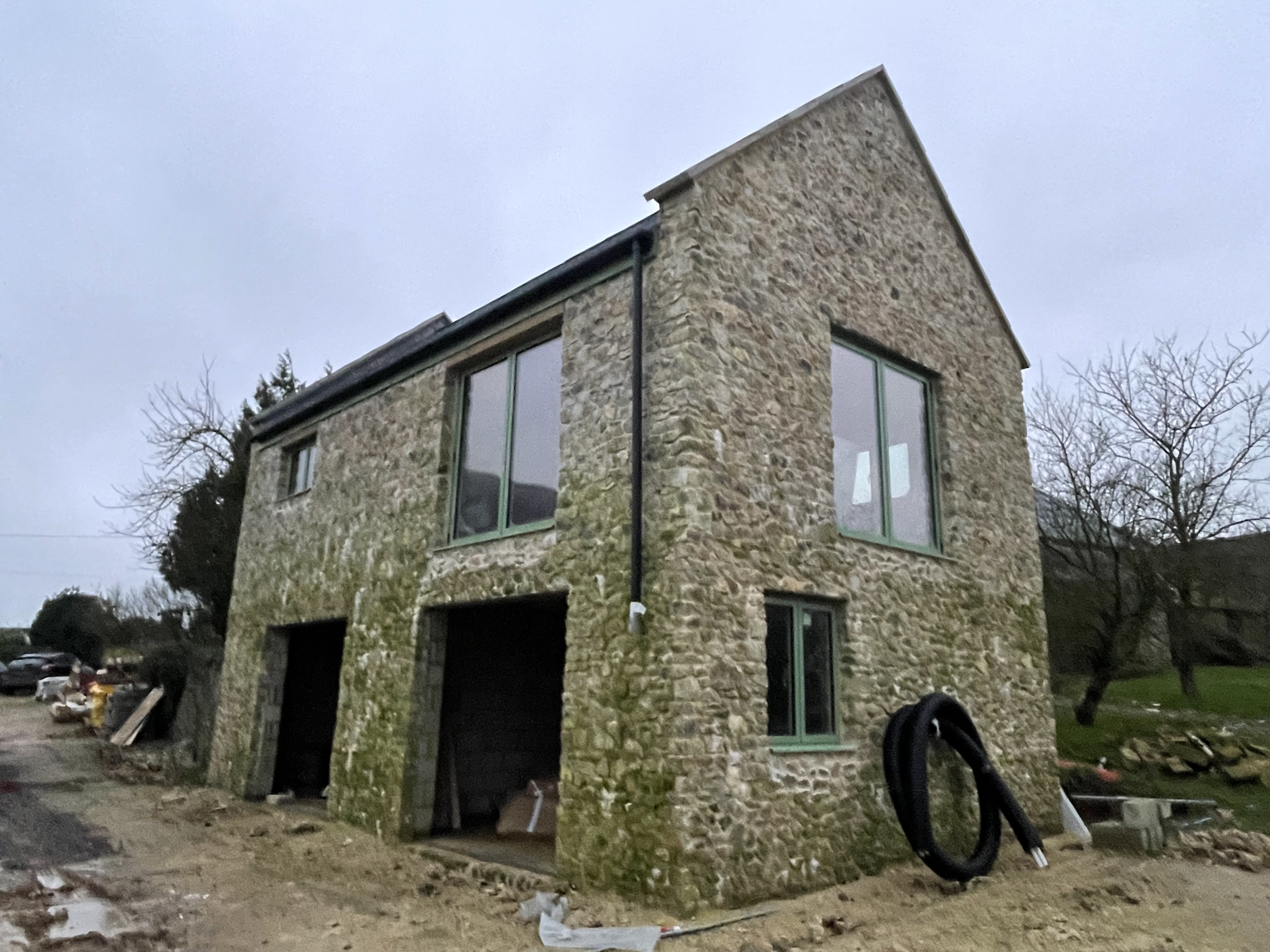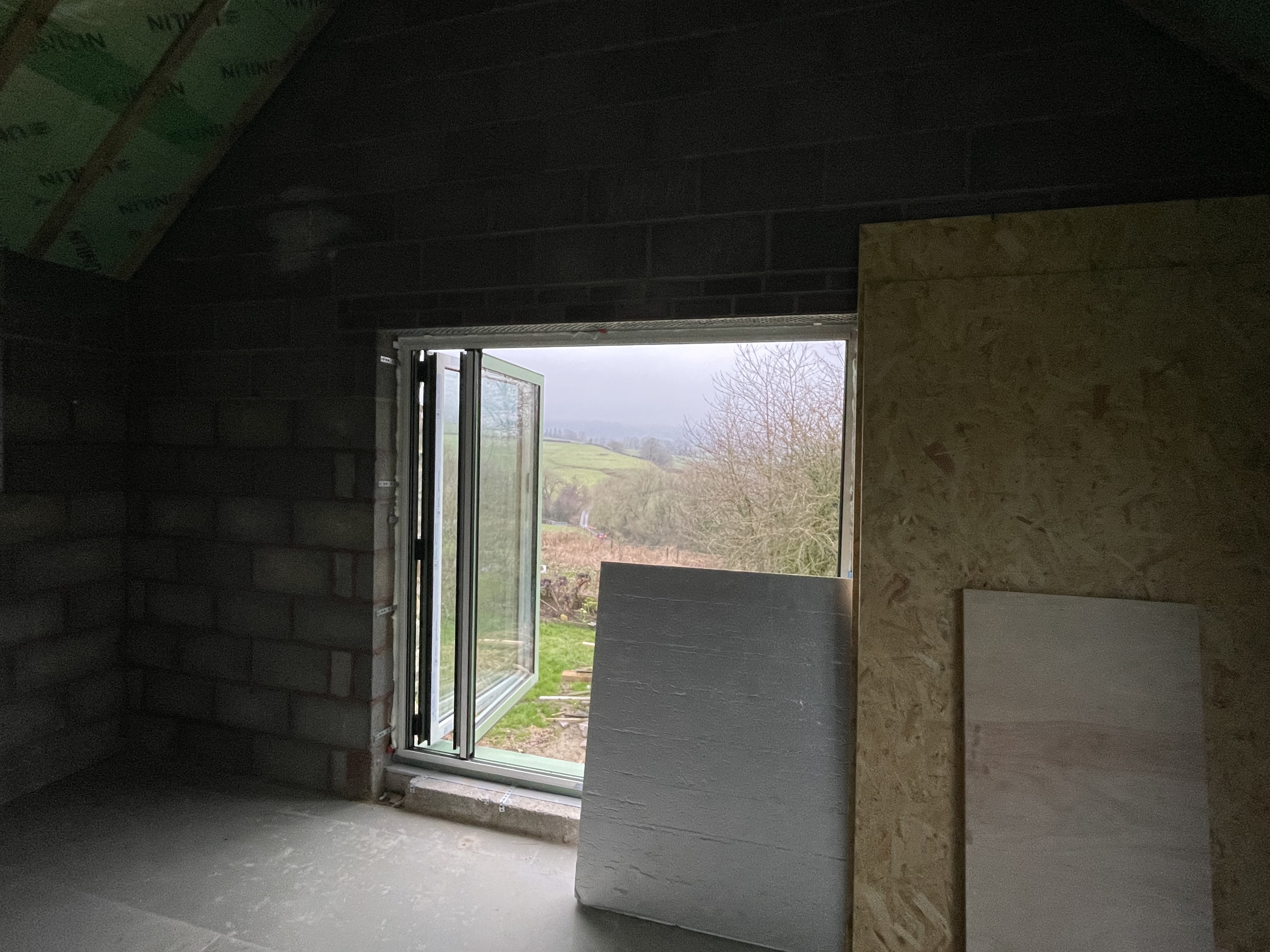 And – while technically no work has actually been done on the building, the scaffolding has come down around the garage/communal area building. When we moved in, this was a derelict animal barn, which was a real eyesore. We got permission to replace it with a two-storey building which has been faced in stone to match the other barns. Now the scaffolding is down, we can see the building properly and it looks amazing! It fits in with the rest of the buildings really well – it wasn’t a cheap decision but it’s definitely worth it. The top floor, which is going to be communal space for guests to use, has bi-fold windows that overlook views across and up the valley (a railing of sorts will go in at some point). We’ve not been able to open them until now because the scaffolding was in the way, so it’s great to be able to try them out (ignoring the building materials in the way). We’ve added a few photos of the original building and a link to our more detailed page to show just how different it is!