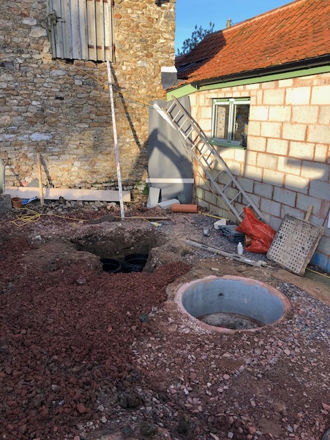 While the weather remains dry, our builders have made progress digging the drainage at the corner of the shippon and the barn. This is critically important for us as it’s the lowest point of the yard and so any water that runs down it will need to drain through there – and being at the right level will make the difference between the shippon flooding in future or the water draining away. There are still some extra parts of the drainage to add along the front of the buildings to draw any water away, but this is a significant bit of progress.