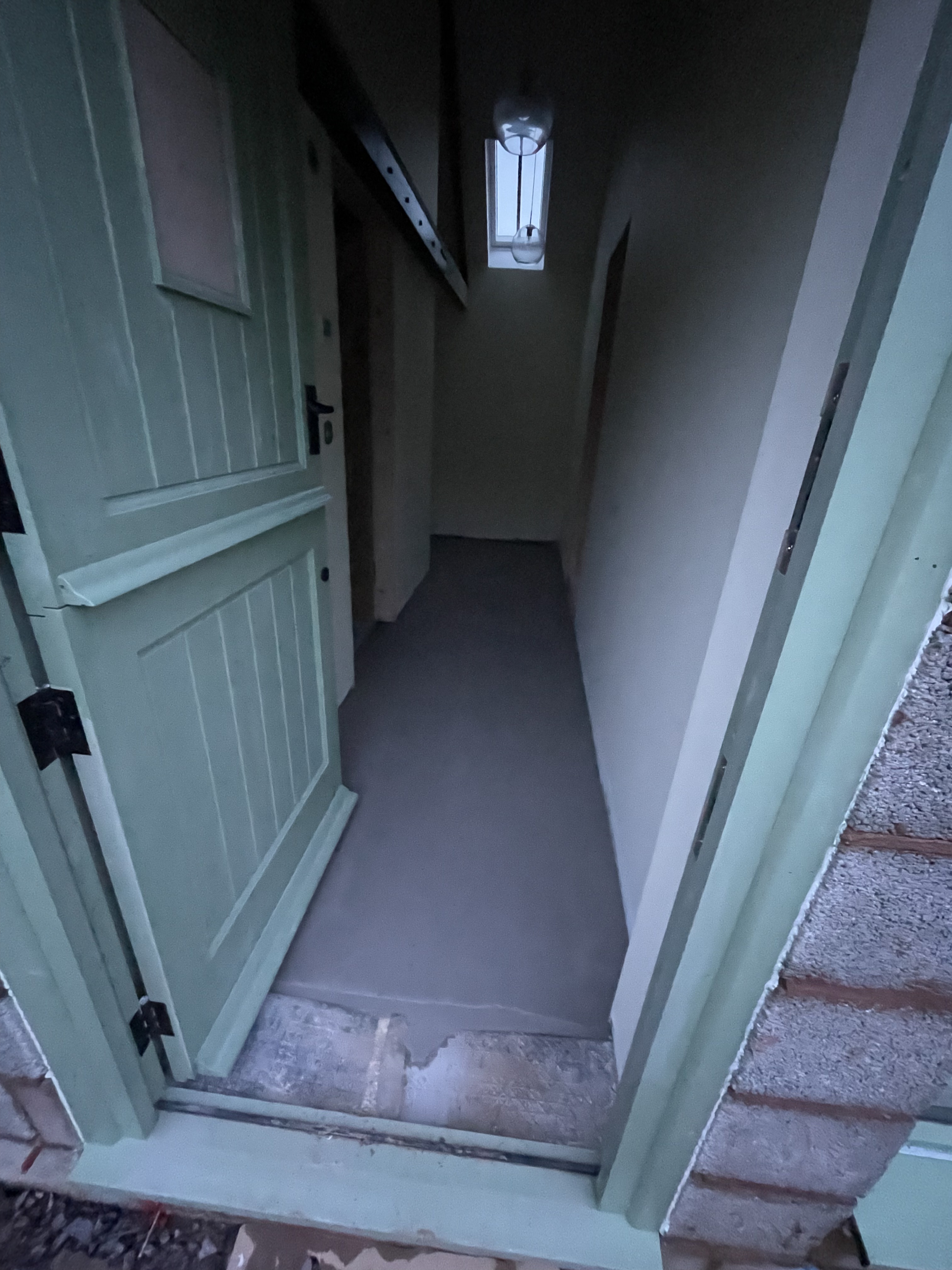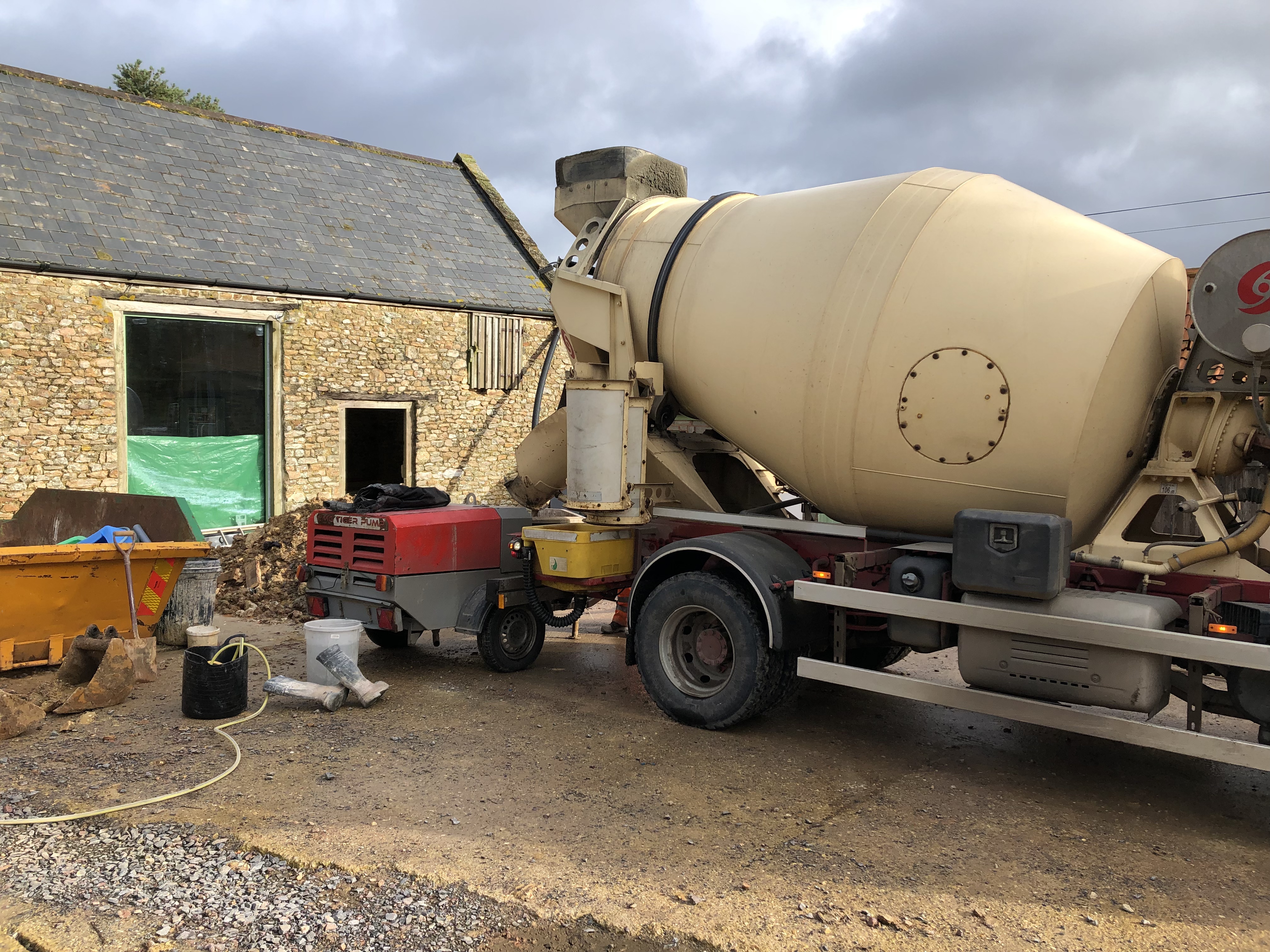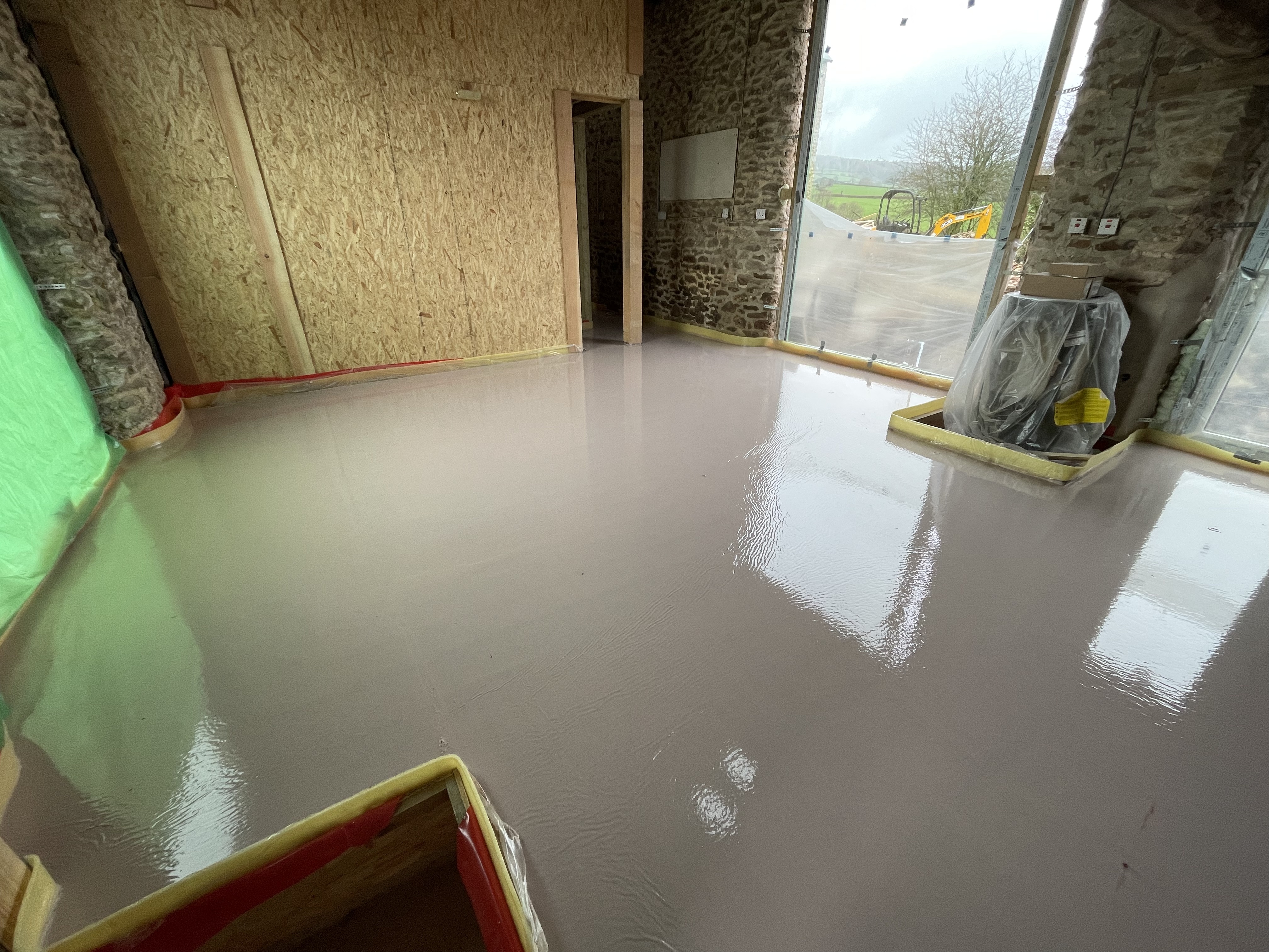 Our builders are making good progress against our Ofgem deadline for installing and commissioning the air source heat pumps – this week saw them lay the underfloor heating in the three-bed and then pump the screed on top. They’ve only done the ground floor for now – we’ll also have underfloor heating in the two first floor bedrooms but that can be added at a later stage and isn’t required to commission the system.