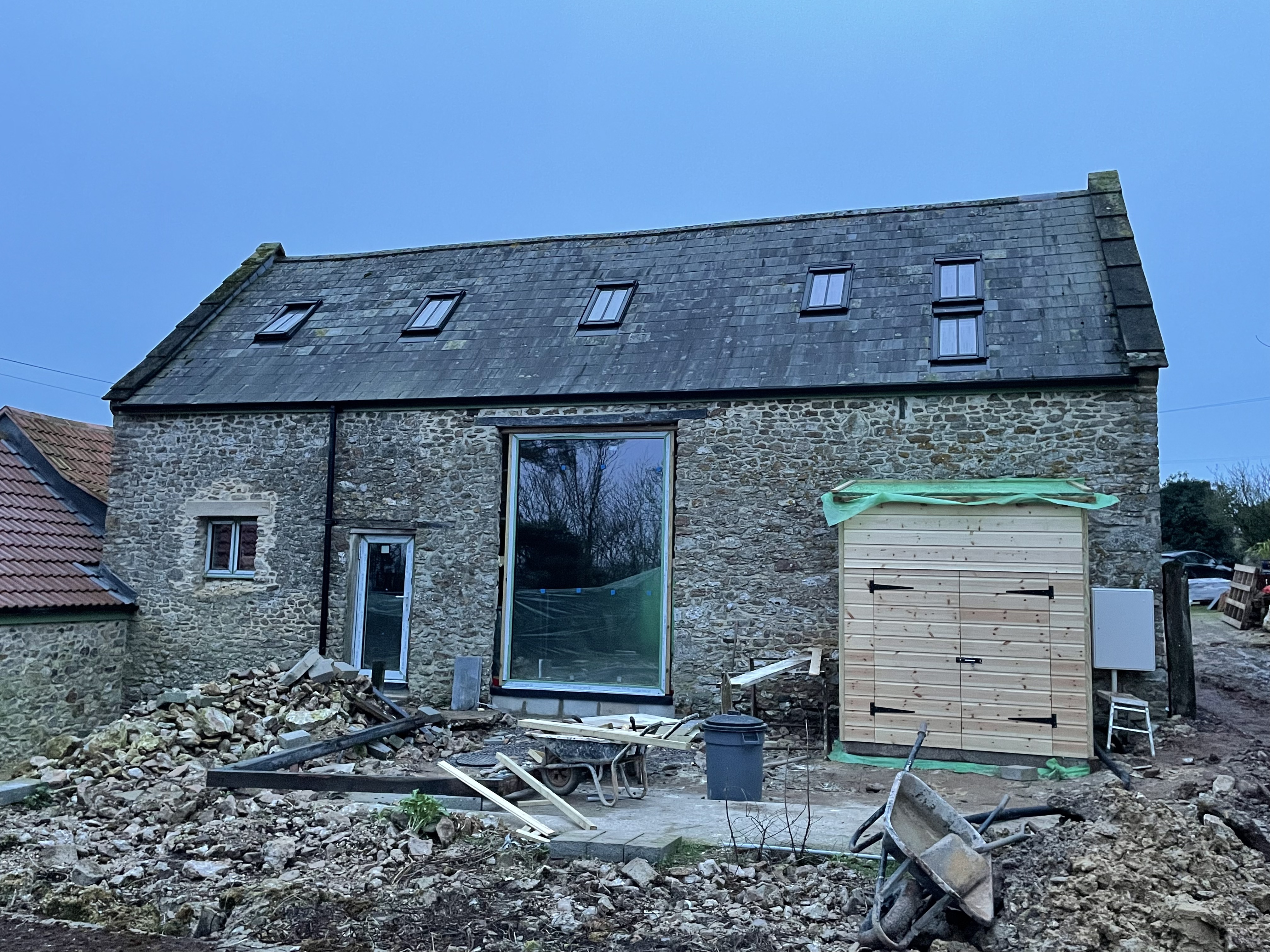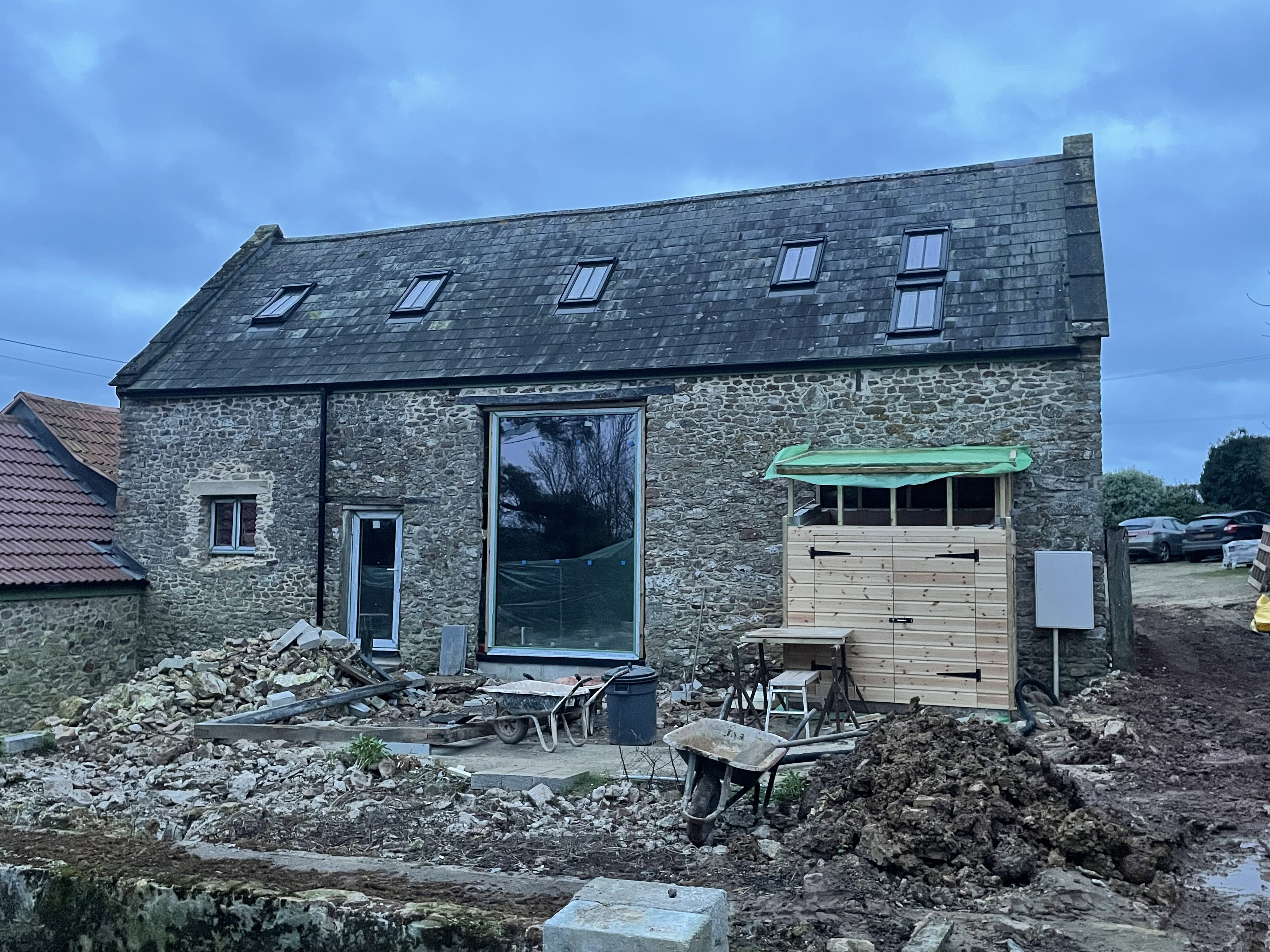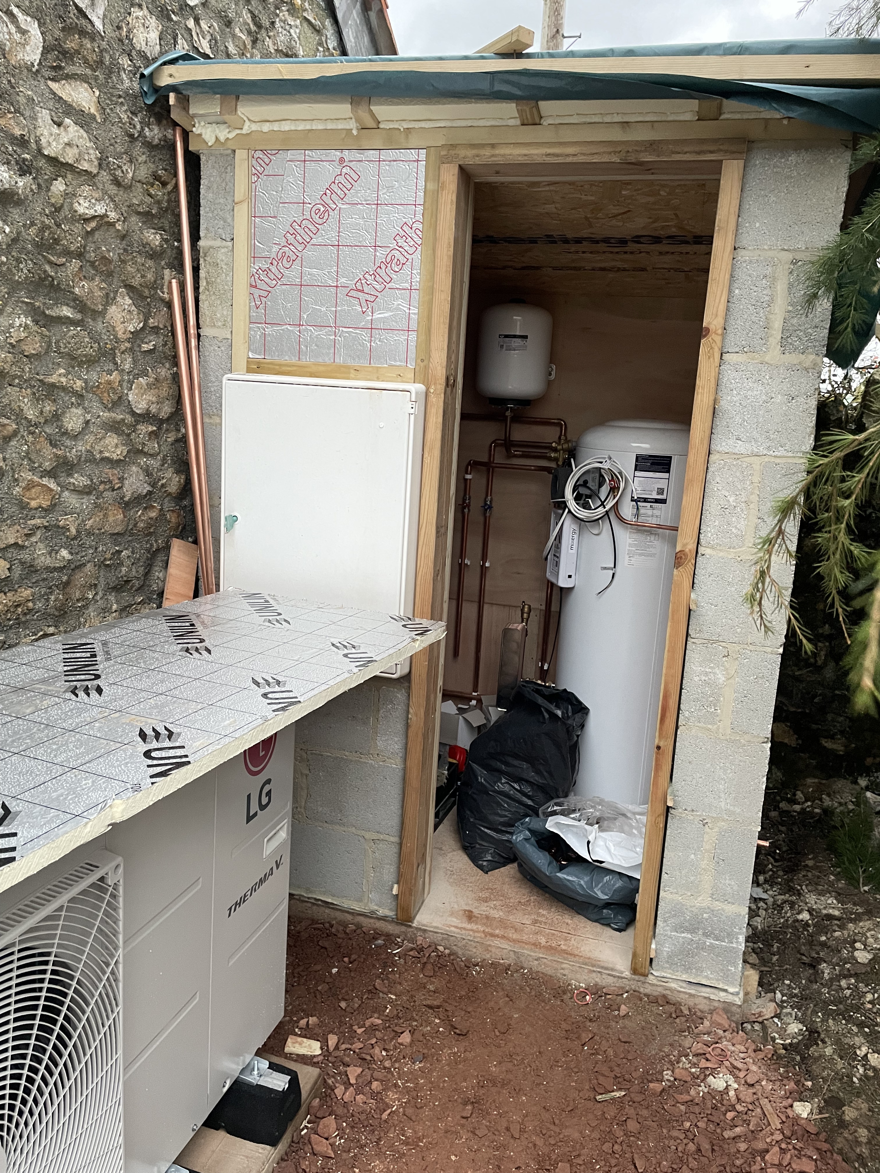 They’ve also installed the hot water cylinder and equipment in the outbuilding for the one-bed cottage, and continued to build up the three-bed’s outbuilding to accommodate the larger cylinder (it was originally sized for the smaller cylinder that has gone into our house).