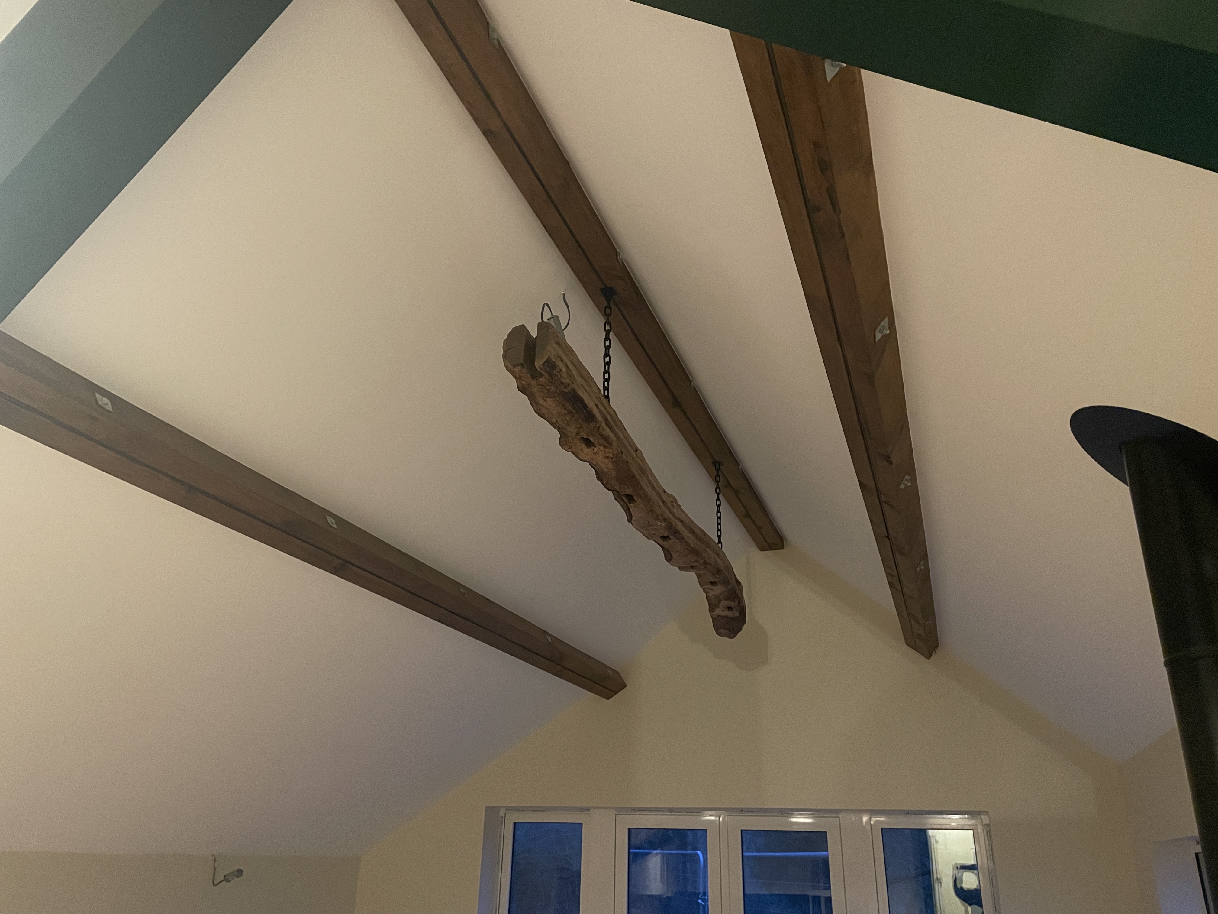 Our builders also put the beam up in the lounge ready to add the hanging lights. We’ve asked them to raise it once already to allow enough height for the lights to hang down, but we’re still not sure if it’s high enough – it’s hard to gauge as it is at the moment. It’s really exciting though to see the beam in place, as we came up with the idea nearly 18 months ago and have been waiting ever since for it to actually happen!