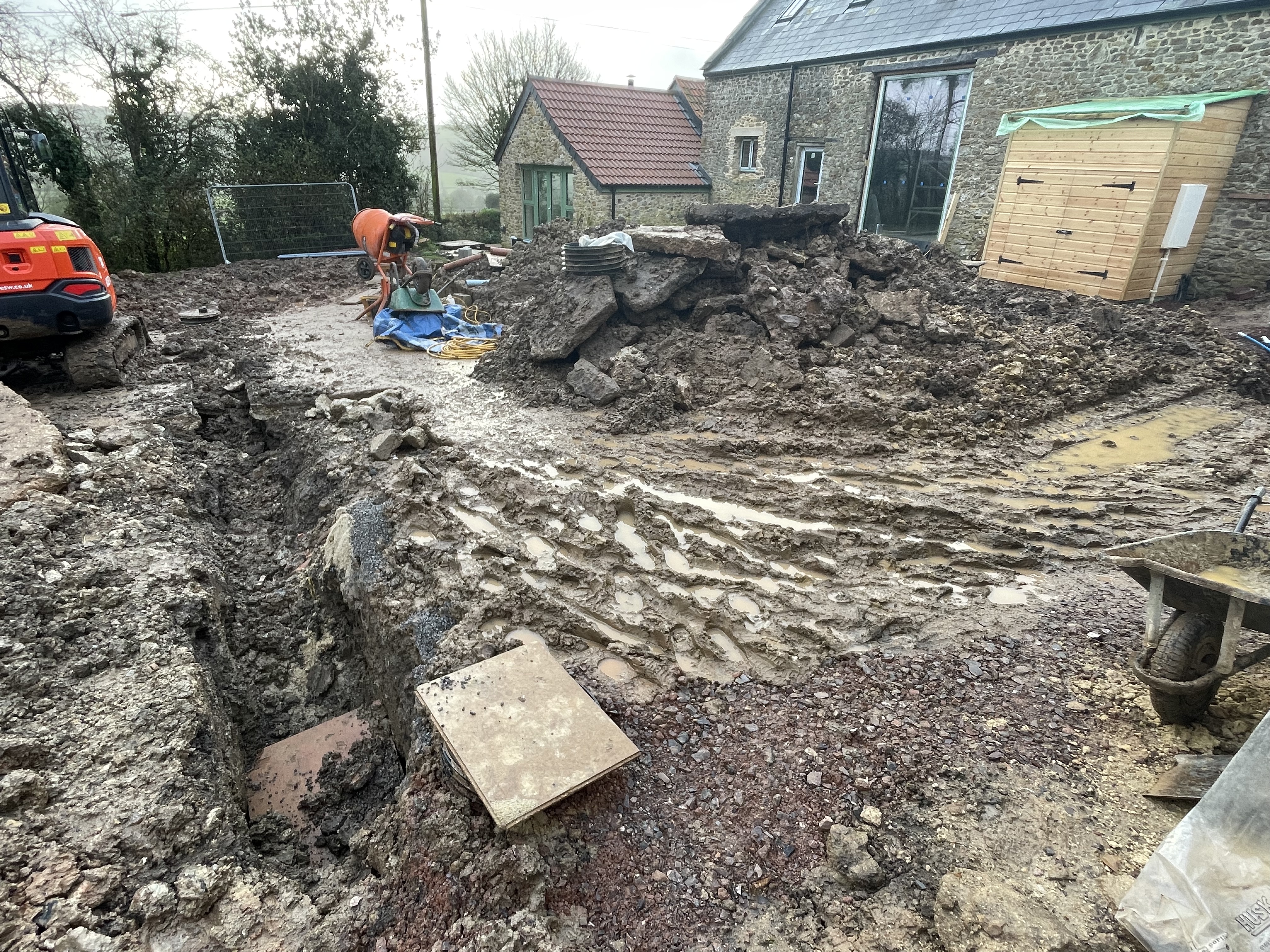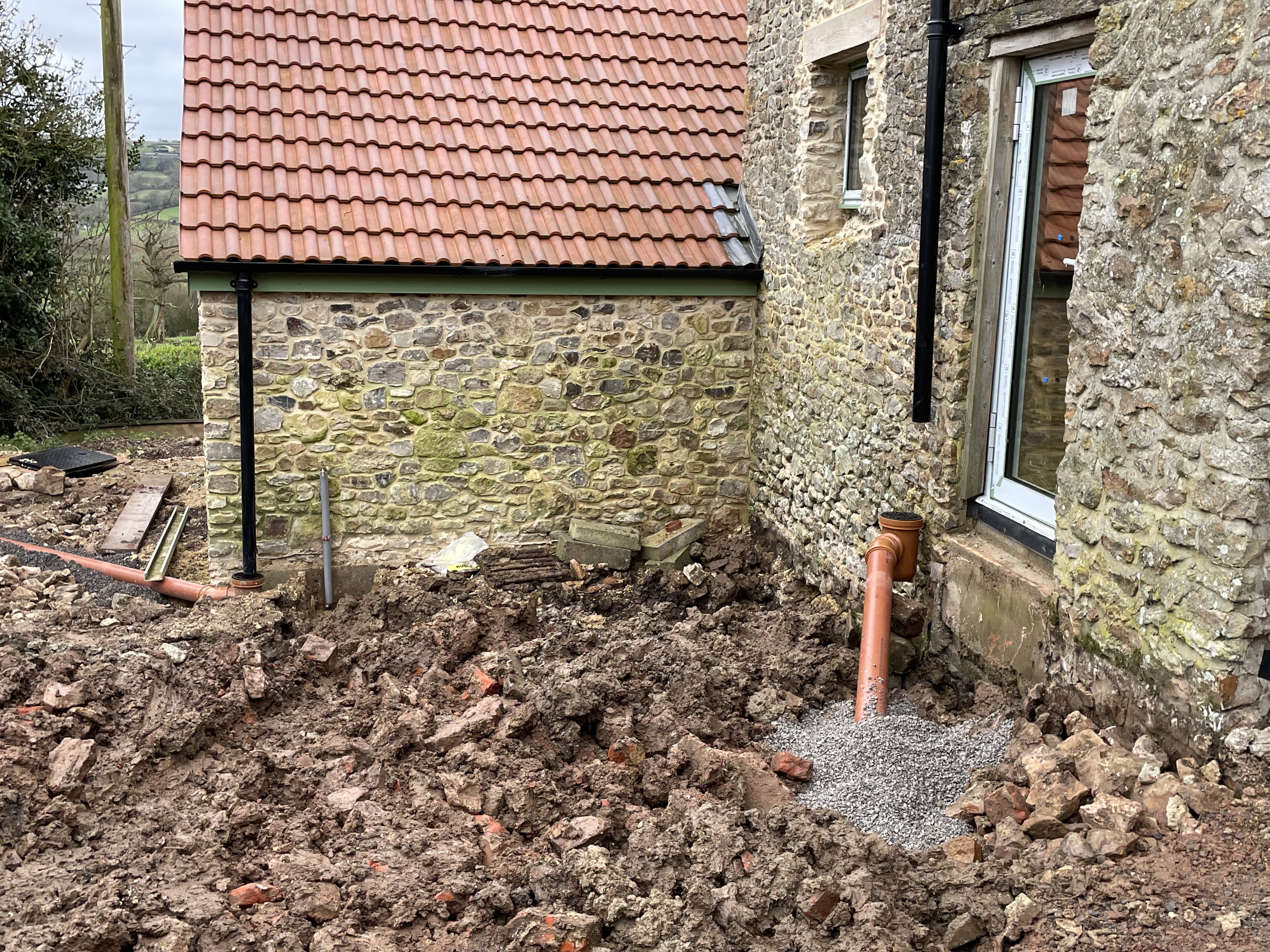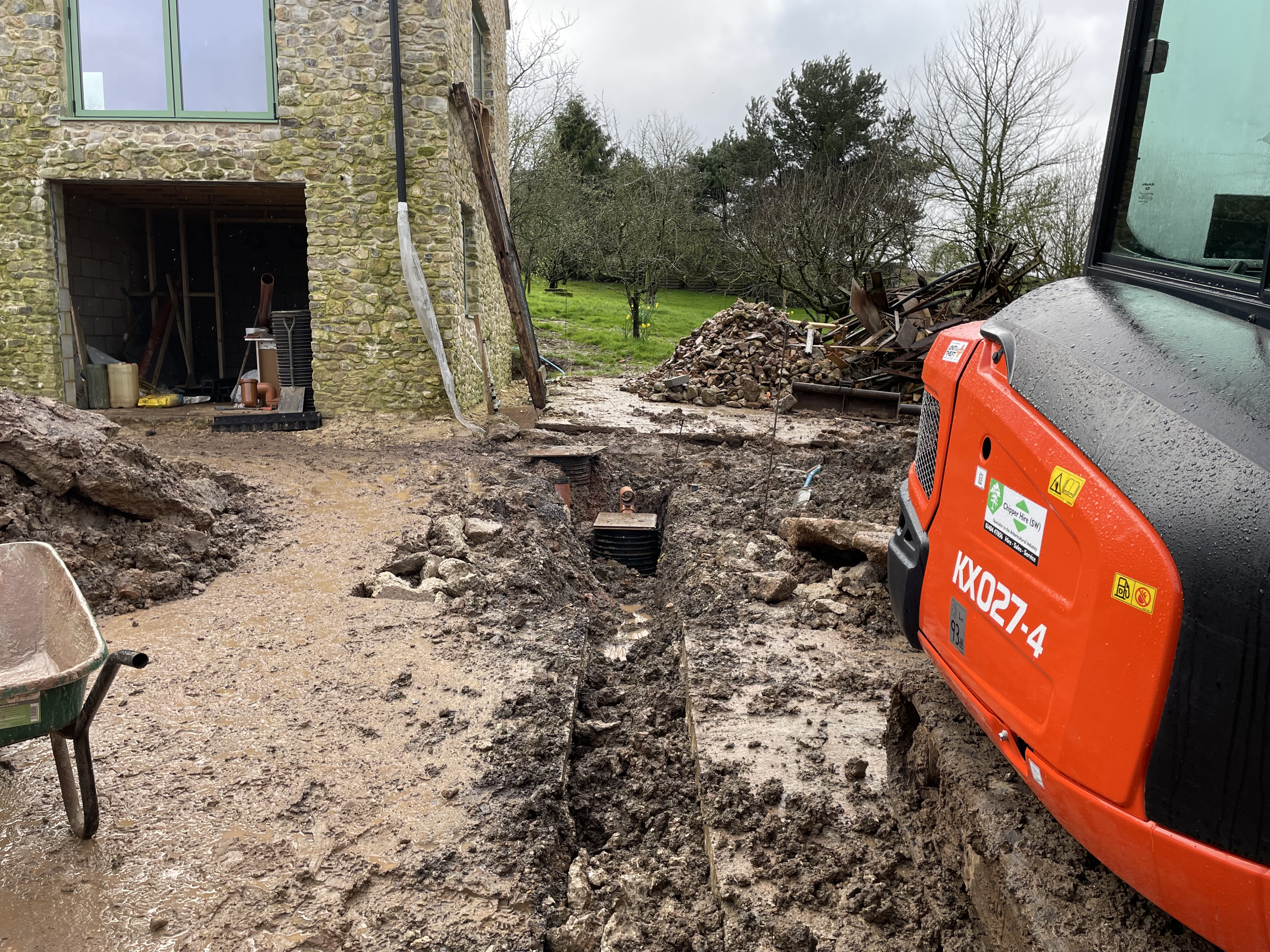 For the rest of the week, our builders have continued to dig more trenches outside – the latest one will link the farmhouse up to the new sewage treatment plant we’ve installed. Our old septic tank will be disconnected and filled in, which means the intrusive concrete entrance will hopefully be removed! And it’ll be far easier to empty it each year as it’ll be closer to the car park.