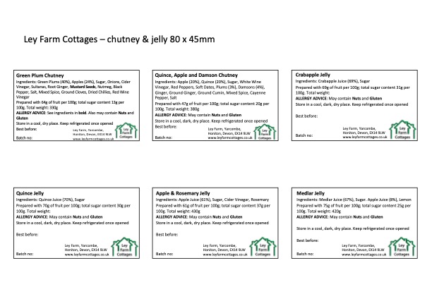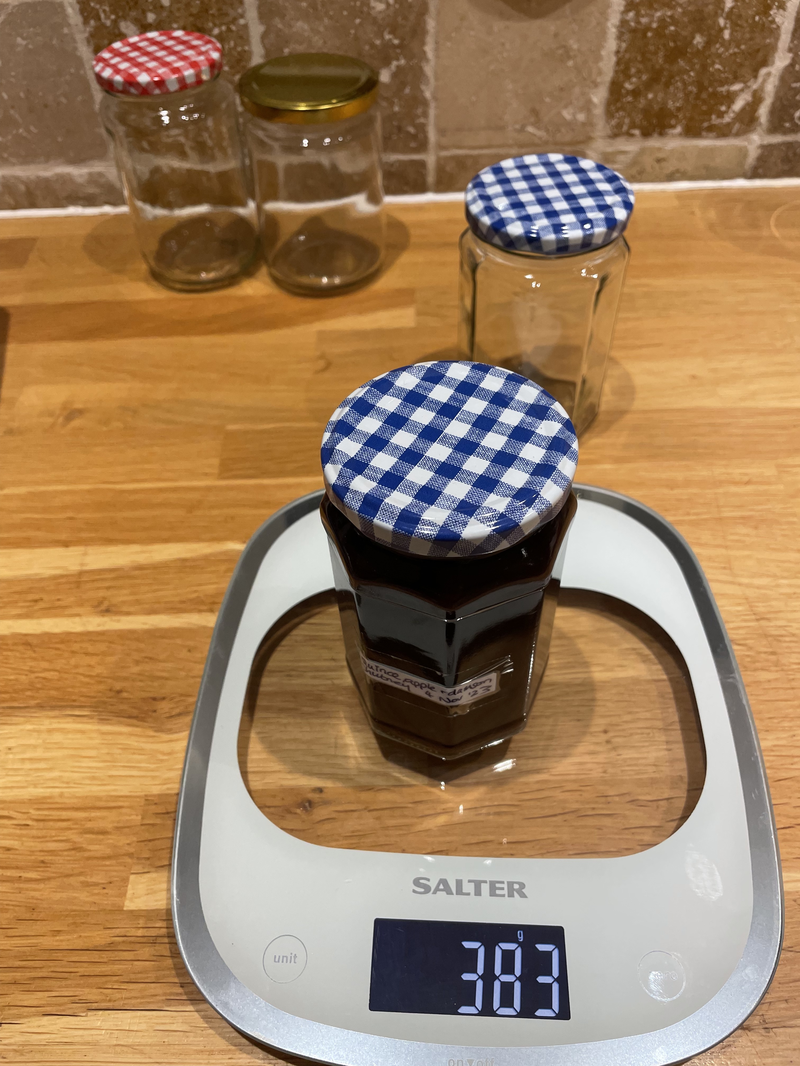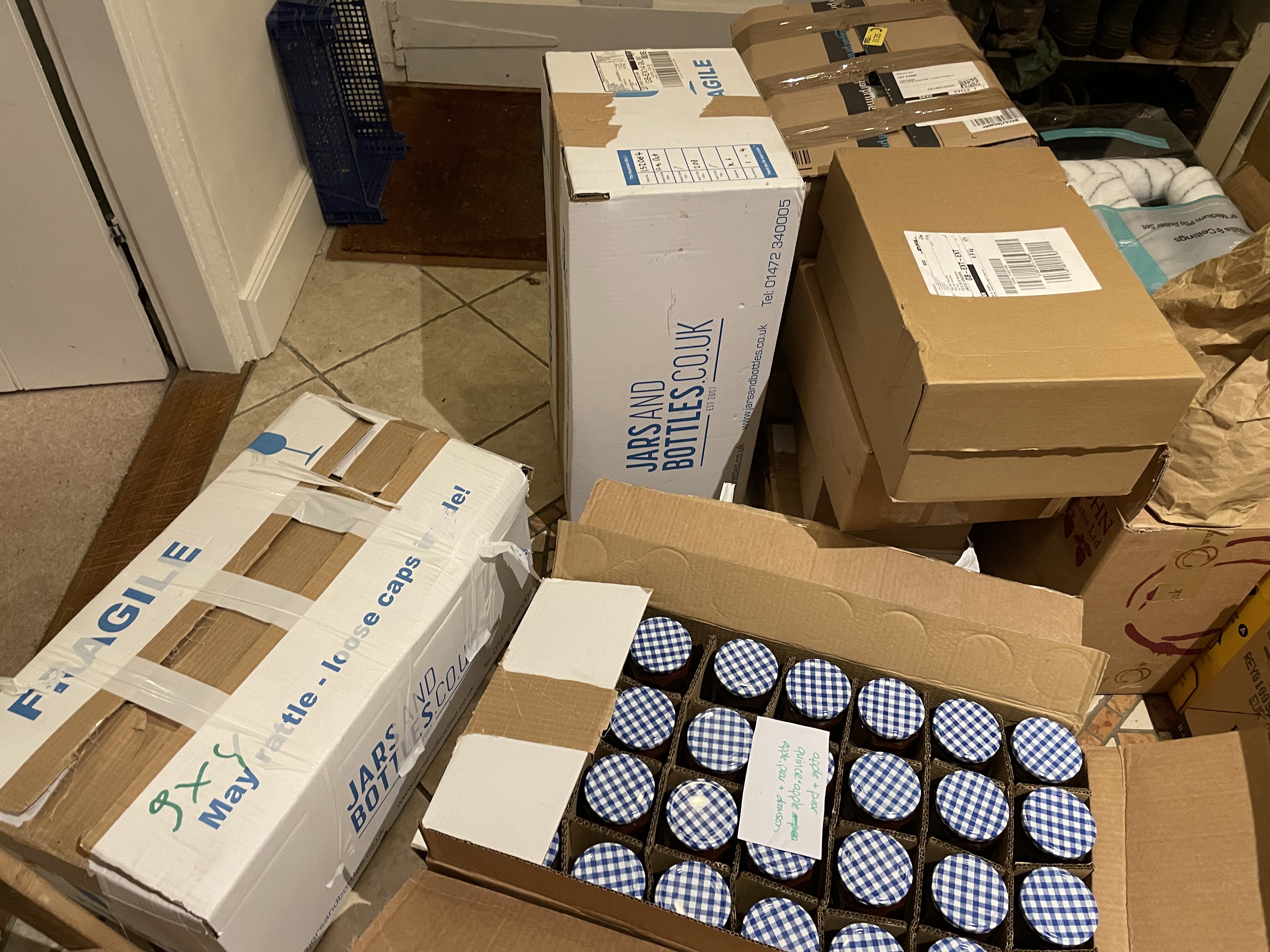 Our final achievement this week was to order the jar labels for our homemade jam, chutney and jellies. It sounds like a small incidental job but actually it’s been a lengthy process as we’ve had to read and understand the different regulations about food labelling; calculate the %s of each ingredient for each recipe; count how many jars we had of each flavour (so we could order the right number of labels); and then weigh the contents, which meant unpacking all the boxes under the stairs to find a few of each flavour. And then we had to work out the best label size to display all the information in a readable format and look at different suppliers to get the best value for money. Not an easy job, but at least it means we should be ready to start selling some of our produce soon.