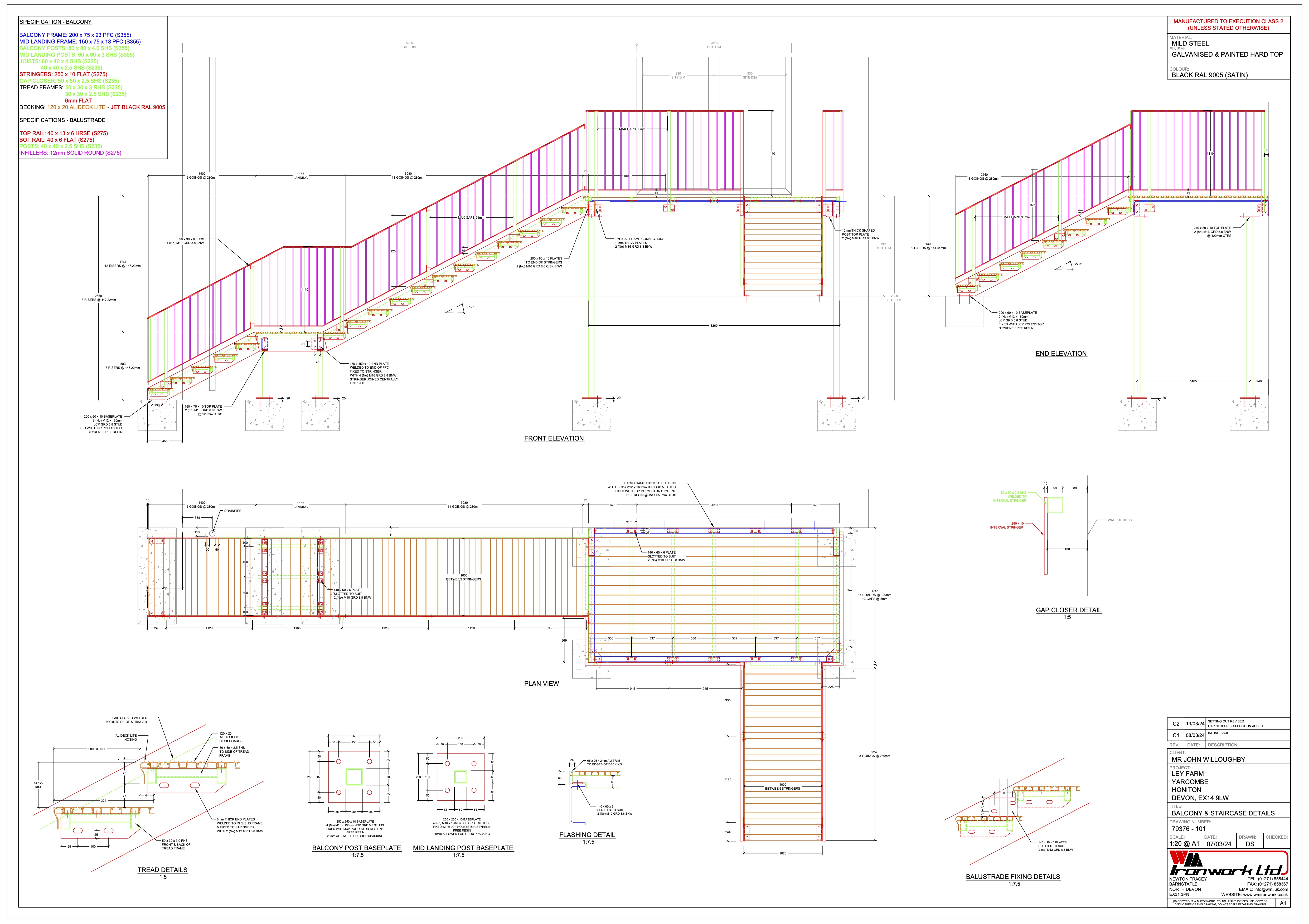 We had to arrange a mid-month site visit with our builders and architect to work out the right ground levels; while they were here we also finalised the design for the stairs up into the communal room, which should take 6-8 weeks to arrive. This gives us a target date to get everything ready to rent out the farmhouse – even when the builders have finished and we’ve moved out, we’re expecting to need to repaint parts and wait for furniture orders to arrive. We had originally anticipated access into the communal room to be via the orchard, but after we pulled the building away from the orchard ground to avoid the cost of a large retaining wall, we needed to find a different solution to get in. We explored putting a ramp up to this door but couldn’t fit one in with the necessary gradient as it would have been too long, so instead we’ve designed stairs of a width that should be suitable for people who are less able, and we’ve put a landing halfway up in accordance to building regulations.