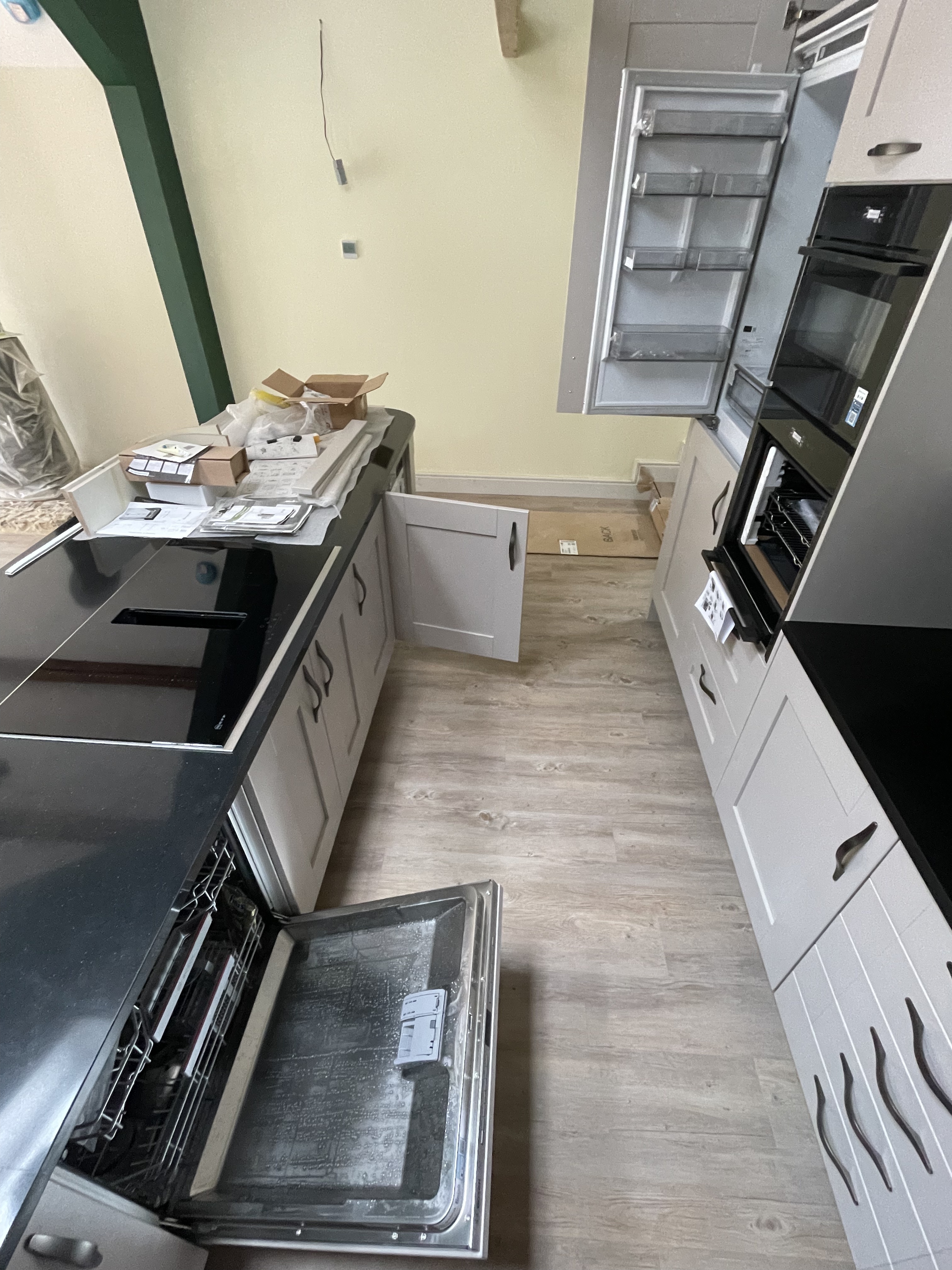 The finishing touches are gradually being added to our new house as well. The electricians have been in and installed the bedroom lights in both rooms, although we want to retie the rope in our bedroom with a different knot. Our kitchen is looking more complete – the cupboard handles (kindly donated by some friends of ours) have been fitted and look amazing – and the appliances are now in as well.