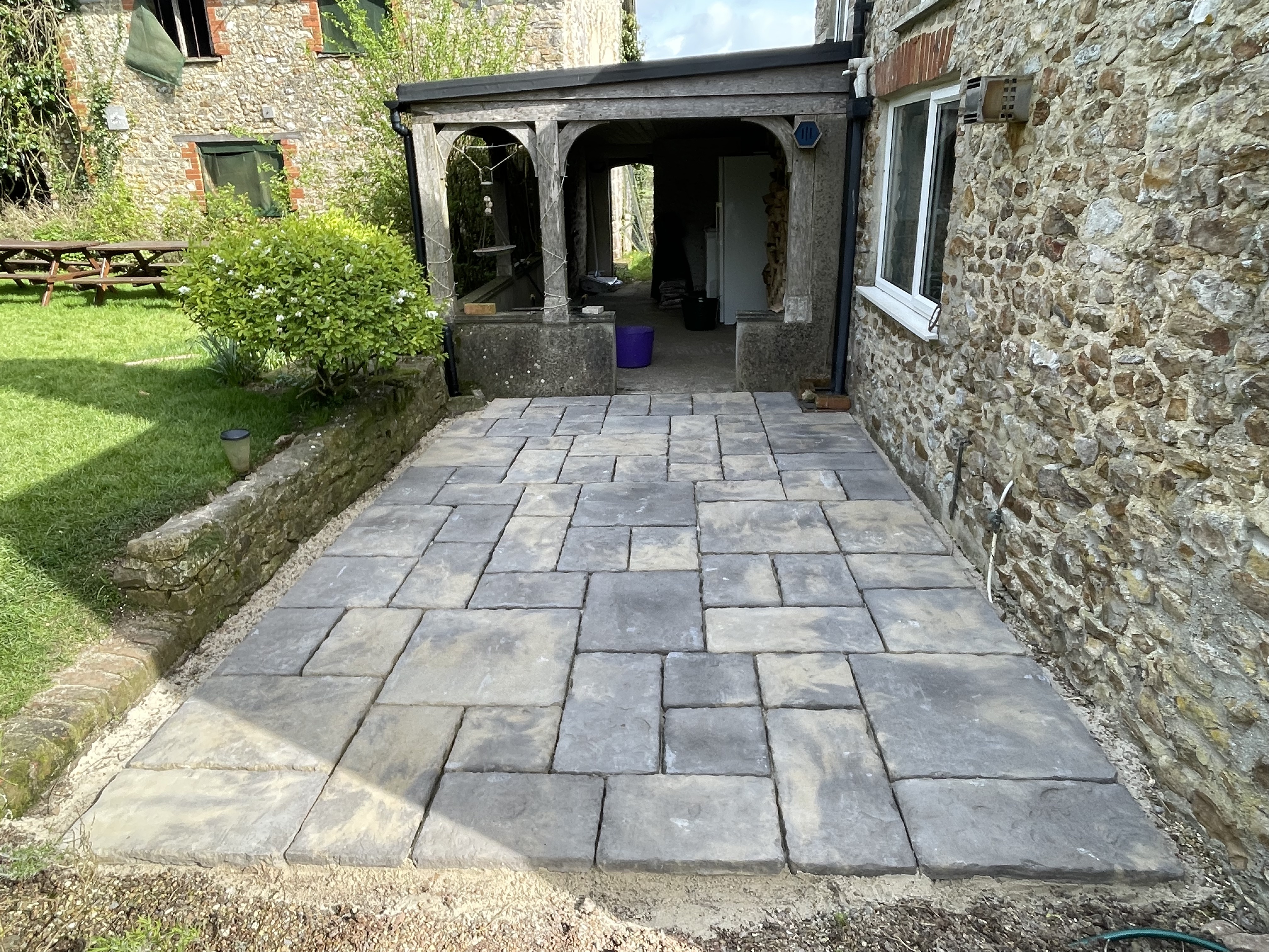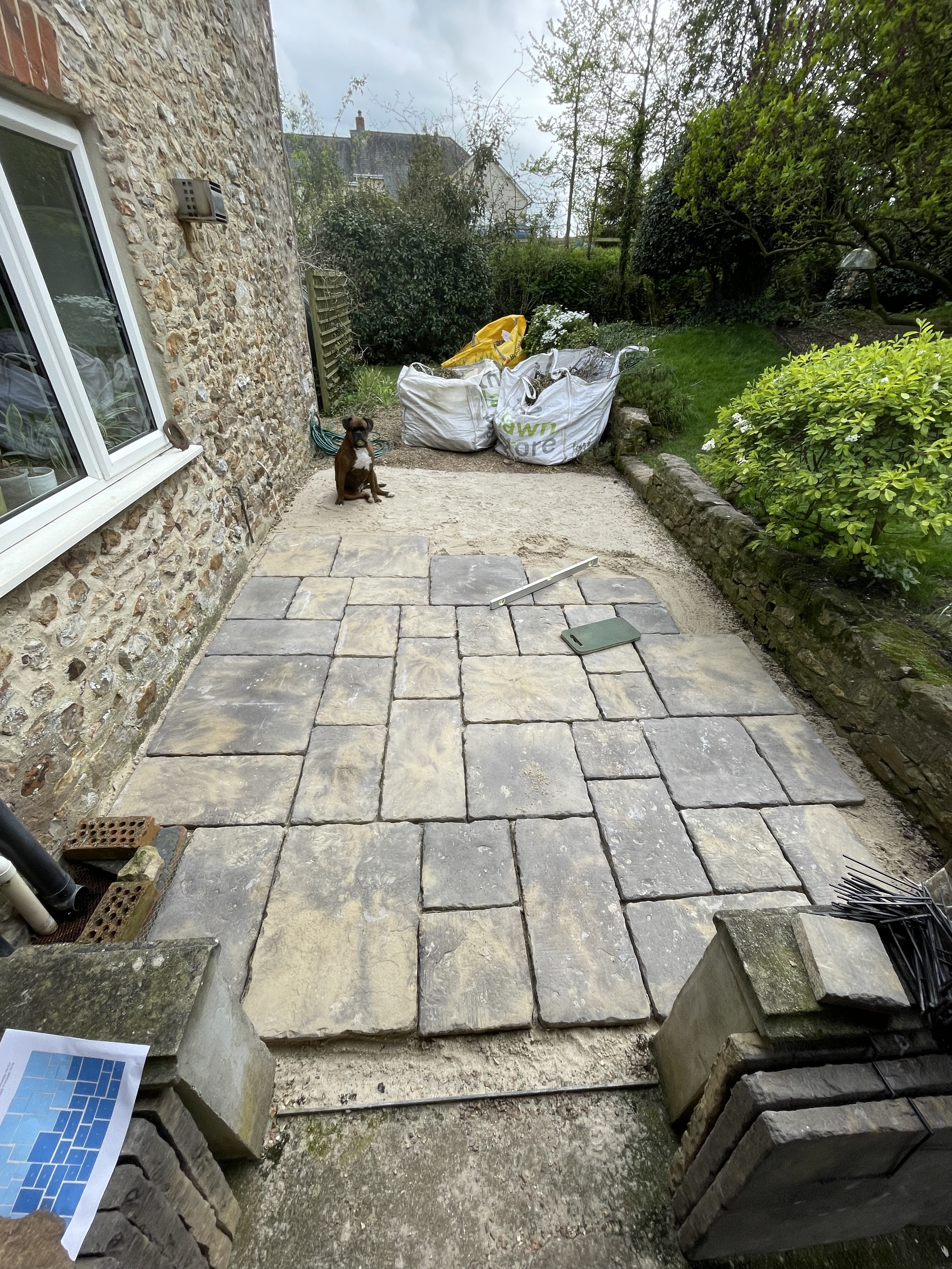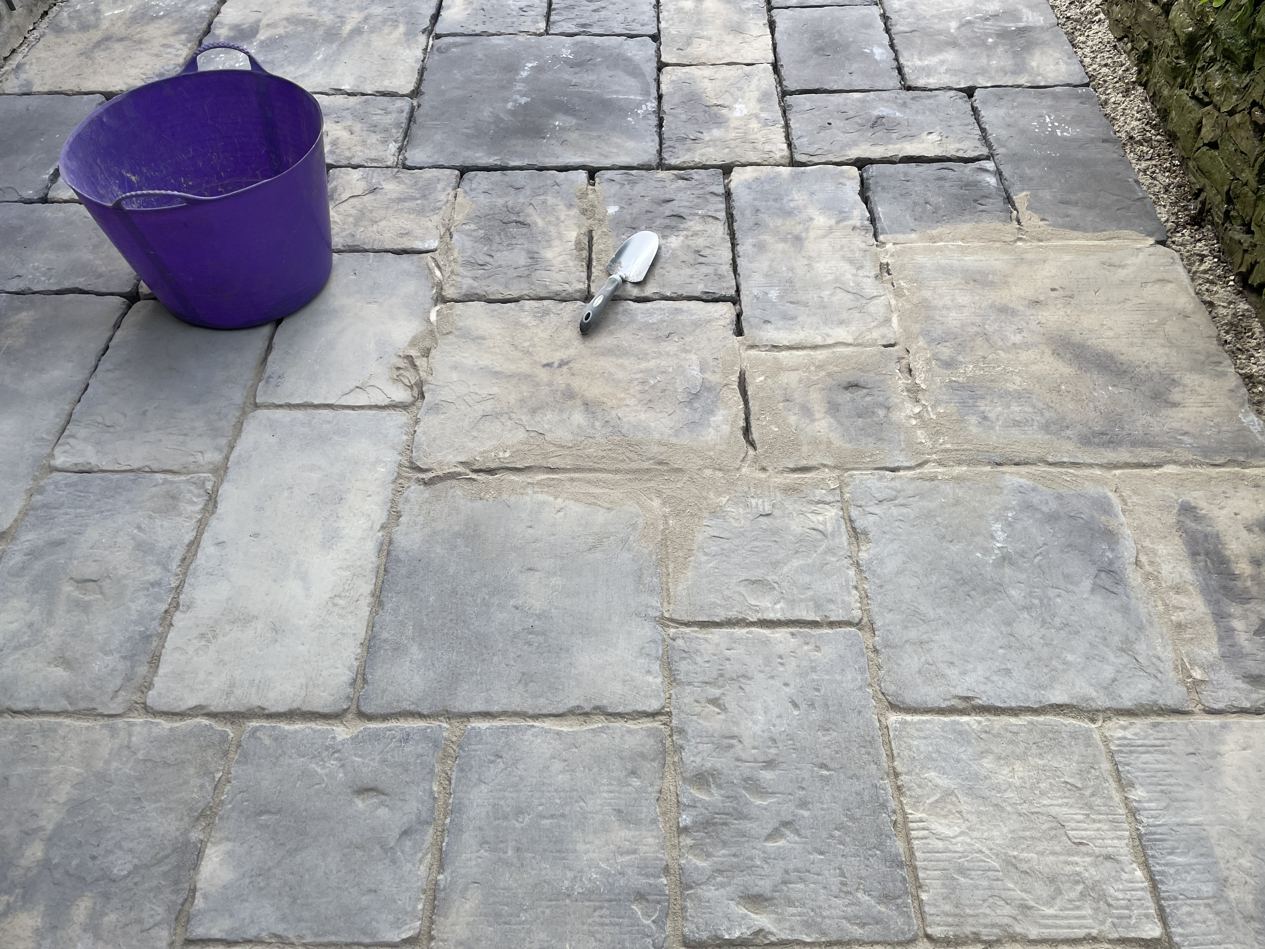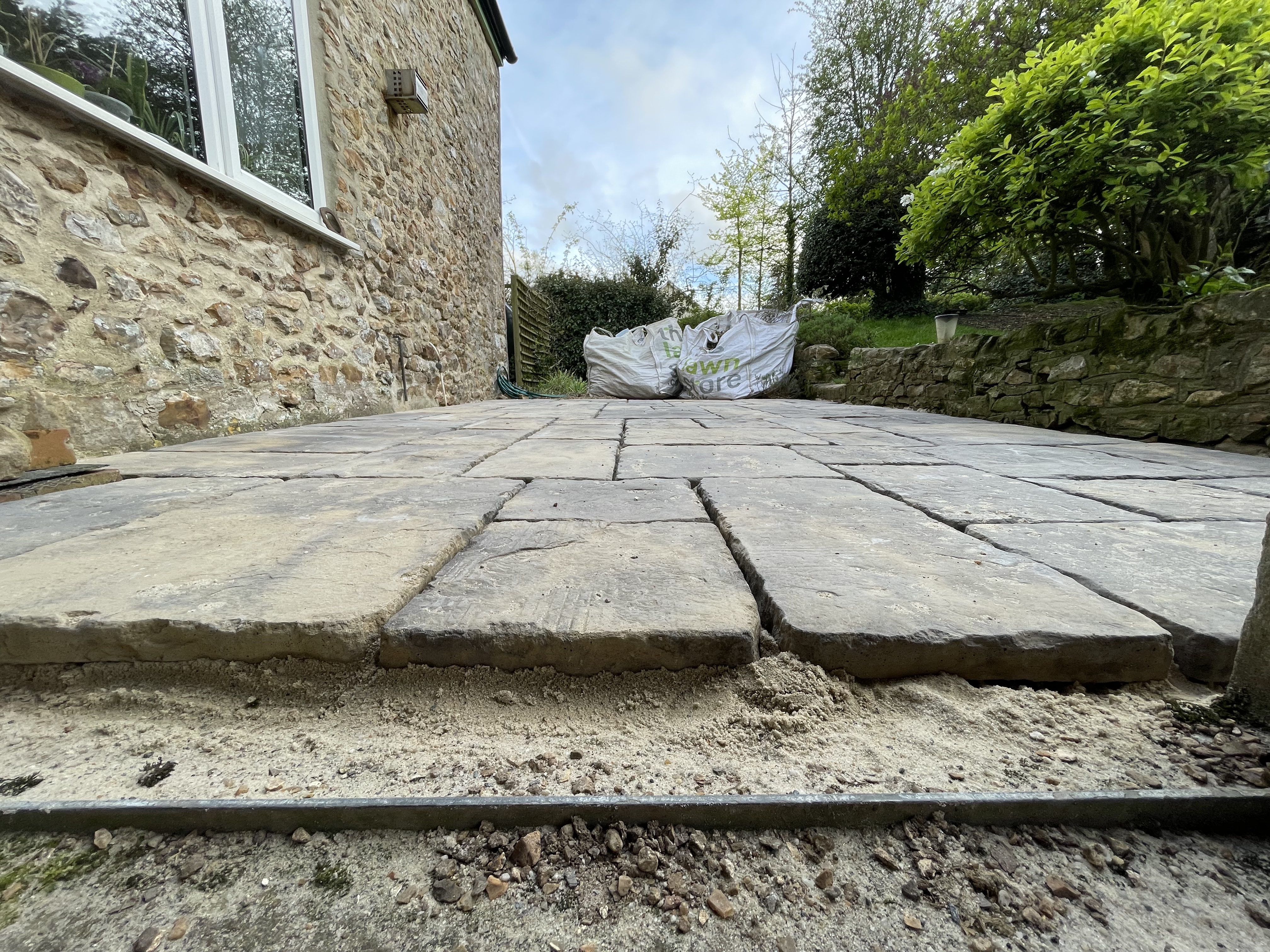 As for us – we made the most of a dry weekend by getting through some of our garden jobs. We started by laying the new patio round the back of the farmhouse. The whole area behind the house was gravelled by the previous owners and we’ve wanted to get rid of it ever since – the clay soil sticks to your boots and then picks up gravel and spreads it everywhere. We went for an old style slab to keep true to our farmhouse heritage – they’re actually moulded from slabs that were reclaimed from a 19th century Lancashire cotton mill. Not so easy to lay though as they’re not flat on the top, so trying to get a reasonable pitch that isn’t too much it feels like you’re sitting on a slope, but that allows the water to drain, is a little challenging. The pitch is also not the same direction as the hill as we’re draining the water away from the house, so it looks slightly odd from the kitchen!