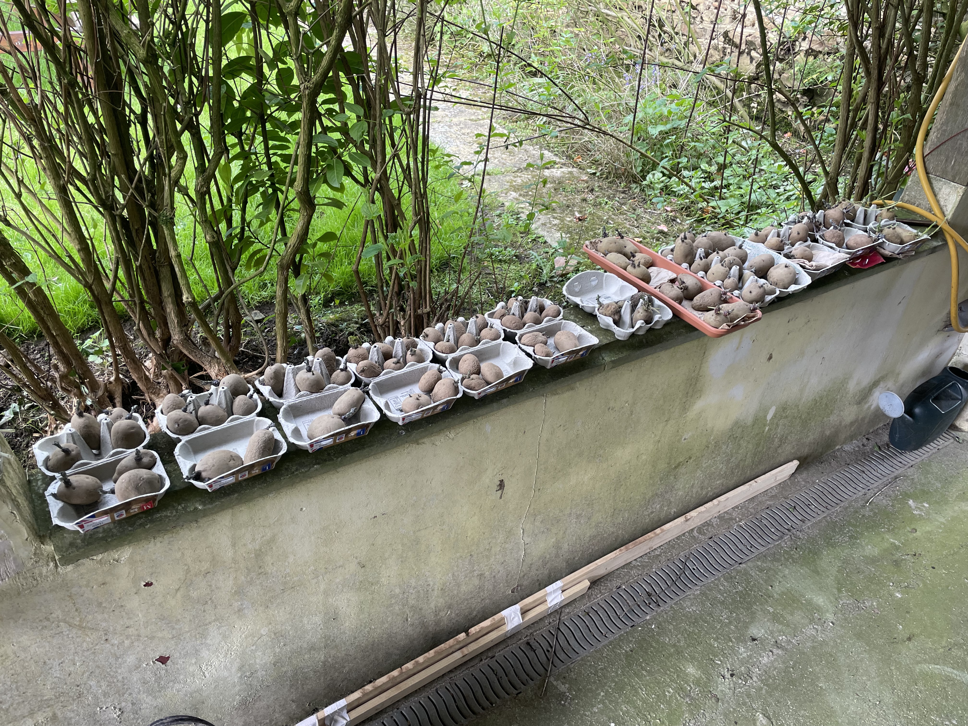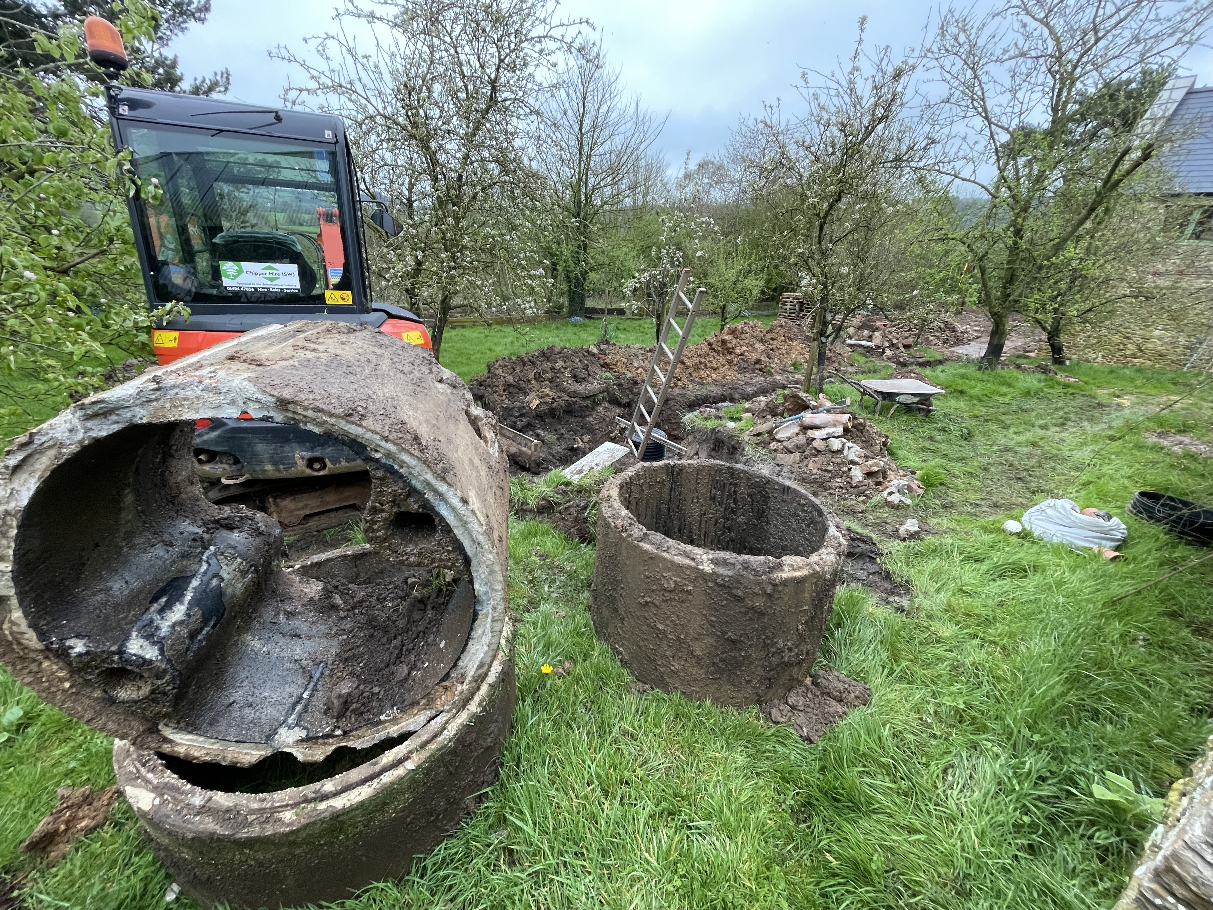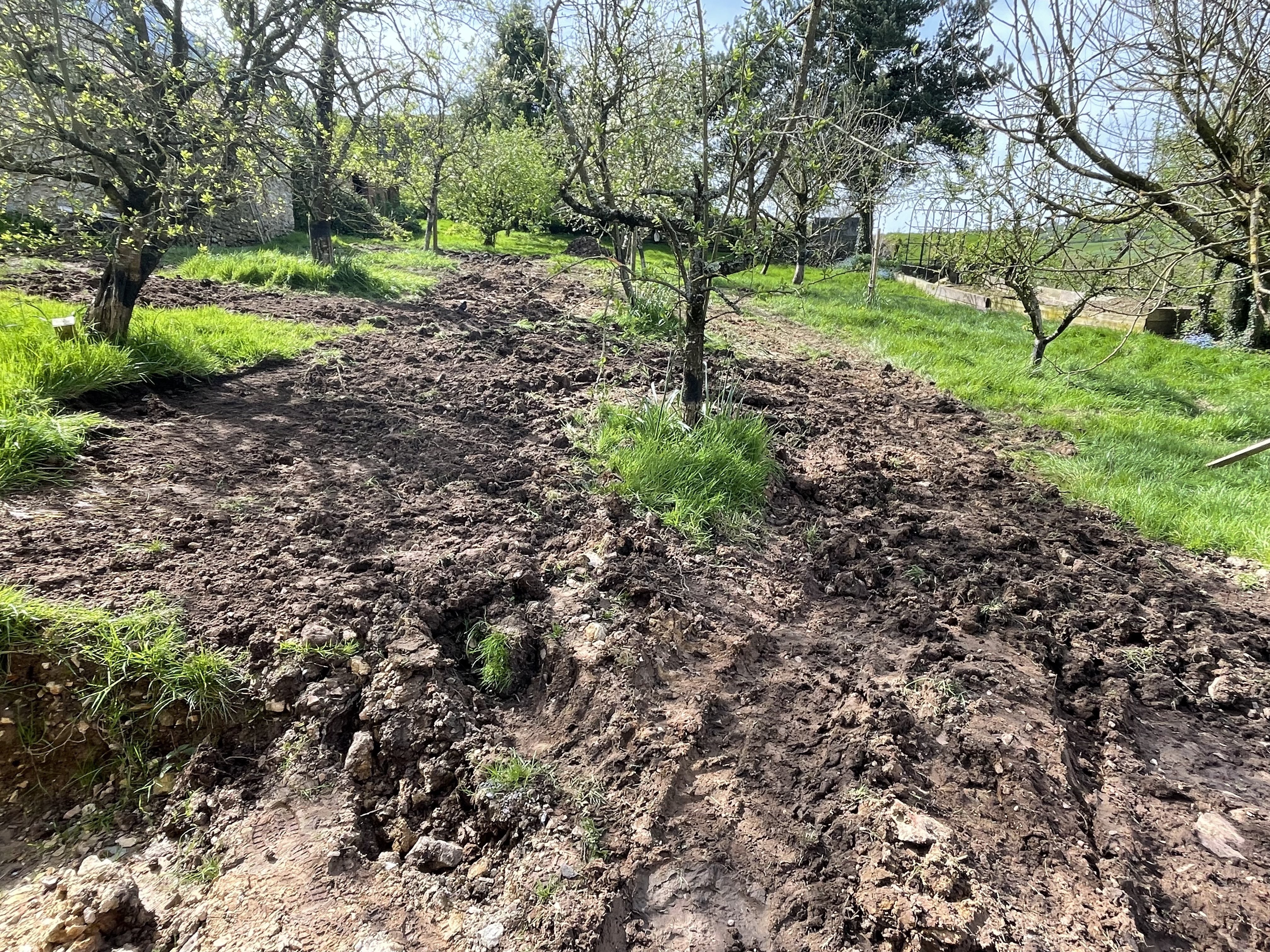 This has been a busy week all round. It’s also been a messy week for our site manager. Our farmhouse septic tank needed upgrading well before we moved in, and we’ve taken our chance with the renovations to connect it up to the new sewage treatment plant that’ll service the whole site. Our site manager, originally intending on just diverting the connection from the old tank to the new treatment plant, ended up digging the entire tank out because it was so small. He did this on what must have been the wettest day of the week and got completely covered in mud… The orchard (where the septic tank was located) doesn’t look much better now, but he filled in all the deep trenches before the weekend to make it accessible again – now we just need to hope the ground doesn’t collapse too much as it settles.