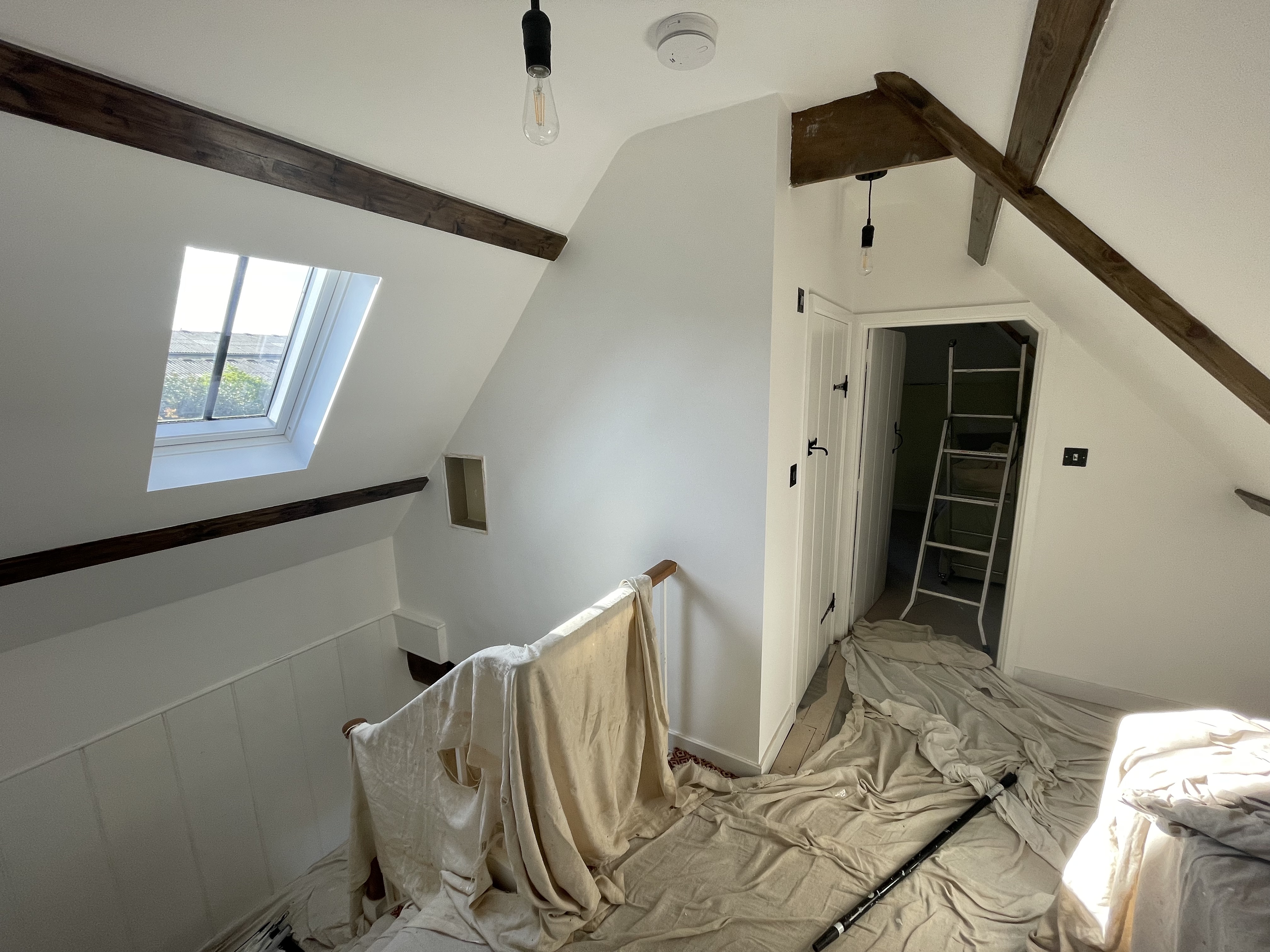 The carpet fitter is also replacing the landing carpet in the farmhouse – where we’ve extended the landing to add in the bathroom, we didn’t have enough original carpet to fill the gap, and we’re having to replace the whole thing as we couldn’t match it. John finished painting the walls to minimise the amount of painting required when the new carpet is down – it’s amazing how much cleaner and fresher it looks. We still need to do the woodwork and the ‘feature niche’ – more jobs going onto the to-go list. Lucky we’ve got a couple of long weekends coming up!