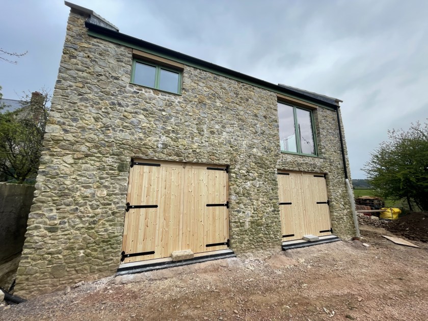 Two more tasks this week and now all of our buildings are now weathertight. The garage and laundry were both missing doors but as our builders finished installing the ceiling and walls last week, we needed to get the doors on too. At some point we’ll stain them but we couldn’t choose a colour that would fit in without seeing them in situ, so our builders have treated them for the time being and we’ll add that to our ever-growing to do list.