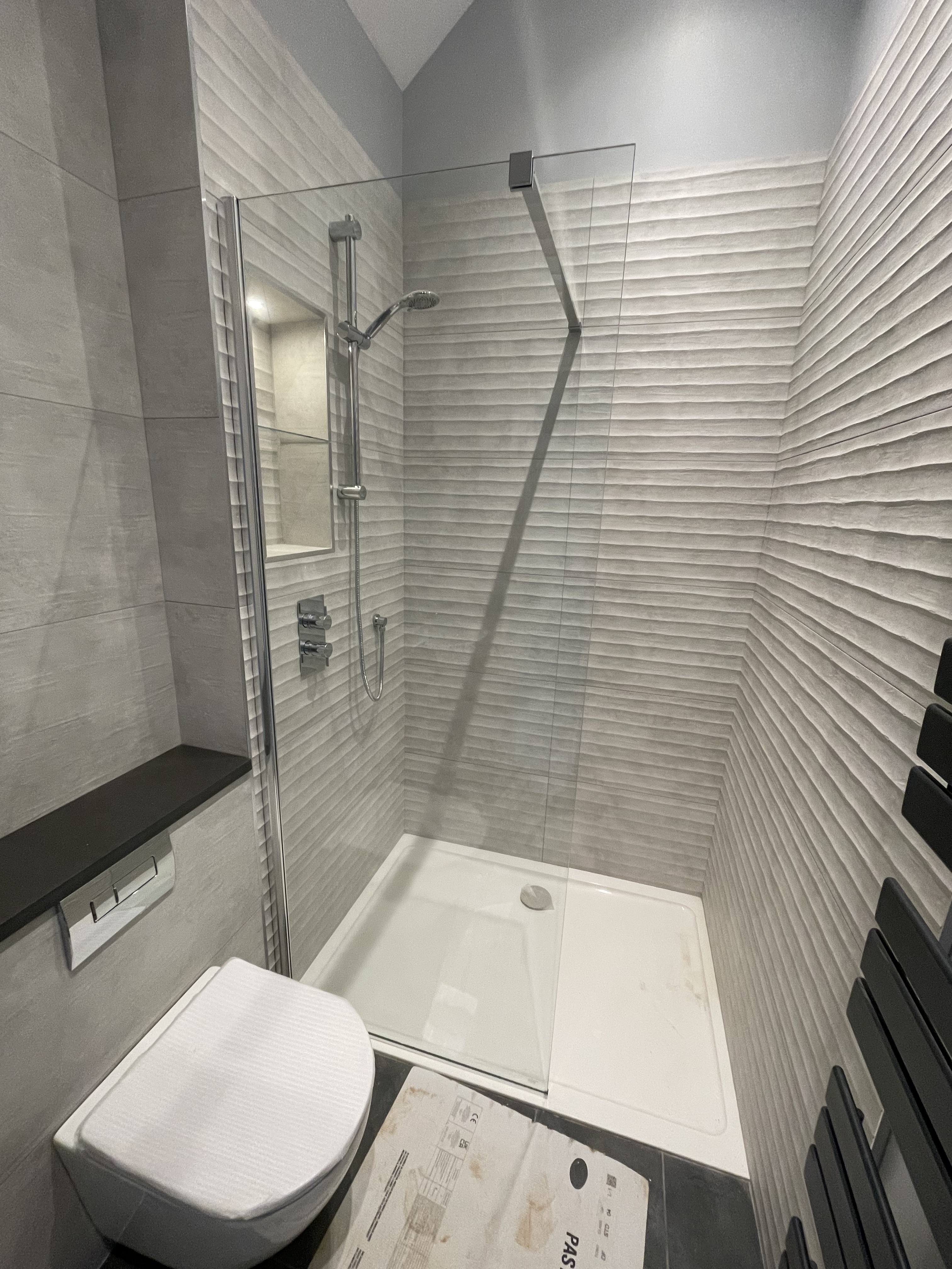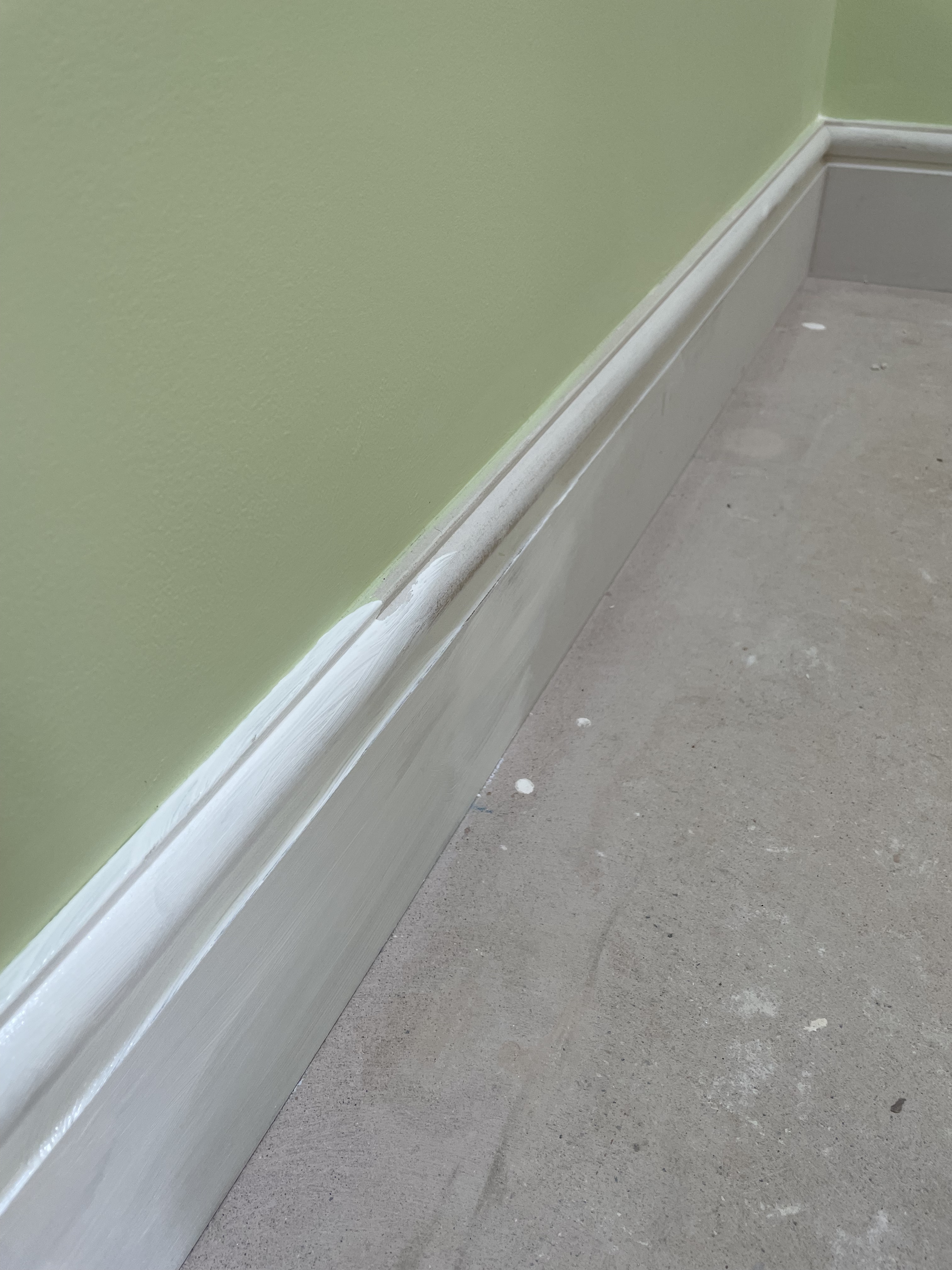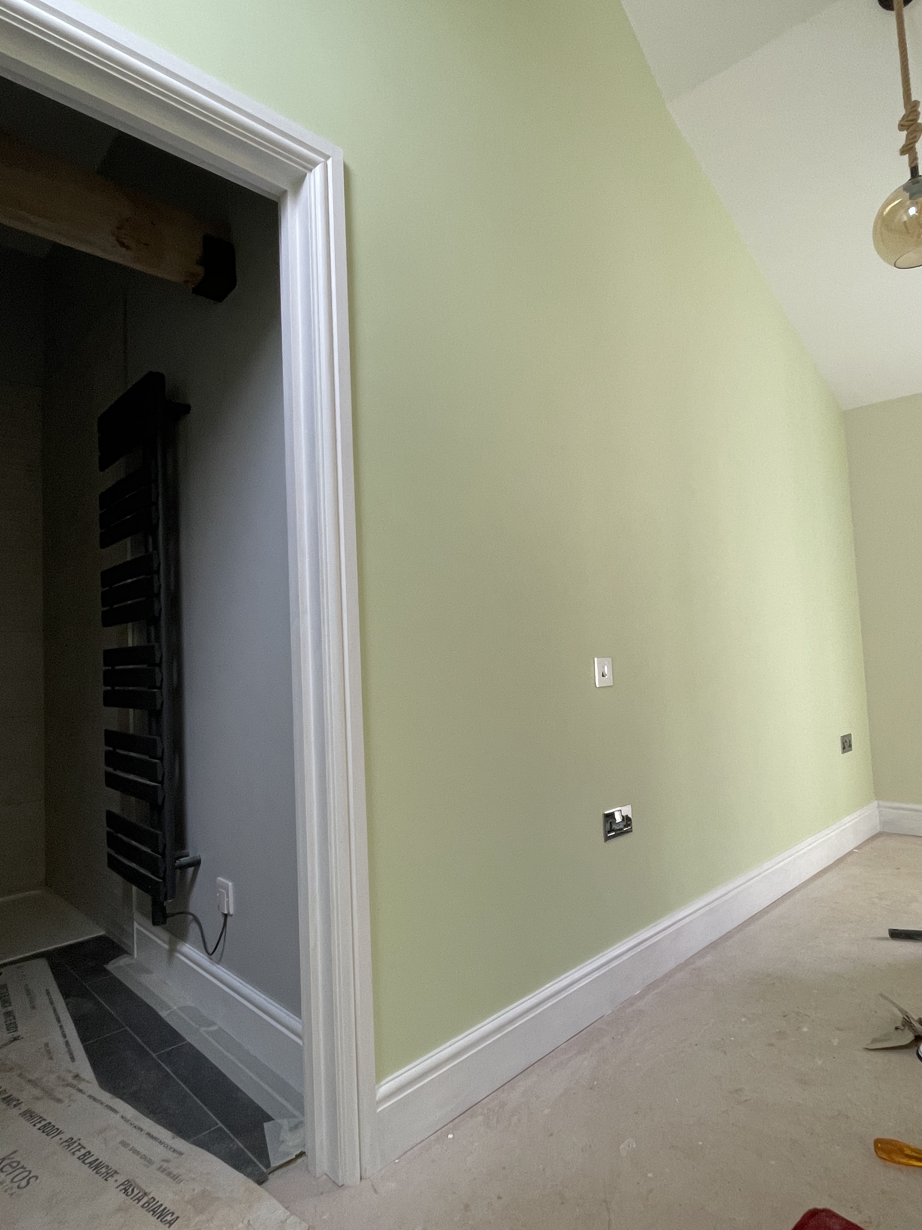 Our new house feels like it’s inching along too. The electricians have been on site again to do a few more jobs in the kitchen – installing the extractor fan and adding lights beneath the kitchen cupboards. And the screen has been installed in our shower – this was delayed as the original one Easy Bathrooms included in their design was far too long. We’ve spent most of the weekend sanding down the skirting boards and architraves to try and get a smooth finish, which is harder than it seems and in some places annoyingly impossible. We prioritised the two bedrooms ahead of the carpet going down next week – safe to say painting woodwork is not the most fun way to spend a weekend! It looks like a third coat may be required in some places as well…