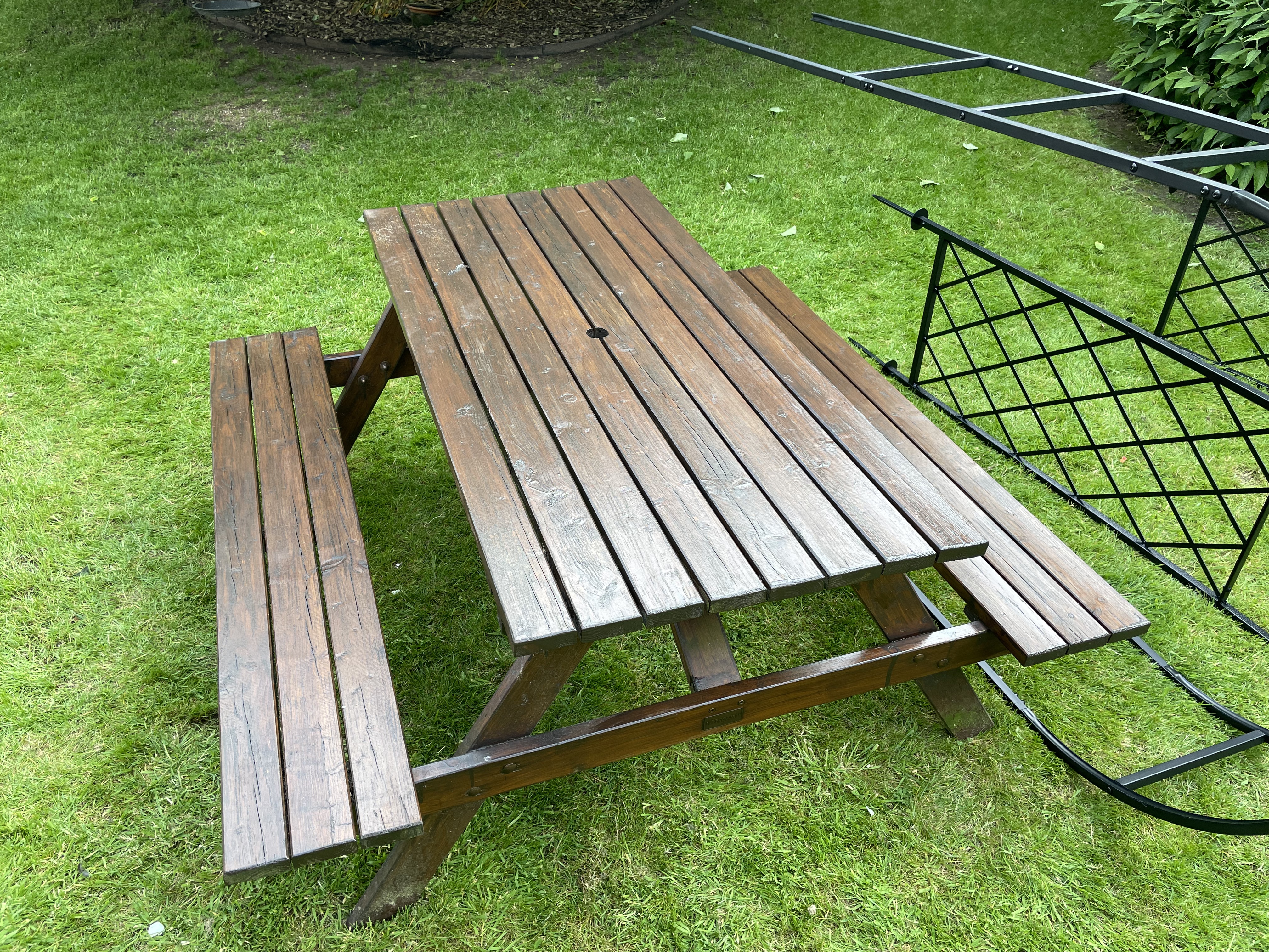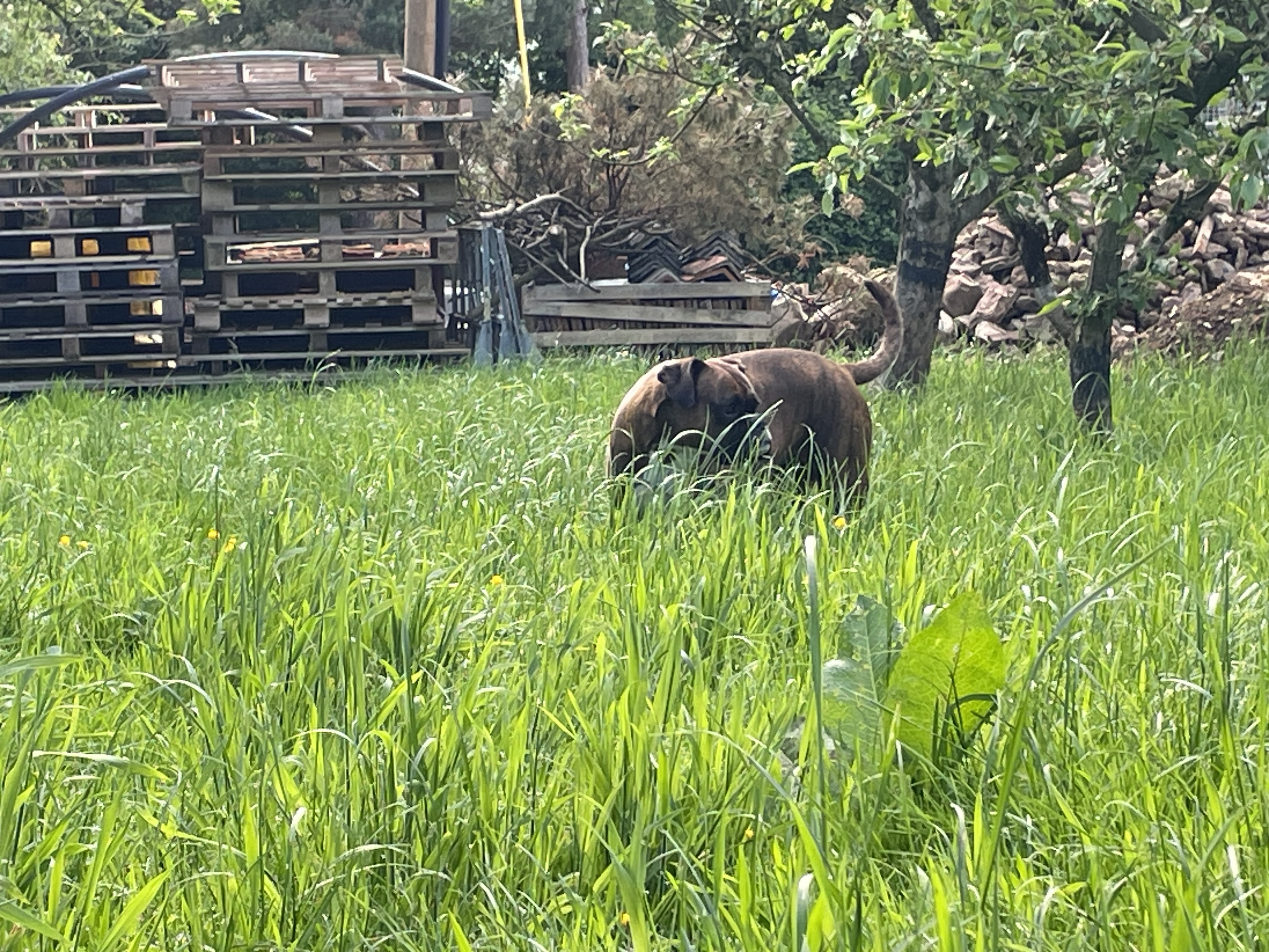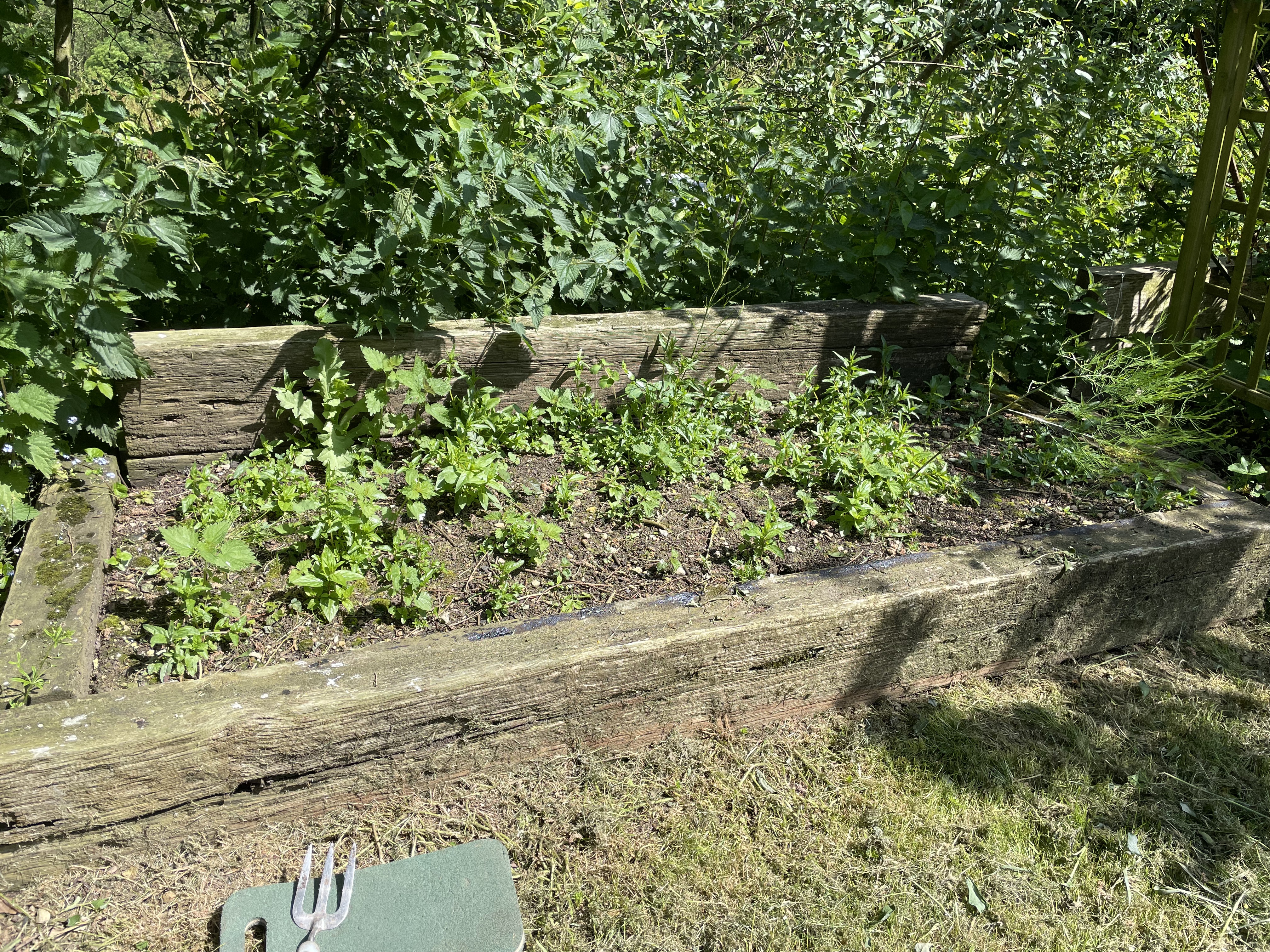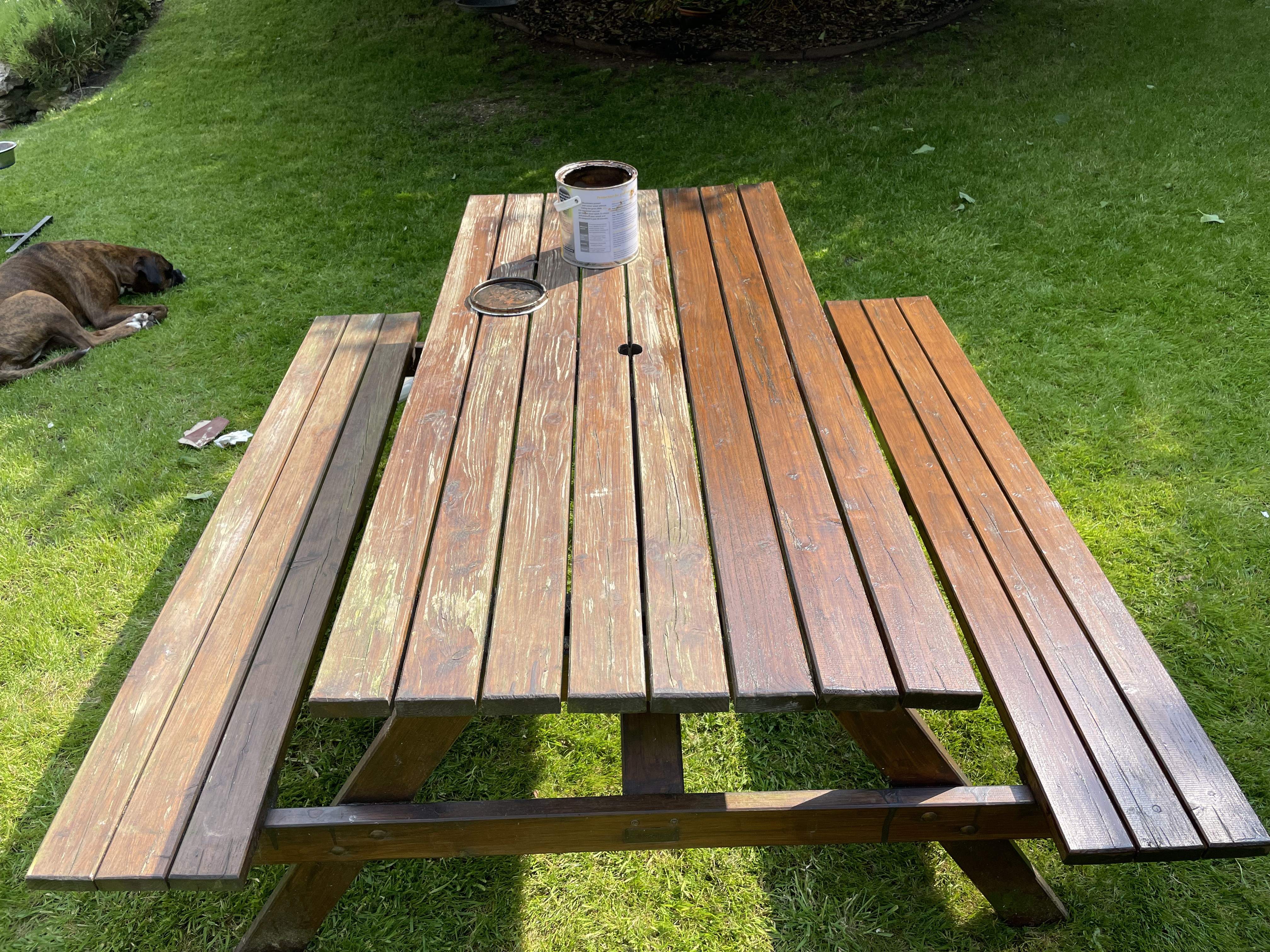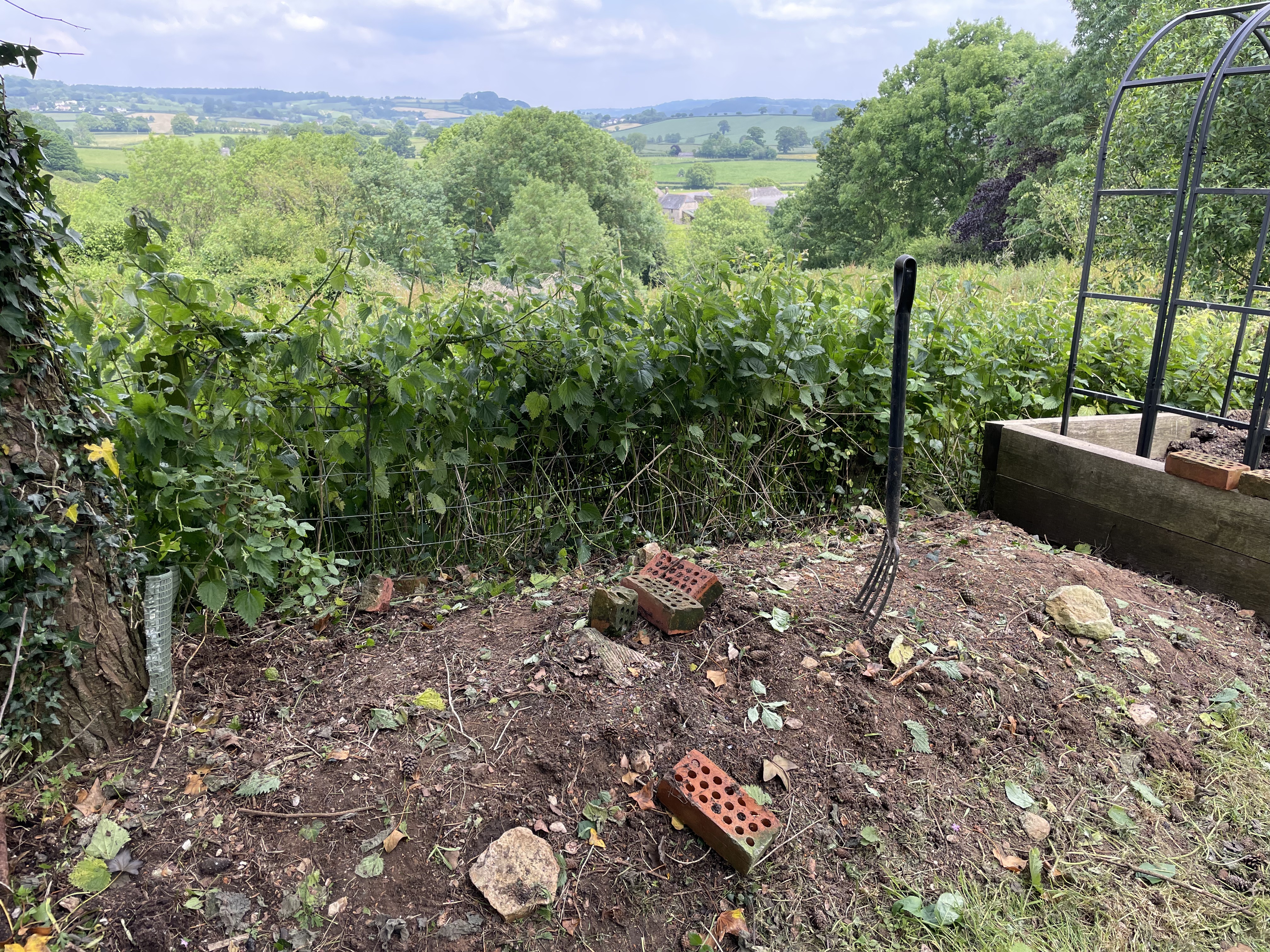 Most of the work we’ve done ourselves this week has been to catch up on outside jobs and maintenance – cutting the foot-long grass in the orchard and wood where we’ve not been able to get a mower through until now; and planting out a few more vegetable plants. The new asparagus crowns should have gone in two months ago – I’m pretty sure it’s too late and they’ve died but better to try than just throw them away. With some help from our visitors we made the final two garden arches that will go along the brick path and give the kitchen garden a bit more screening from the front lawn; and re-stained one of our picnic benches before it goes down to the wood – not really an essential job but one we could do in the vicinity of our new patio and still be sociable!