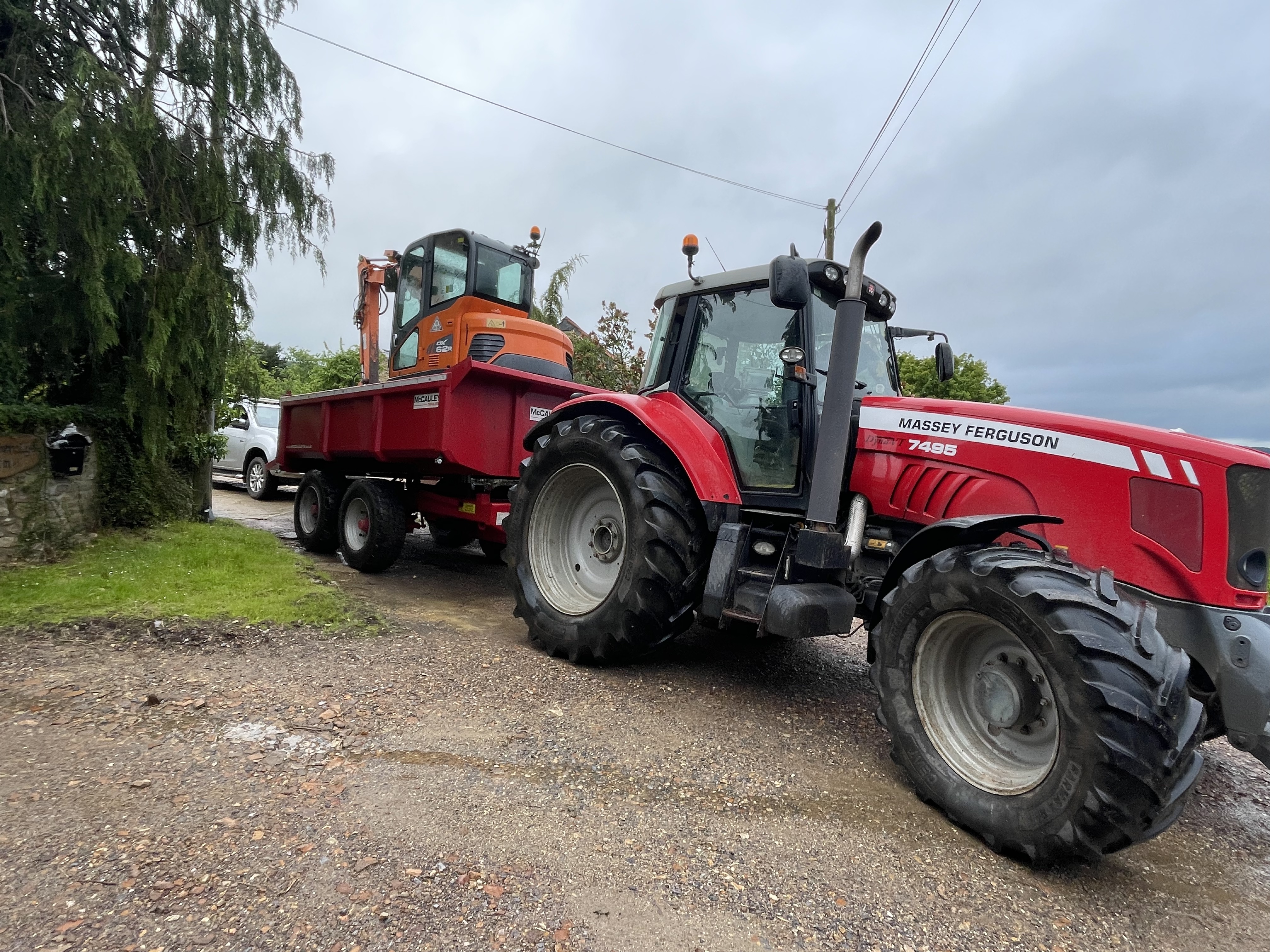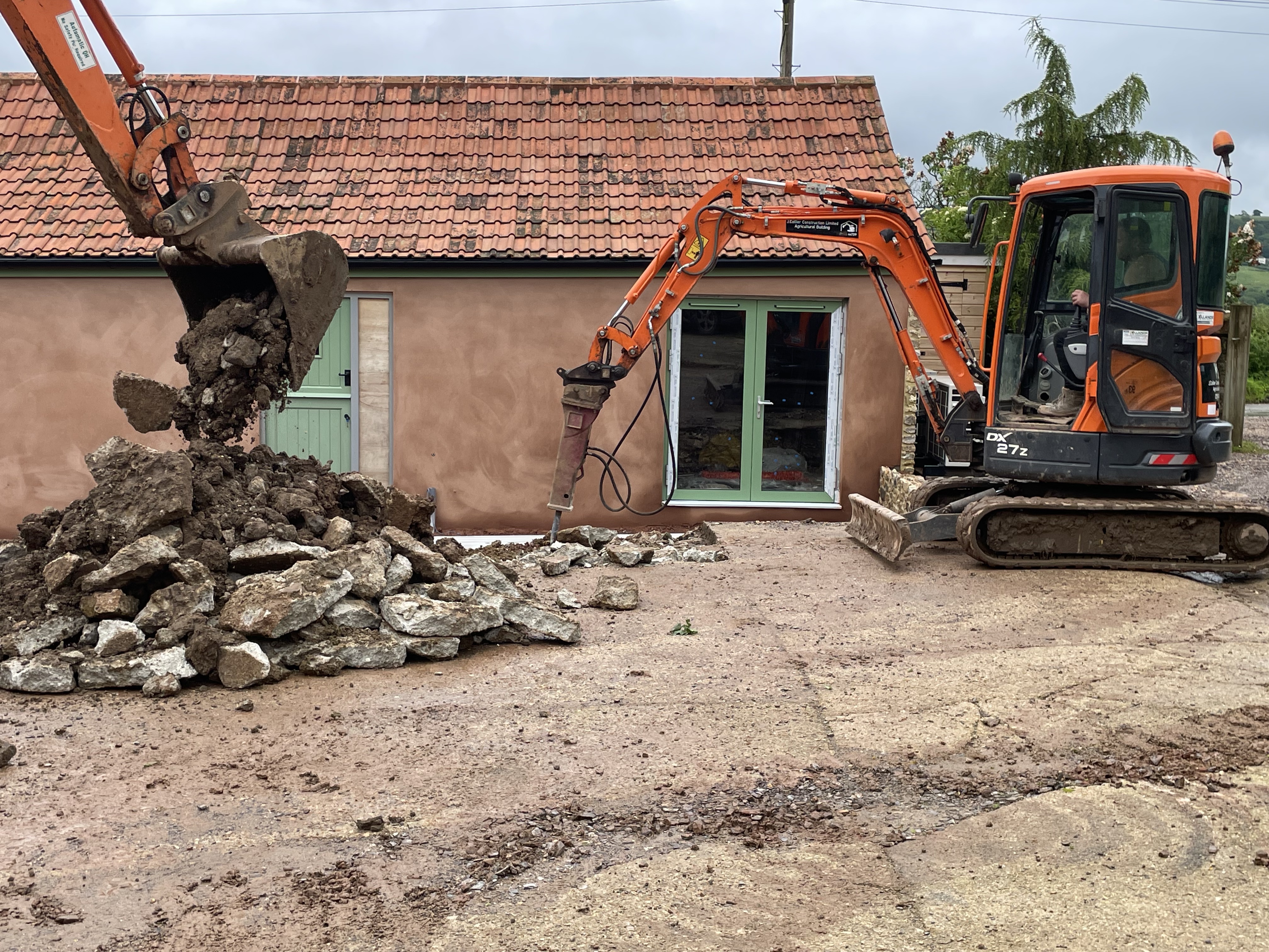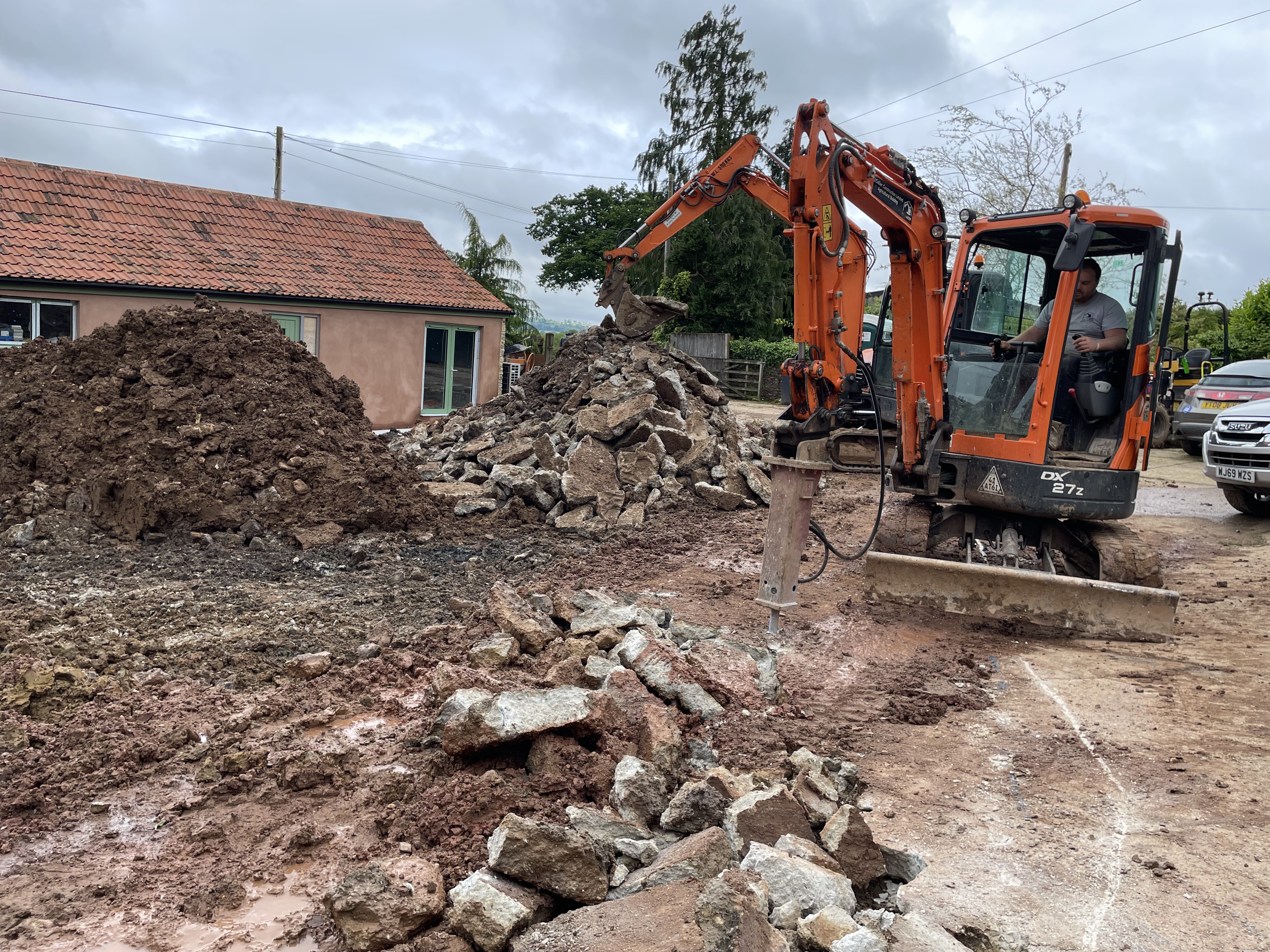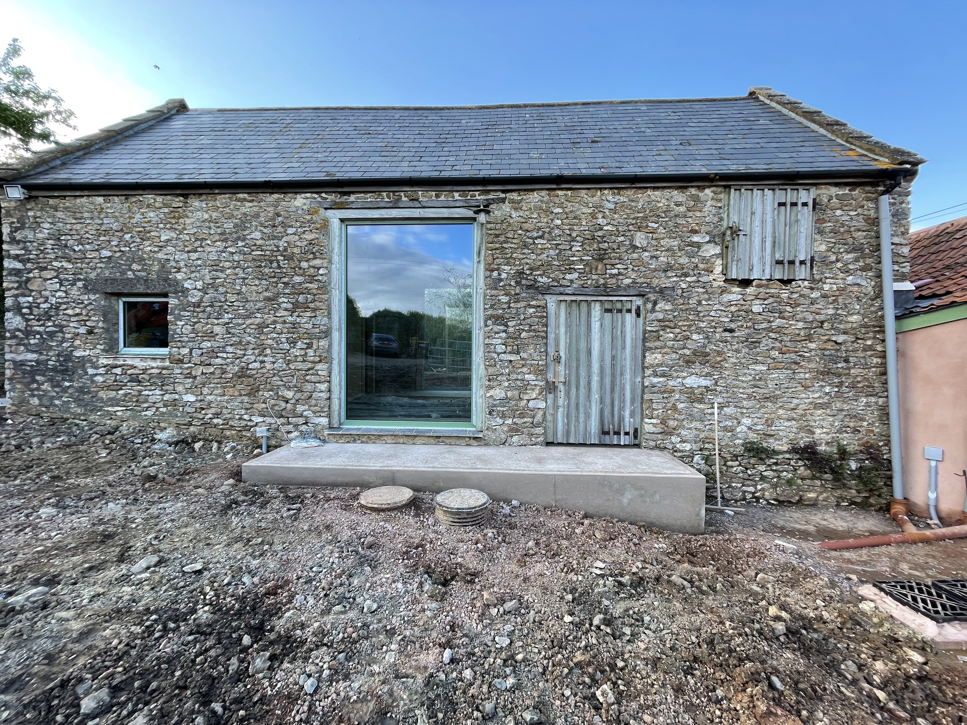 Our builder has been busy concreting various smaller parts of the site in preparation for the main concreting work. He’s created the ramp up to the three-bed barn, which he built the shuttering for last week. It’s the only part of the yard which isn’t flat because without it, we wouldn’t be able to have step-free access into the building and it wouldn’t pass building regulations. And he’s concreted the base of our external dog shower and added shuttering around the top so that when the new concrete is poured it creates a hole that we can fill with pebbles for a nice clean look. He’s also concreted the ducts in for the EV chargers – we’re only installing one for now but wanted to future-proof the site as much as possible to minimise disruptive building work required when we have guests staying.