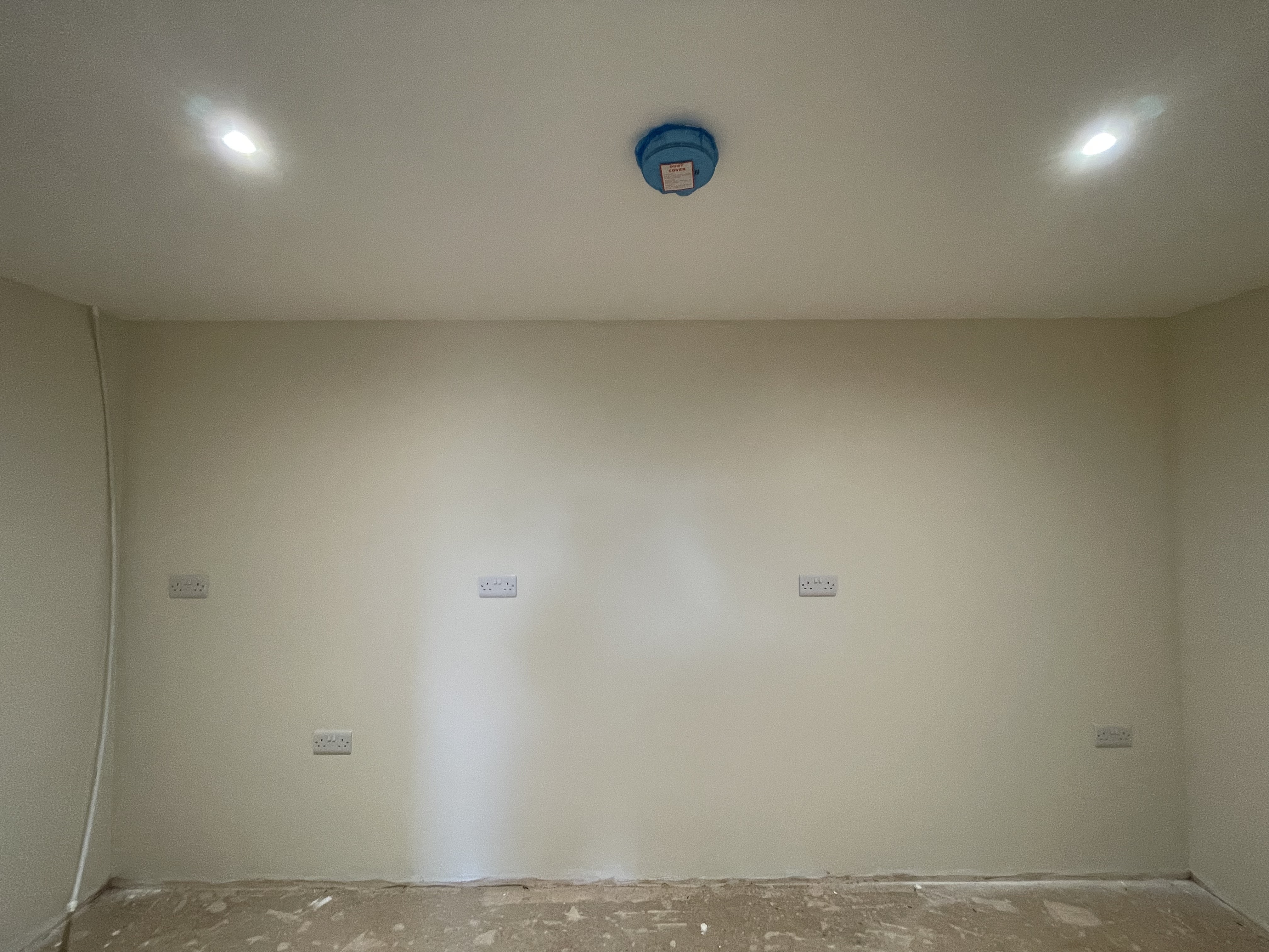 We’ve also had our electricians on site for the week, working incredibly hard to finish off snagging in our new house and install all the electrics for the communal building. We’ve now got lights in all rooms; all the plug sockets and smoke alarms have been installed, and we have extractor fans in the laundries. The main electrics are in place for the solar tiles – hopefully if British Gas can upgrade our electricity meter on Monday then we can get the building live and get the solar tile company back to install their kit. With all the sunshine we’re getting, we want to start generating power!