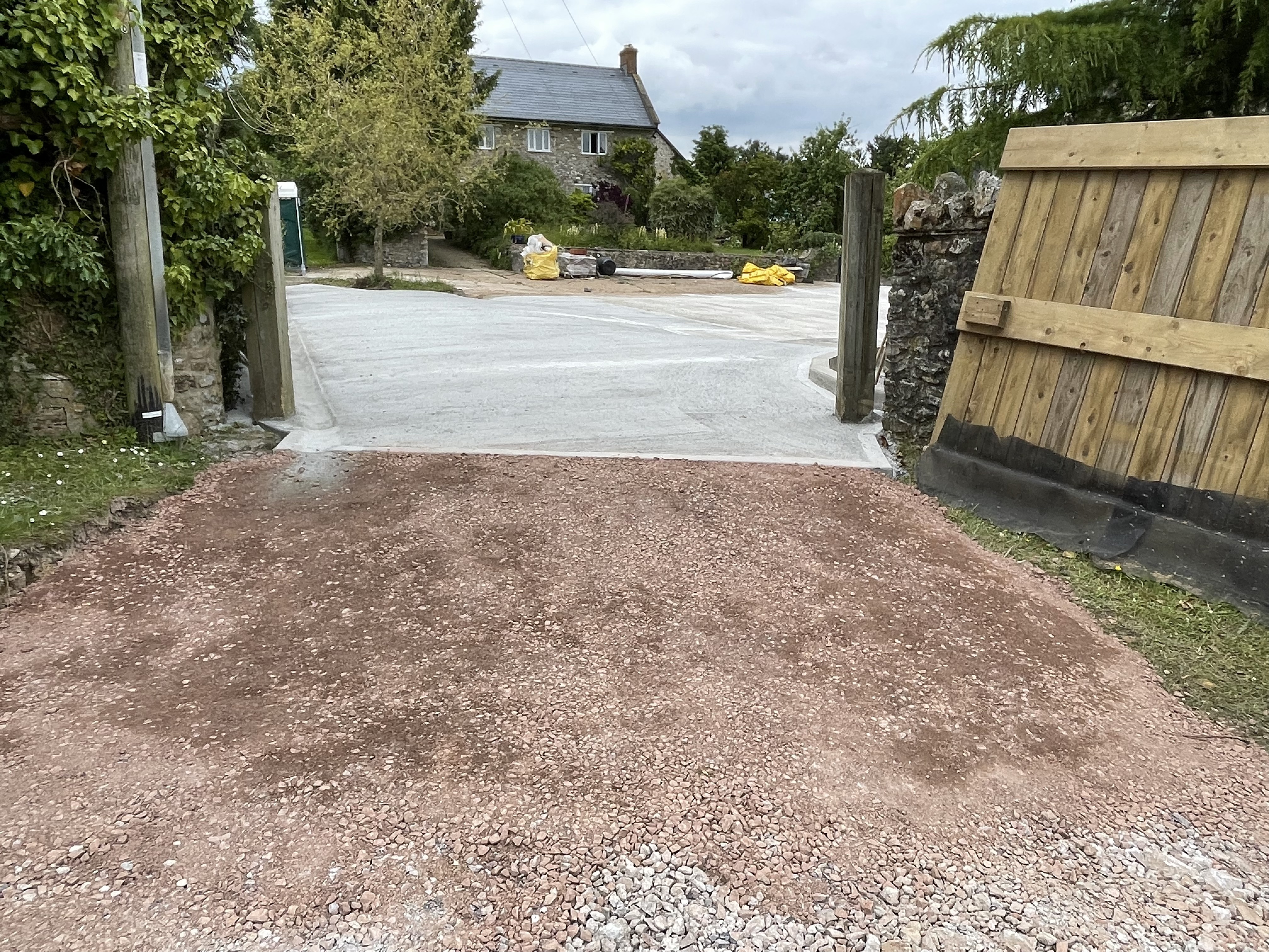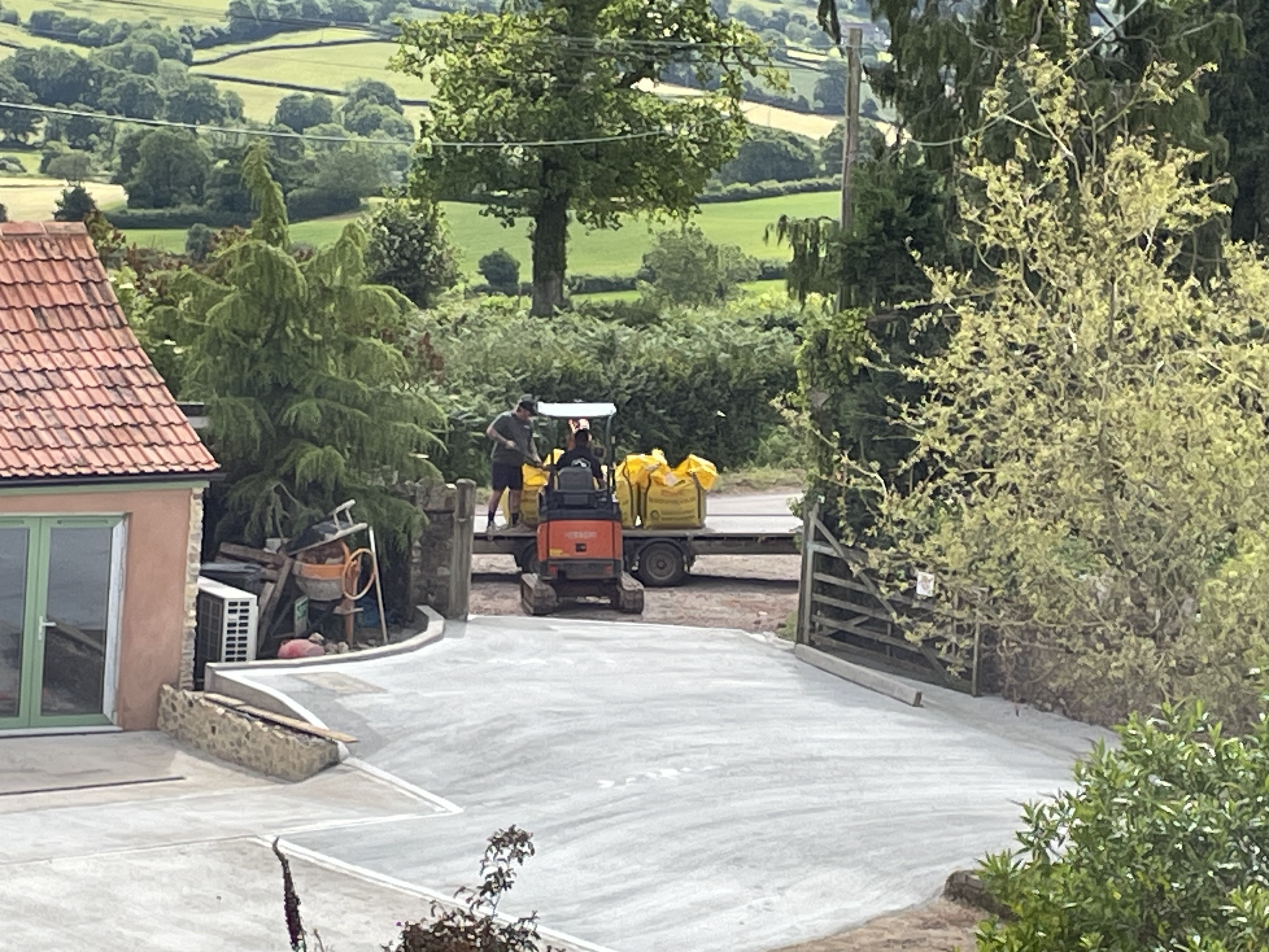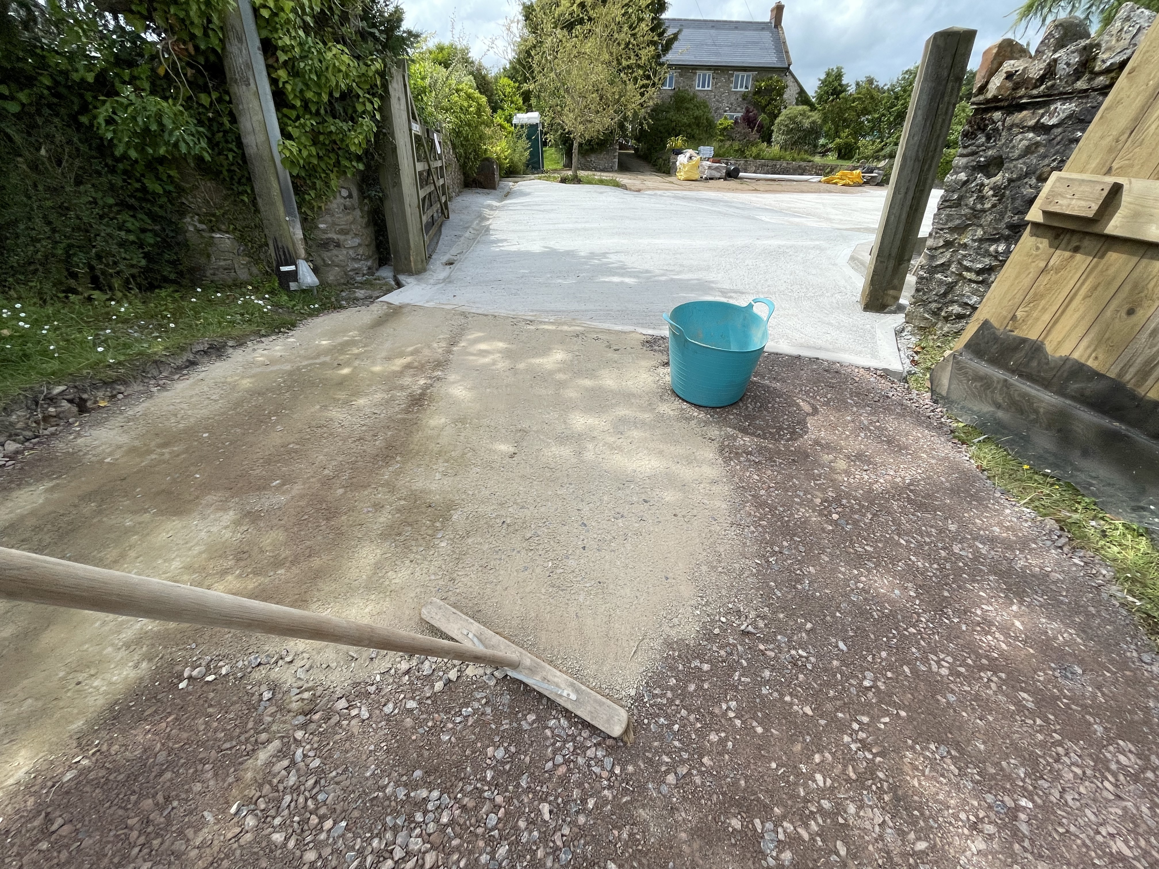 The concrete contractors came back during the week to stone up the drive outside our gate, taking it to the level of the concrete. We sprinkled cement on top so it’s more likely to stay in position when we get deluges of rain – learning from our neighbour’s experience when their driveway washed out down the lane!