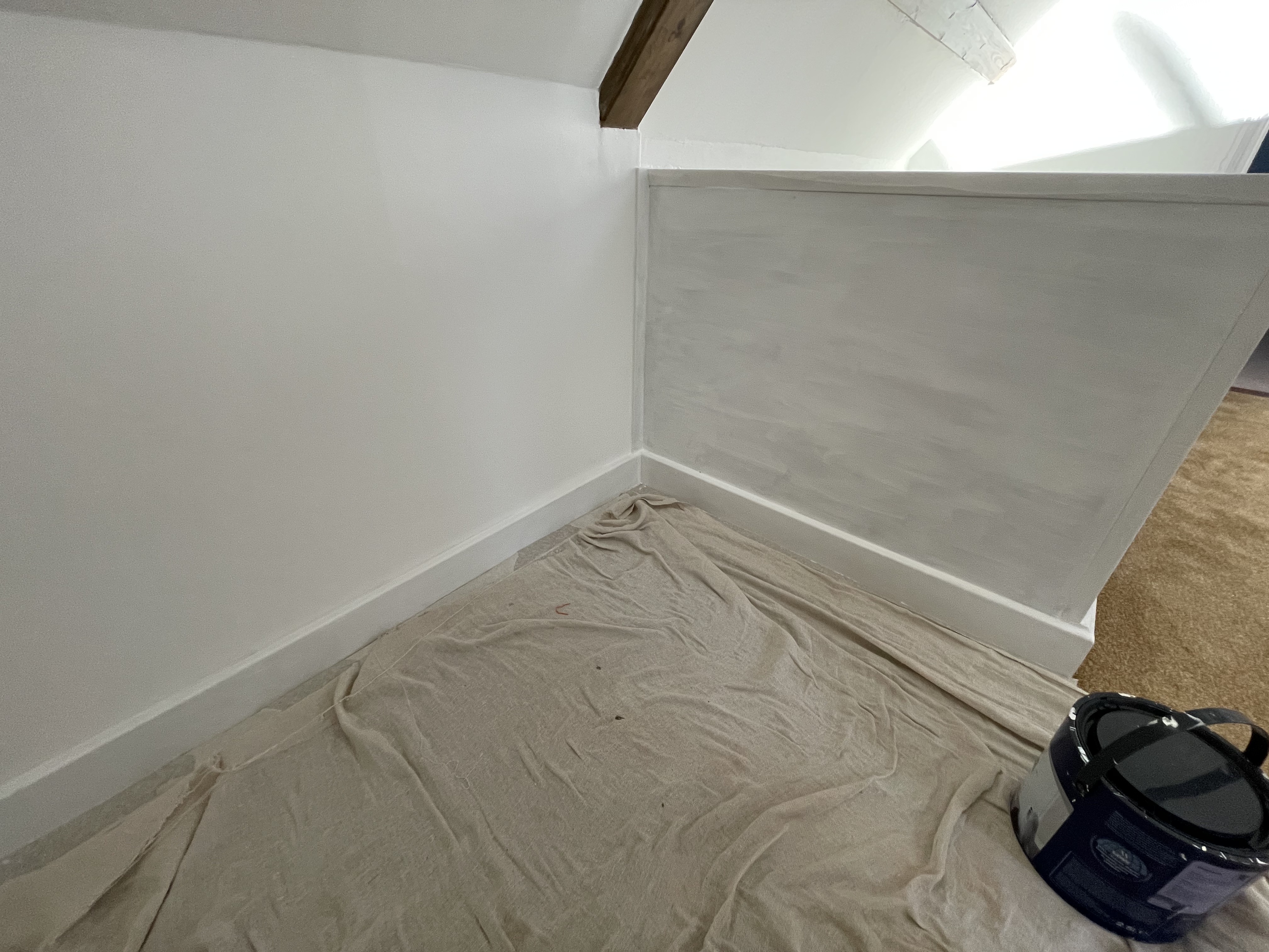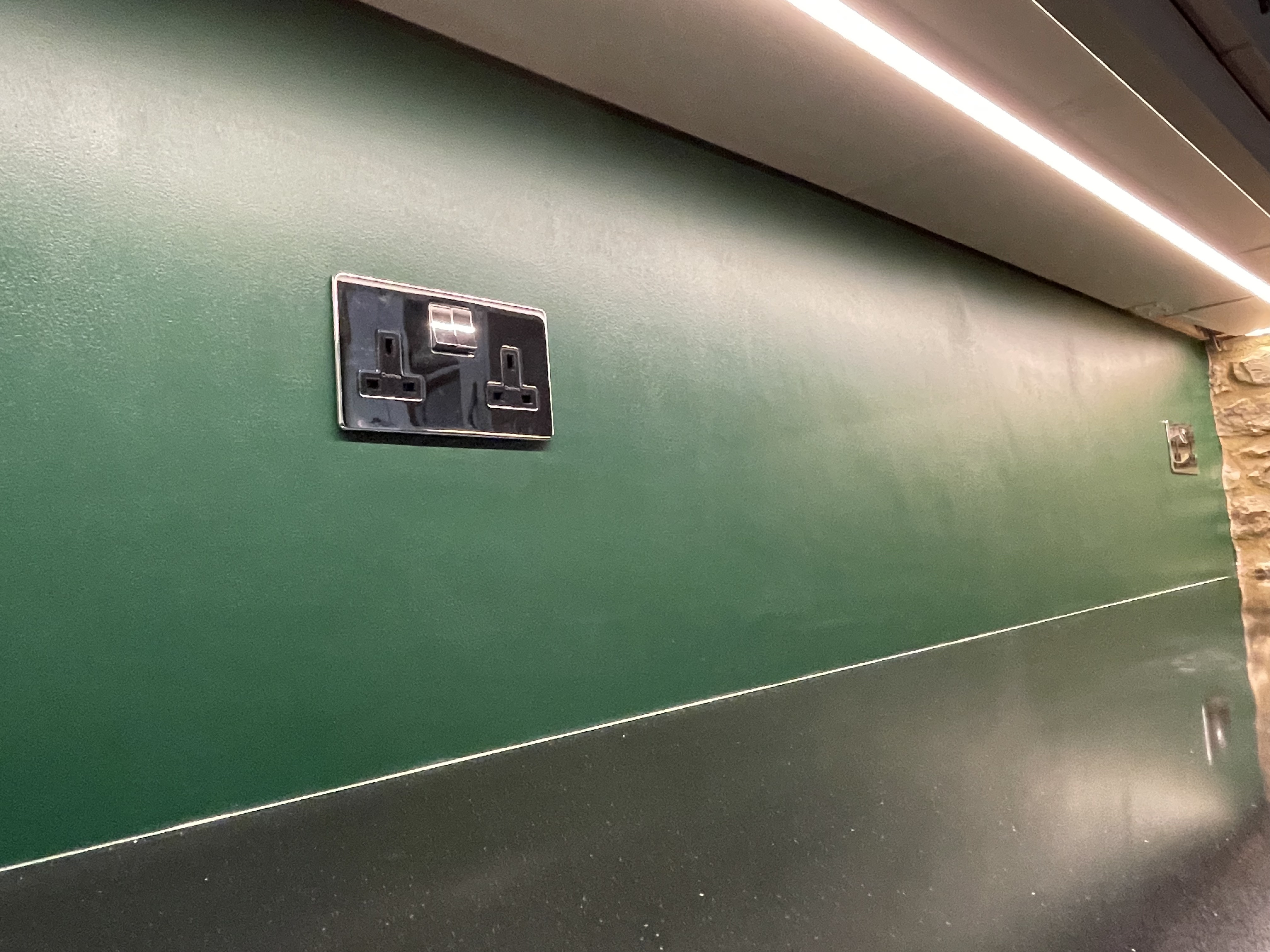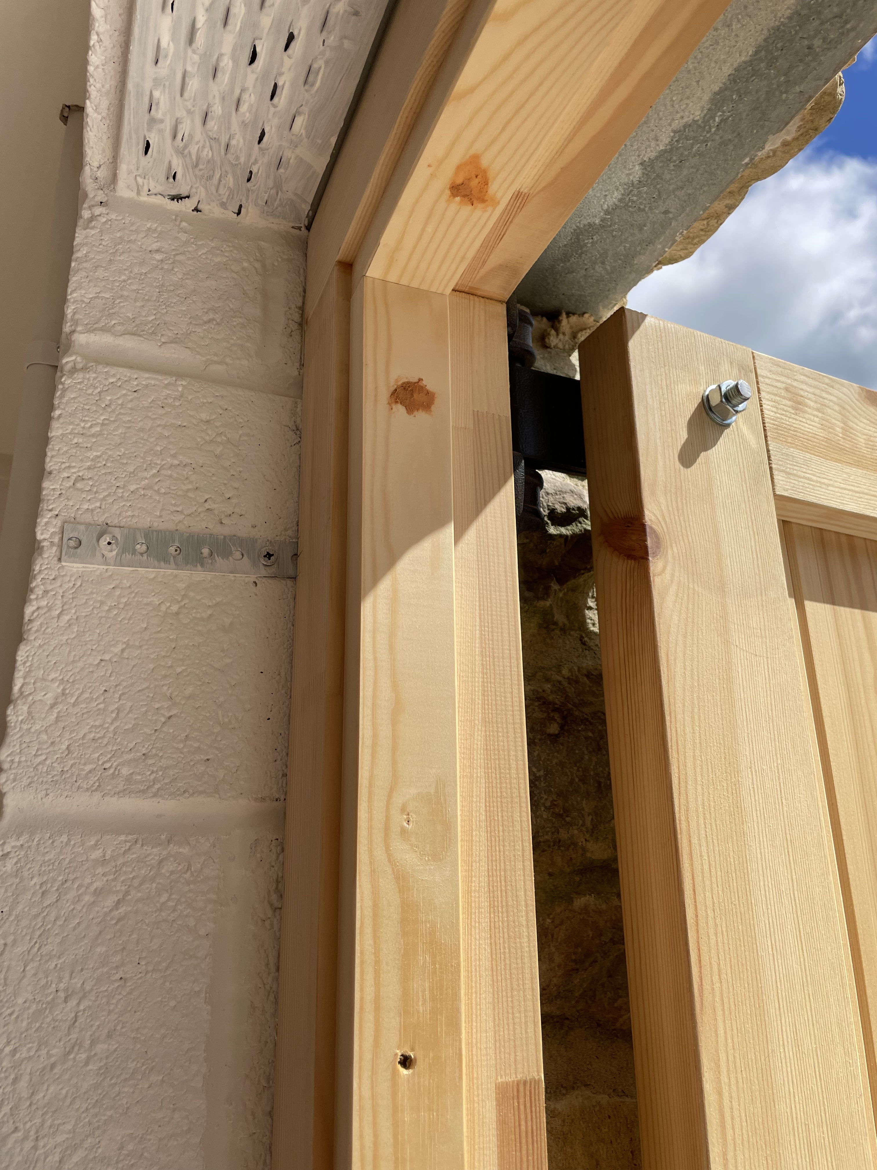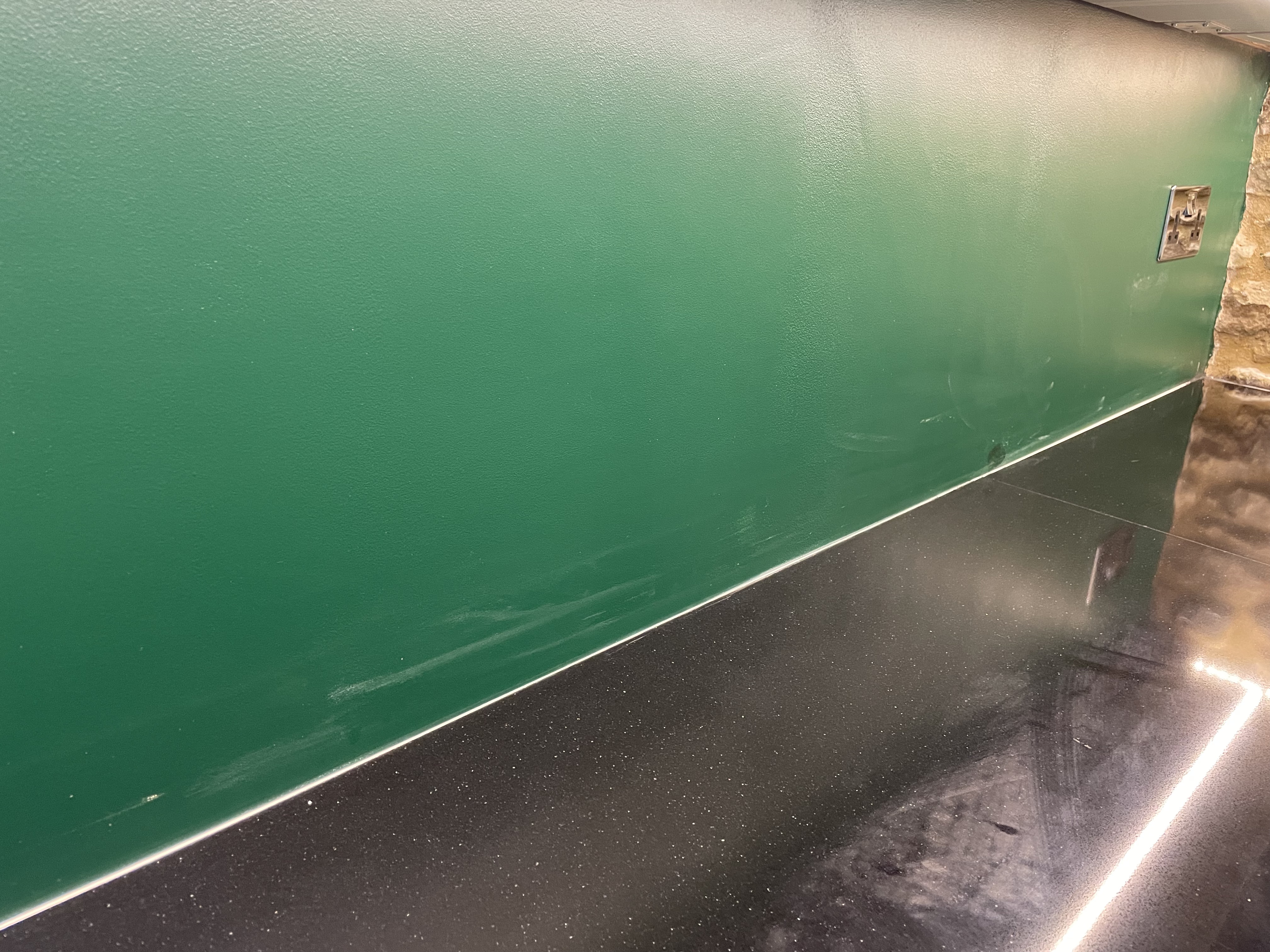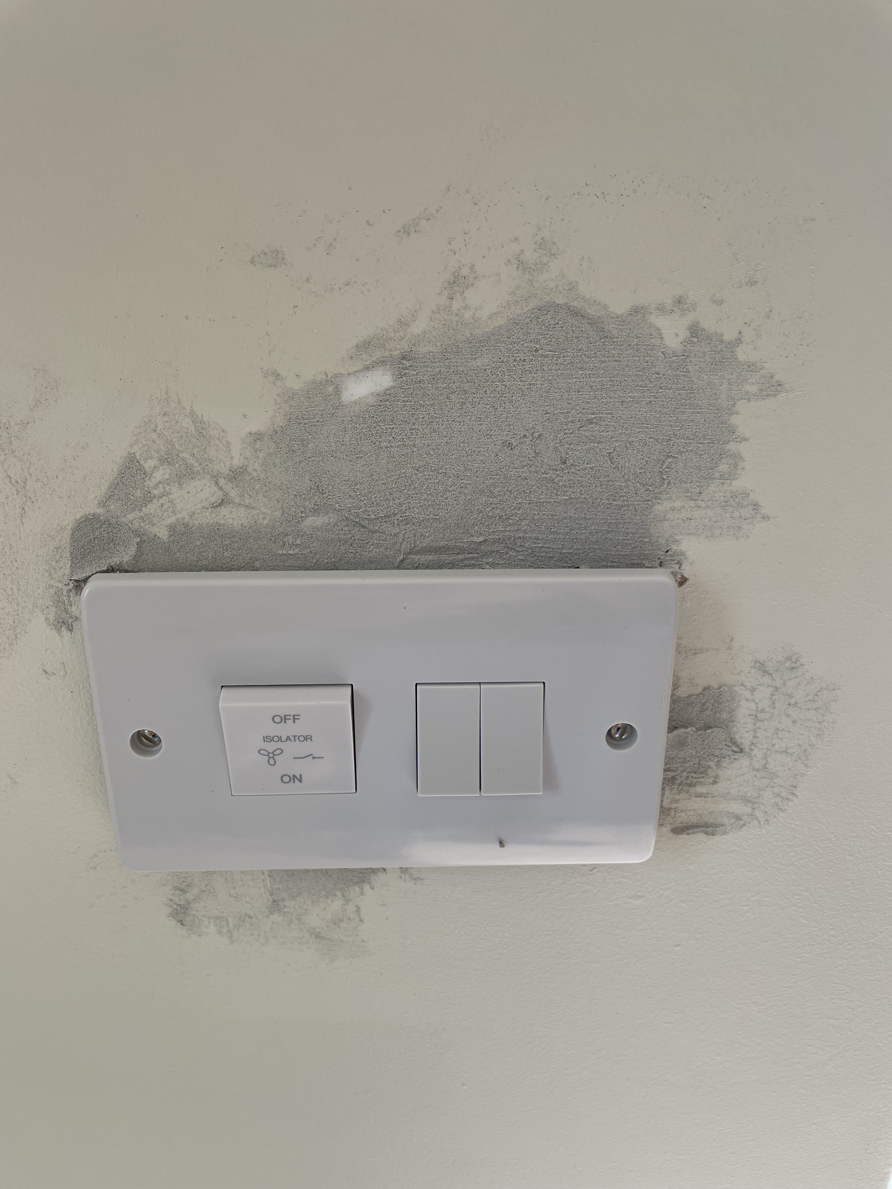 The rest of the week has definitely been filled with odd jobs around the place. In the farmhouse we’ve started painting the woodwork on the top floor landing (the final bit left) and we painted the soffit board below the roof, which we’d missed when the scaffolding was up. The window company came to replace the final blown window too so that’s one job ticked off the list. And in the laundry we put the first layer of Polyfilla around the light switch and filled in the screw holes on the door frame to make it a bit neater. We started edging the high walls in the communal games room so we can finish with the tower as soon as possible – the blue has turned out a little brighter than it was meant to so I hope It looks ok!