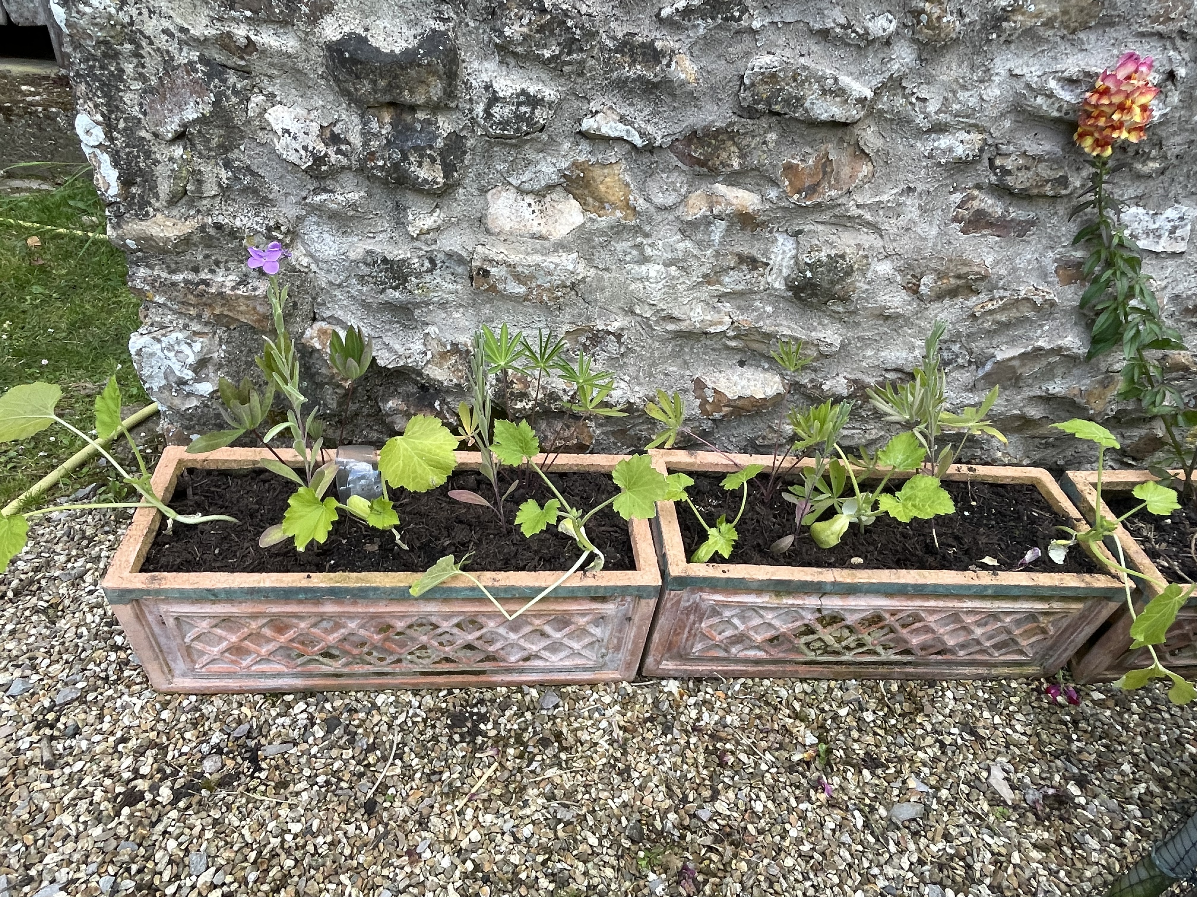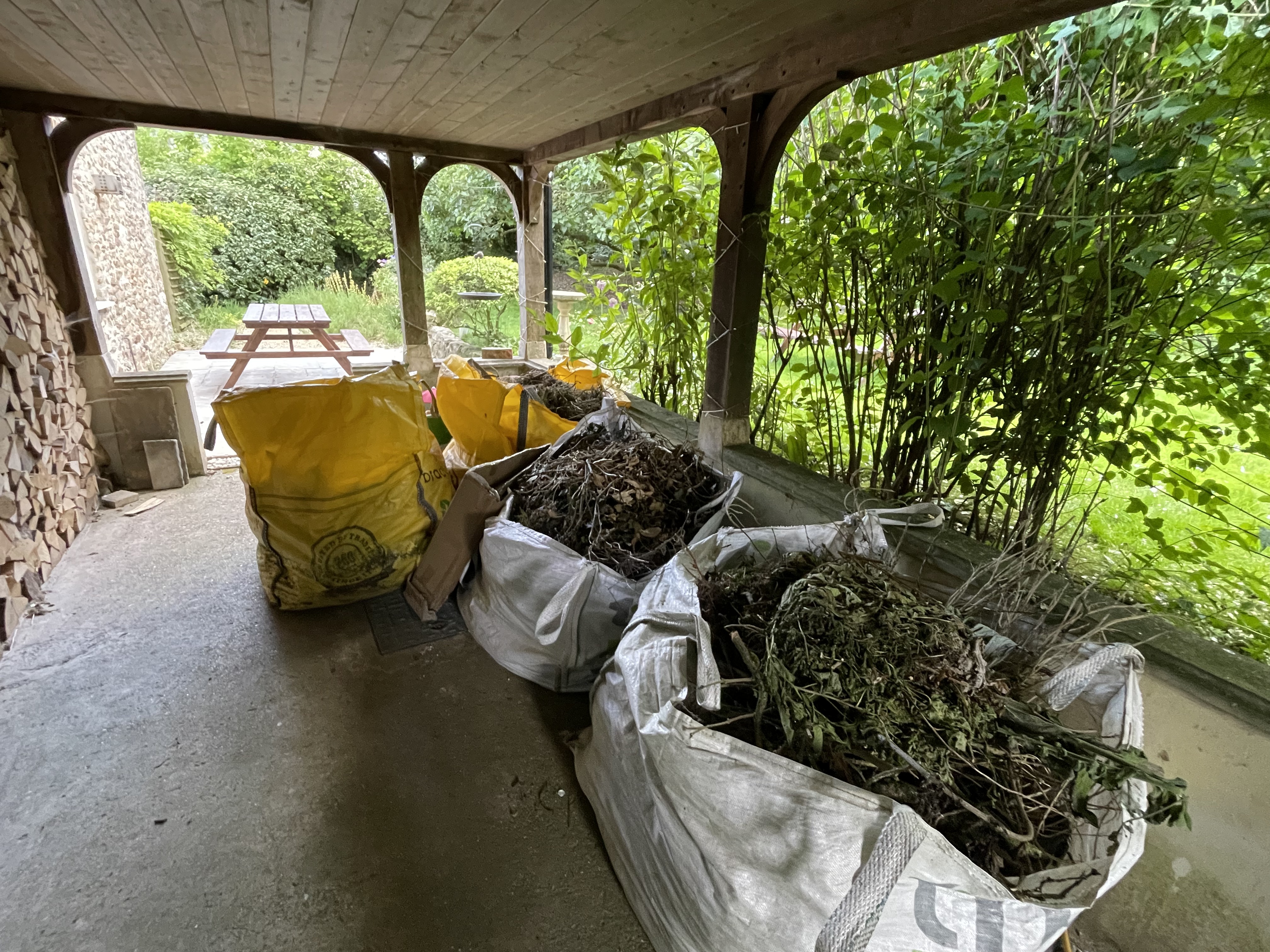 Somehow we managed to get a bit of work done in the garden – mainly by getting up extra early to steal an hour first thing and planting things out in the kitchen garden. We’re nowhere near keeping on top of things though, and looking back at this time last year we must be at least a month behind. We managed to chop back the worst of the bushes in the farmhouse back garden so it looks a bit more presentable. Although now we have more sacks of garden rubbish under the terrace to dry out before we can burn them. Definitely a job before we rent the house out!