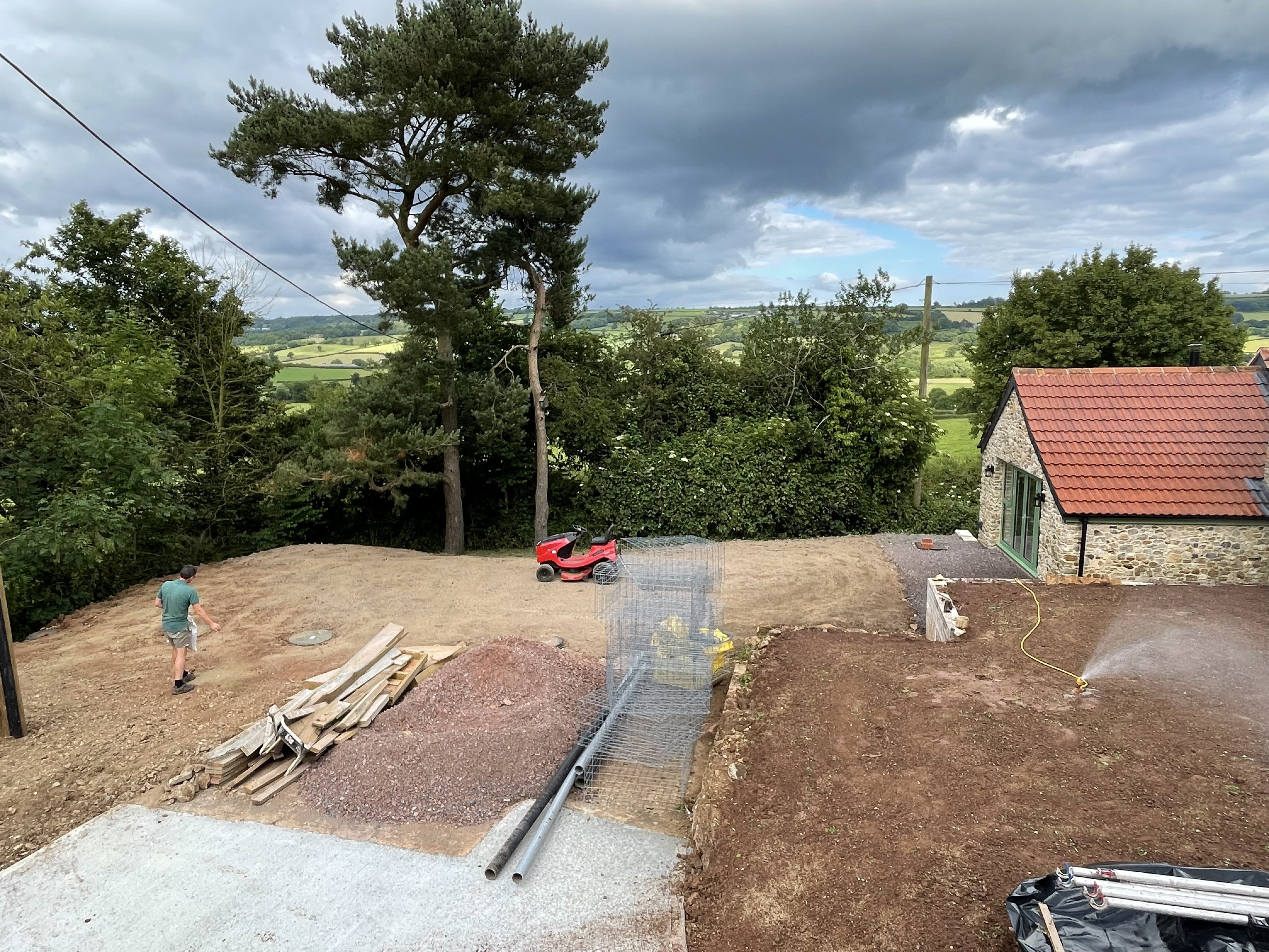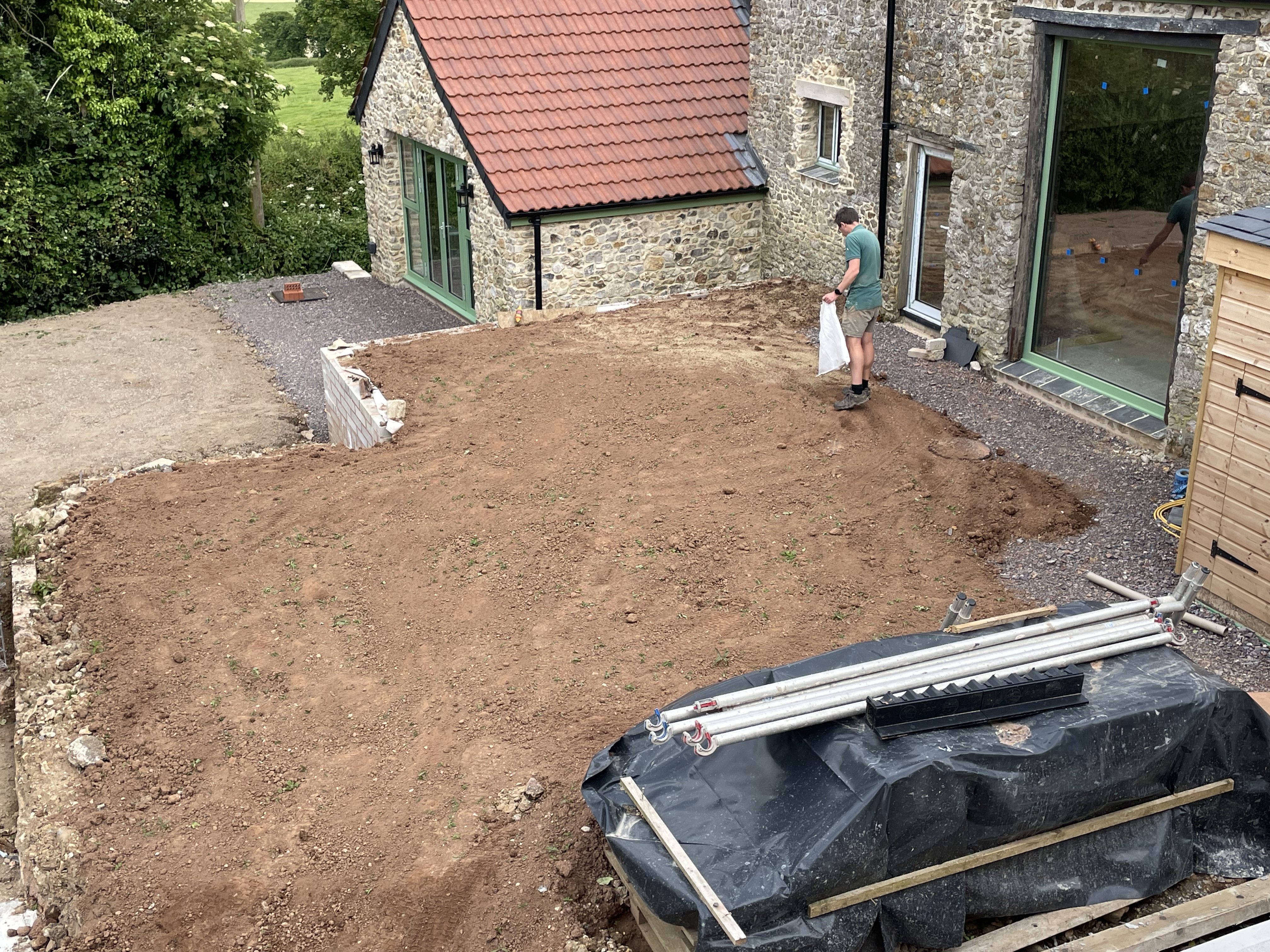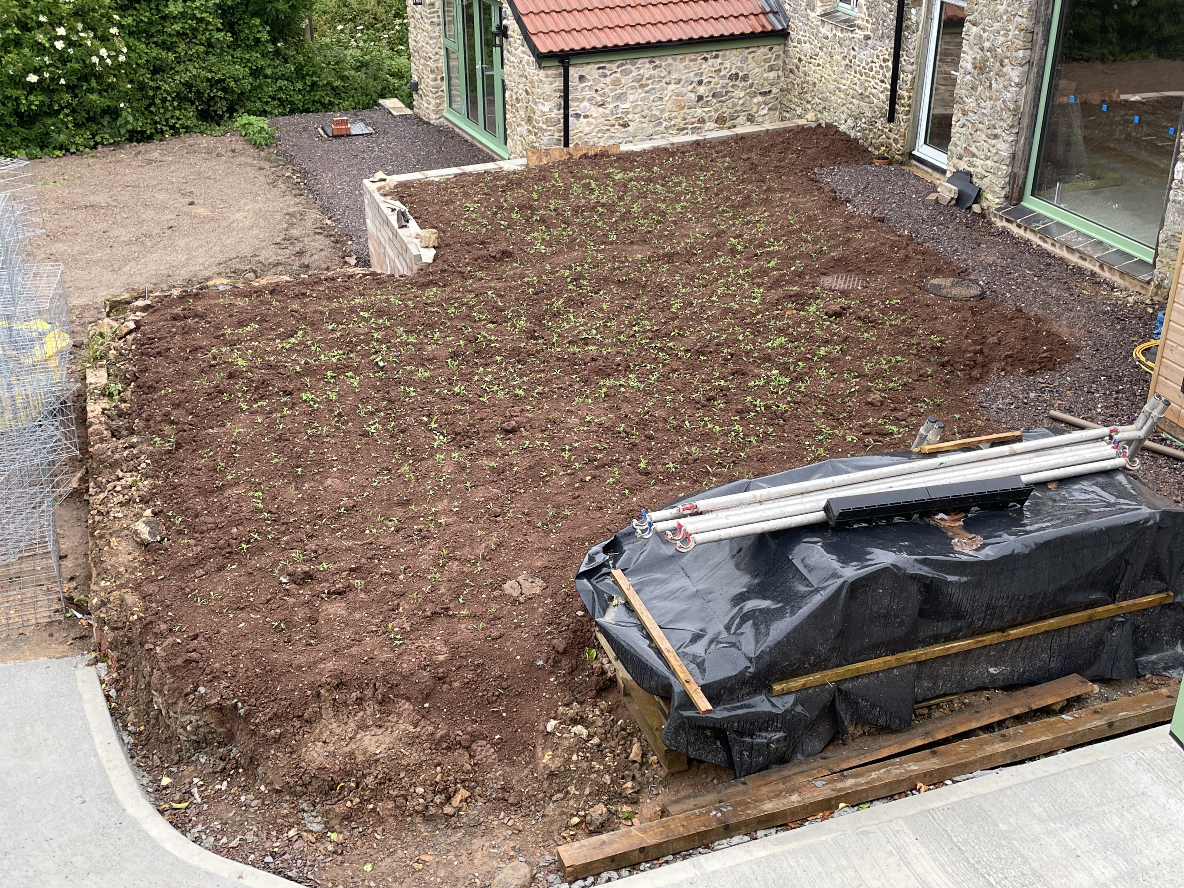 We ended up doing a mixture of all of them, which means we’re making progress but not reaching any milestones. The biggest job we’ve done is to get the grass seed down in the gardens of our new house and the three-bed. John spent most of the weekend getting rid of yet more stones and flattening the soil to get rid of the lumps and bumps and weeds. Where our builders laid the top soil it wasn’t too bad, but one section consisted of soil dug up from elsewhere on site, which is hideously stony. He then proceeded to sow 27kg (!) of grass seed and start soaking it with the sprinkler (the first use of our new tap!). Now we just need a good combination of rain and sun to avoid killing our water bill.