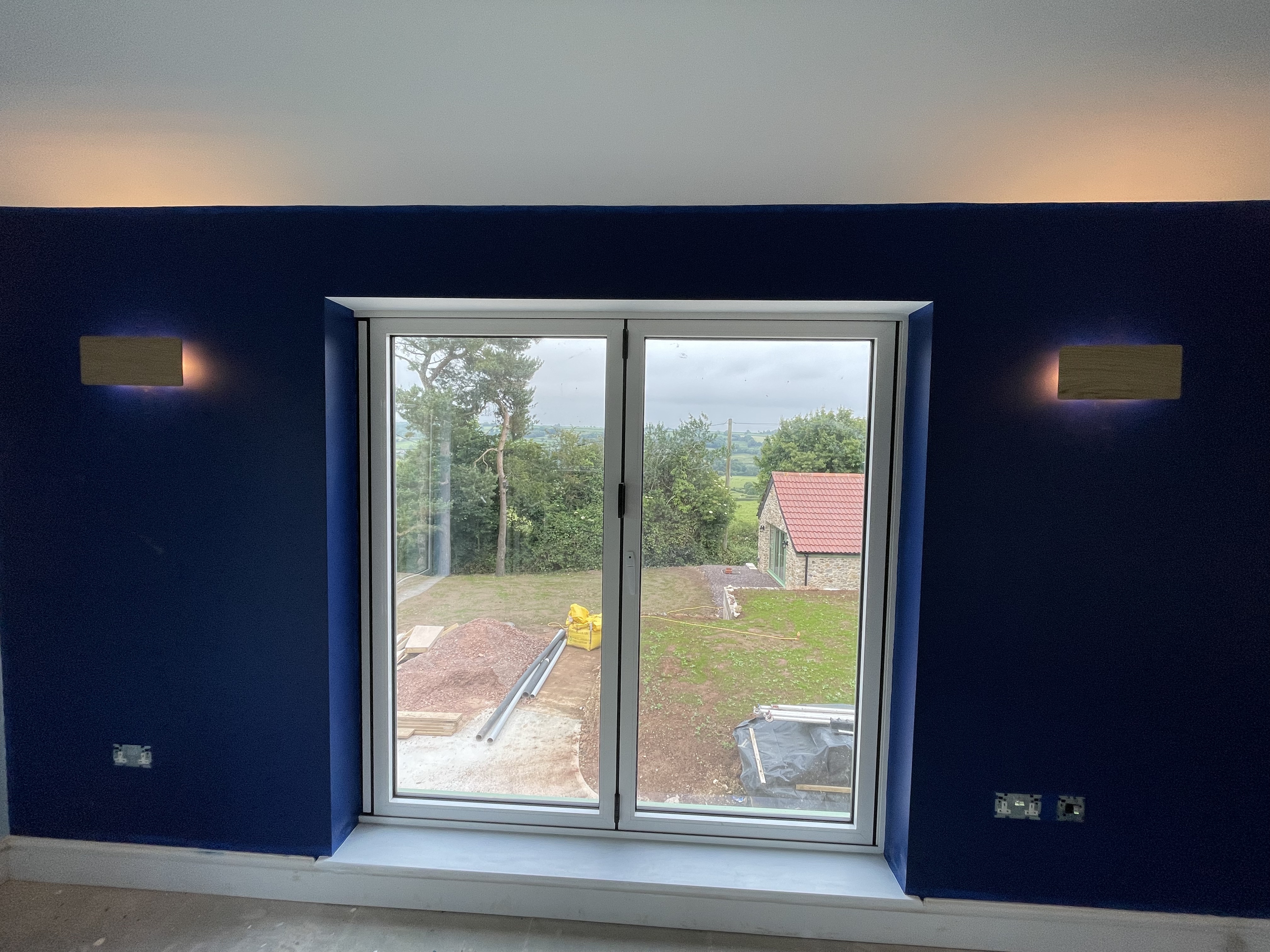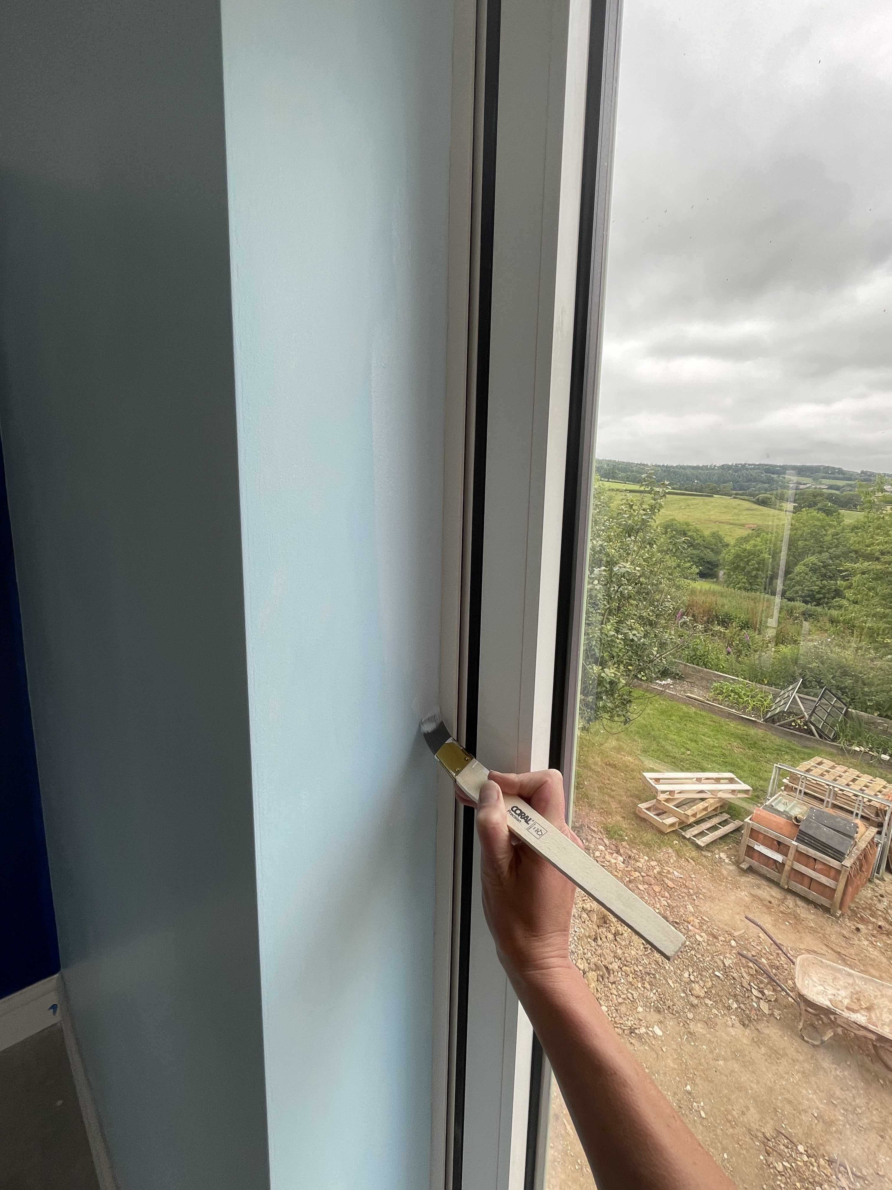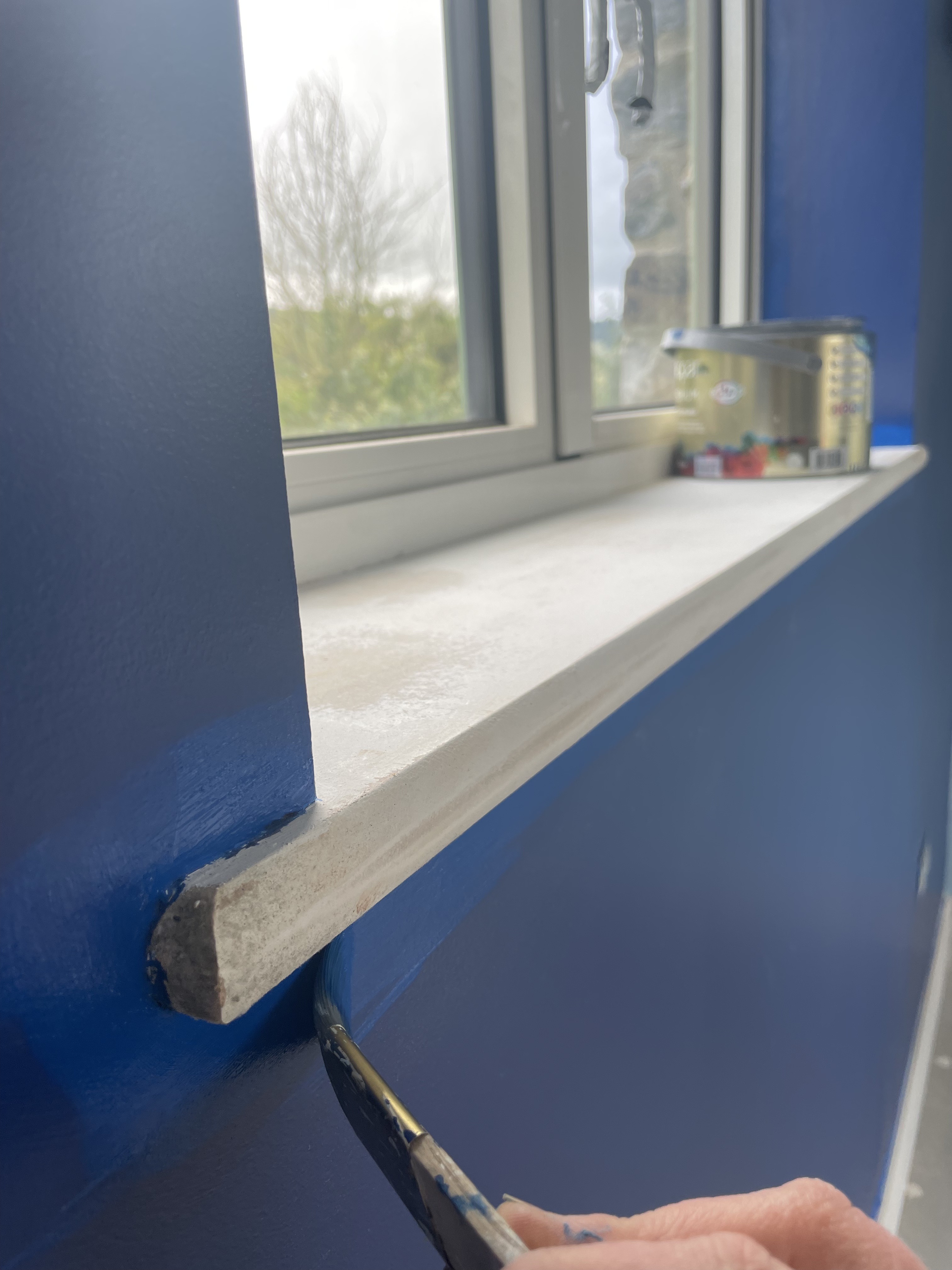 We’ve continued painting in the games room too, doing the first coat of light blue paint on the back wall and against the bat loft to start with, followed by the second coat of edging of both blues. We also sanded back the window and bifold door sills and painted the first coat, and cleaned the bottom of the light beam. We hadn’t planned for this room to be a priority job but various fittings are going in next week and it needs to be ready by then. It also hopefully means we can finish with the platform soon so the flooring can go down.