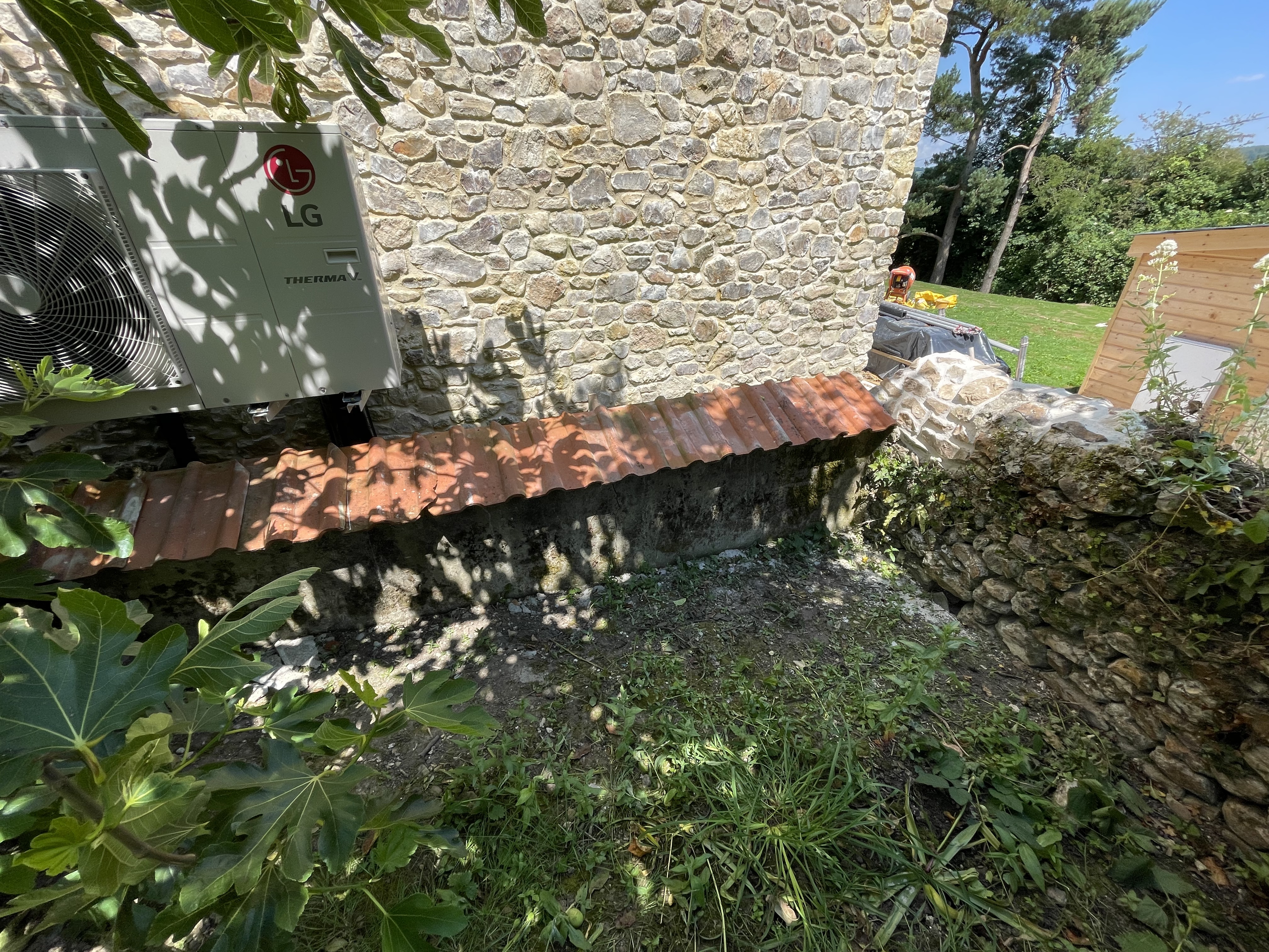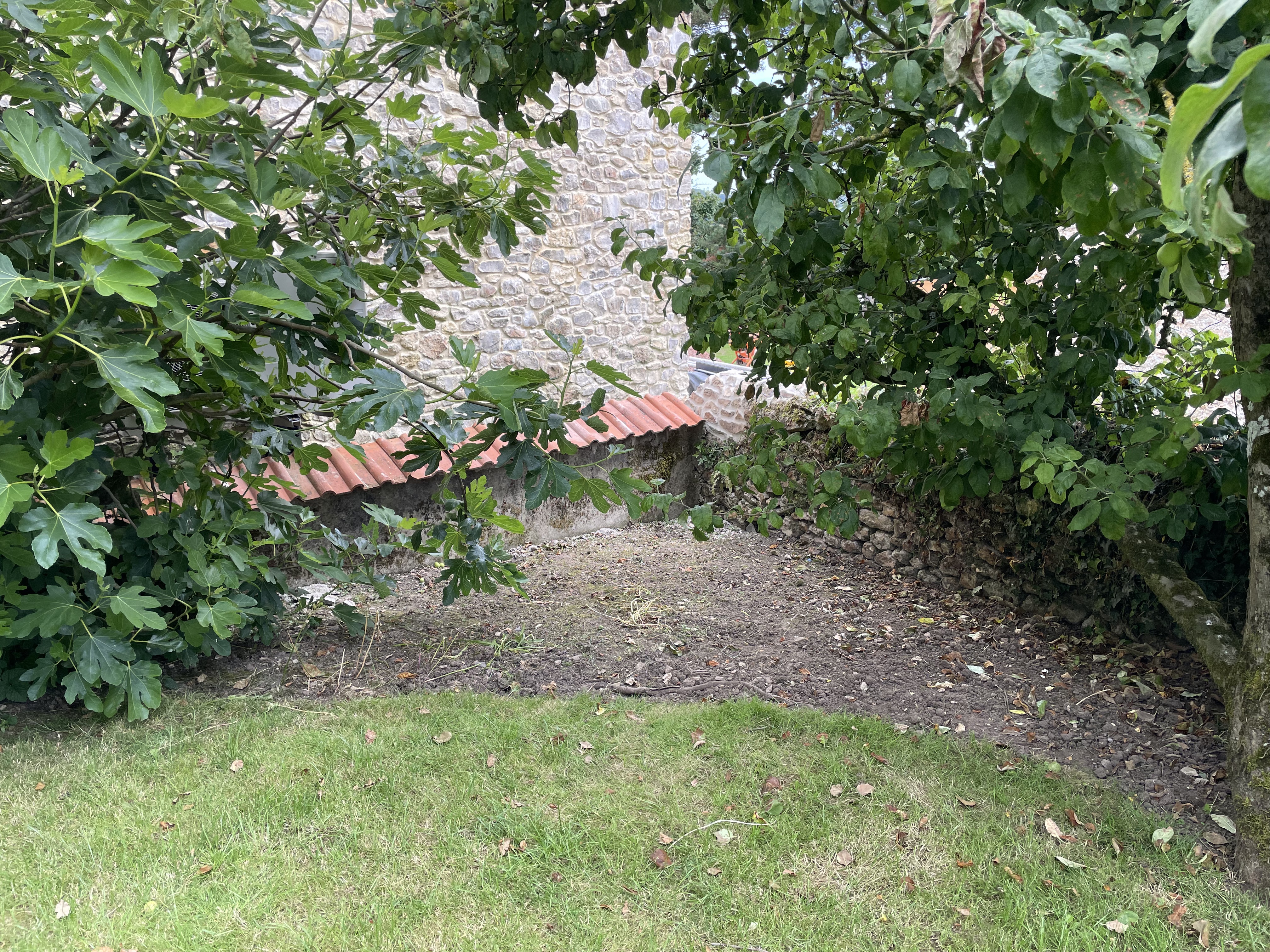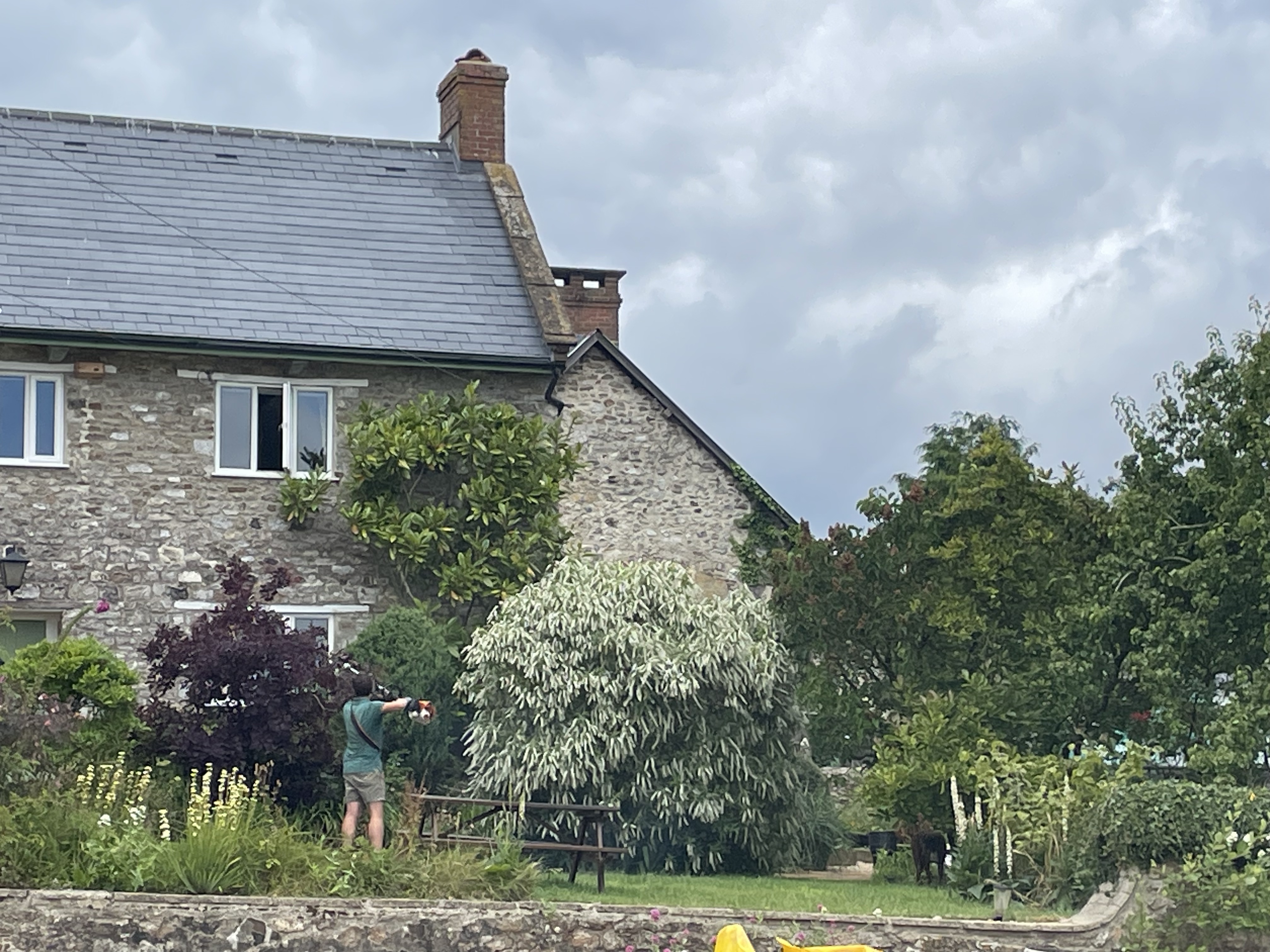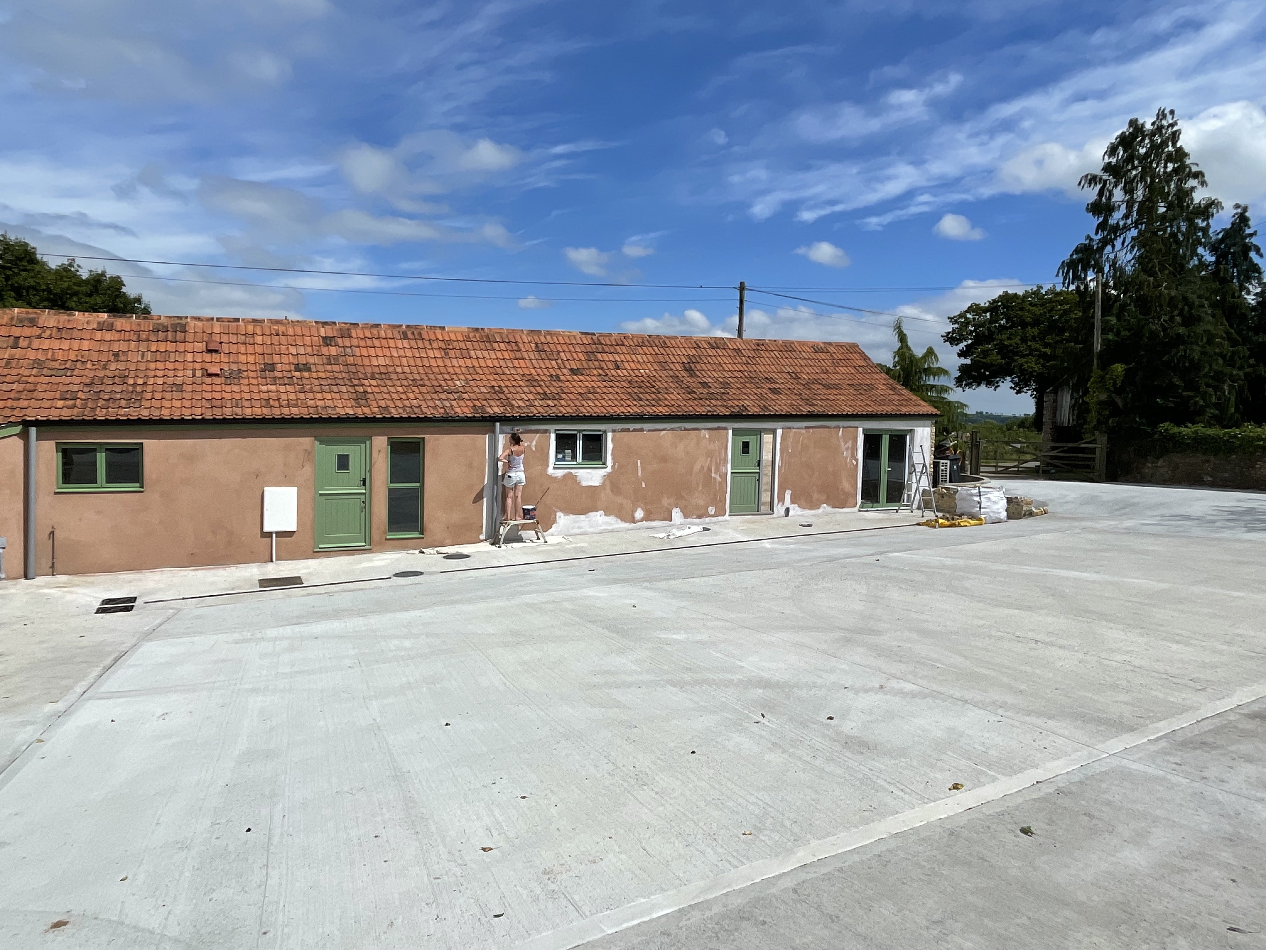 And they’ve been building various stone walls across the site – the first is around the main drain entry point for the water that comes down off the hill, that had been left as breeze blocks since they first built it. The second is by the French windows of the one-bed cottage. Now the concrete yard has been laid and levelled to direct excess rainwater away from the buildings, we have a level that the wall needs to build up to so that you don’t open the French windows and just stare at concrete. We want to make this area into a little garden for the one-bed cottage, but as the council don’t like the idea of sectioning the yard off or using trellis of any kind, we need to think a bit more about how to make this work.