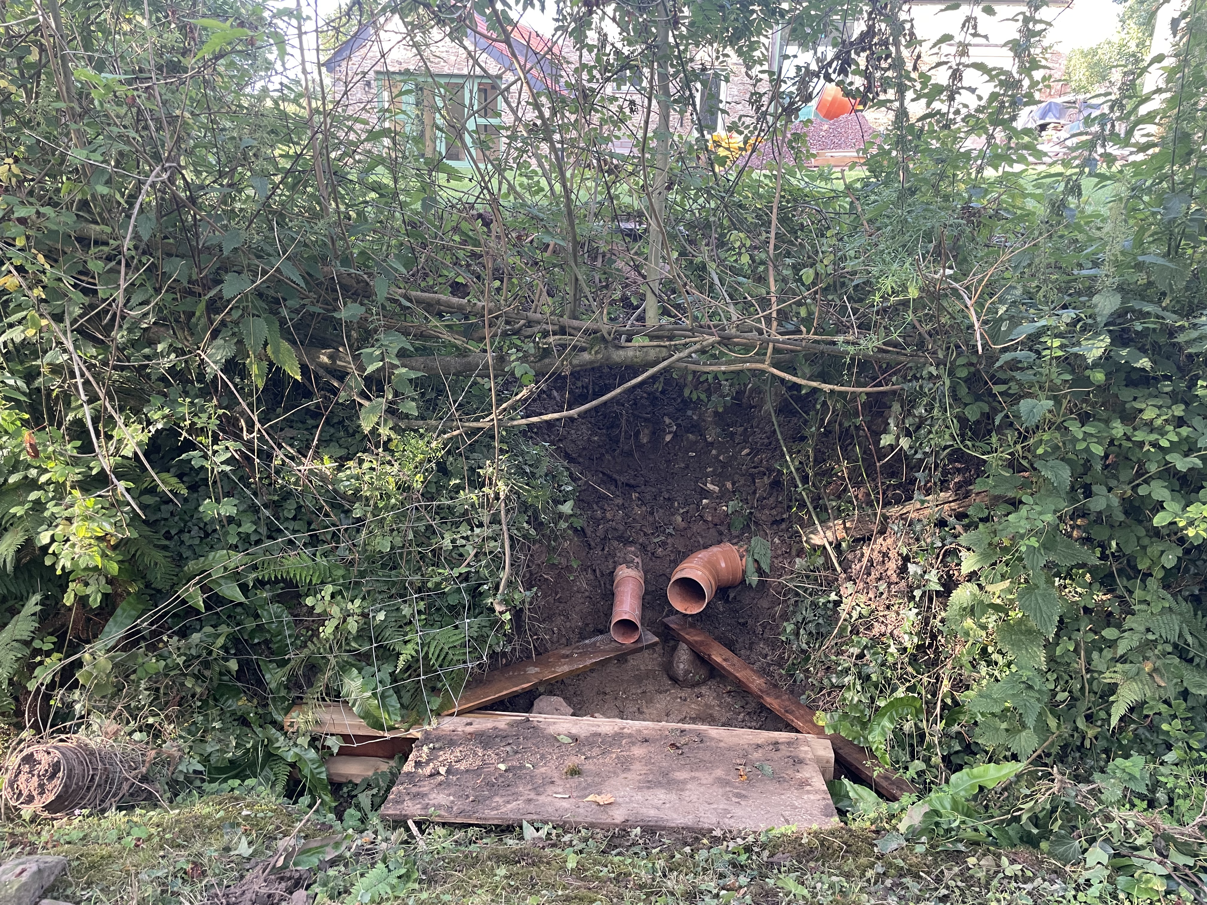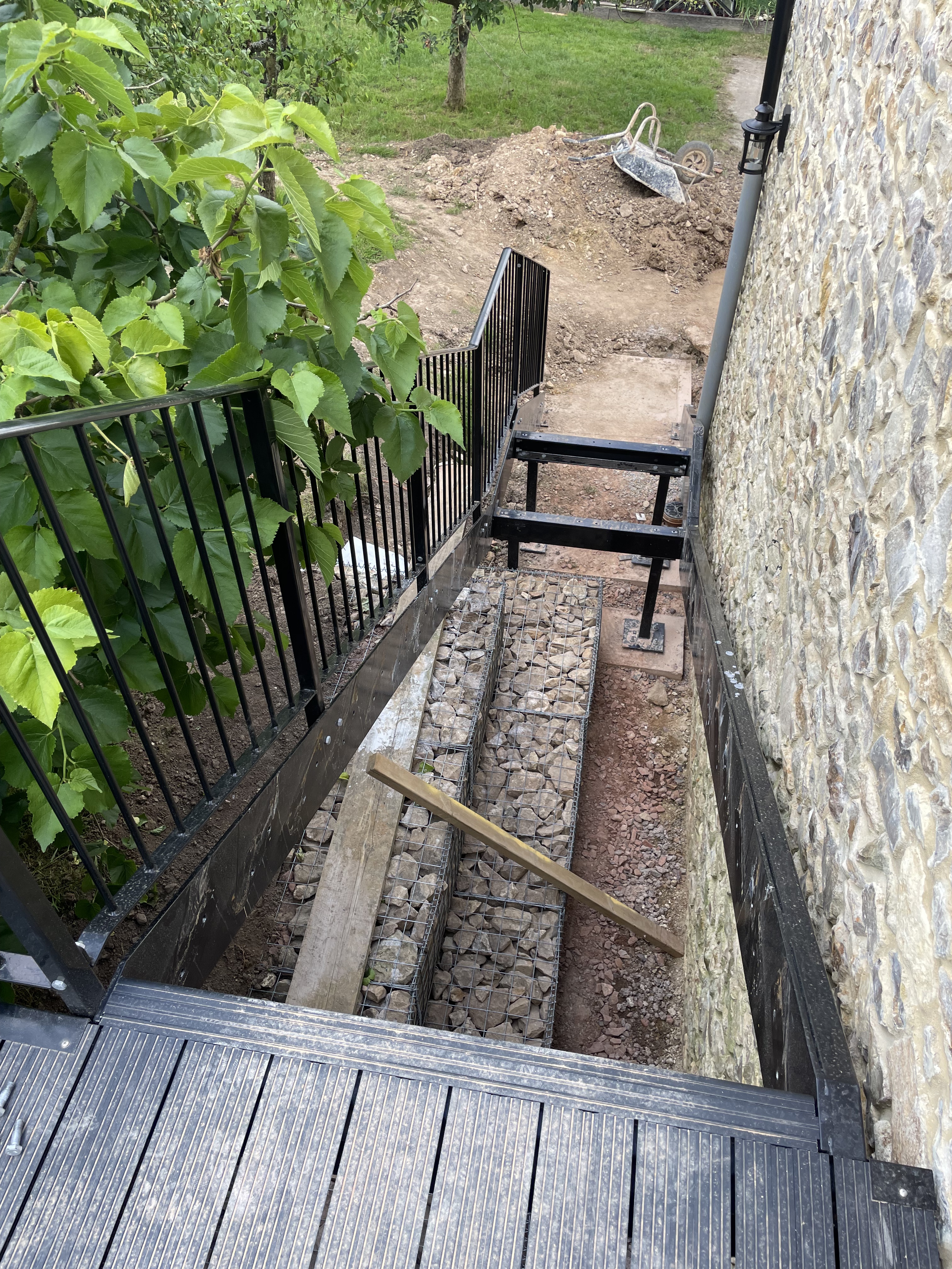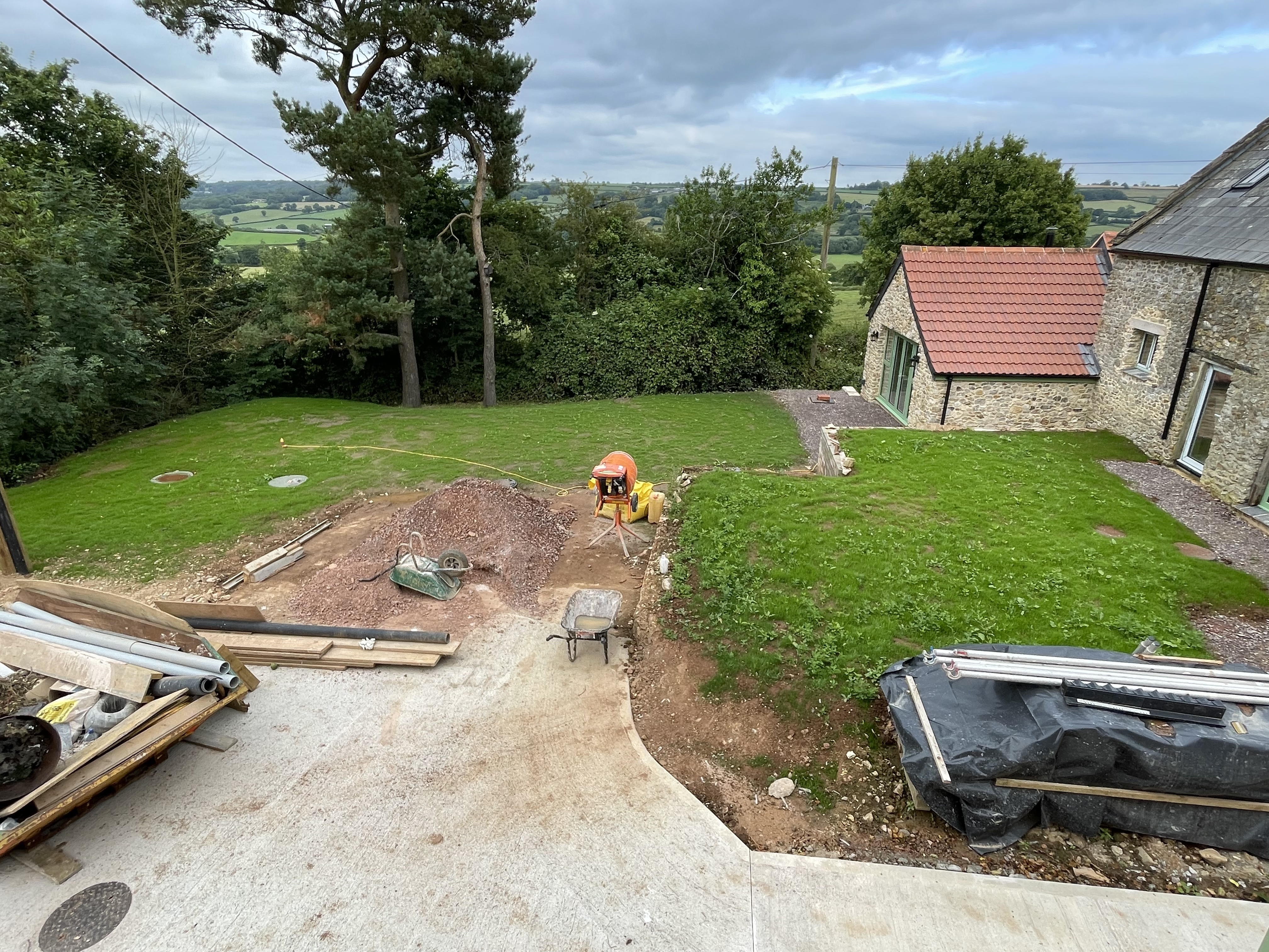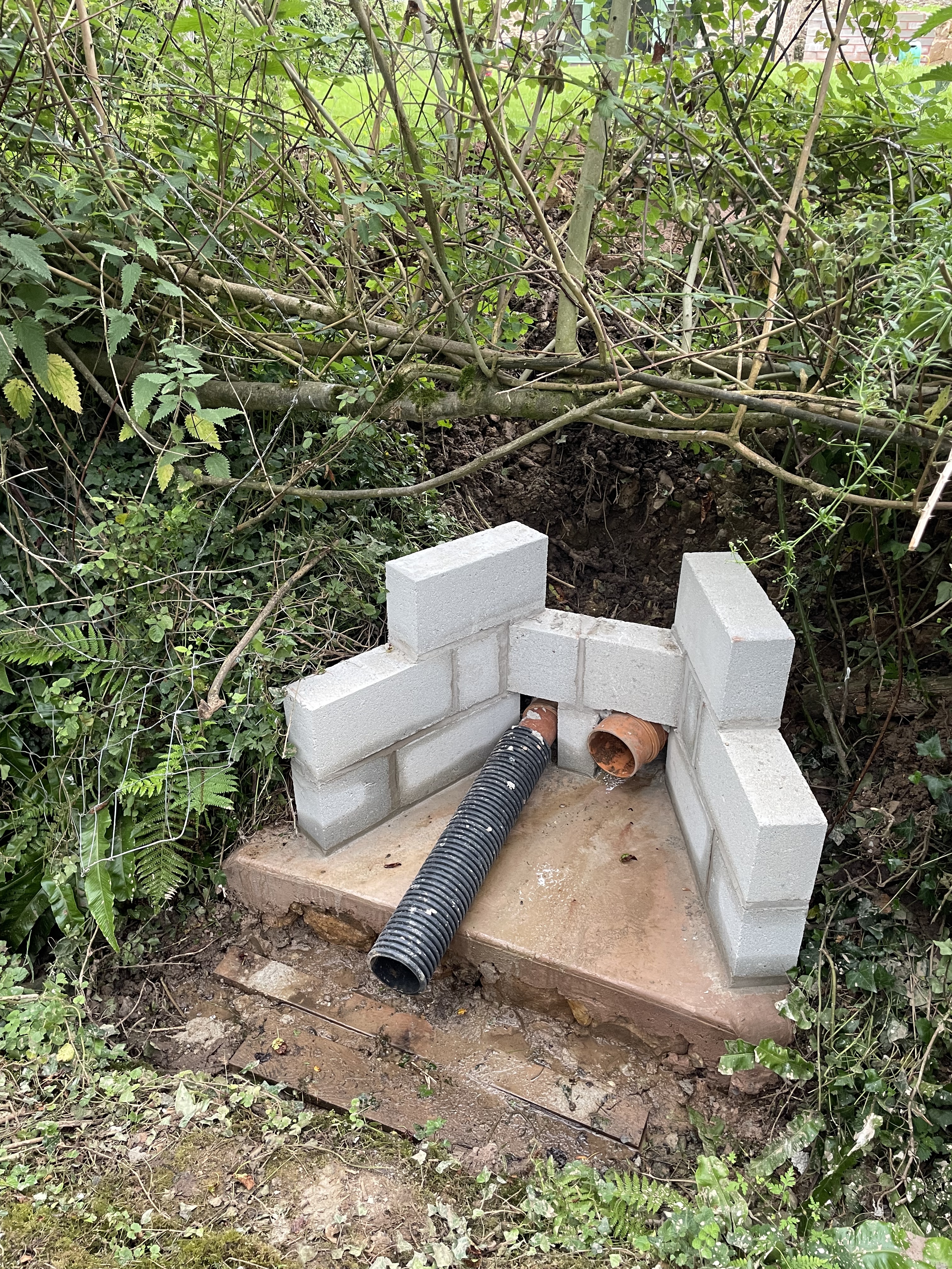 It definitely feels like we’re coming to the end of the build phase now – with most of our jobs being finishing touches outside.It’s mainly been our site manager here for the last few weeks – plus any tradespeople such as the concreters that were needed. This week one of the other builders came back to help with the final push, as our site manager is now due on another project. With a week of wall-to-wall sunshine, their focus (and most of ours) was getting through the outside tasks – the cement mixer seems to have been going constantly! They’ve built a headwall in the bank in the wood just where the water pipes empty into, to give the area more stability and prevent any risk of the bank slipping in future. They’ve also done some lovely concrete sculpting inside the drain covers – we can only assume it’s to effectively channel any water down into the drain as it would be a real waste of a fabulous job otherwise!