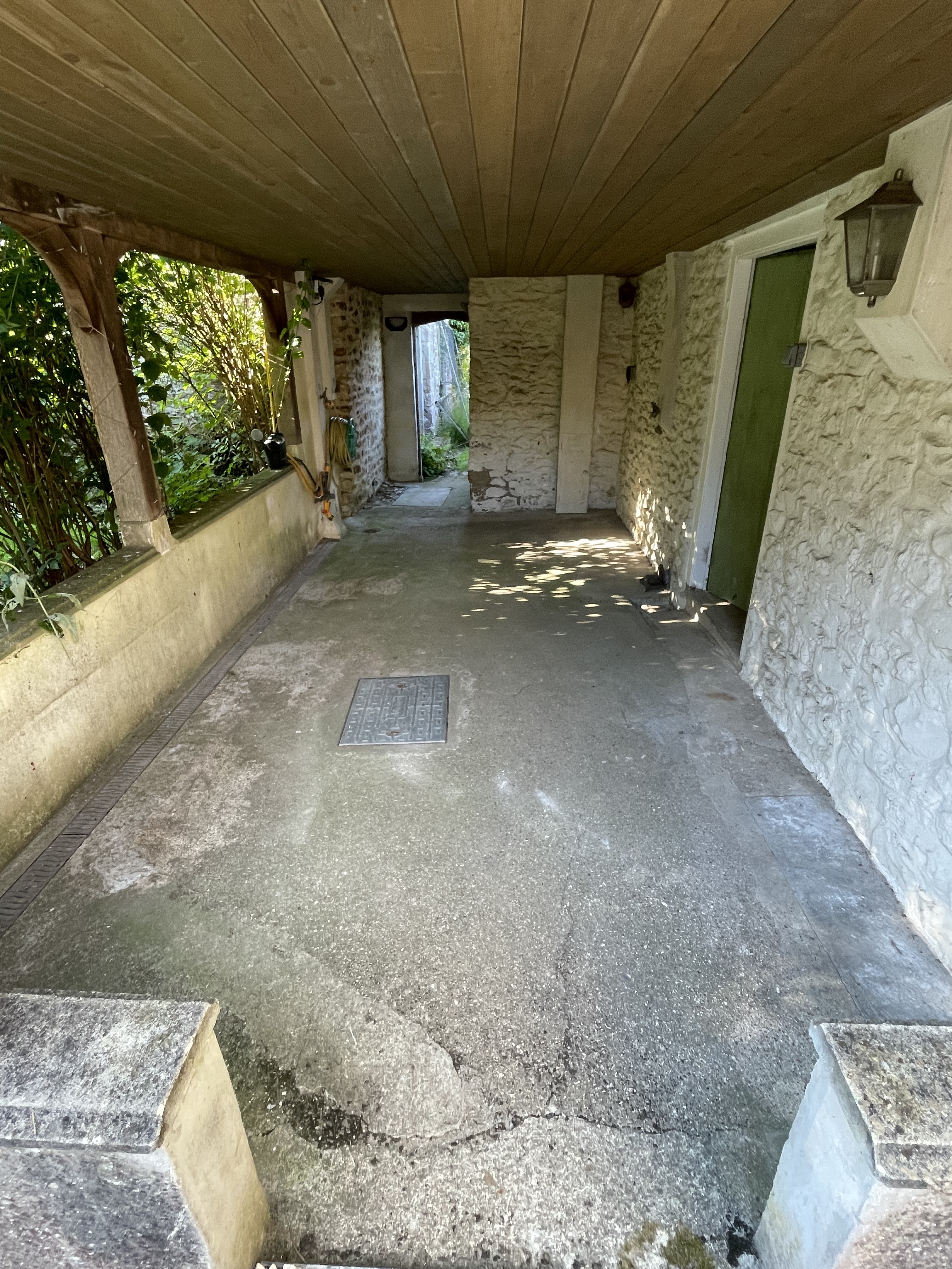 One of our big ambitions has been to tidy up the farmhouse back garden and terrace and make it more usable before we rent the property out. We started by laying the patio a couple of months ago and cutting back some of the overgrown bushes, which resulted in several dumpy bags of garden waste drying under the terrace as it was the only place we could keep it dry. We moved our freezers there last year when the solar tiles were connected up, and have been storing our firewood there too for the wood burner, so it’s been quite cramped.