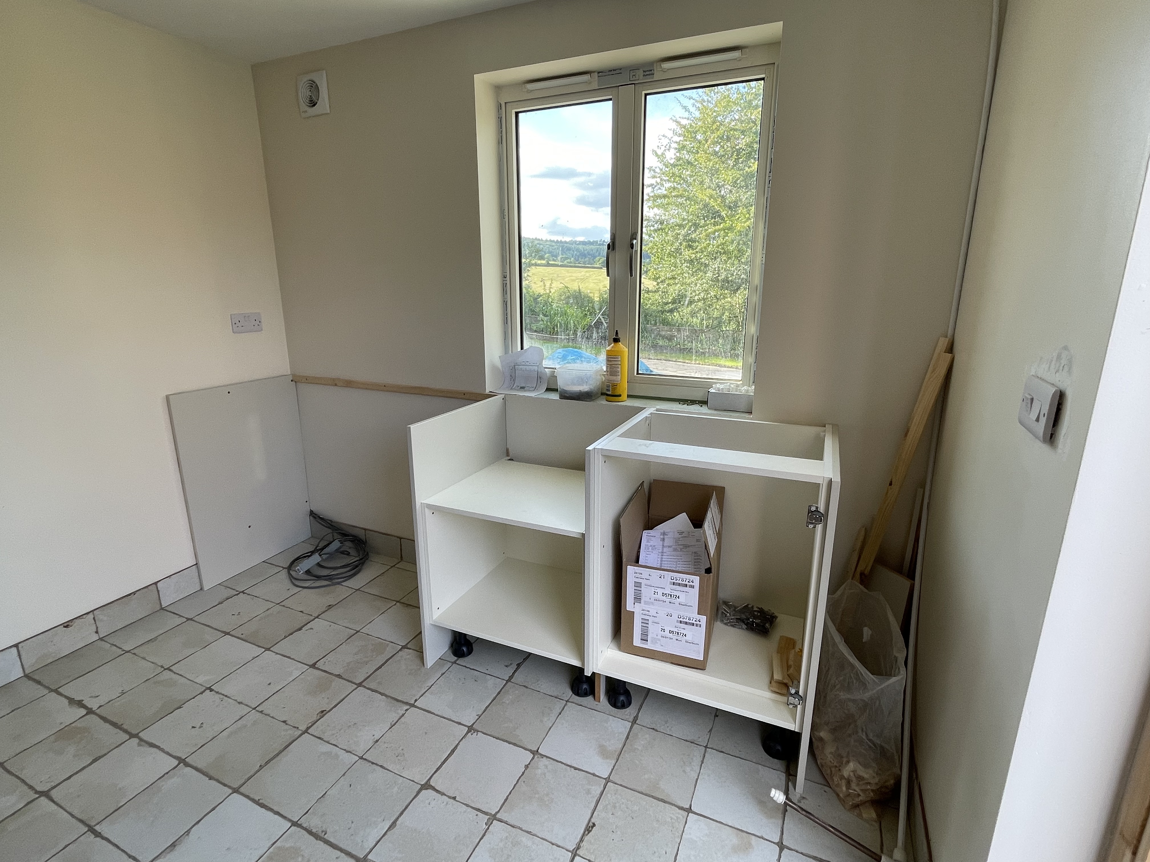 While on site he started installing the laundry sink and cupboards as these were delivered on Wednesday. The stone supplier is coming next week to measure up for the work surfaces in the laundry and games room, so we’re grateful our carpenter managed to get both ready in time. His job next week is to install the floor-to-ceiling cupboards in the laundry – we’re using these to store all our cottage bedding so we can’t wait for this to be done as it means we can empty the farmhouse of a rather large pile of boxes!