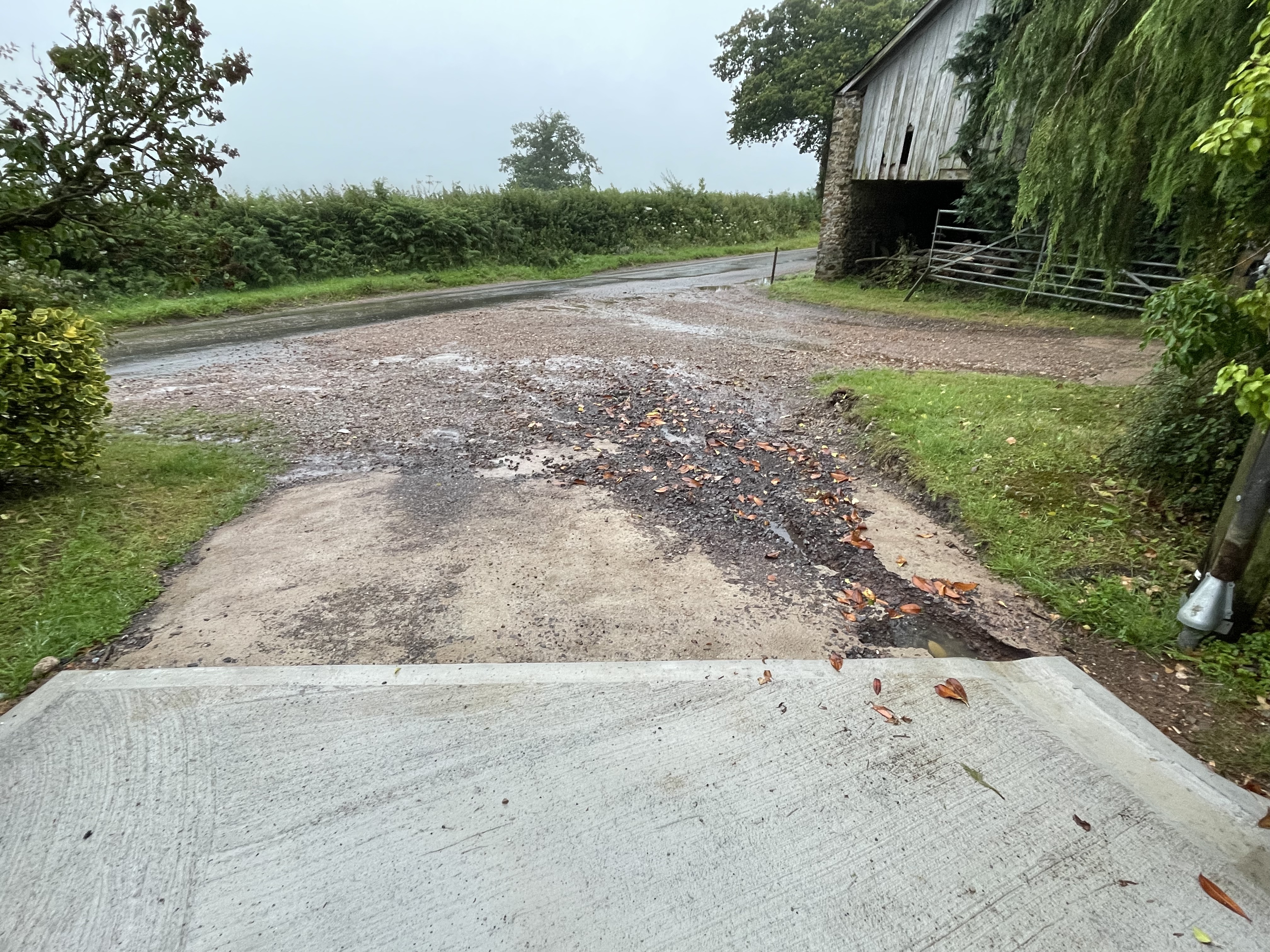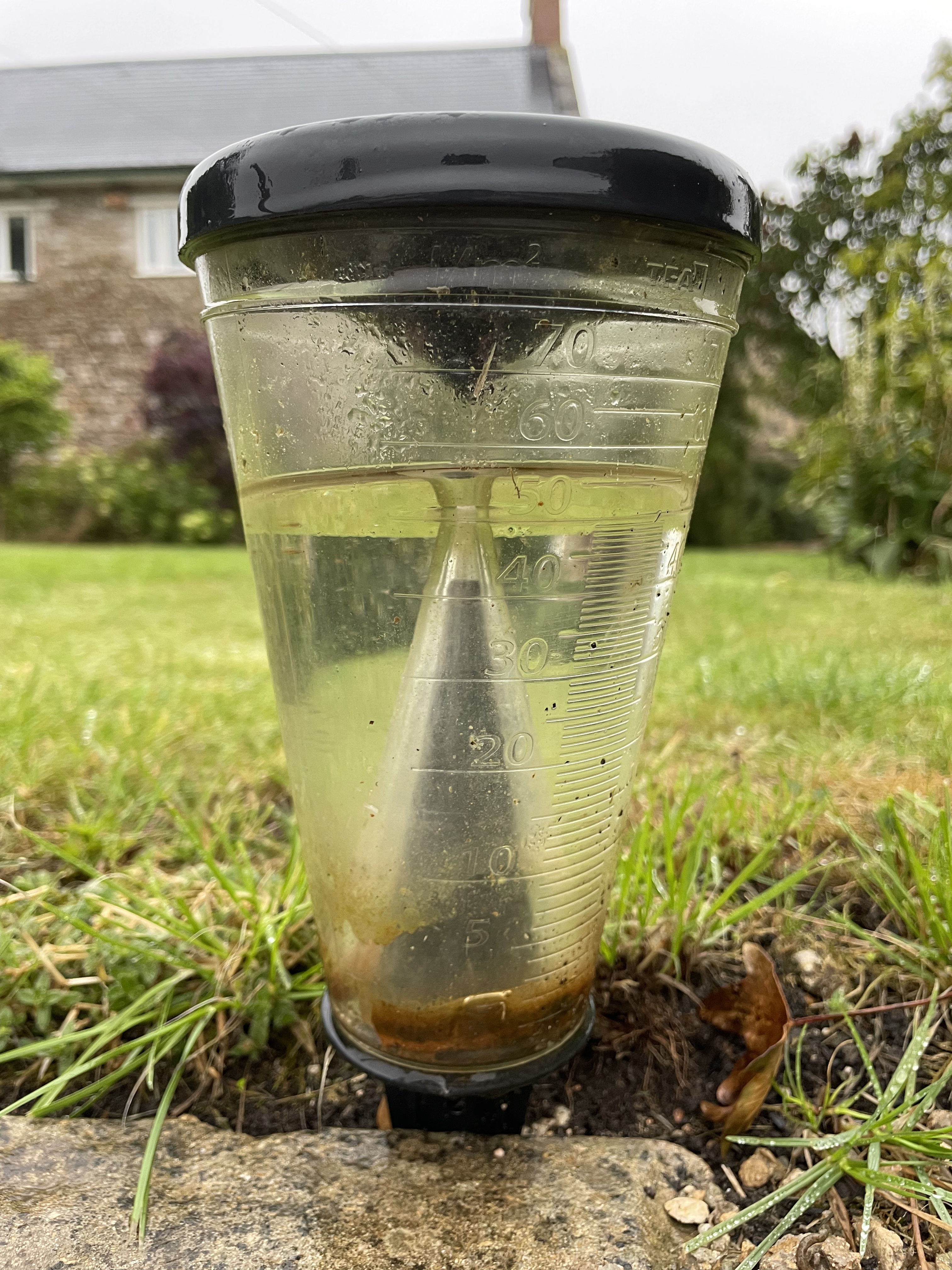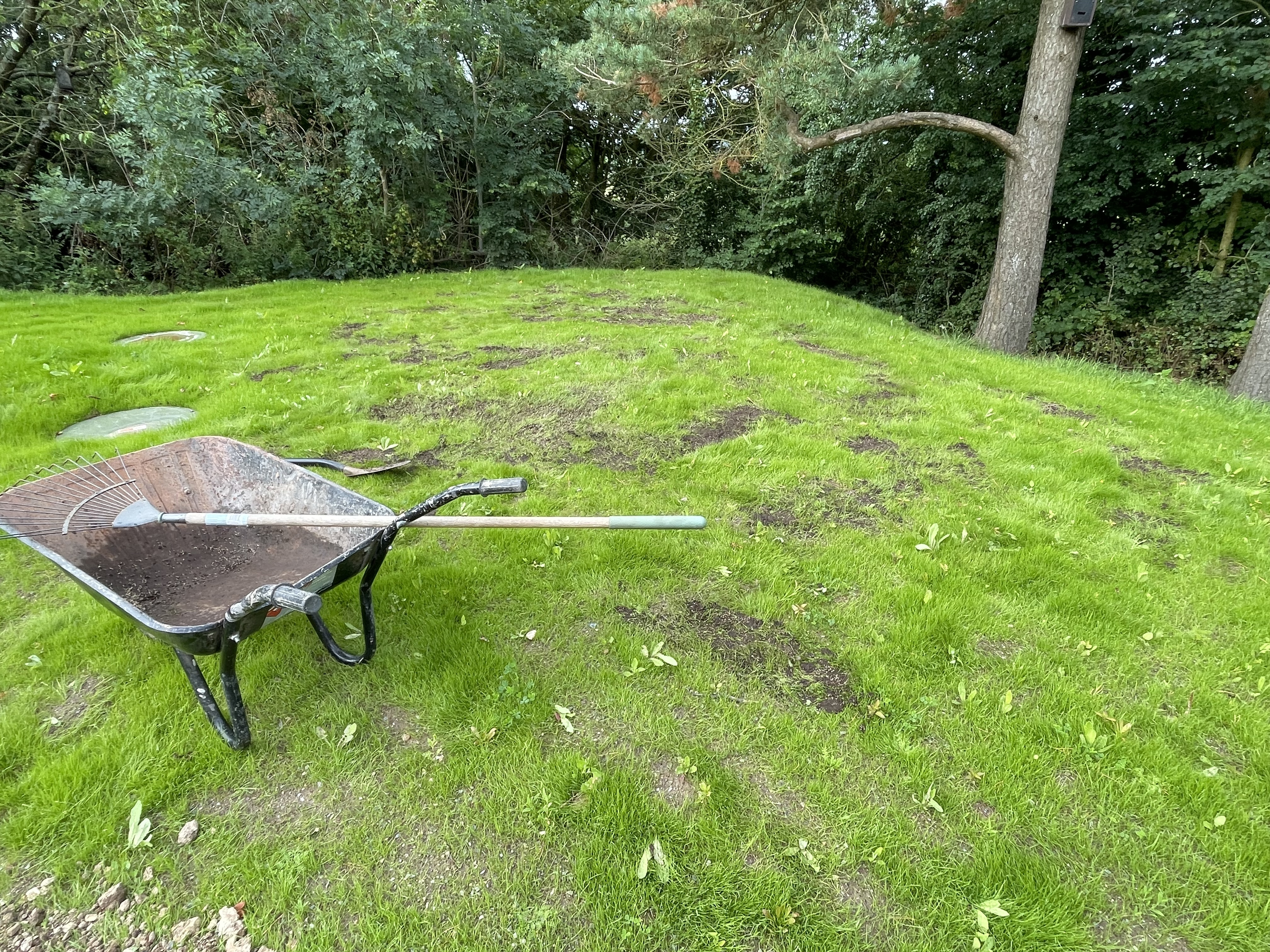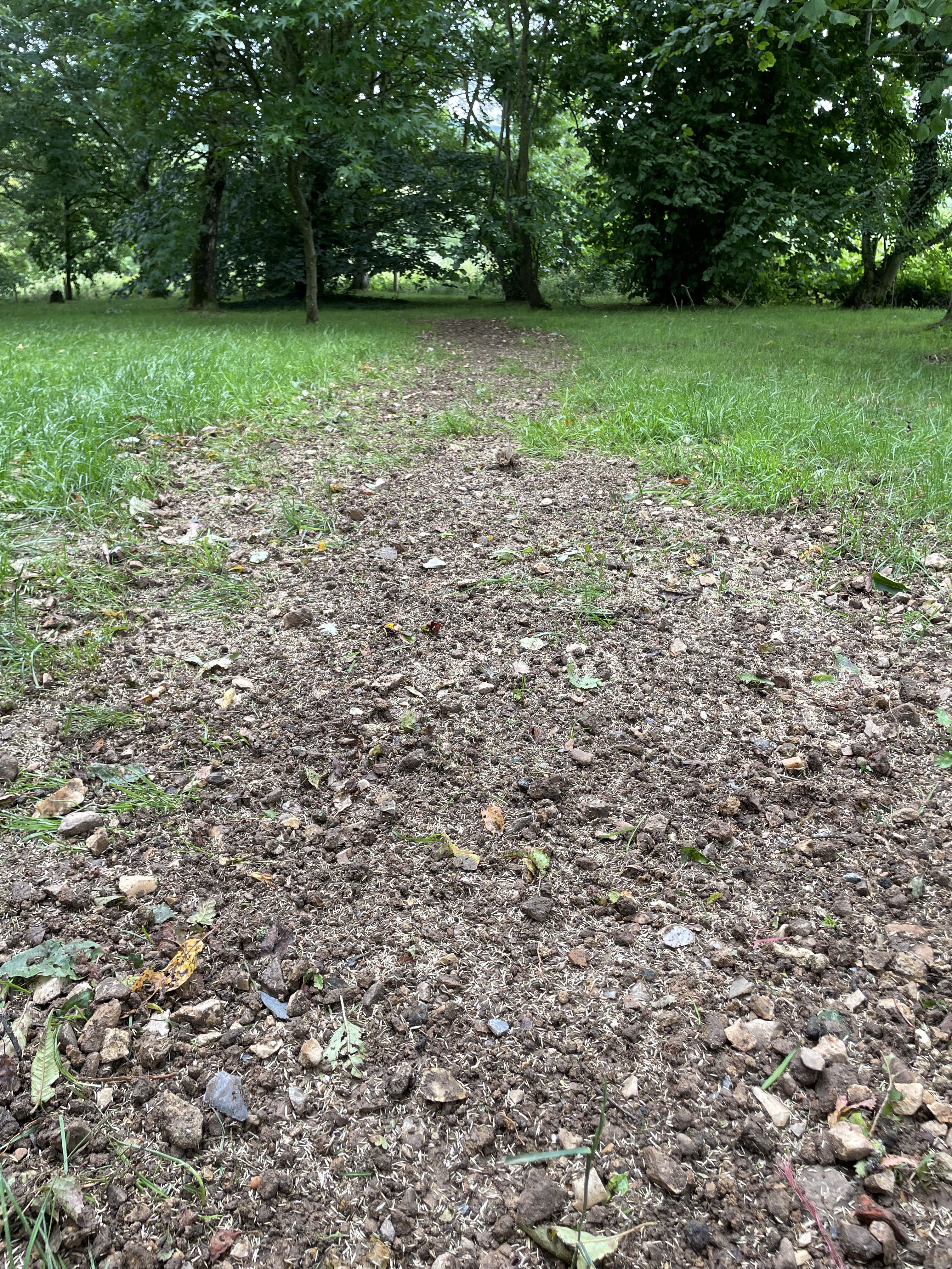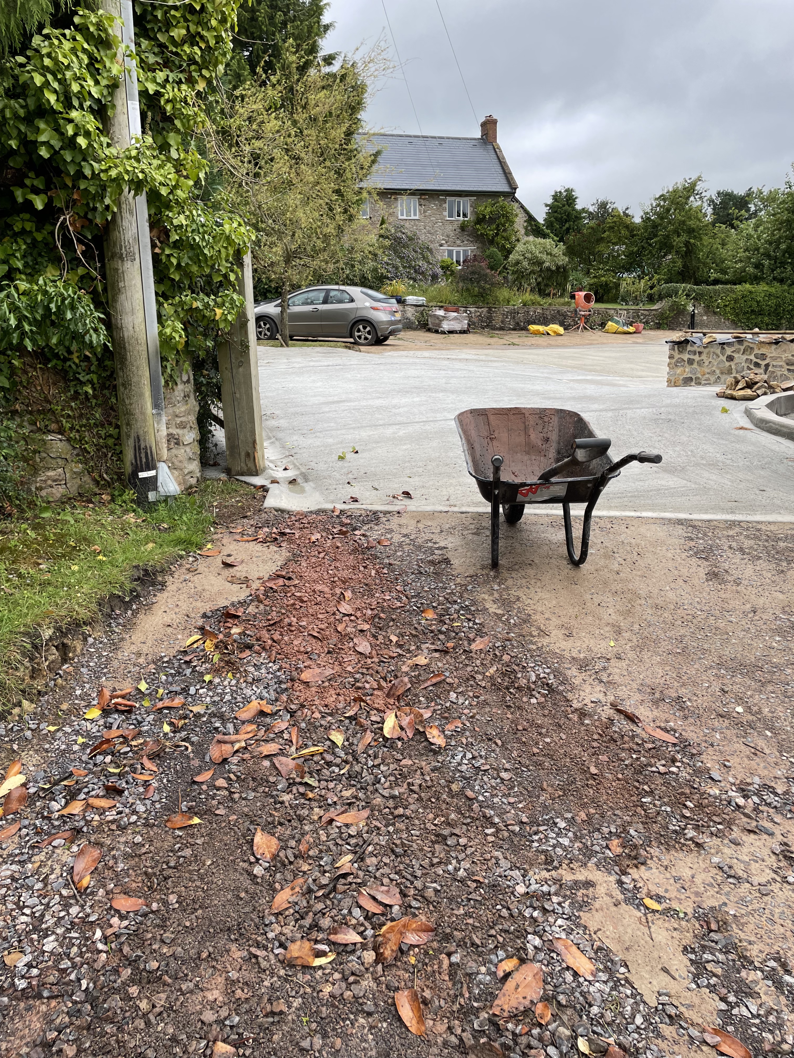 John seeded the final bare patches that have been left in the orchard and in our wood from the building work, as well as the final patch around the side of our garden. Some of it is already starting to germinate in the warm wet weather we’ve had, although we did get the chance to try out the drains and concrete gradients on Monday after a very wet day. It looks like everything worked almost as it was expected to – although the drain blocked and overflowed out along our drive, and carved a channel in the stone that had been compacted down. It looks like we’ll need to properly concrete it at some point if we want to avoid losing it over time.