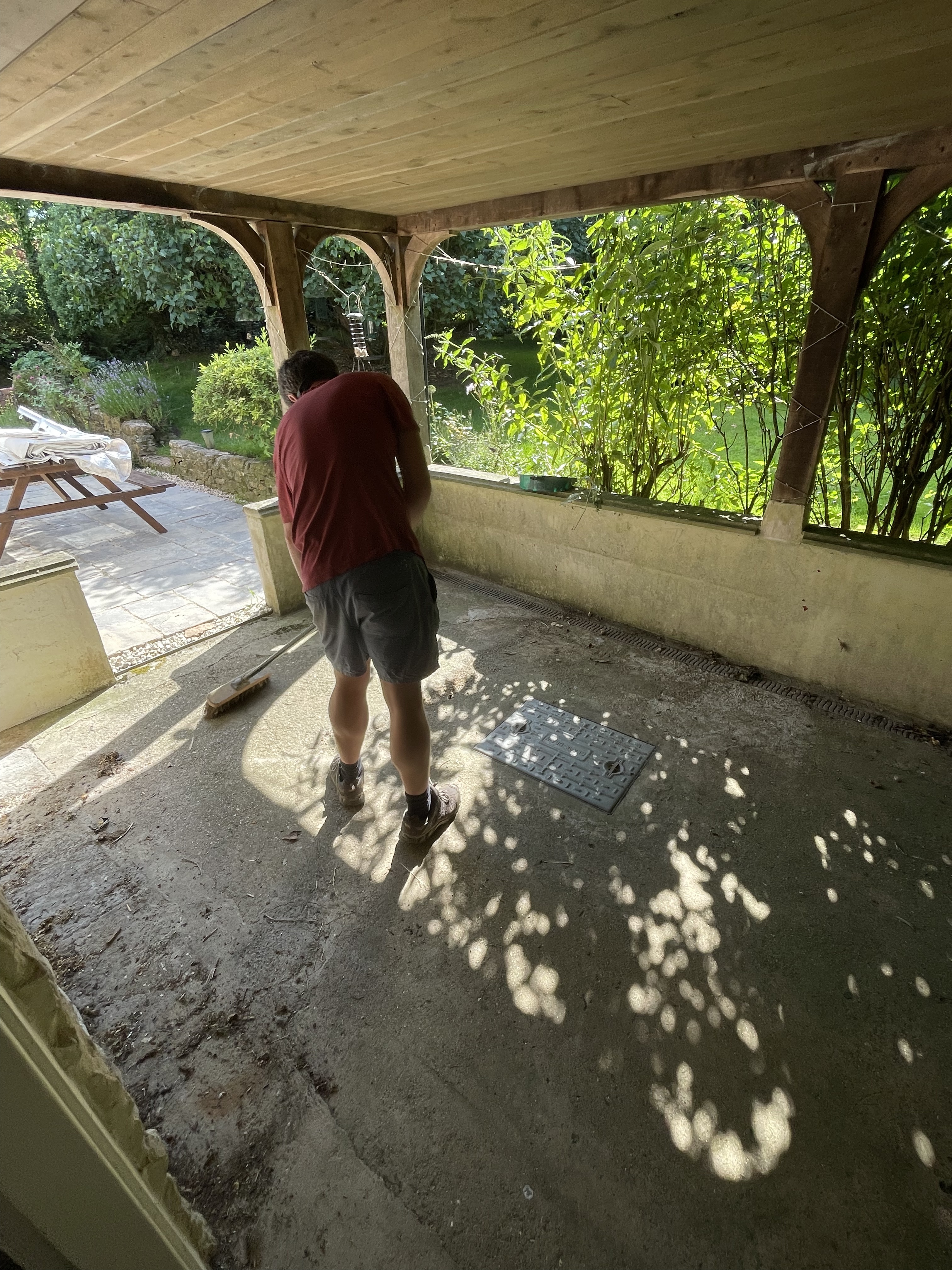 We haven’t yet built our firewood shelter so we moved all the firewood down into our three-bed cottage for the time being where it will stay dry; and swept the terrace. It looks so much bigger already! It’s going to look great once John pressure washes it and we paint the walls.