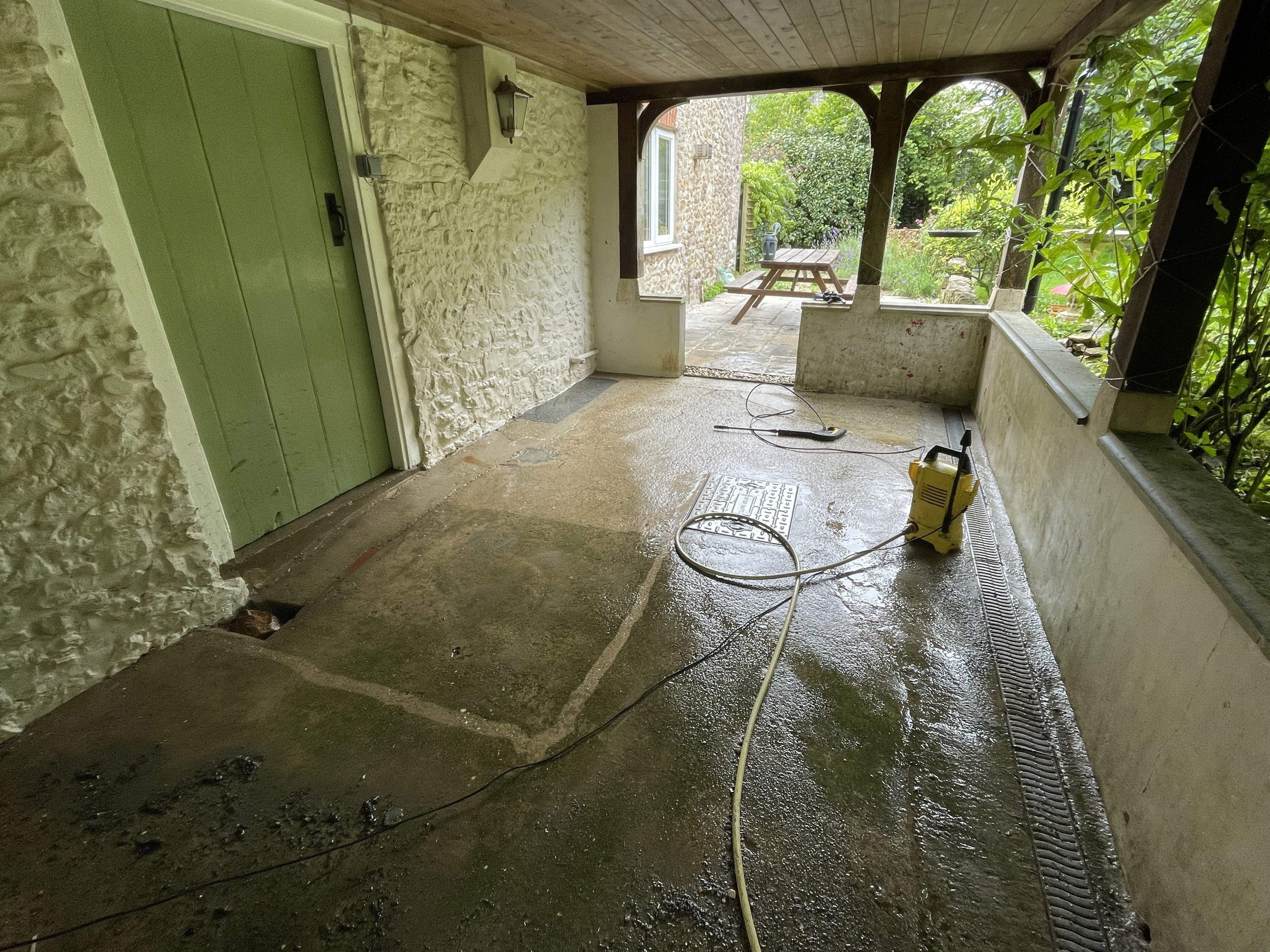 Meanwhile we’ve still had a lot to do to get ready for opening. Since clearing the covered terrace at the back of the farmhouse last week, John pressure-washed the concrete floor and walls. It looks completely different now – much cleaner and not as grey and depressing. It must be the first time it’s ever been done! Our next step is to paint it so it looks more appealing – we’ll do the walls a pale colour but can’t decide whether to stain the wood so it looks a bit distinctive and has some character. Maybe we’ll see what we have time to do…