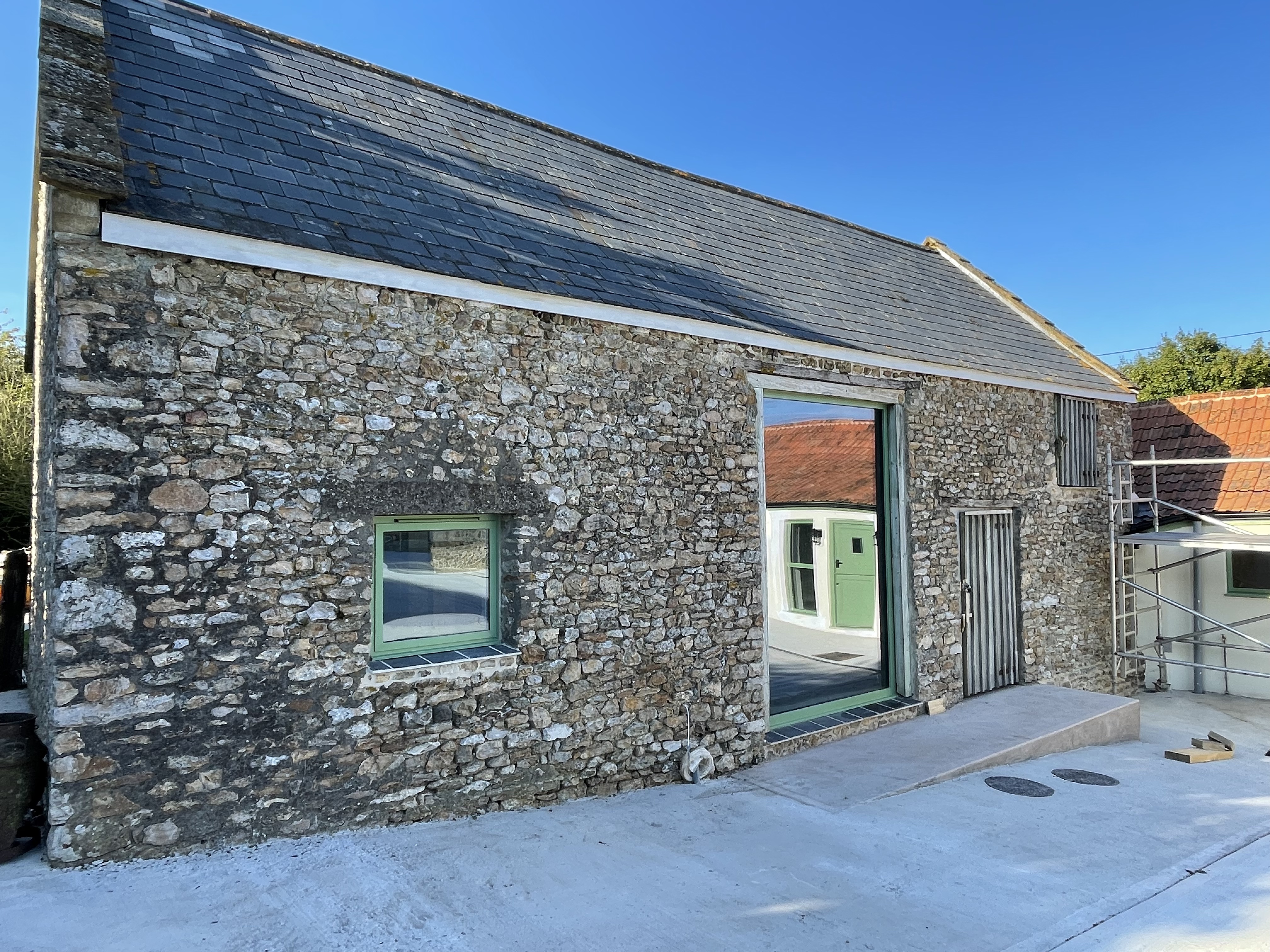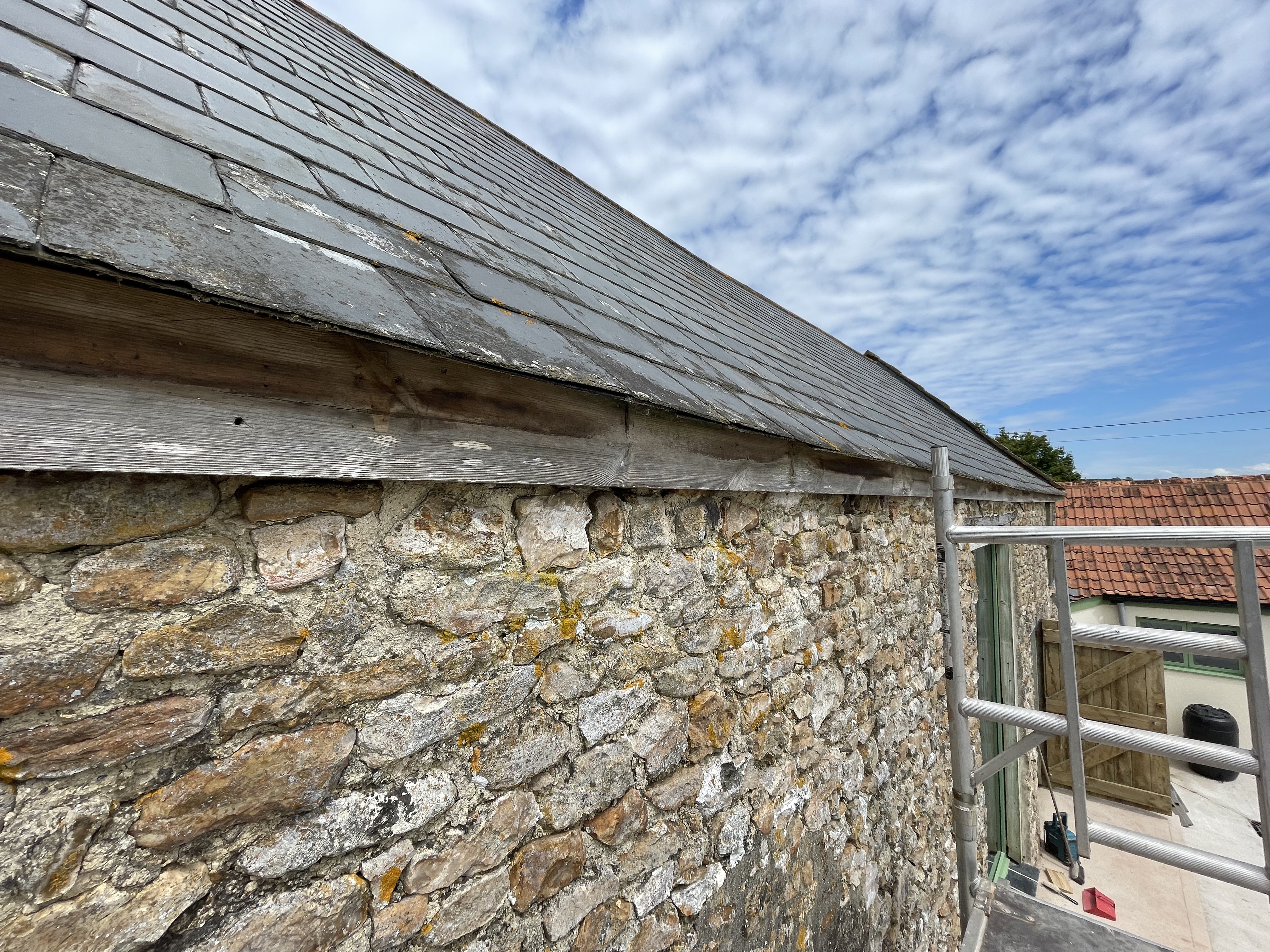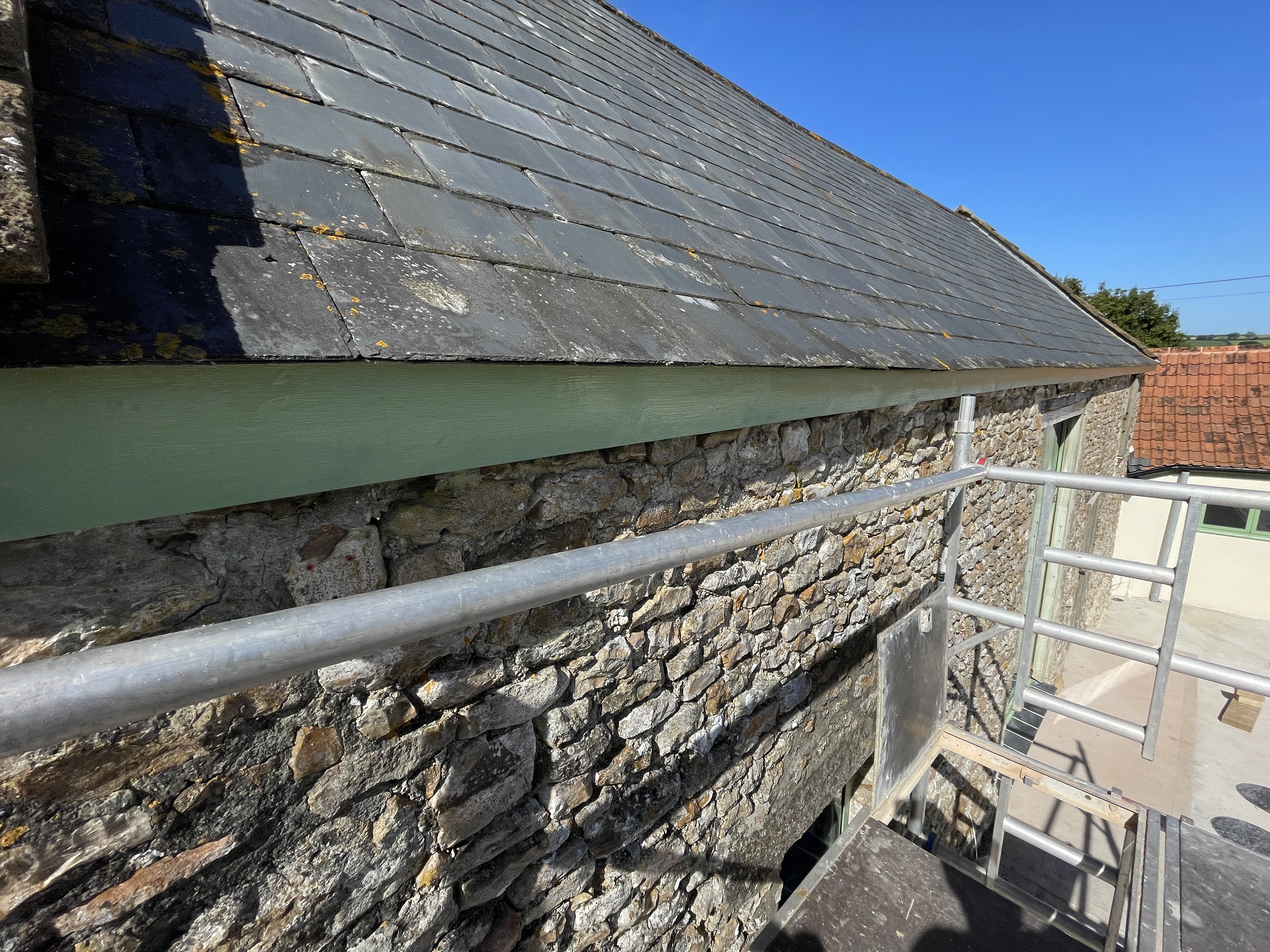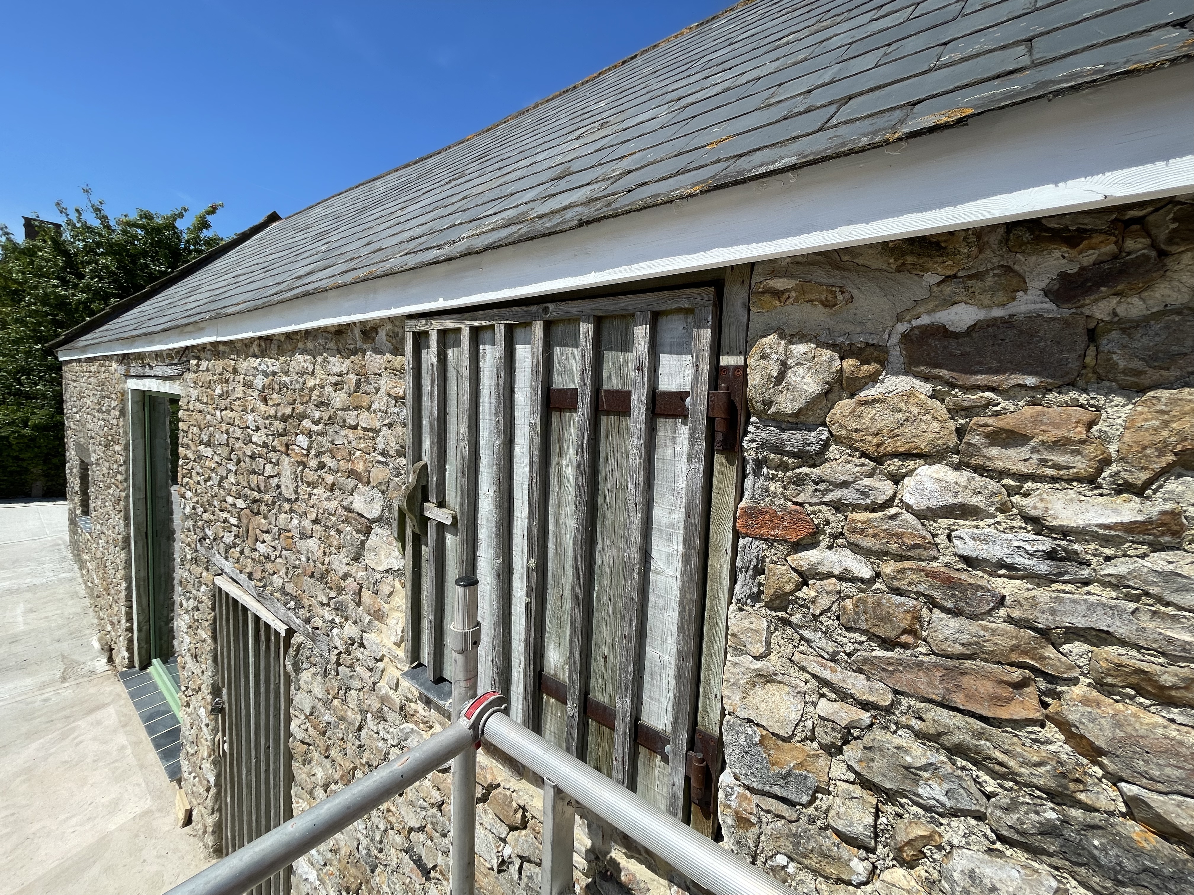 Our builders have been busy outside too. Dave has been repointing various parts of the three-bed barn and the front (roadside) of the shippon. It was left in a bad state before we moved in, with ivy and jasmine growing all over it (and in through the roof) and completely destroying the mortar in some places. It was so bad that when we cut it all back last year before the build started, we could actually take some of the stones out of the wall… It’s impressive how much better it looks already.
