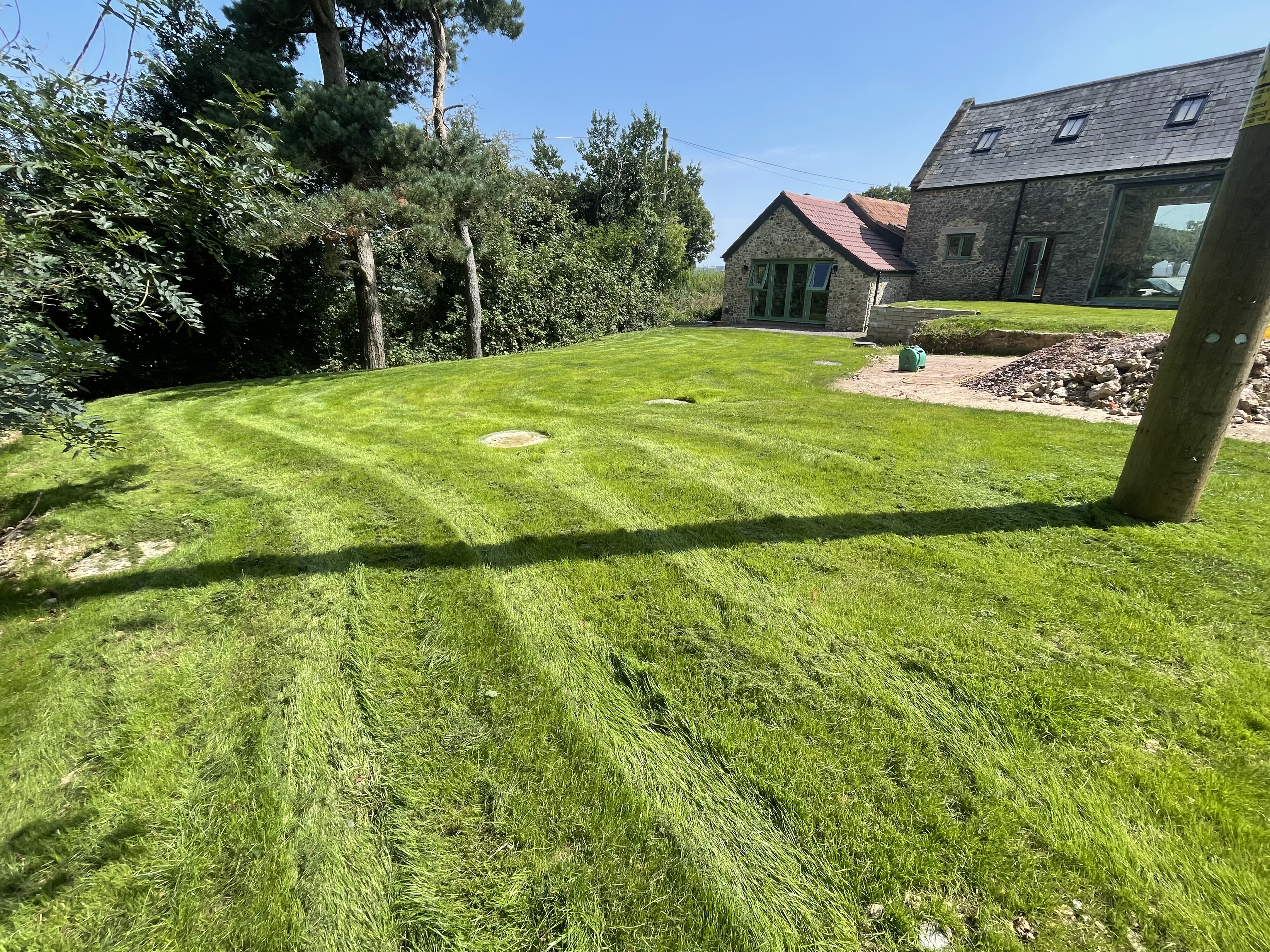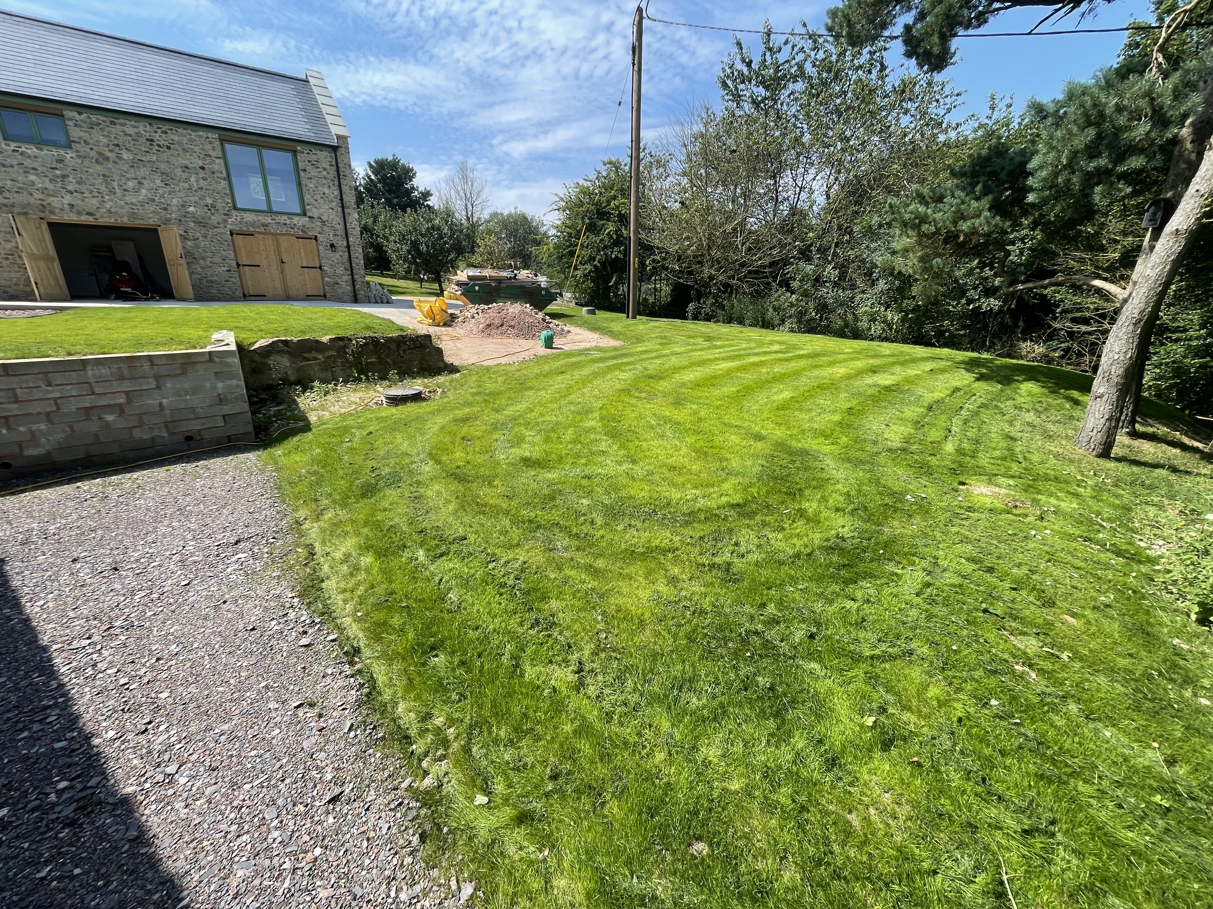 With the sunny weather at this time of year the grass grows at a rate almost visible to the naked eye. This isn’t a bad thing when growing new lawns although it does mean regular watering of the young growth. This week the lawn that will become our new garden got its first cut and is looking good (if I do say so myself).
