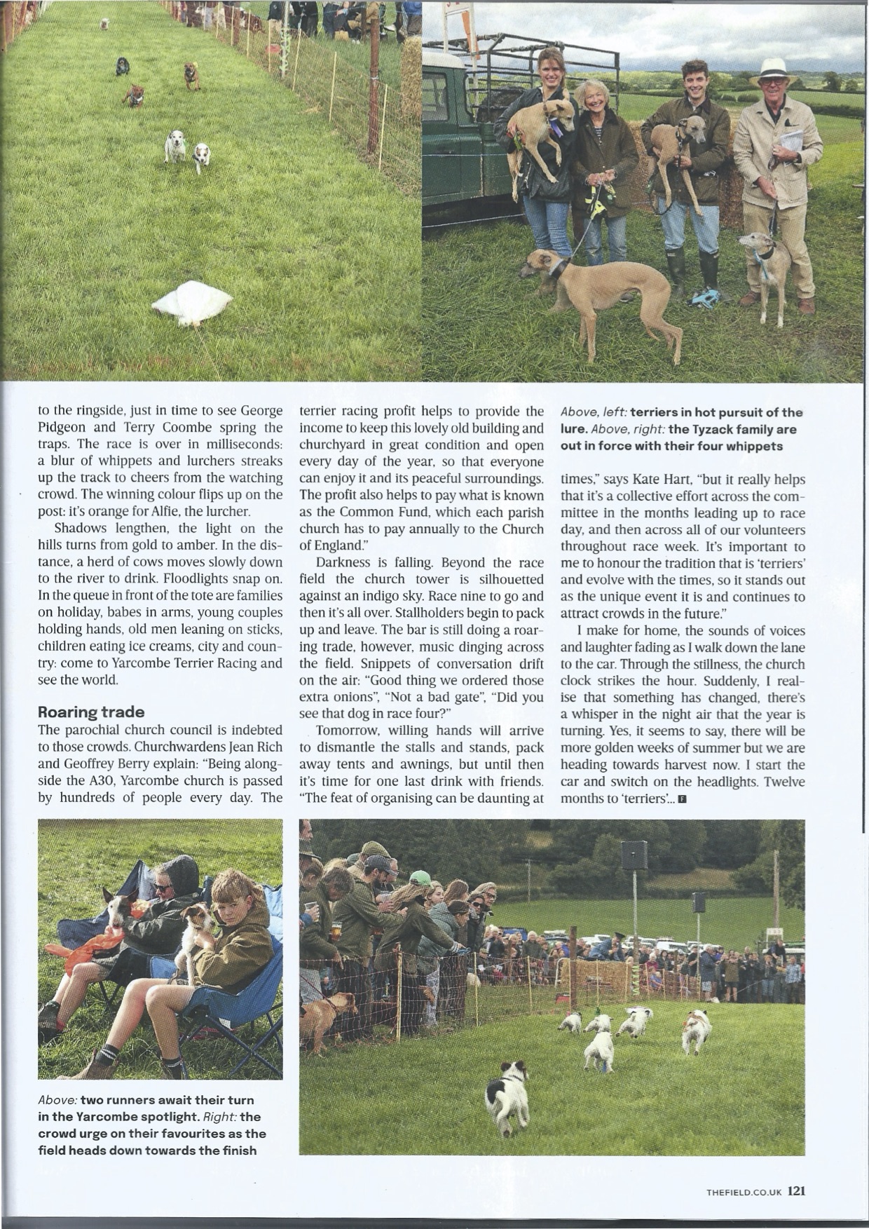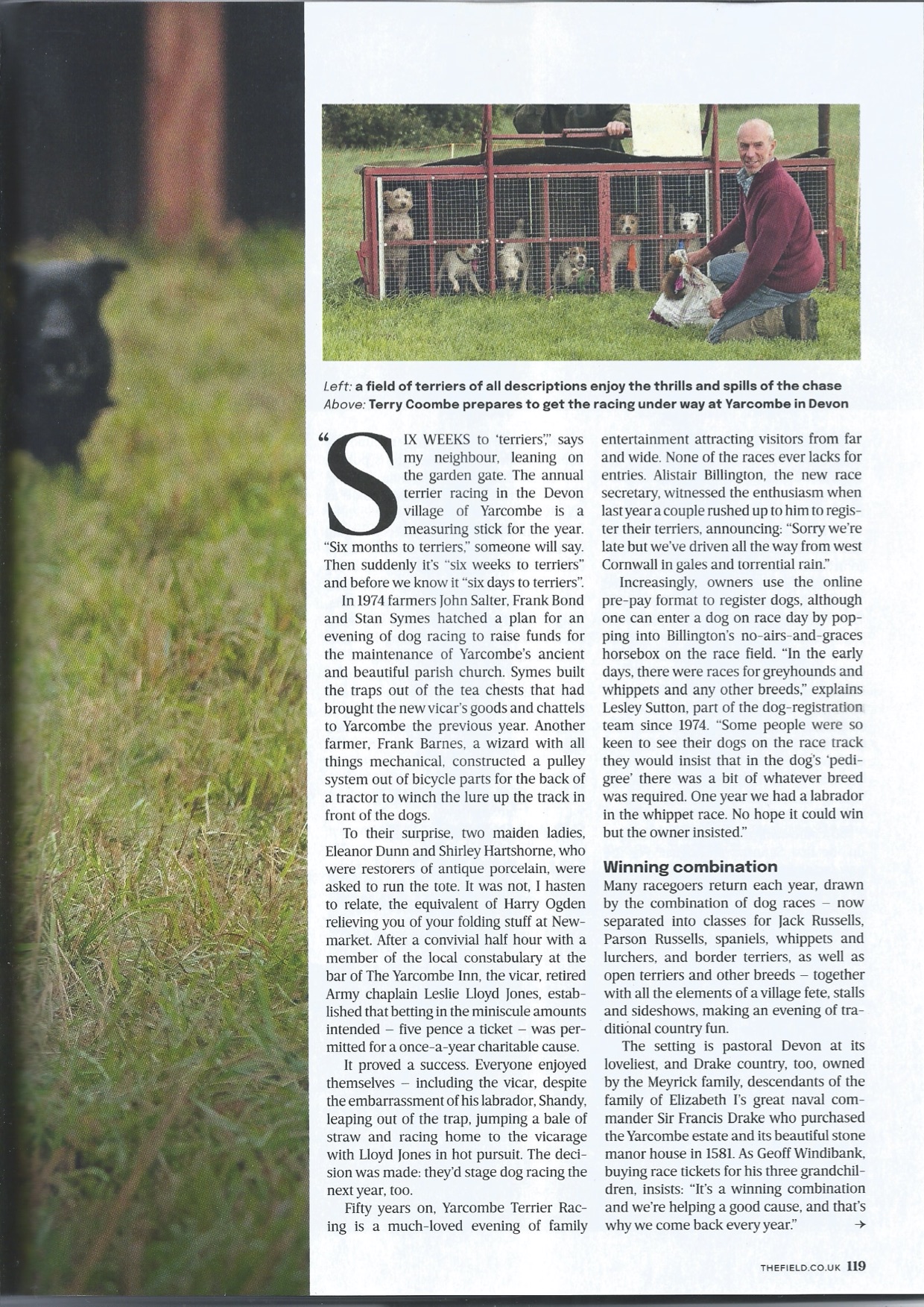 As it’s the 50th anniversary year, the Terrier Races were featured in this month’s edition of The Field magazine. Reading our names in a title which celebrates all thinks ‘country’ reminds me of how much our lives have changed these past four years.