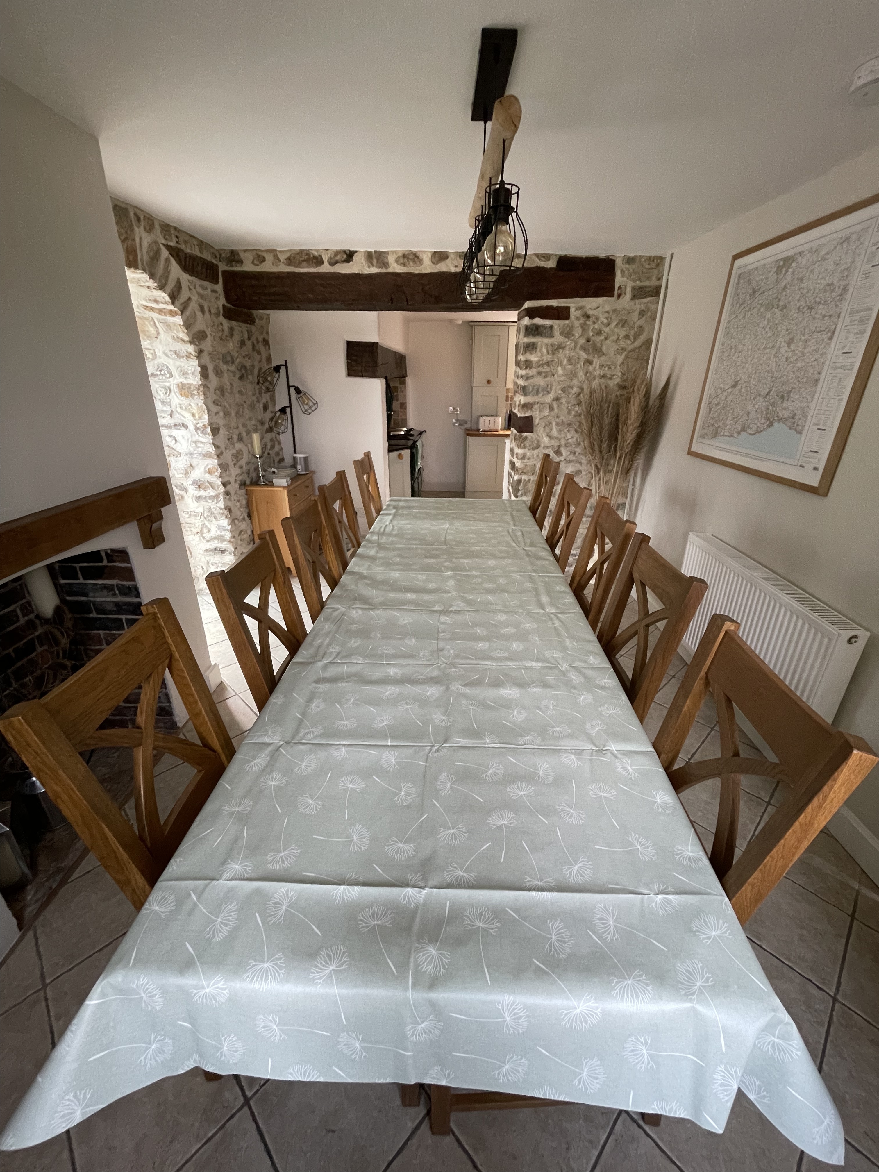 John has been working incredibly hard – firstly cleaning out the farmhouse fridge and then sanding the kitchen worktops and oiling them before we unpacked everything to go out on them. You’re supposed to do this annually but it’s been quite a while since we got round to doing it, so the difference now is very noticeable. The room looks so much better too with everything put and tidied up. We switched the aga off after we moved to save oil, so he’s cleaned it thoroughly – it looks so shiny and new. It also means the dining room table – which we were using for storing all the kitchen items – is now accessible again, so we could put on our new table protector and wipe-clean tablecloth. So many of our friends have panicked when their children are faced with our cream tablecloths, and we want our guests to feel relaxed so we thought a wipe-clean one would be better all round!