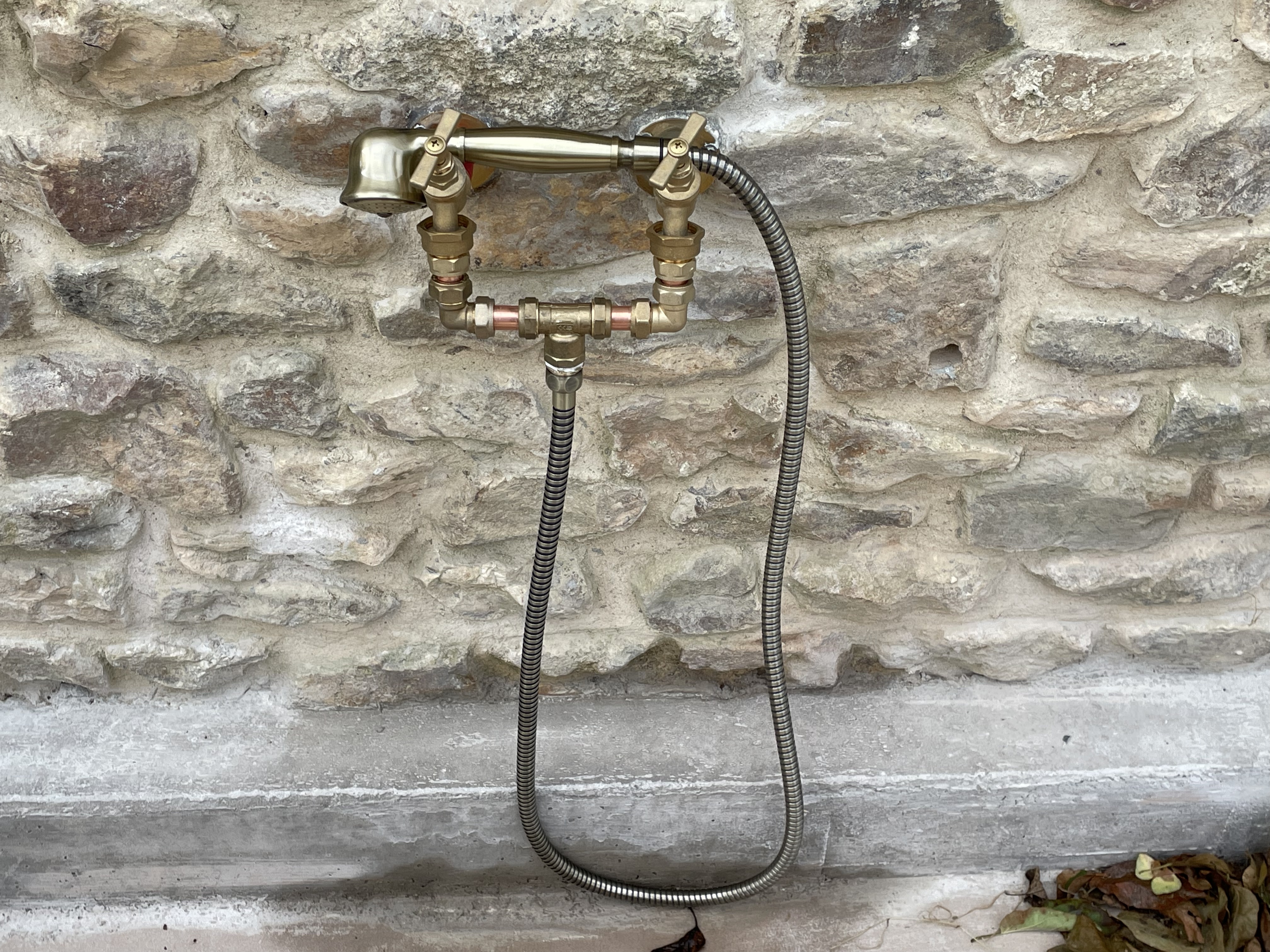 It feels like a lifetime ago that the plumbers were here to finish off the remaining jobs – although it was actually only Tuesday. They were amazing enough to move our washer dryer down from the farmhouse to the laundry for our guests to use (the utility room will be locked for us to use as storage) and installed our dog and boot shower! We’re so excited – we put all the pebbles in on Sunday evening and it looks just as we’d hoped. Now the electricians just need to wire up the water heater so there’s warm water, and we need to get a sign and it’s complete – any dog visiting can be treated to a nice shower after walking in the hills.