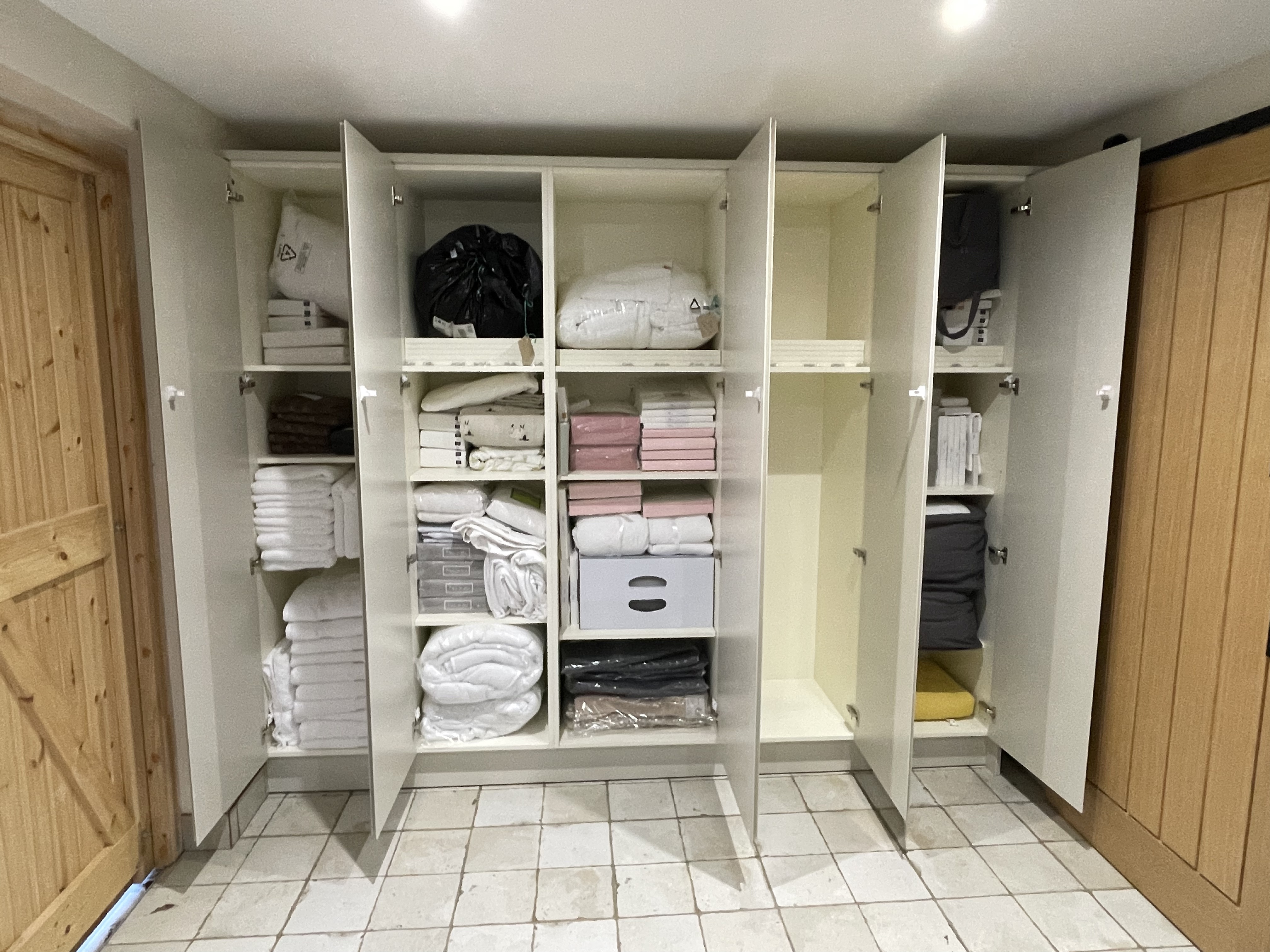 Our building contractor and architect came over on Tuesday to look through the snagging list, which meant our builders also came back for a day later to work through the outstanding jobs. This included planing down the kickboard in the games room (which was too big once the floor went down), and adding the final door to the laundry cupboards (which had arrived late). I’ve been spending most evenings sorting through the bedding and towels for each room, which in most cases includes both a double and a twin set where we have zip and link beds. It’s been strangely rewarding to move into the laundry cupboards and get it all tidied up – I don’t want to buy any more bedding for a very long time though!