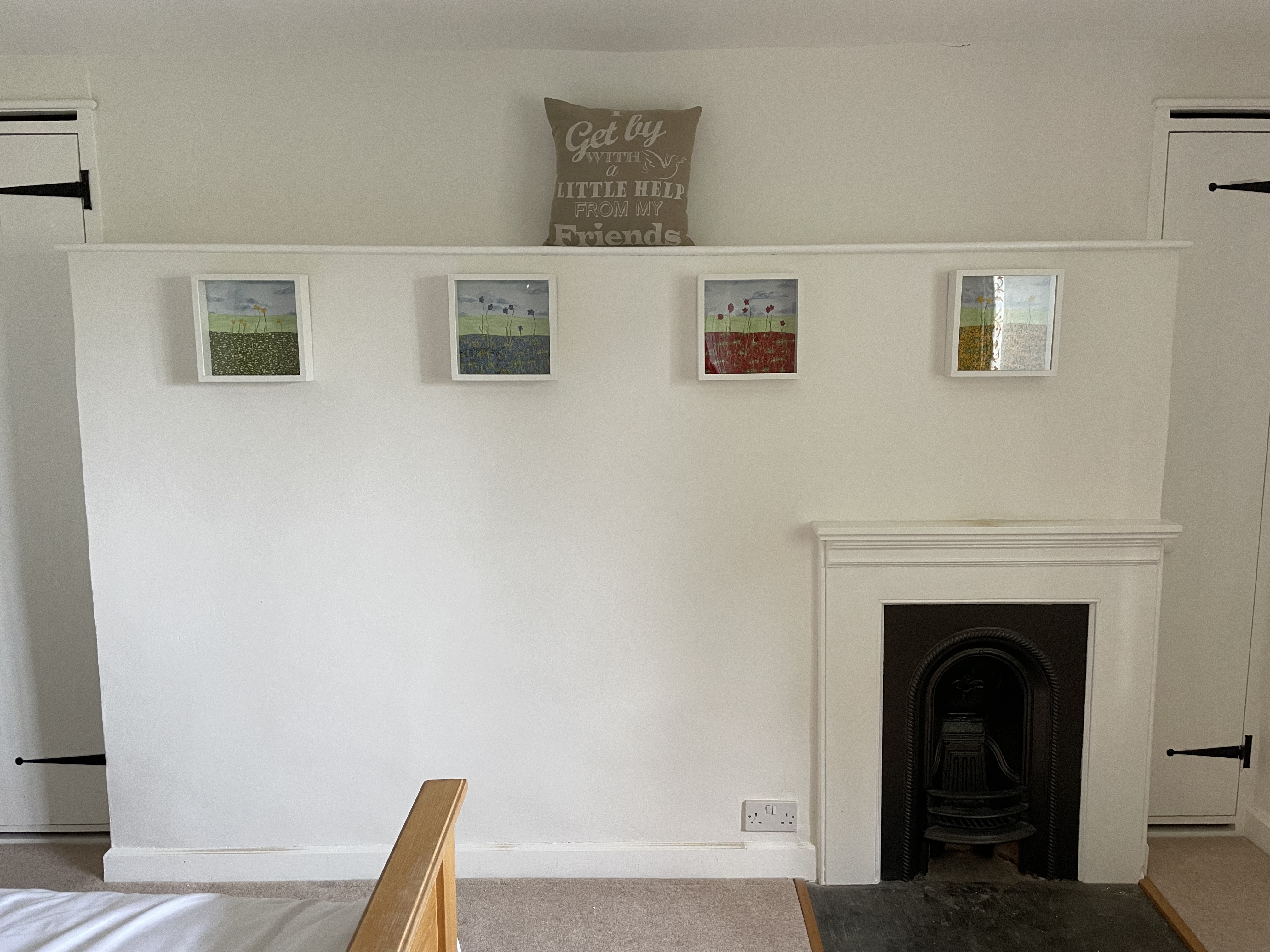 So on Saturday, when the carpets had dried, we carried up all the boxes that had been stored in both half-finished barns and in the farmhouse, and spent a fun afternoon building furniture. The master bedroom looked empty as we’ve not put as much furniture in as we did when we lived there, but adding some beautiful framed quilts my mum had made has helped to add a splash of colour and reduced the empty space. Although it wasn’t particularly easy – the walls are all stone or brick and it did feel slightly over the top having to use an impact drill to hang some pictures! I finished tiling the gap above the shower in the ensuite during the week – we’ve matched the tiles as best we can although they’re still a little darker than the original ones. It’s been one of those jobs we never got round to while we lived there, but we can’t really expect guests to use a shower with plasterboard and foam around the top.